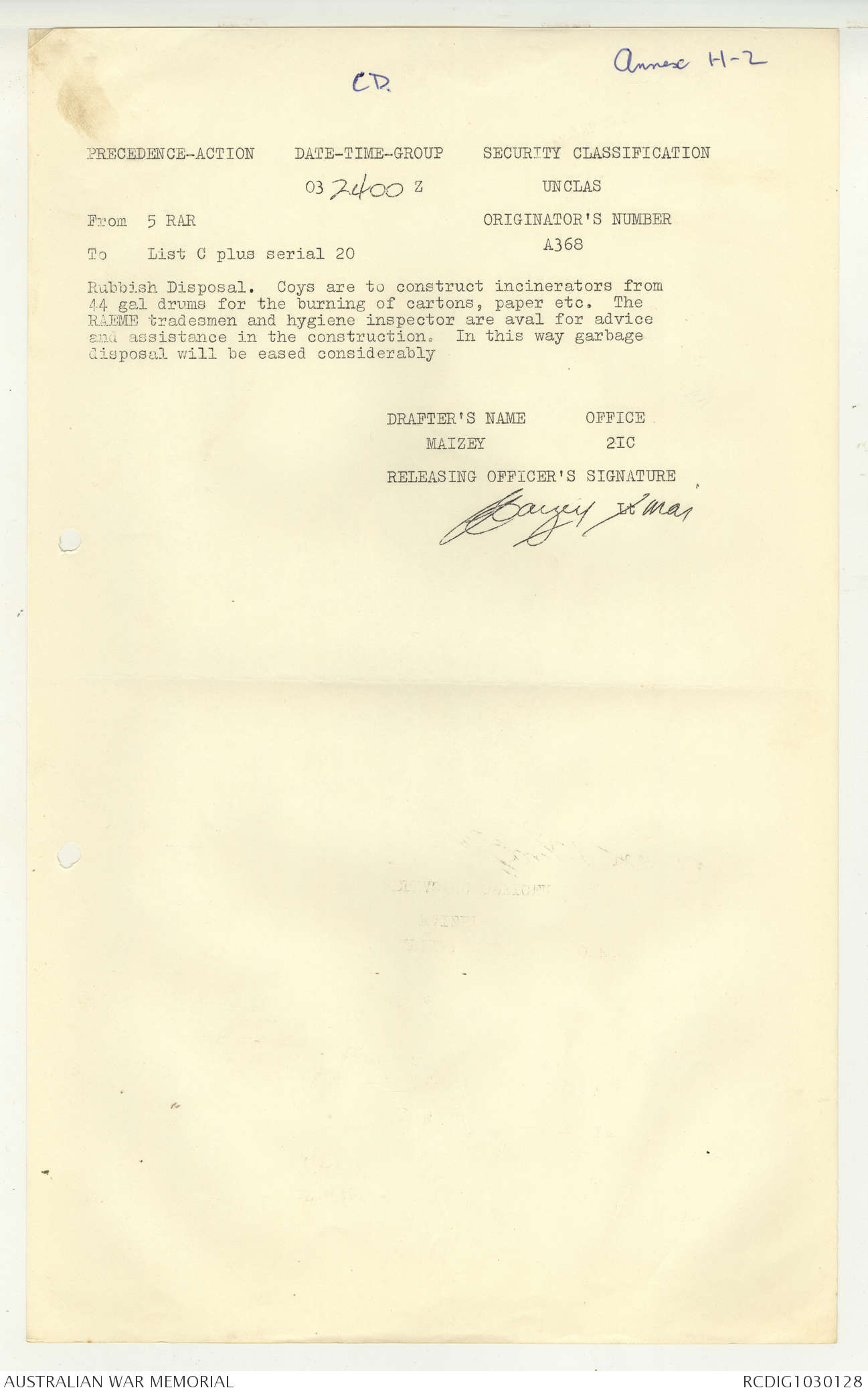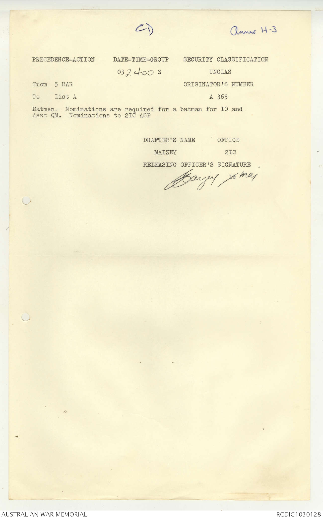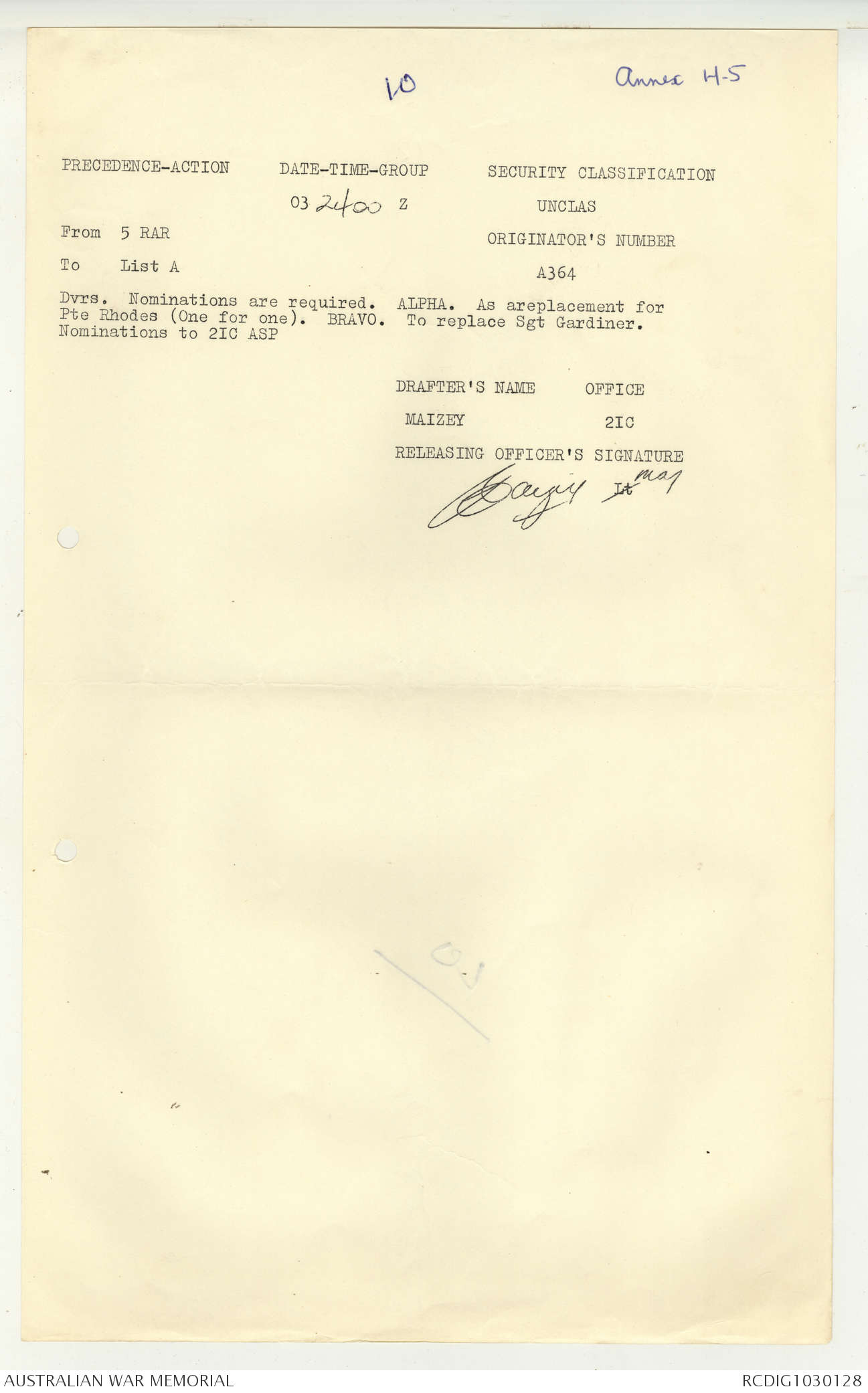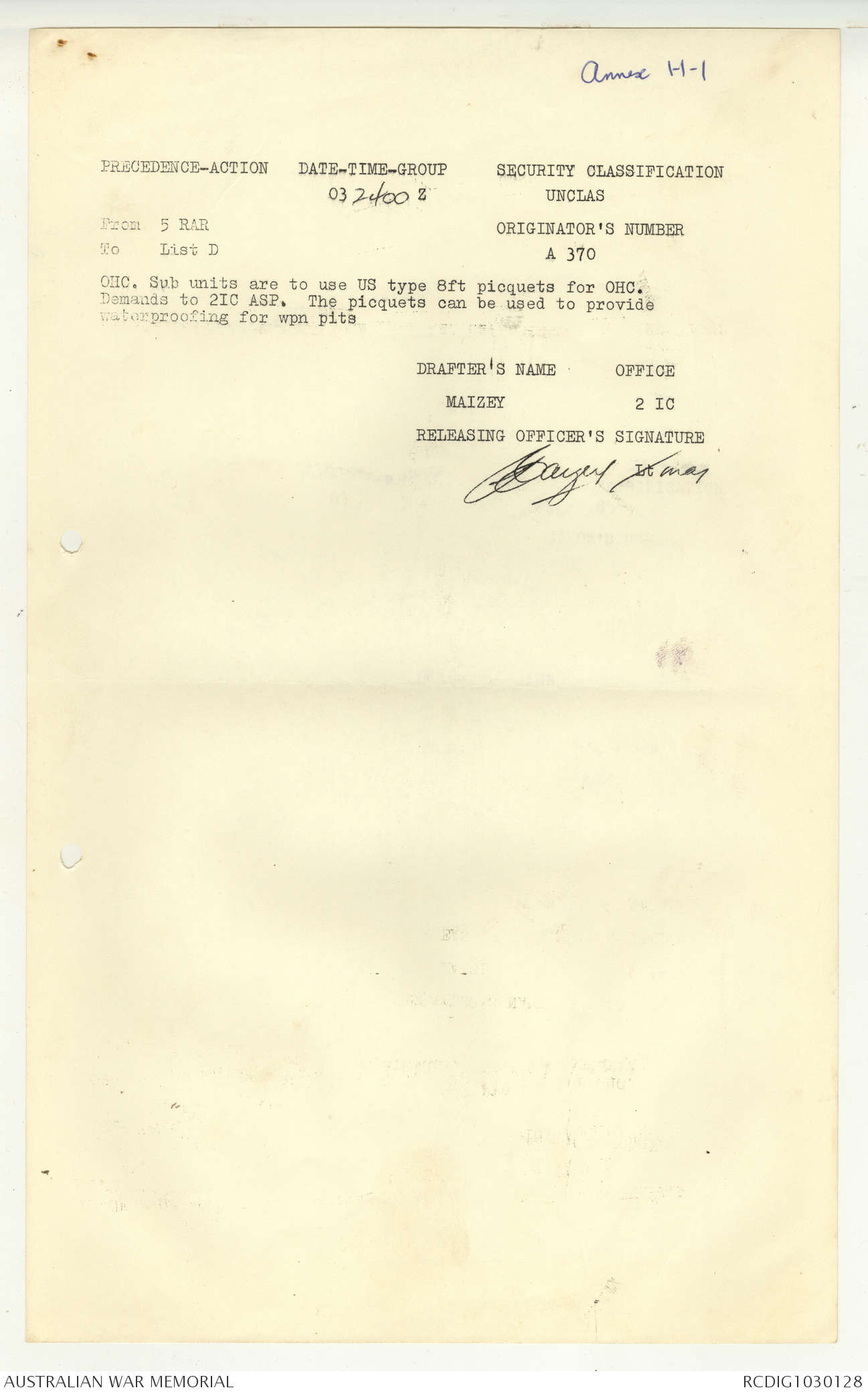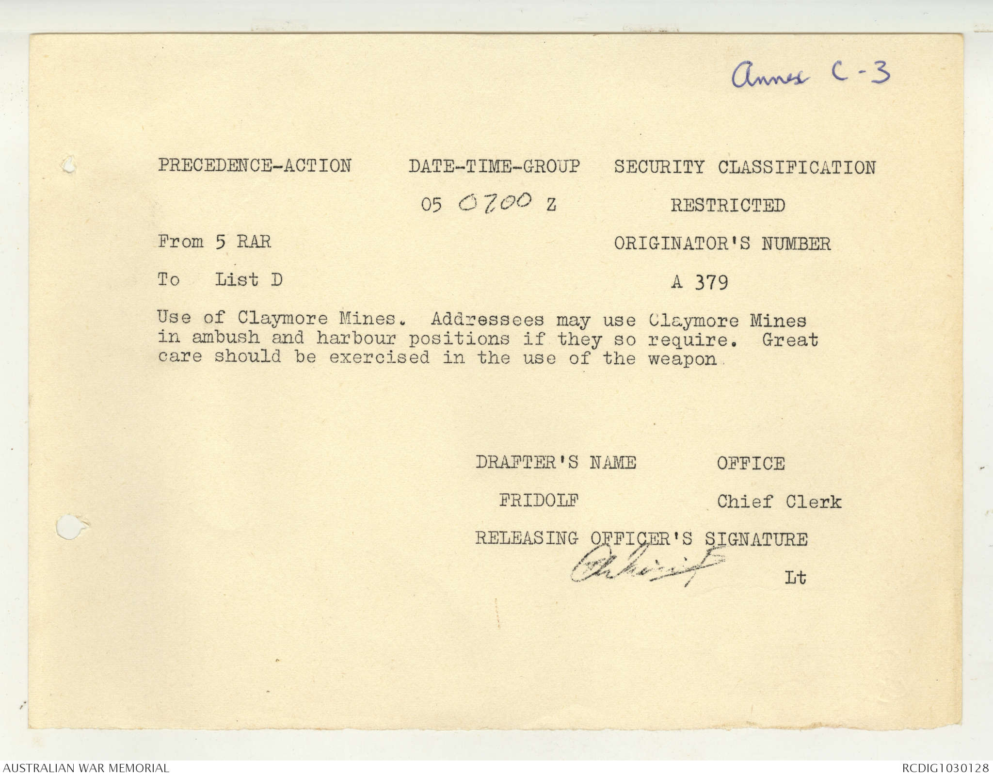 - AWM95 Subclass 7/5 - 5 Battalion Royal Australian Regiment