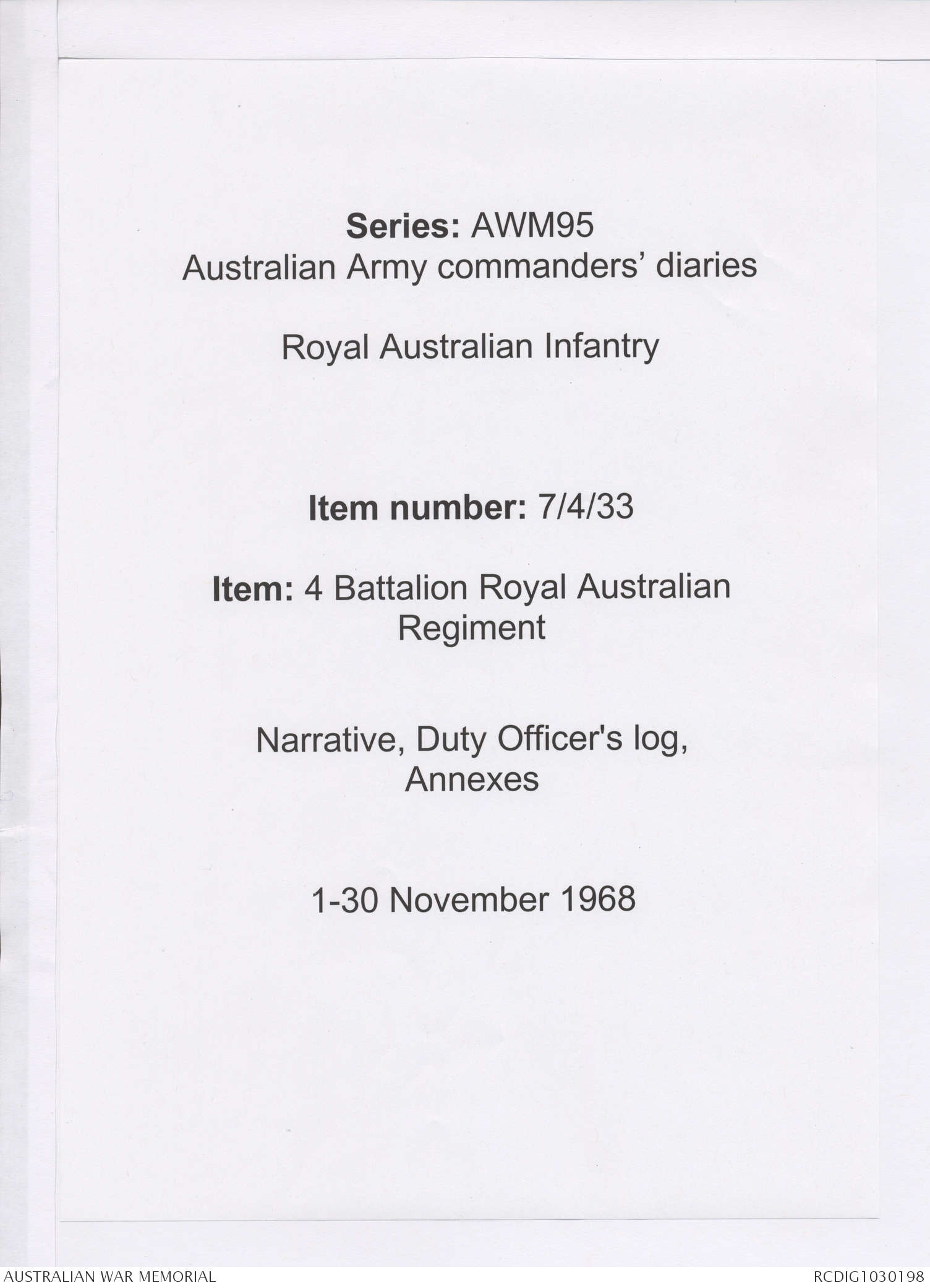 - AWM95 Subclass 7/4 - 4 Battalion Royal Australian Regiment
