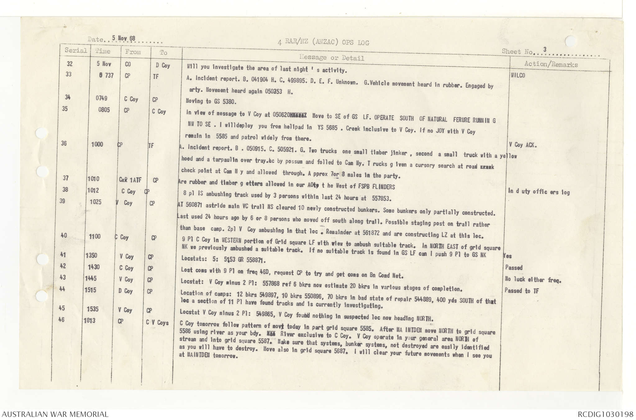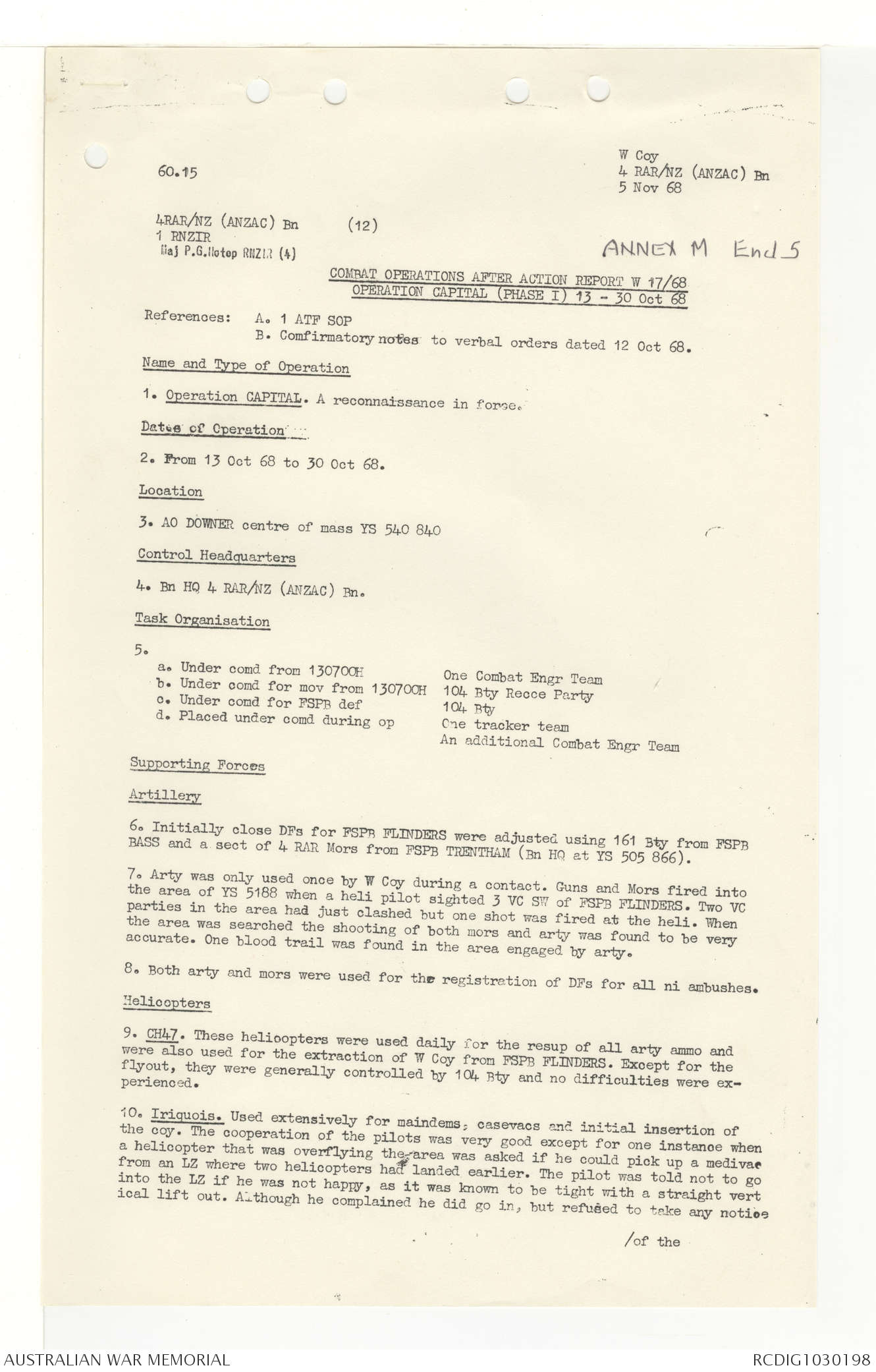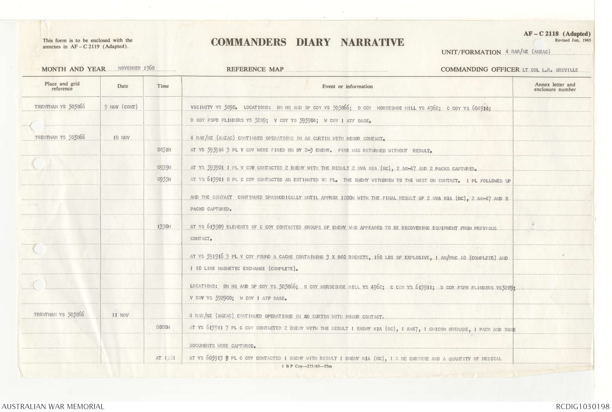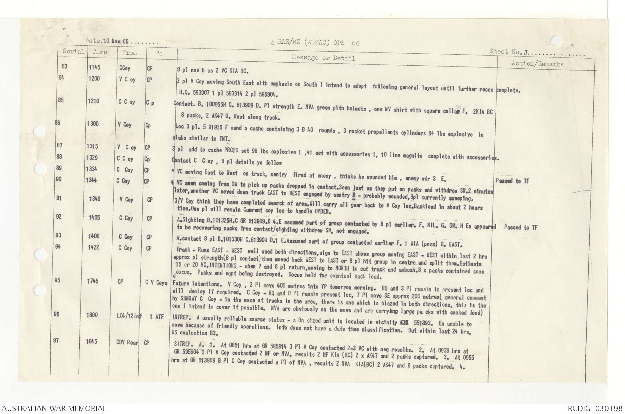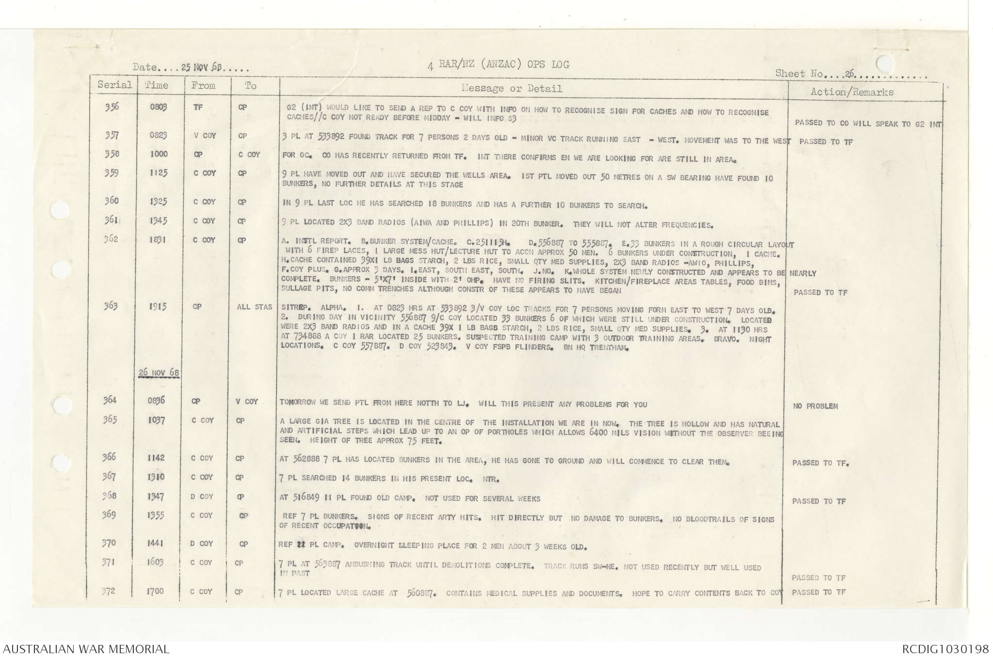 AWM95 7/4/33 - 1-30 November 1968, Narrative, Duty Officer's log, Annexes