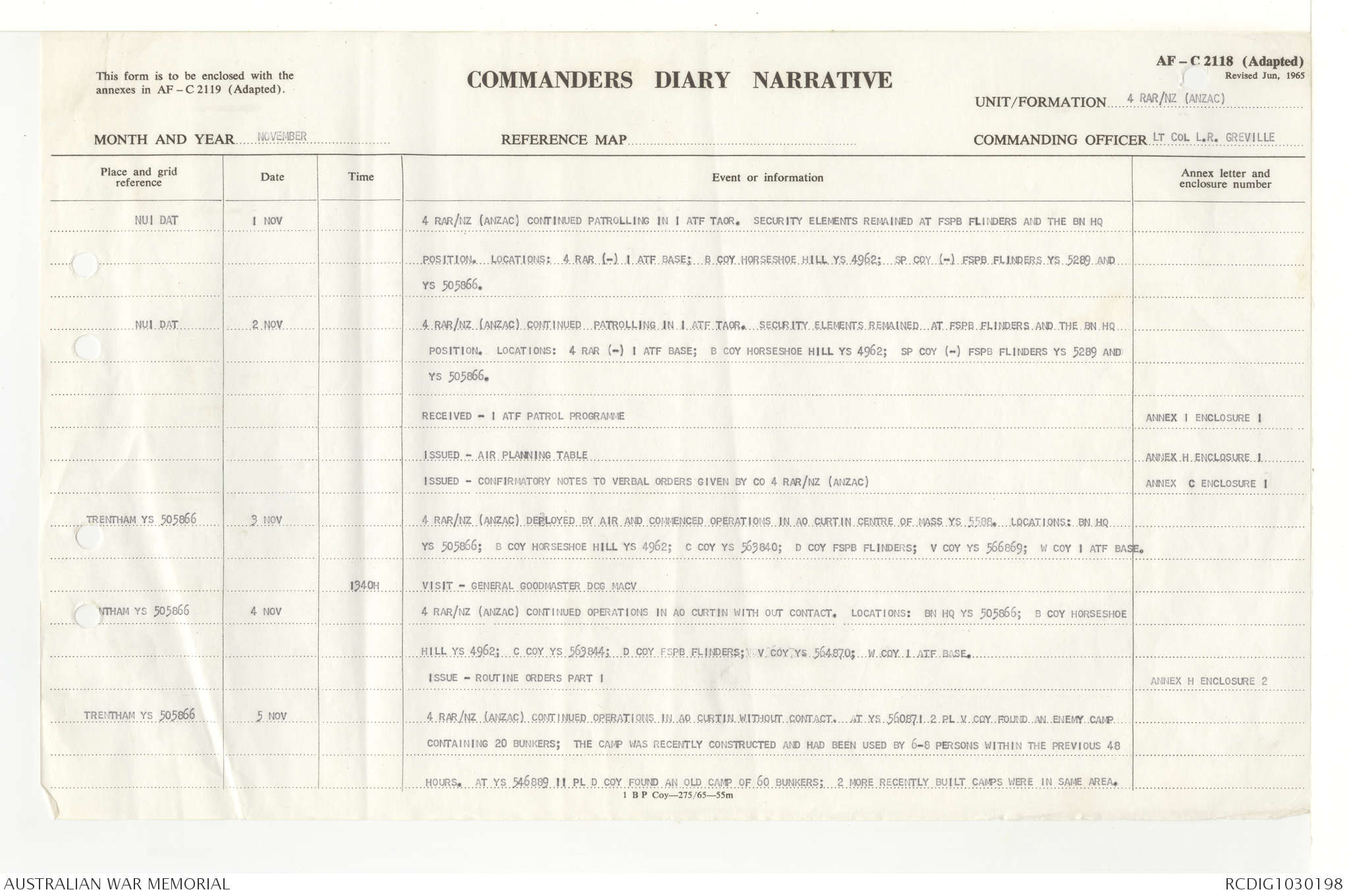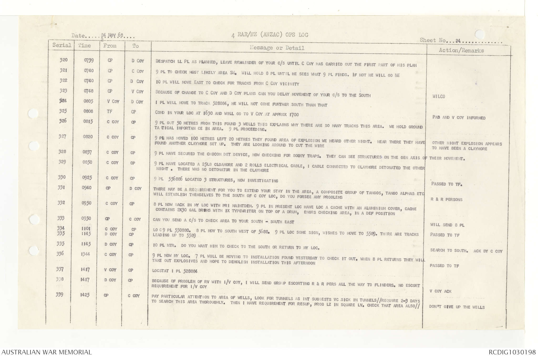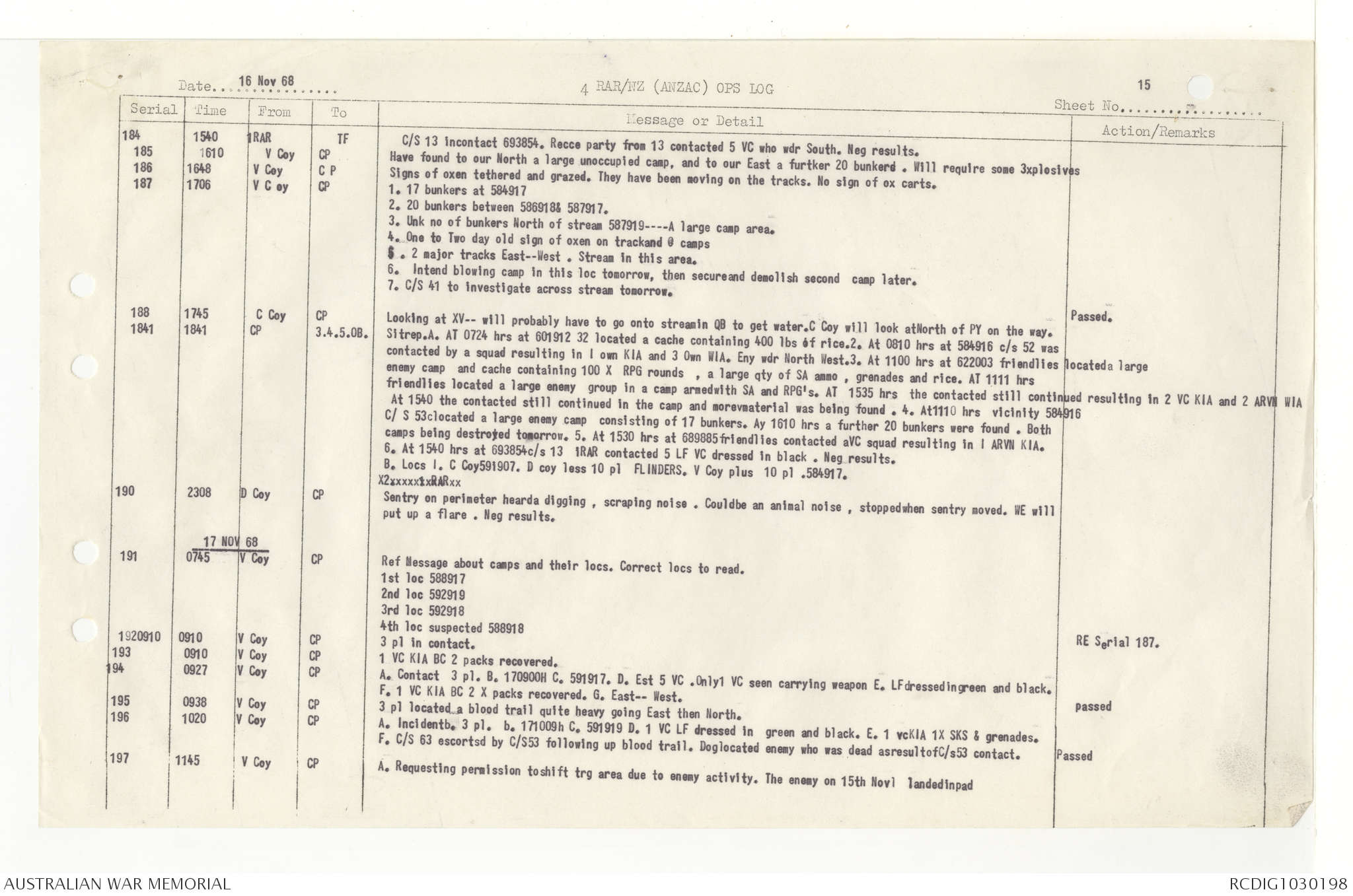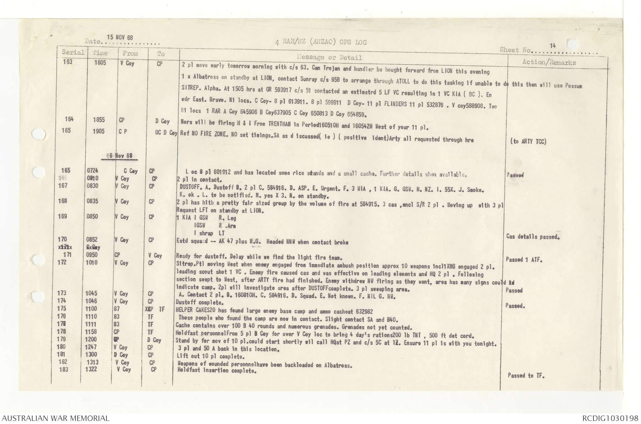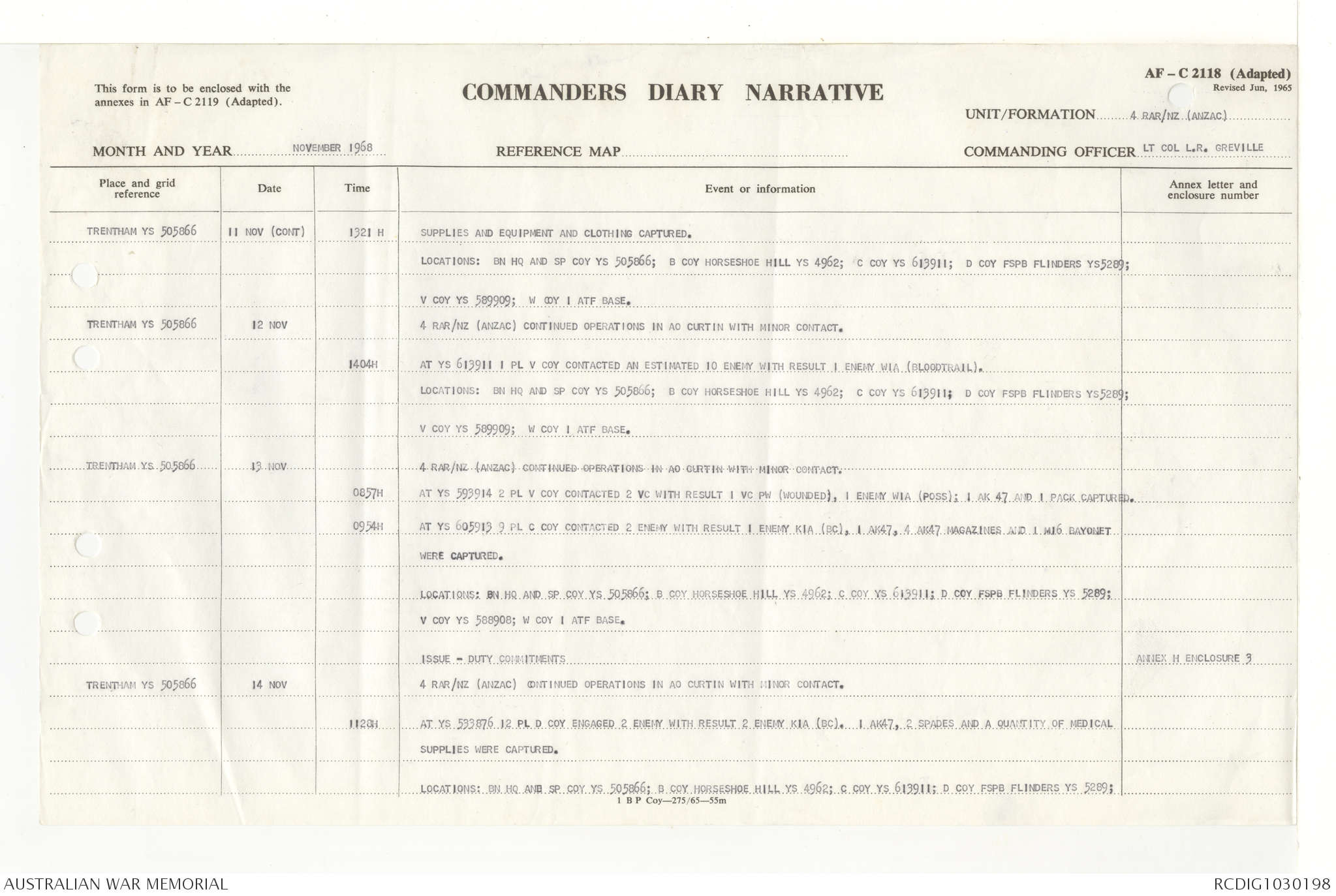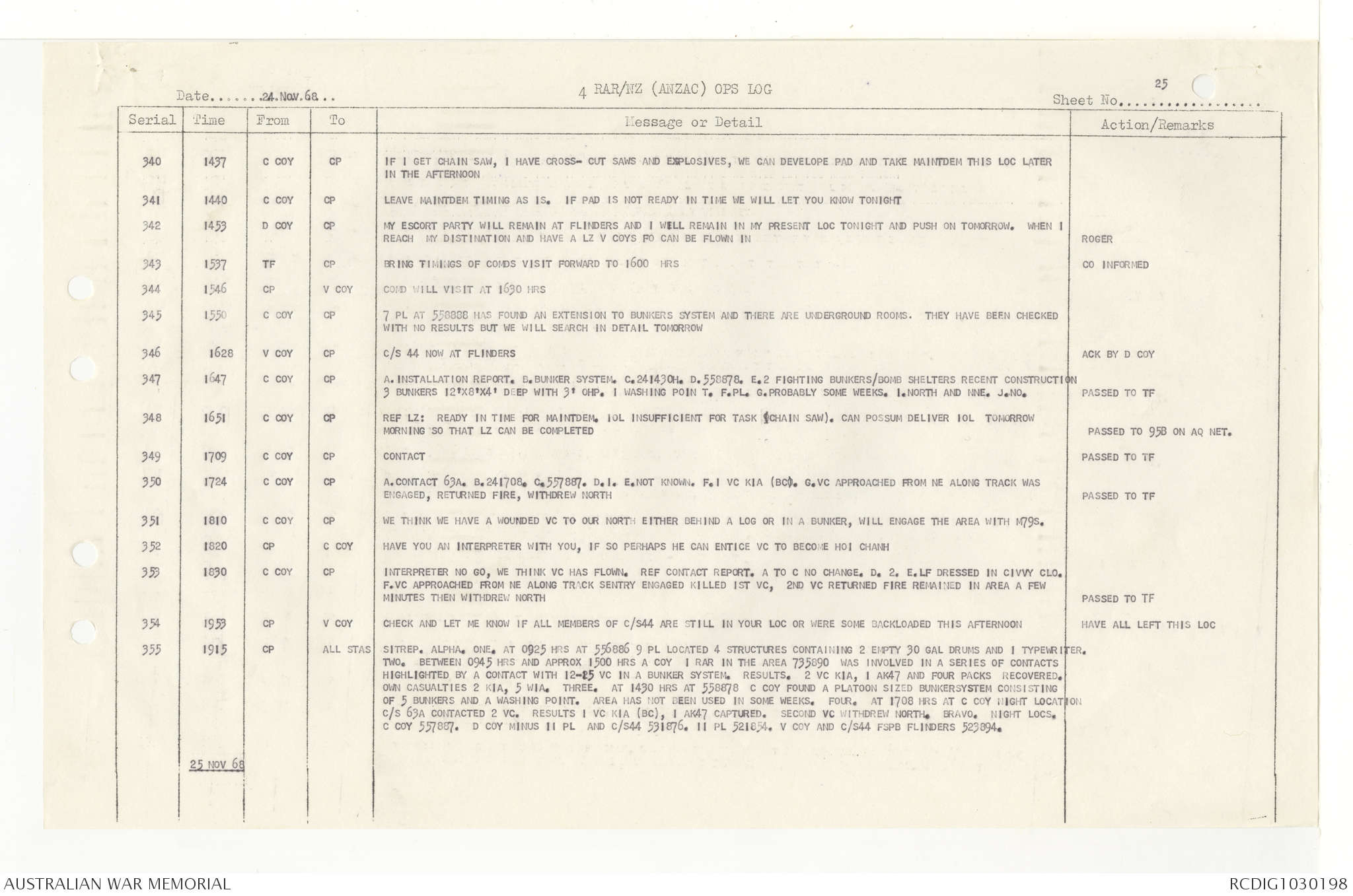 AWM95 7/4/33 - 1-30 November 1968, Narrative, Duty Officer's log, Annexes