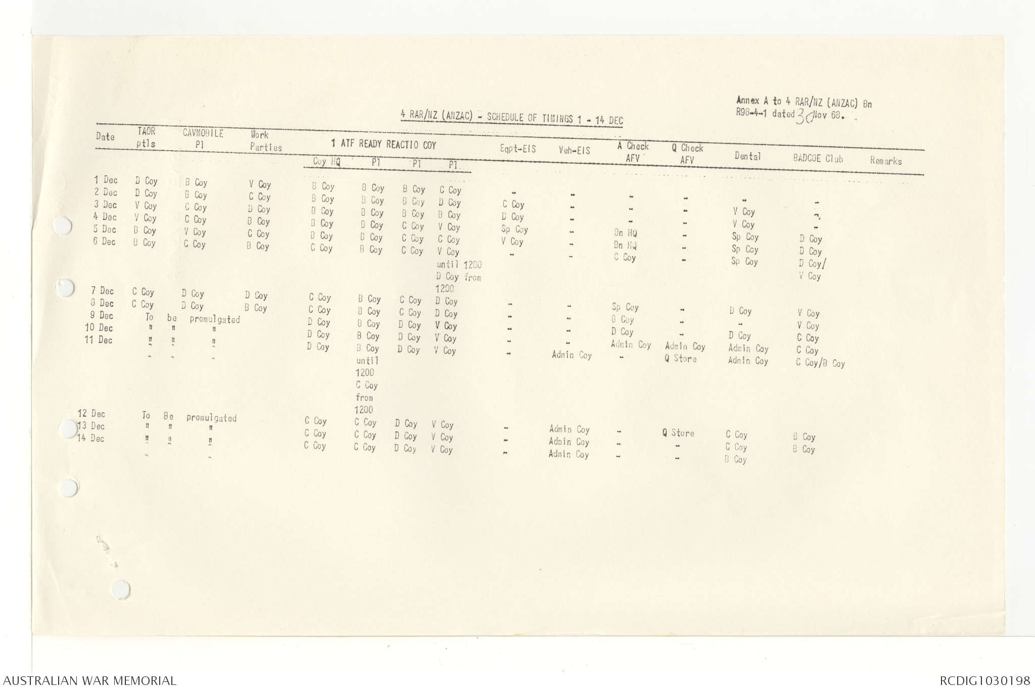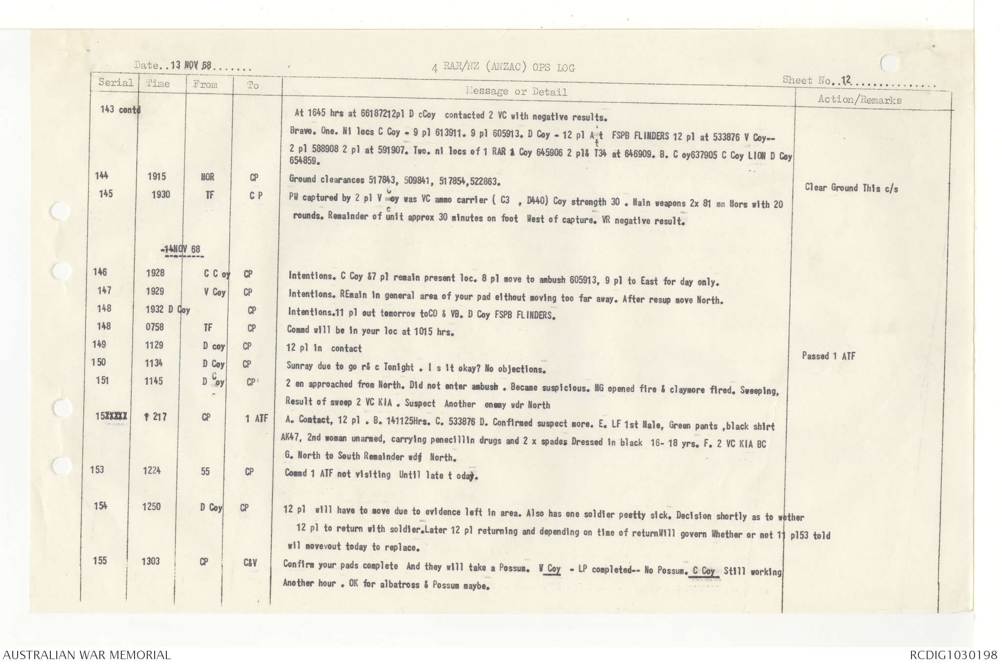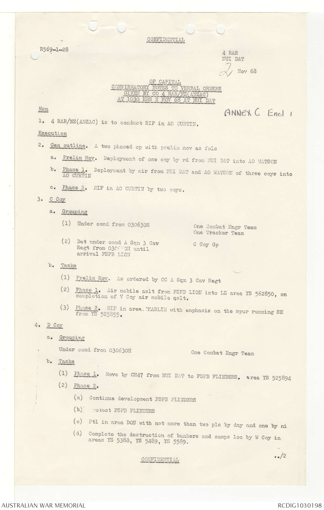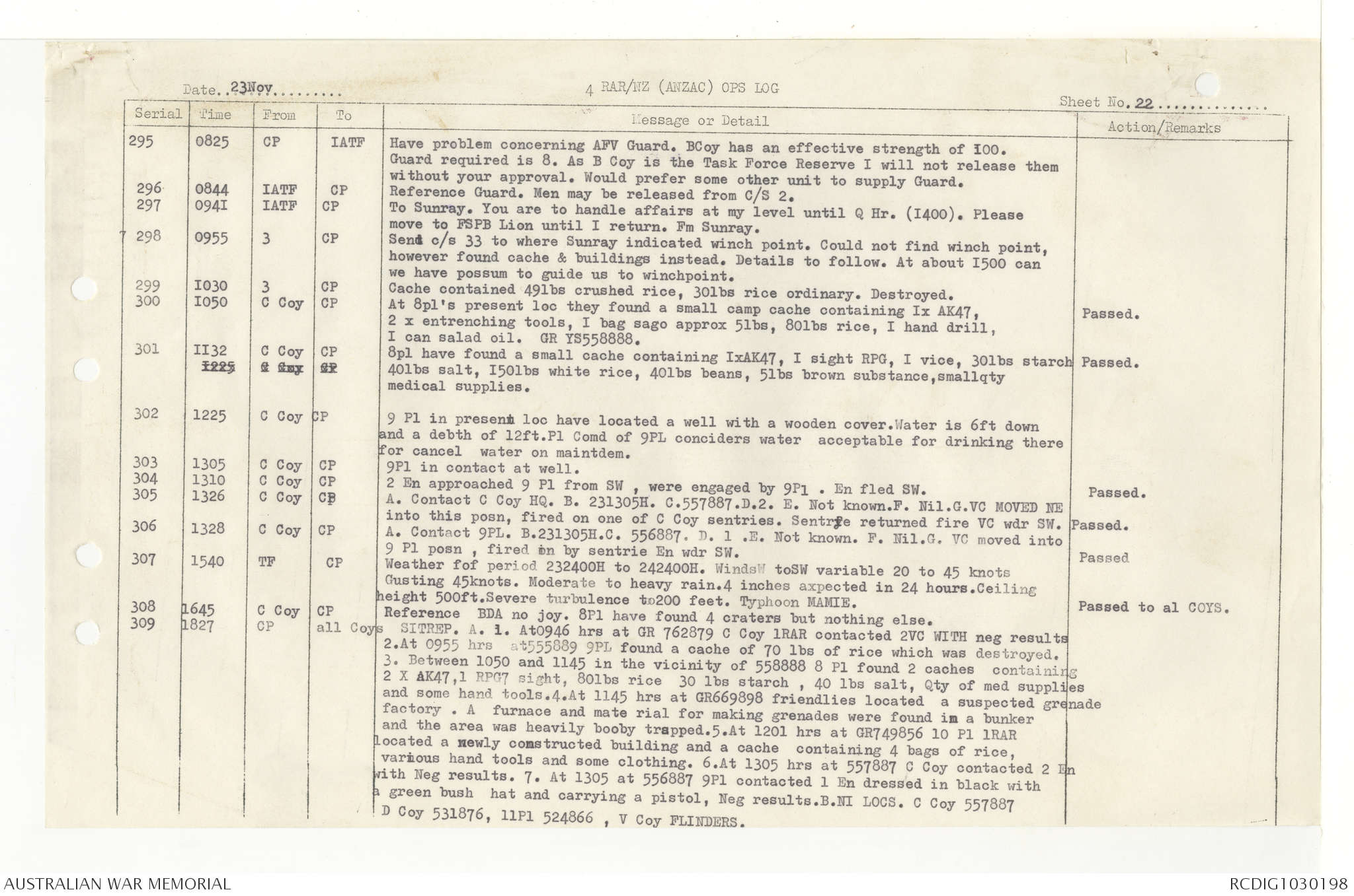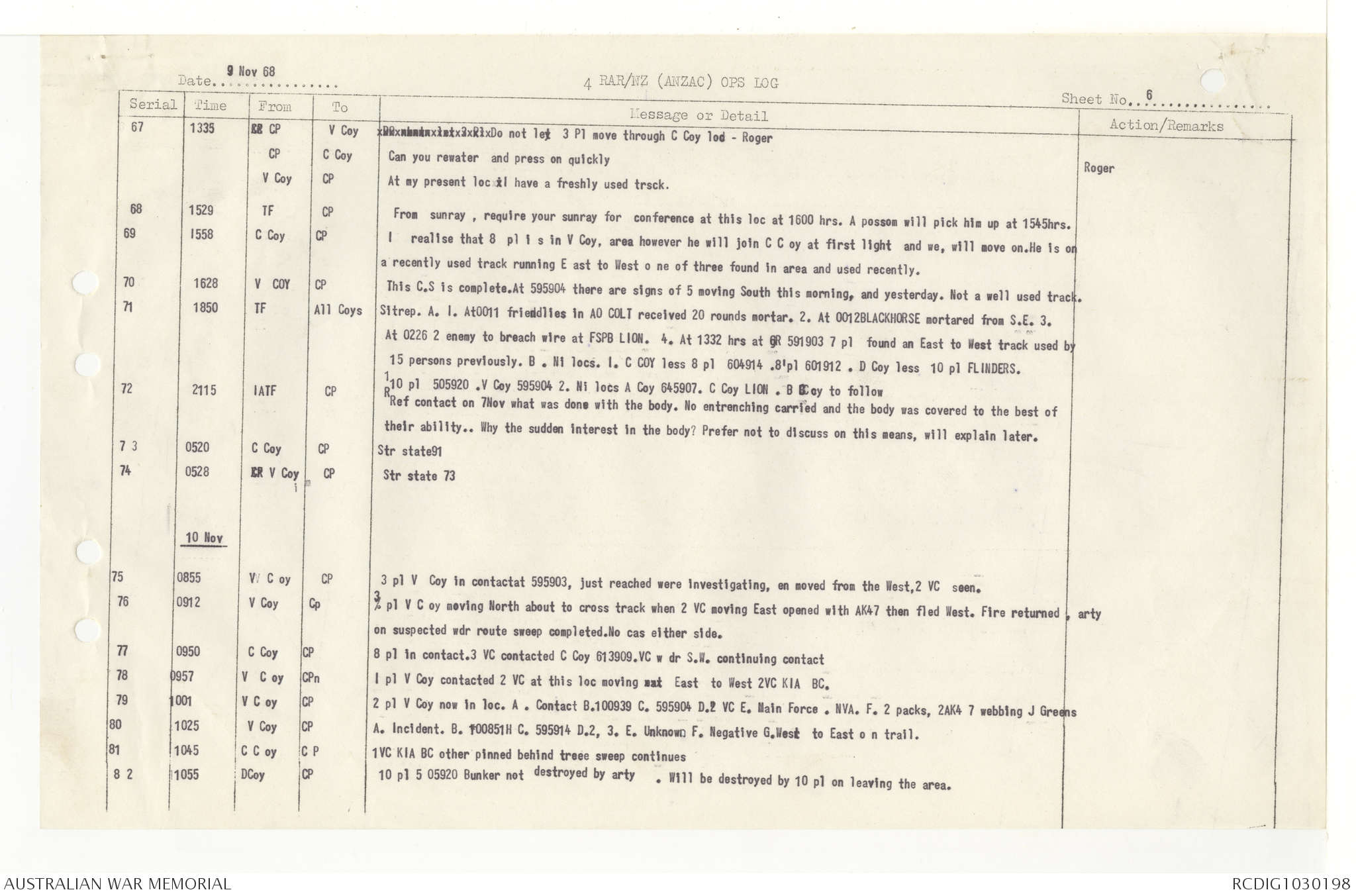 AWM95 7/4/33 - 1-30 November 1968, Narrative, Duty Officer's log, Annexes