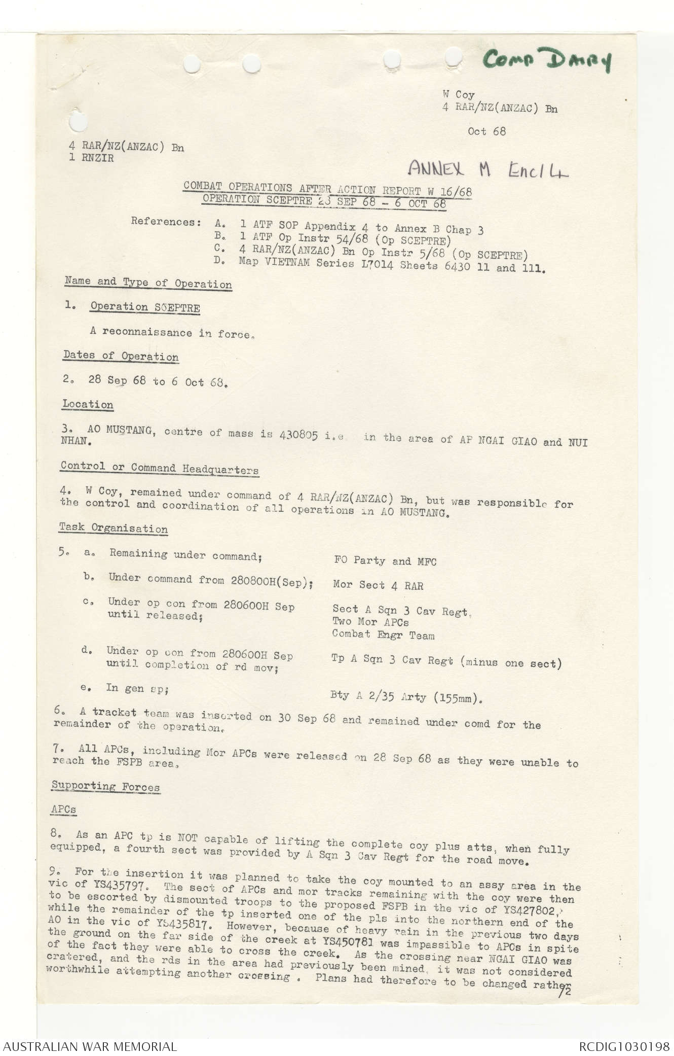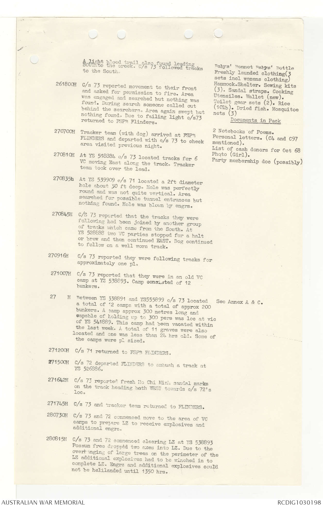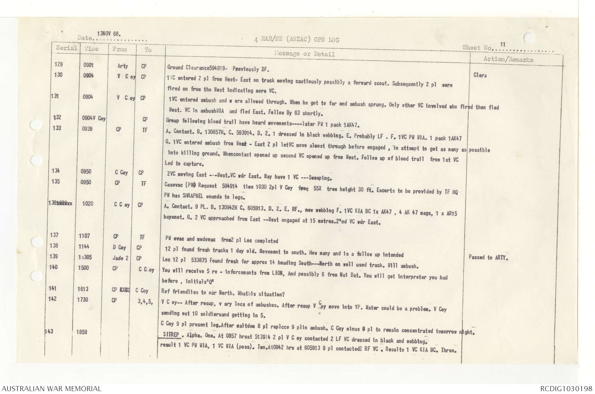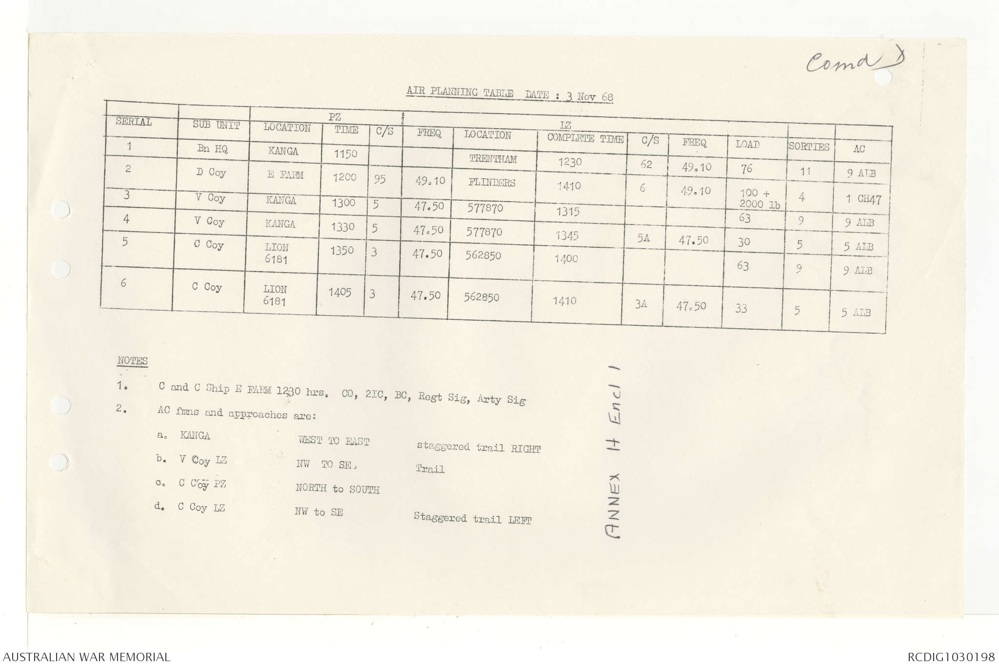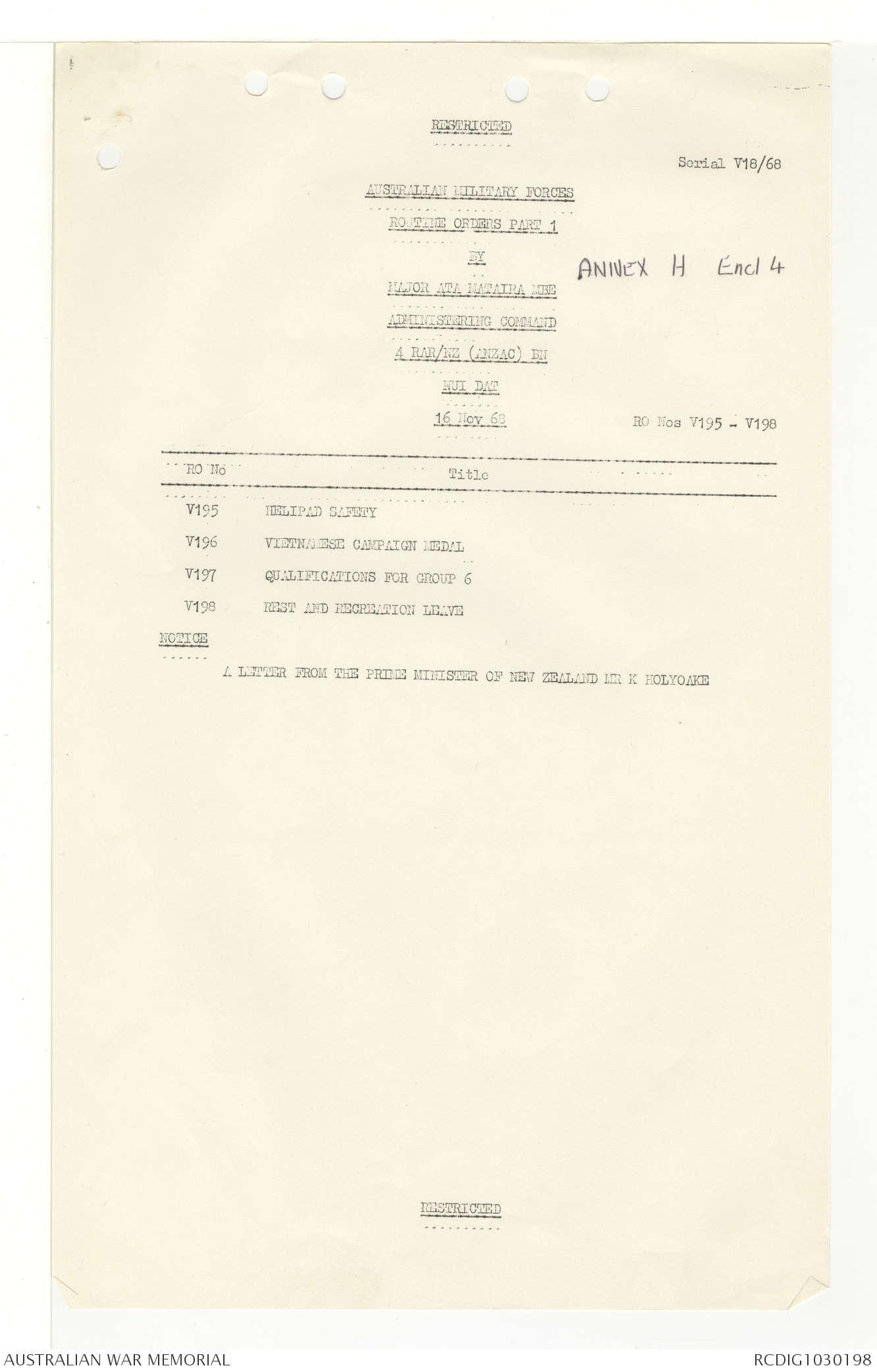 AWM95 7/4/33 - 1-30 November 1968, Narrative, Duty Officer's log, Annexes