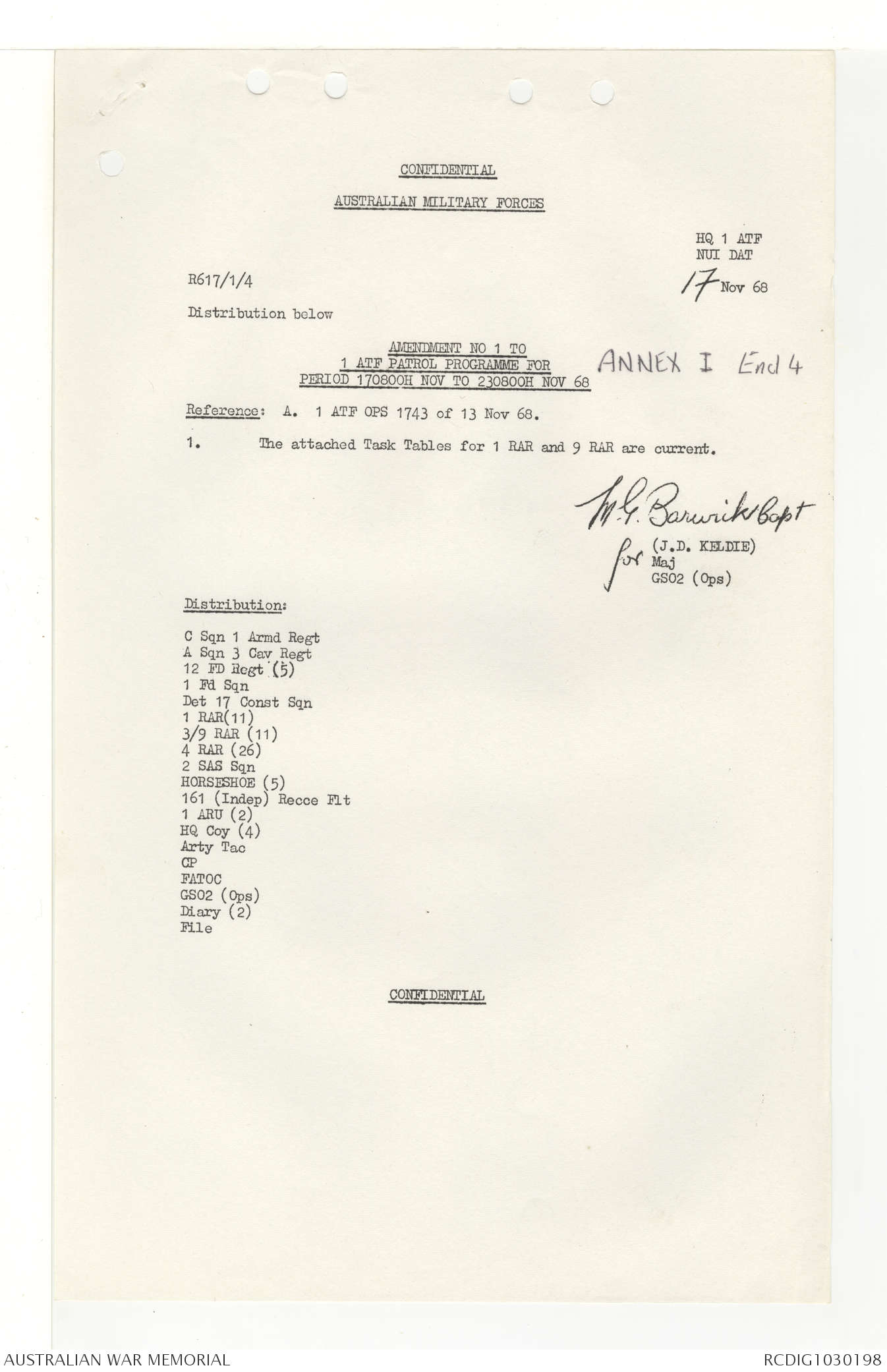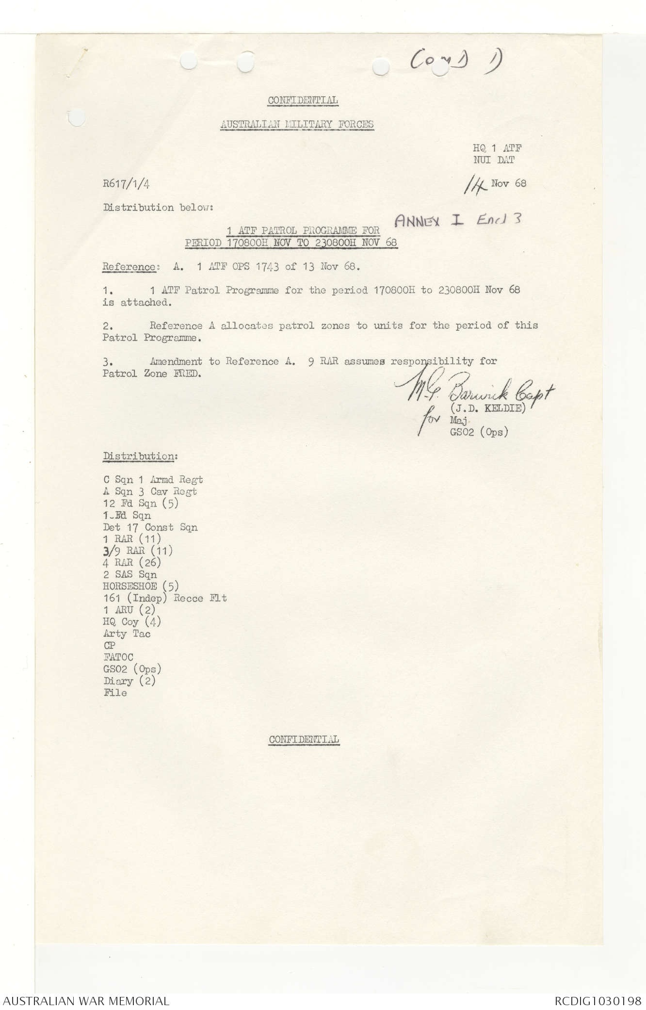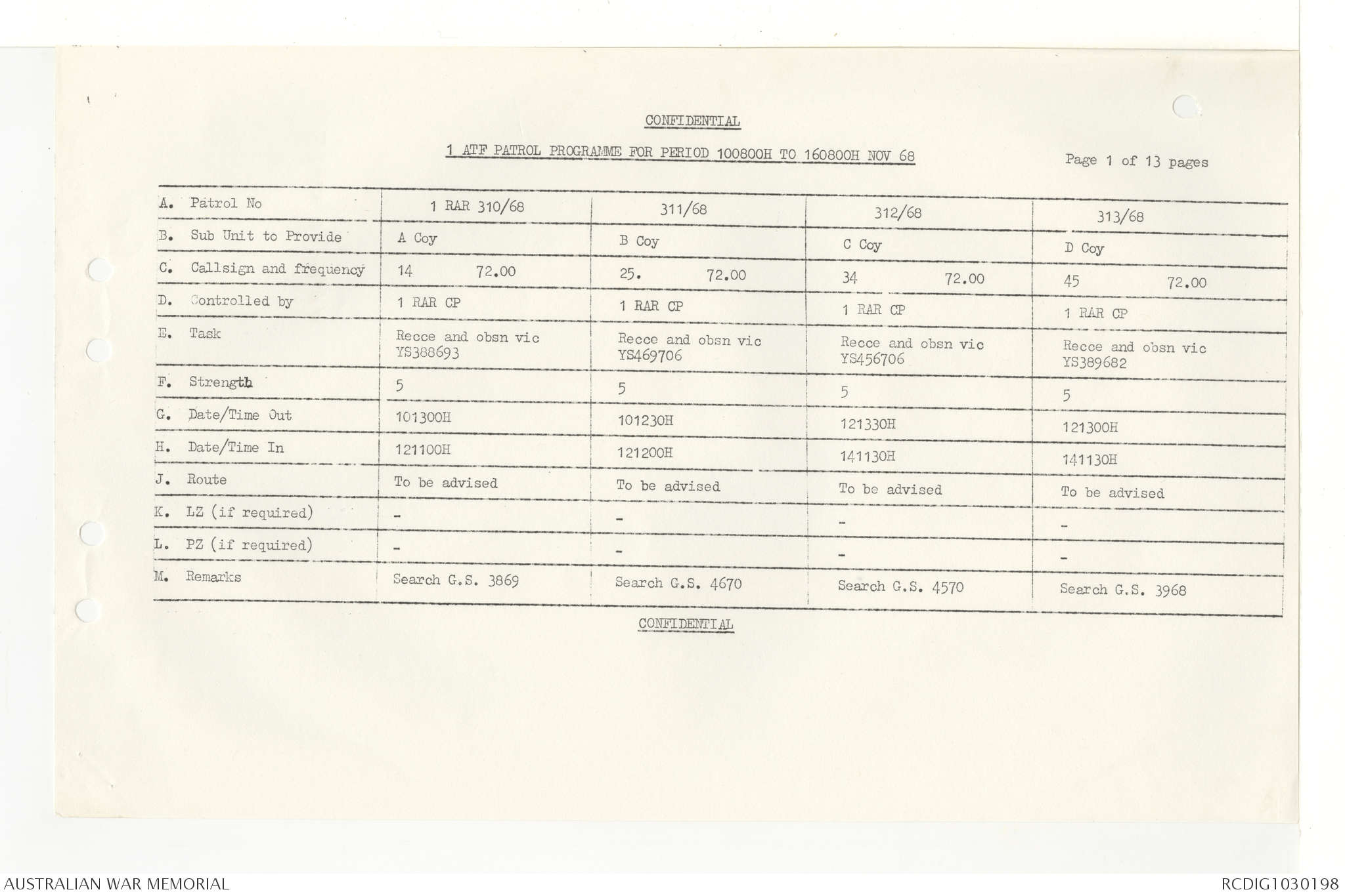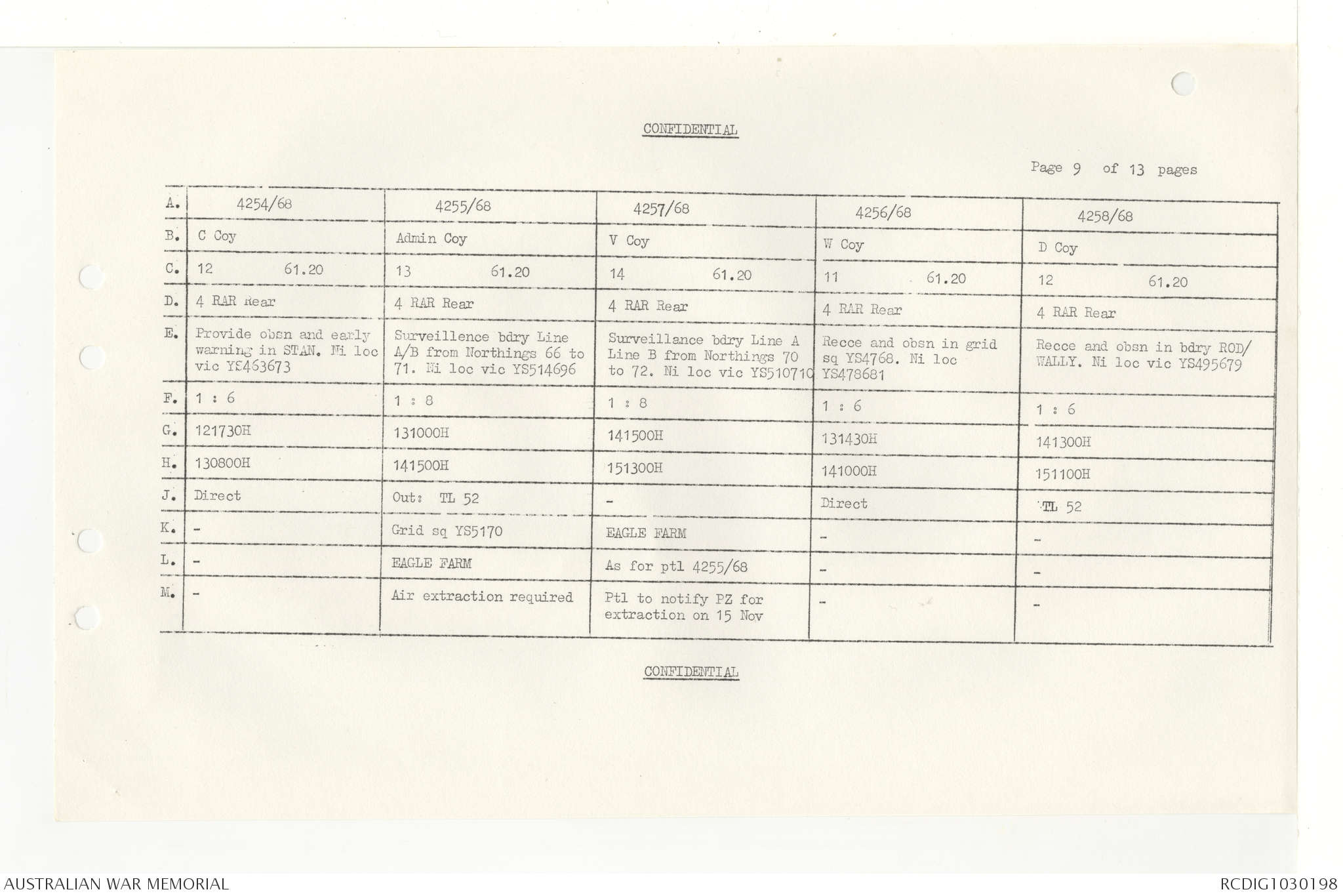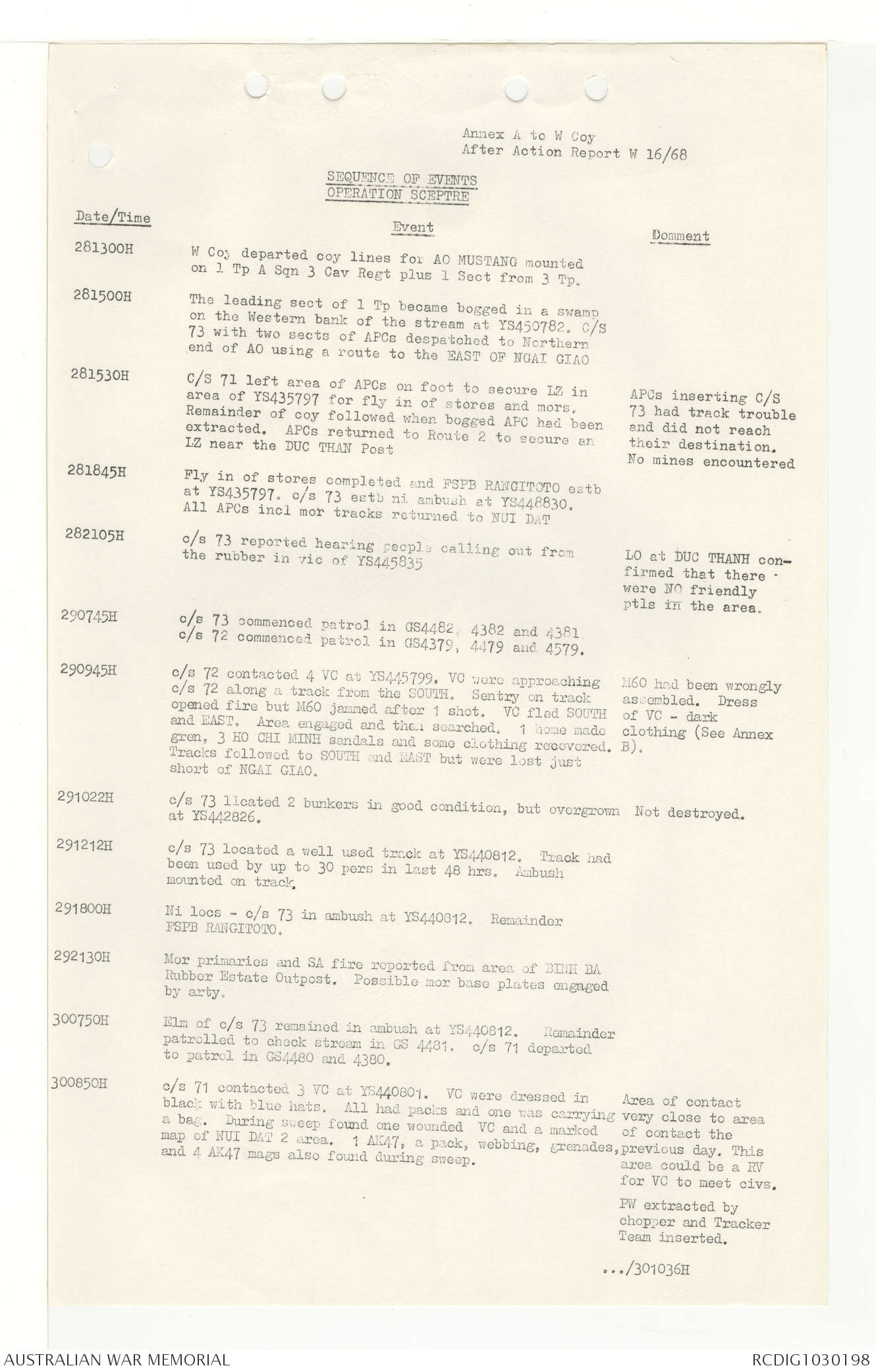 AWM95 7/4/33 - 1-30 November 1968, Narrative, Duty Officer's log, Annexes