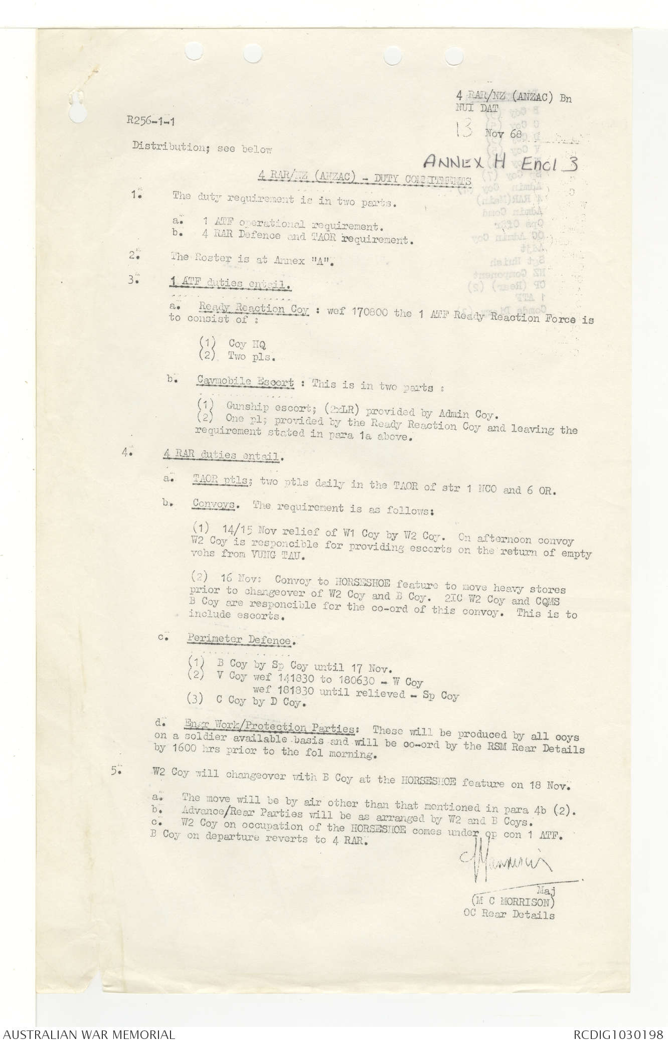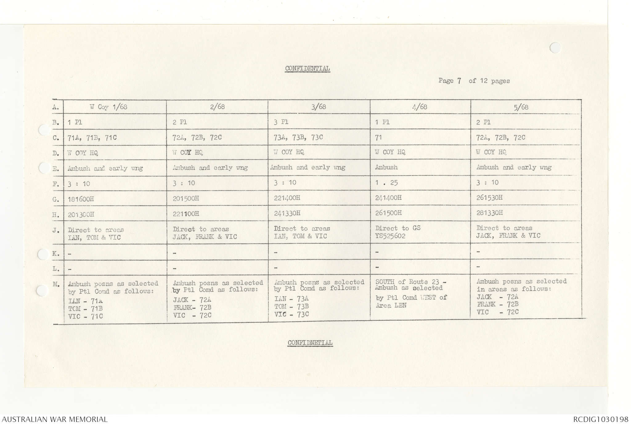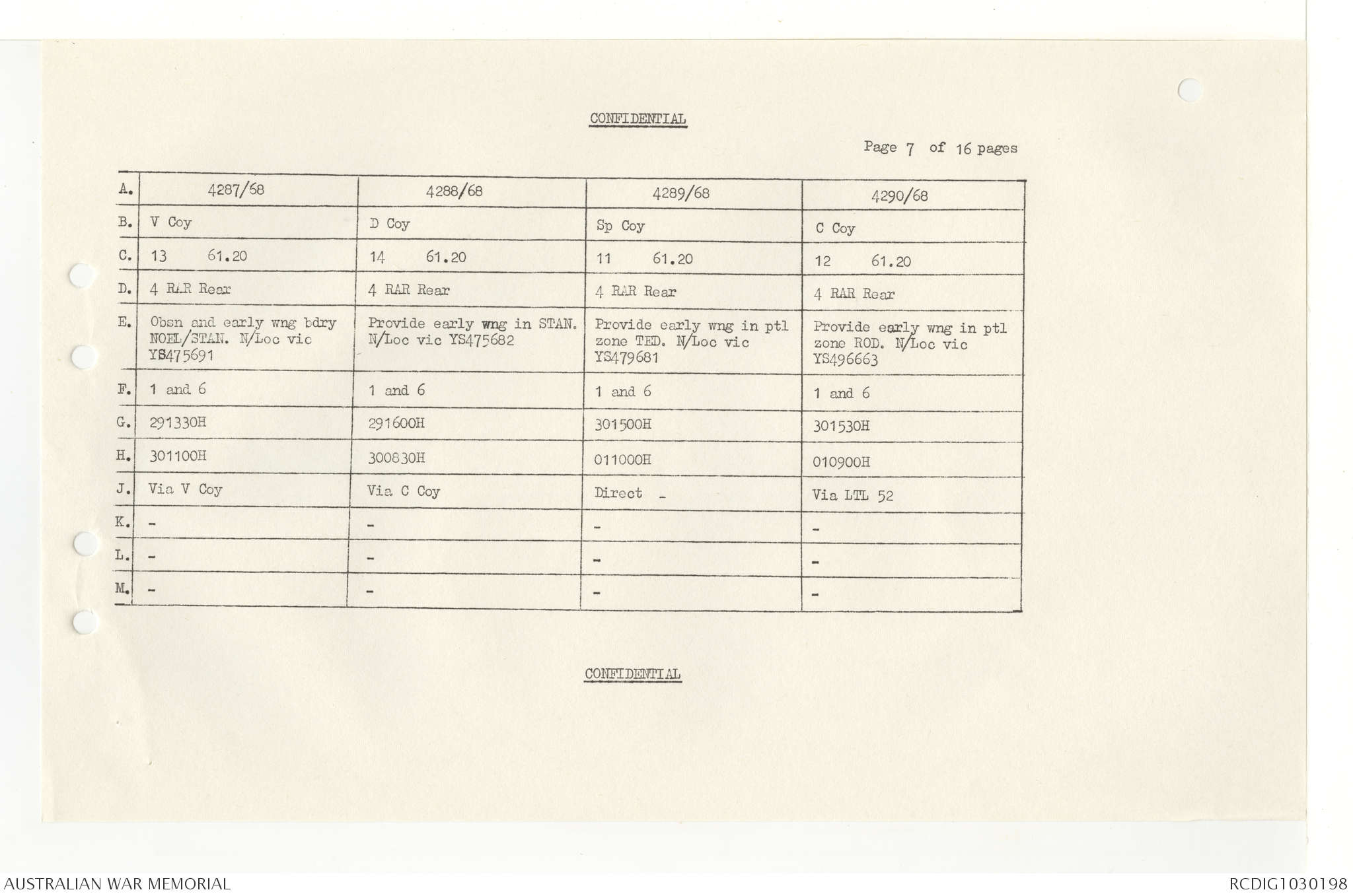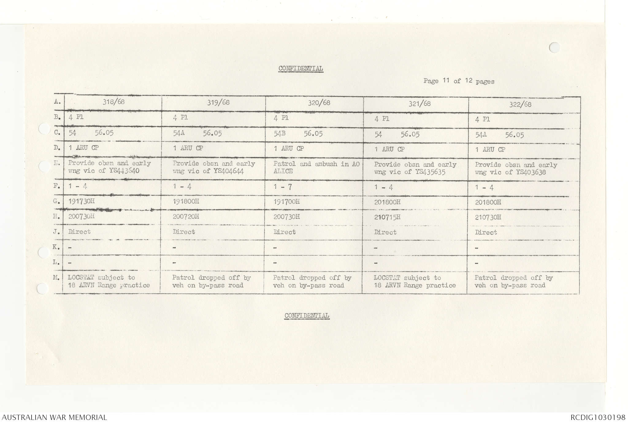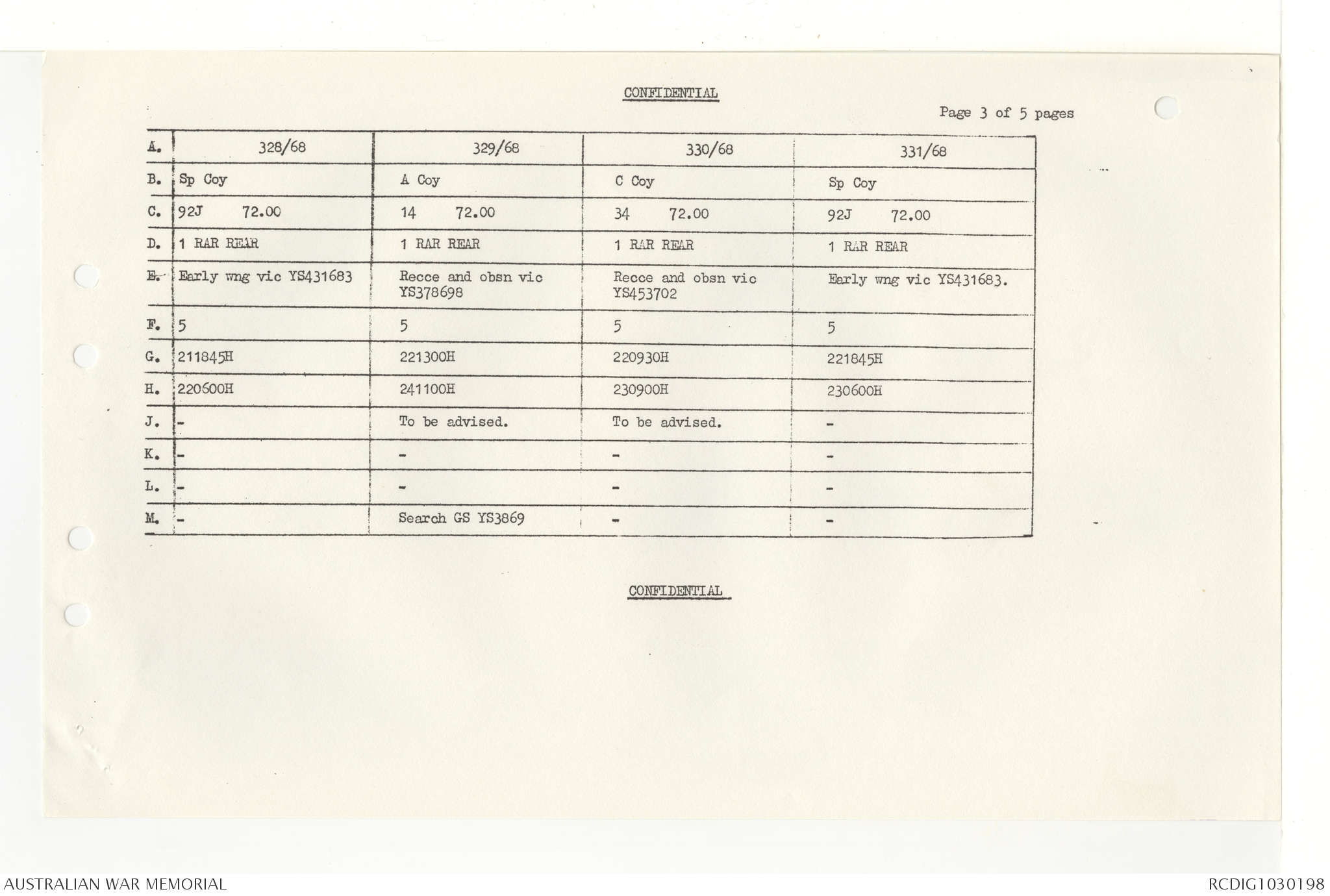 AWM95 7/4/33 - 1-30 November 1968, Narrative, Duty Officer's log, Annexes
