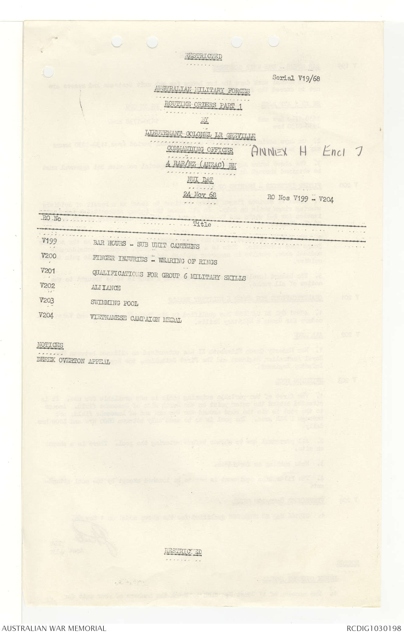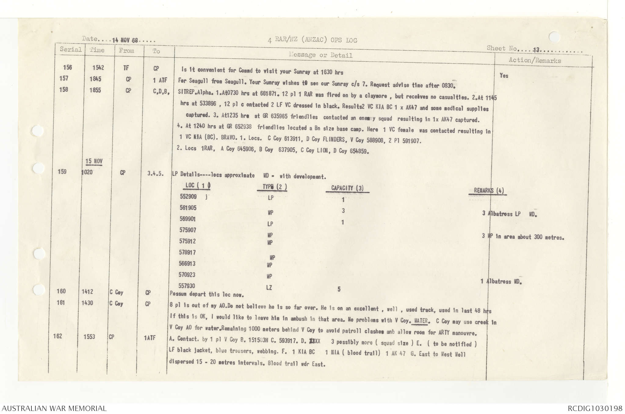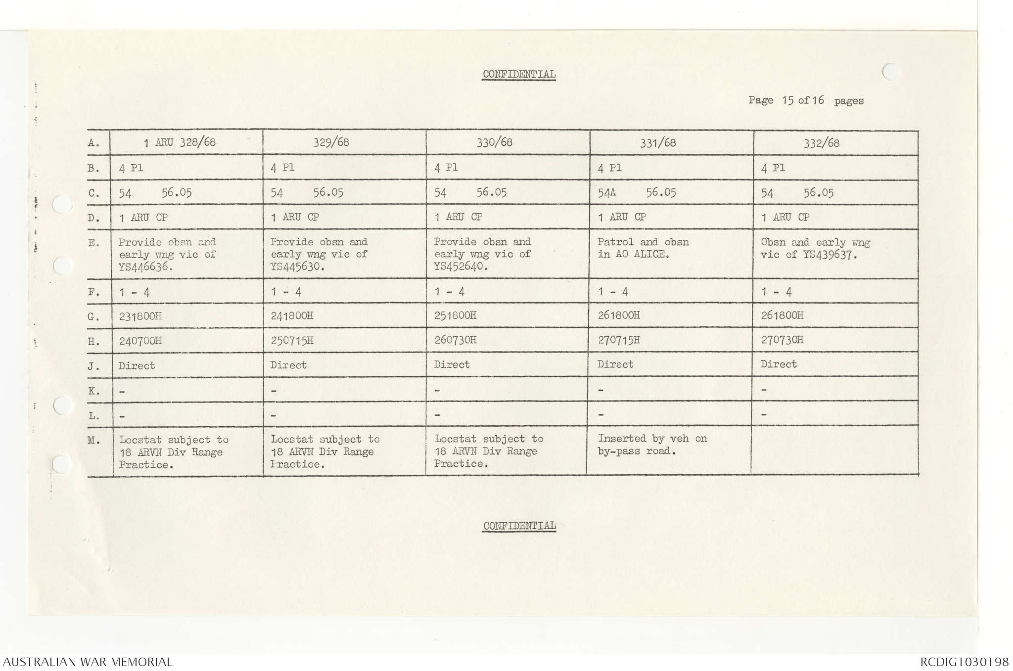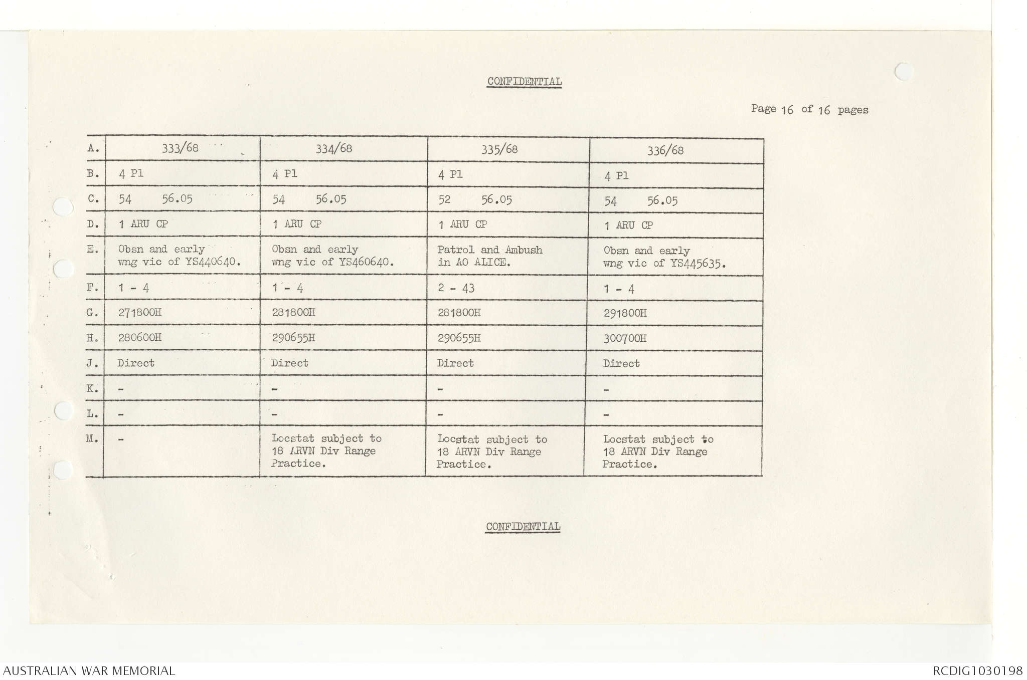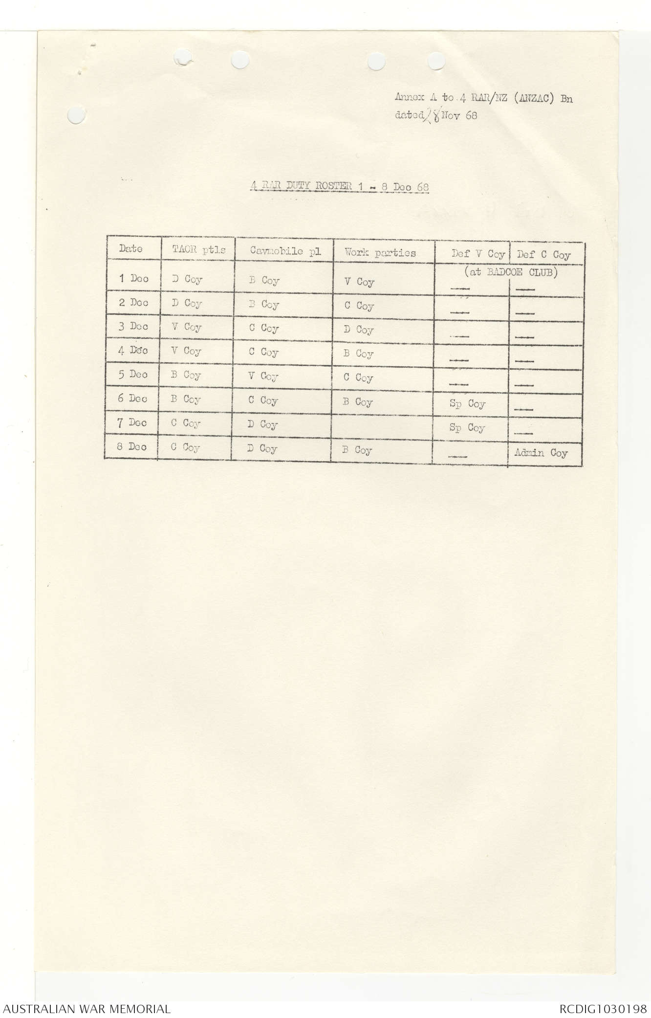AWM95 7/4/33 - 1-30 November 1968, Narrative, Duty Officer's log, Annexes