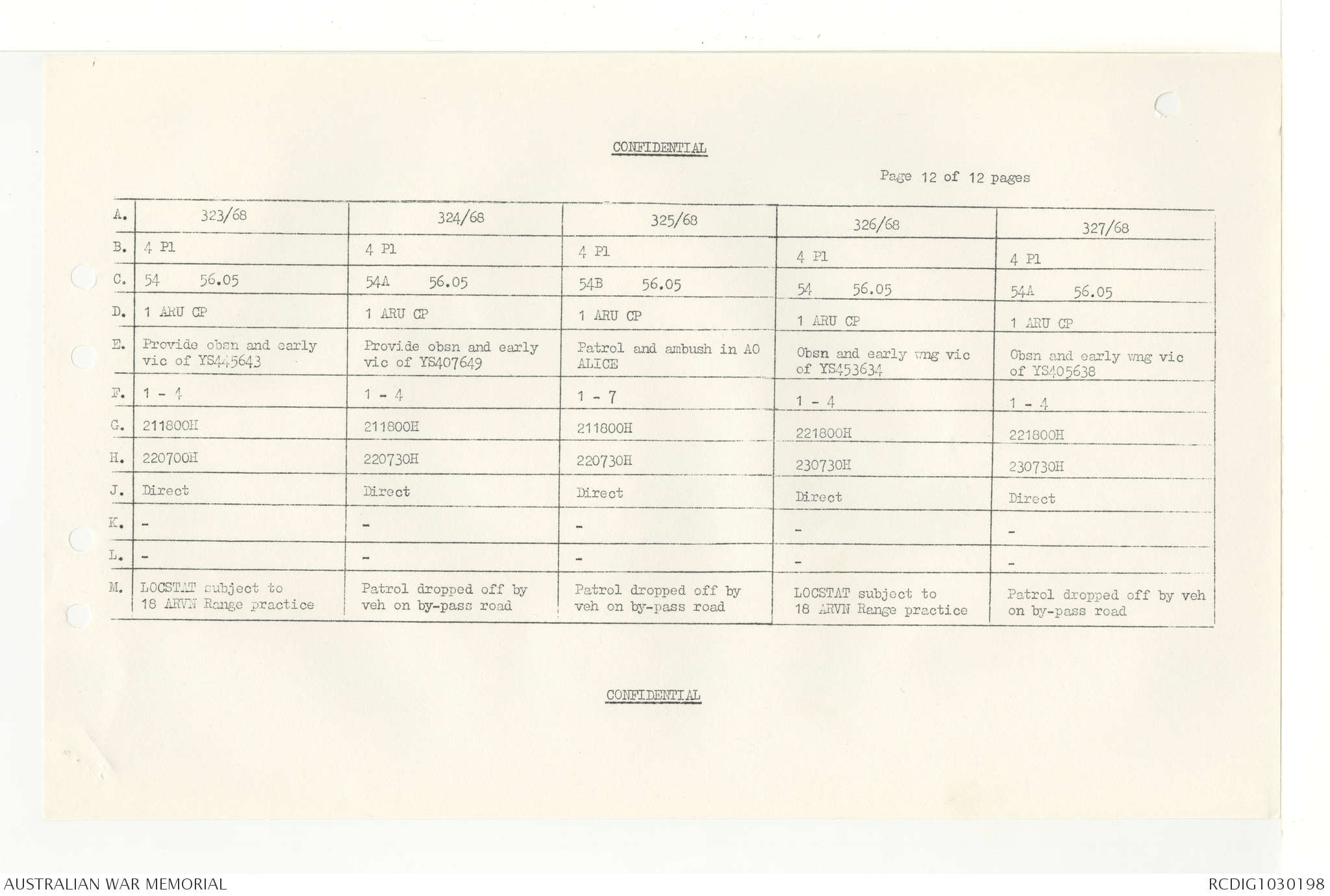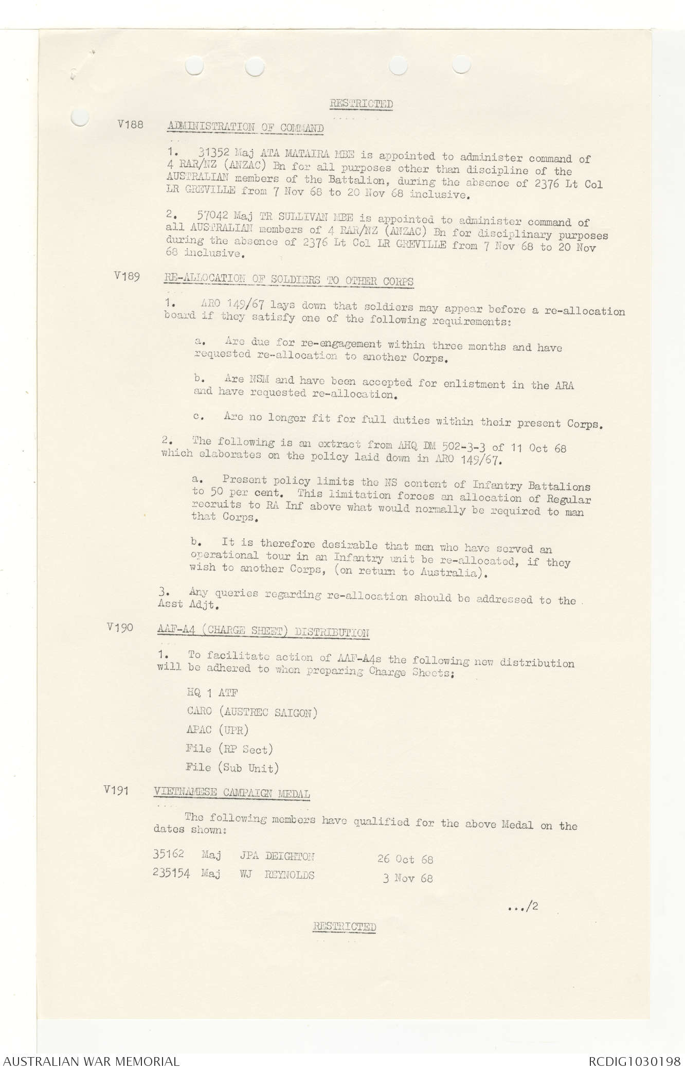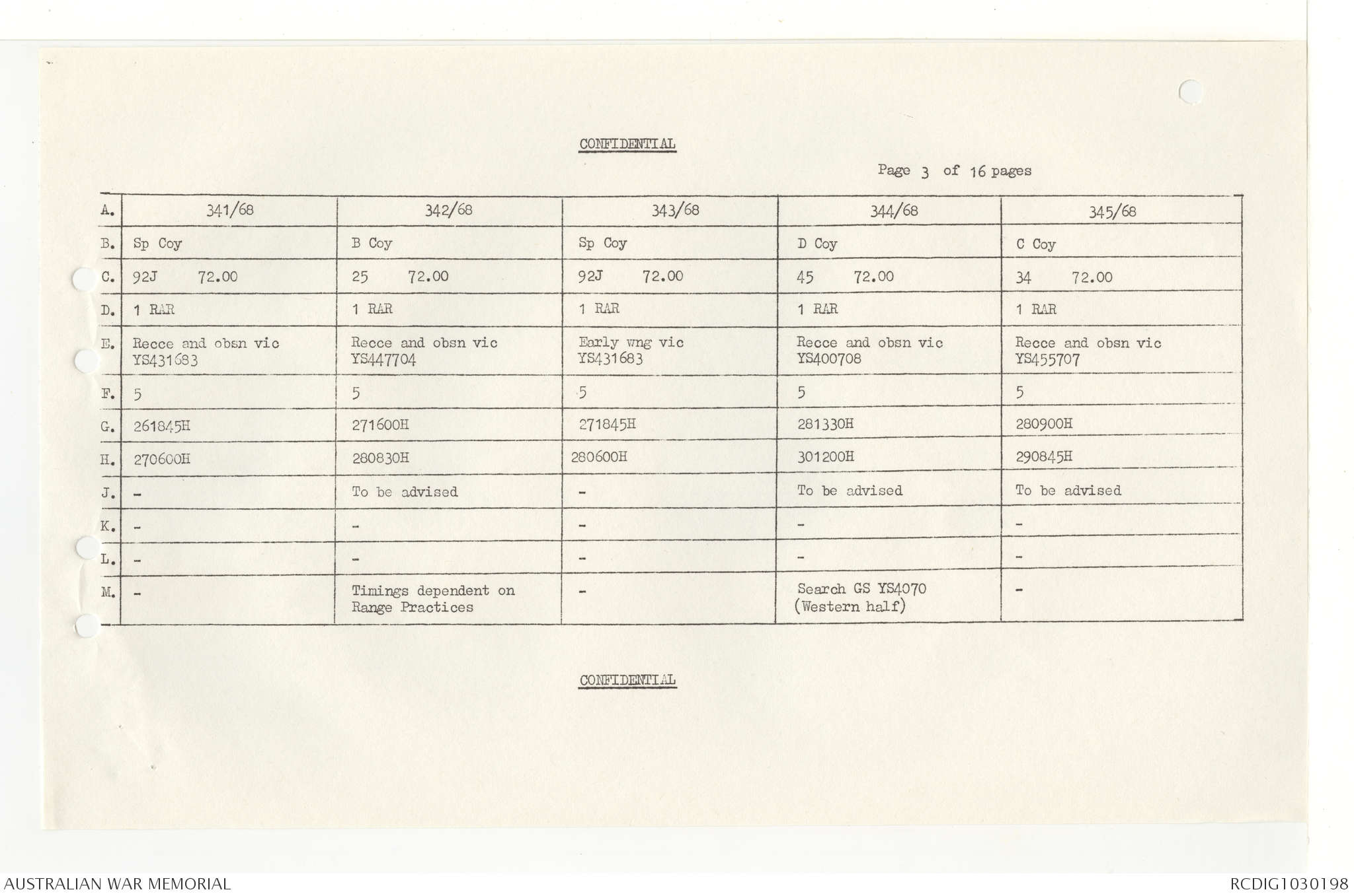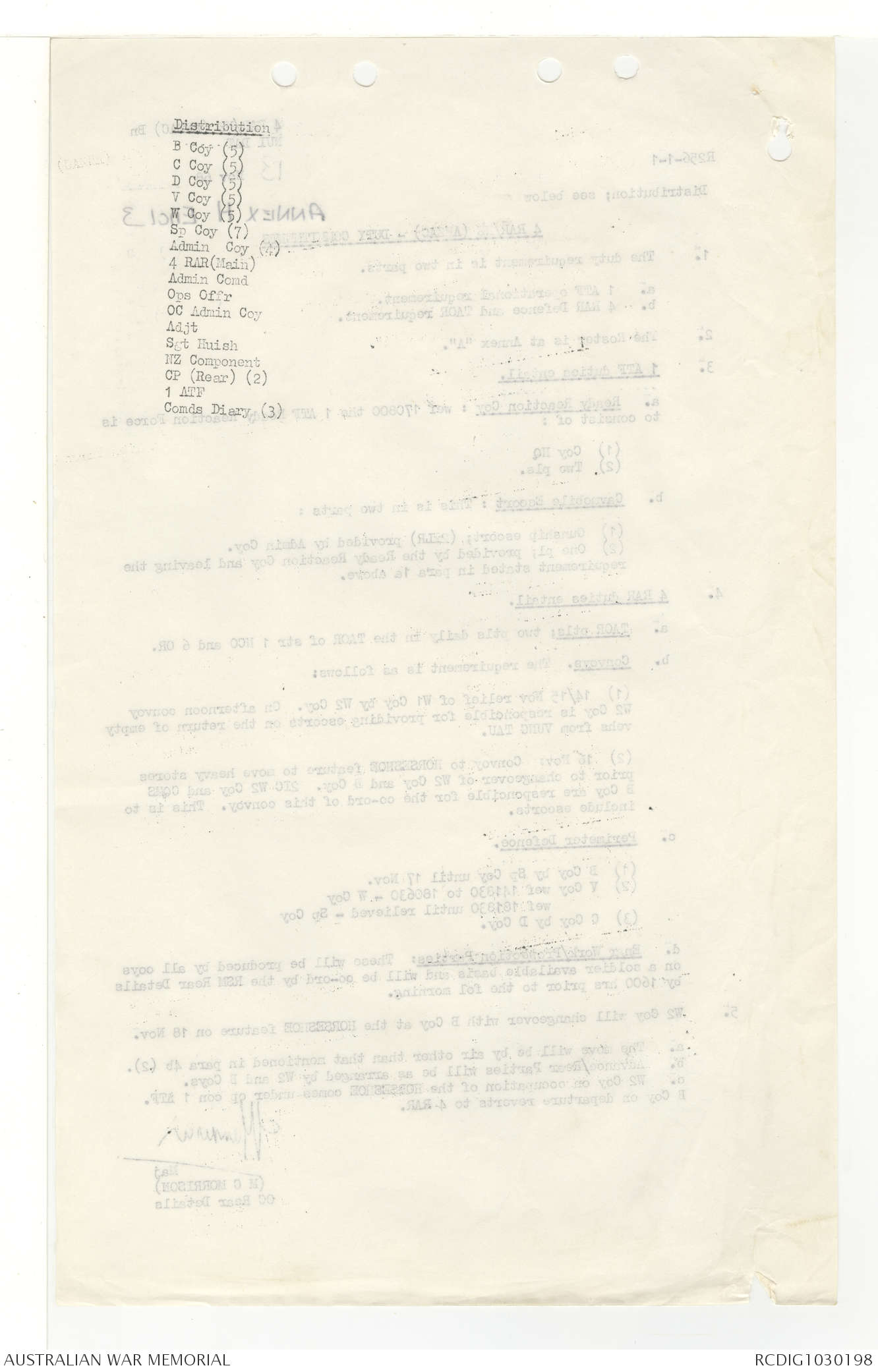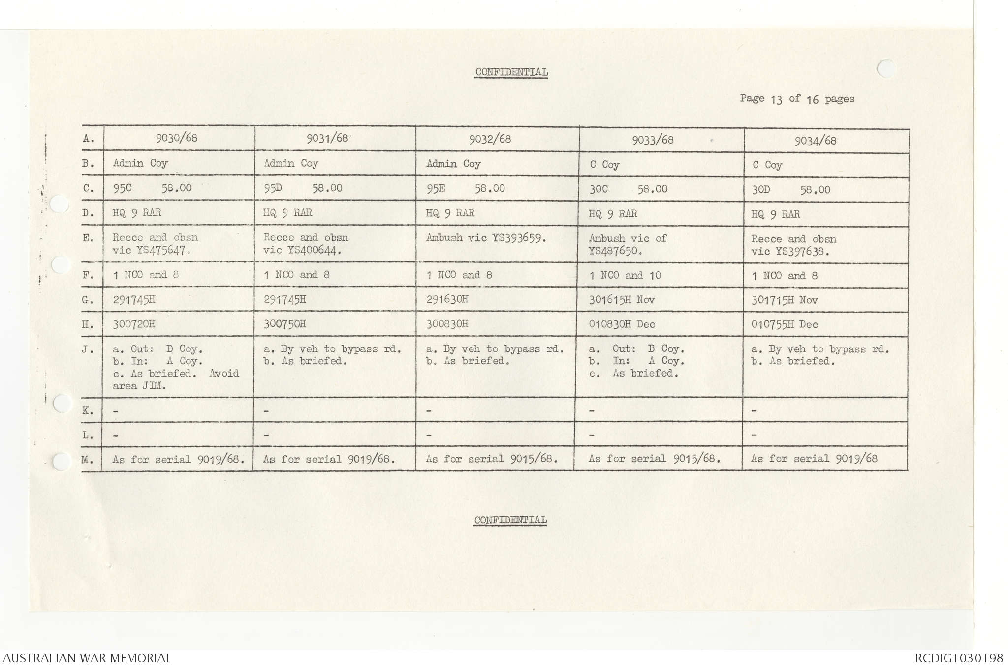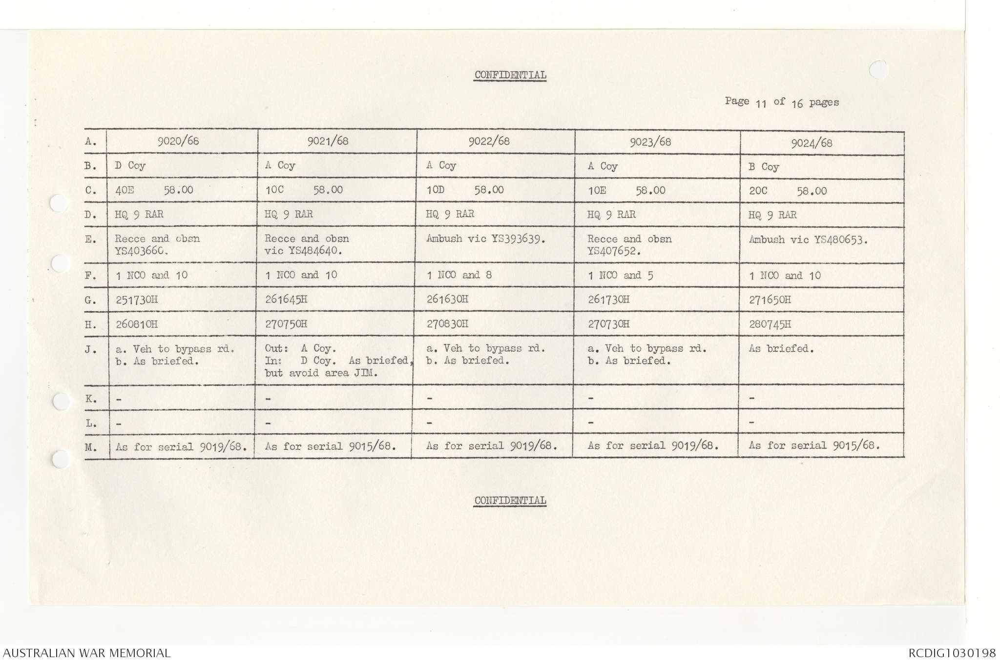 AWM95 7/4/33 - 1-30 November 1968, Narrative, Duty Officer's log, Annexes