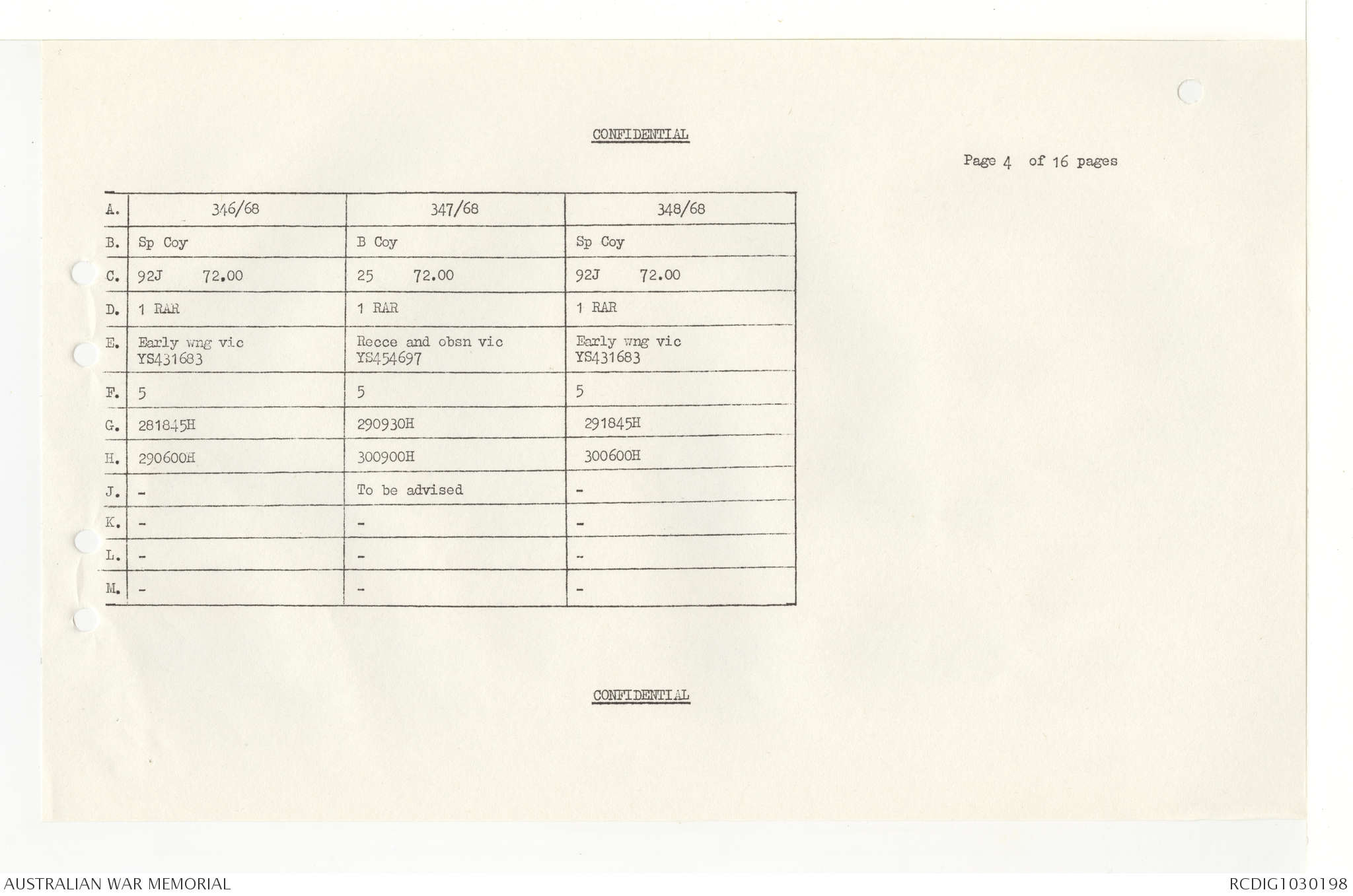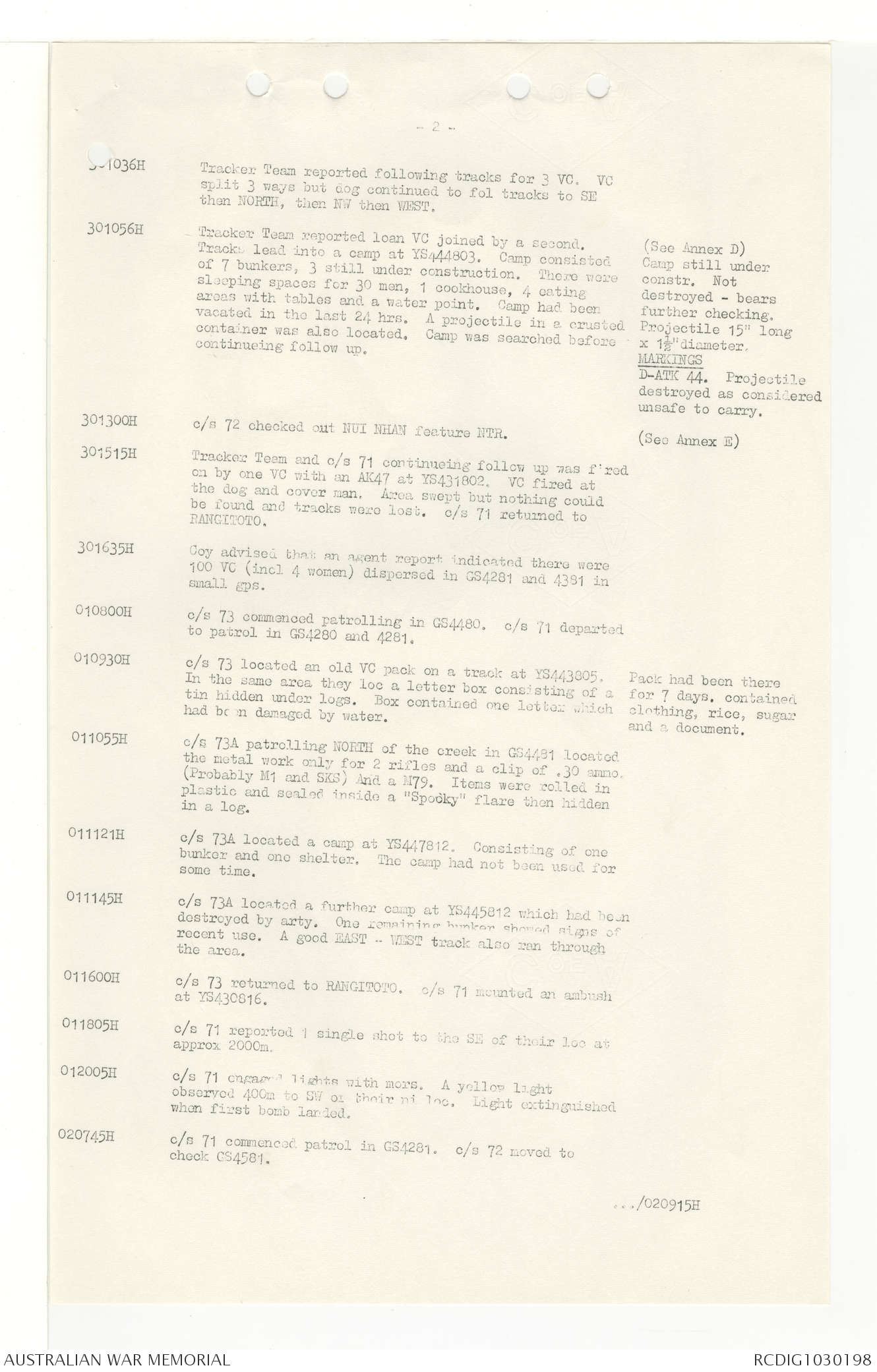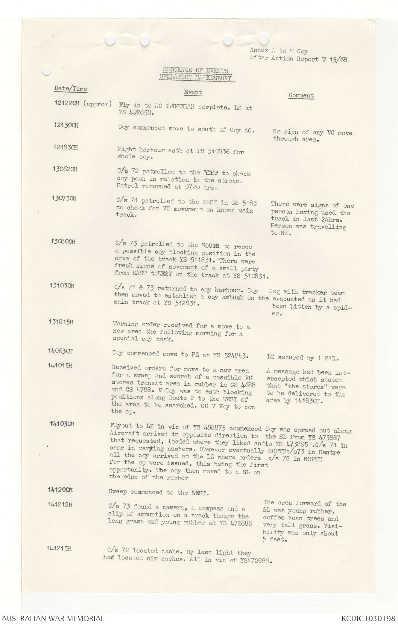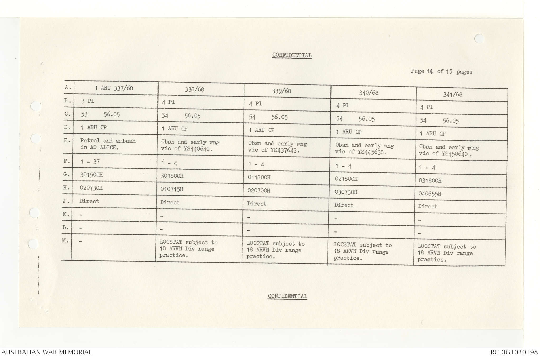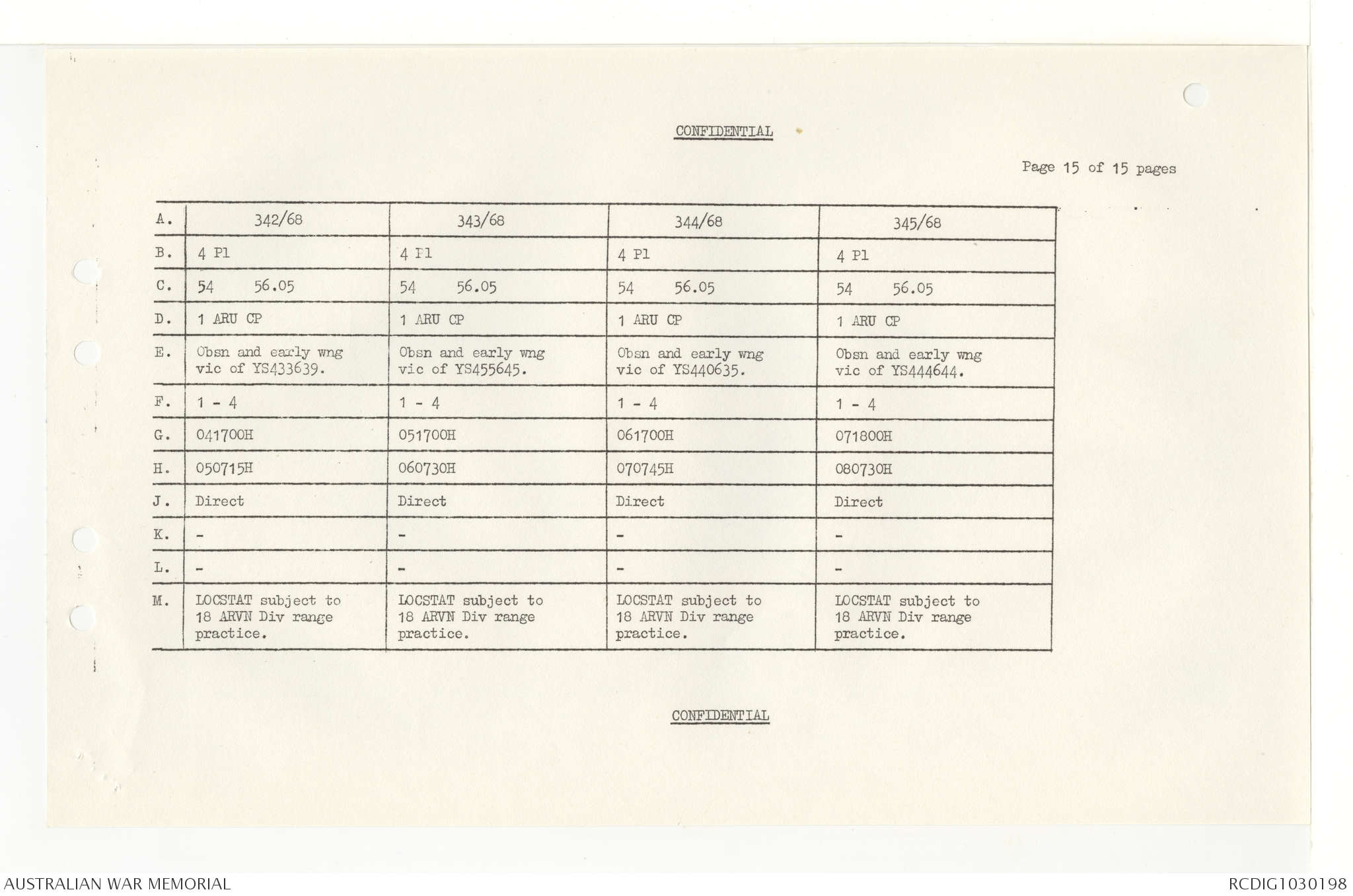 AWM95 7/4/33 - 1-30 November 1968, Narrative, Duty Officer's log, Annexes