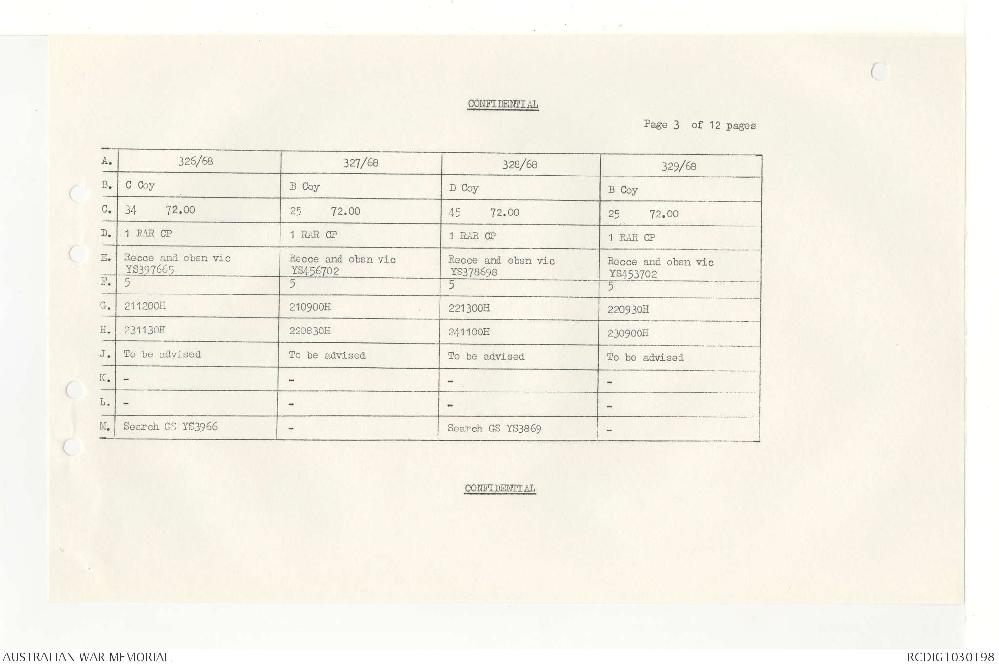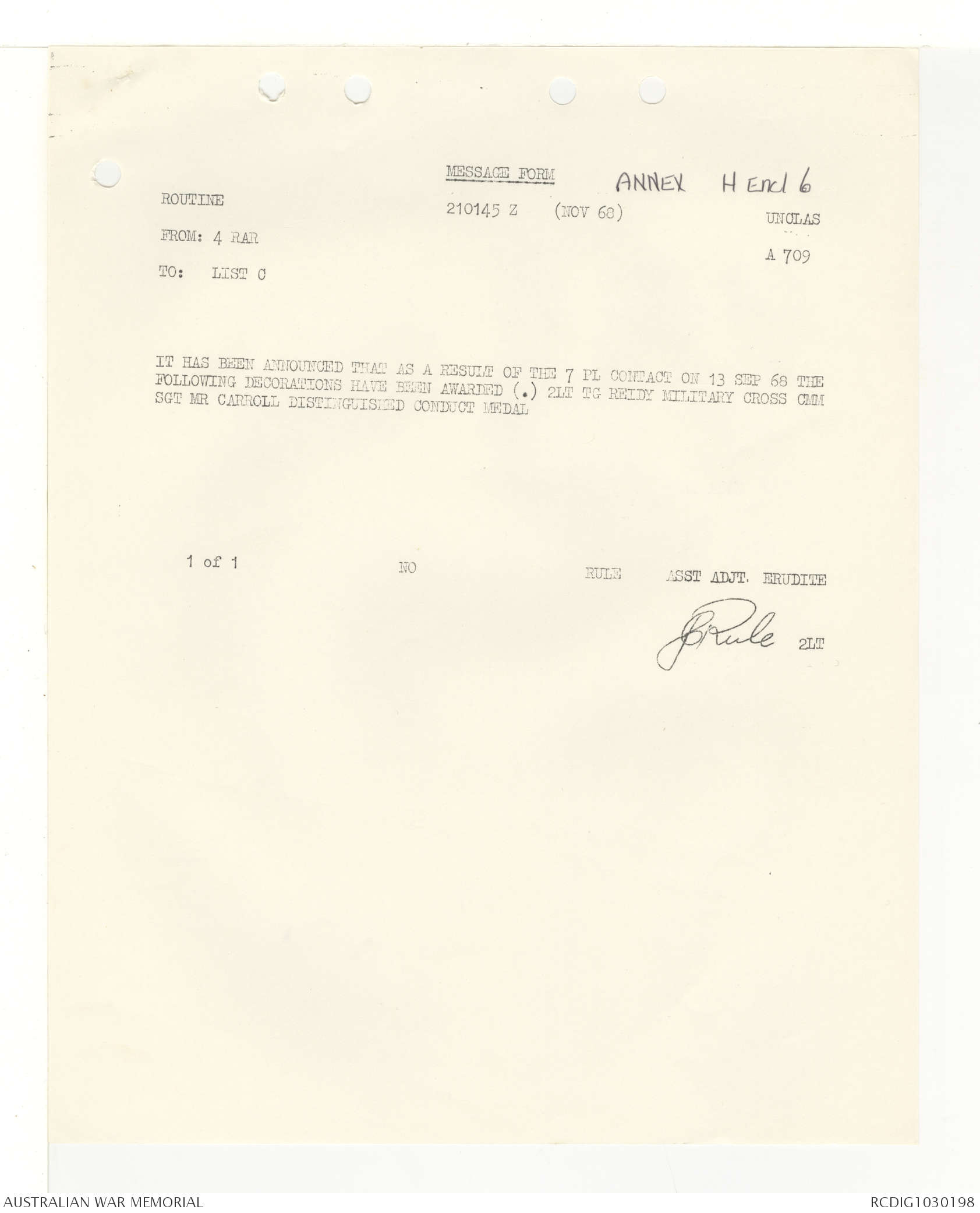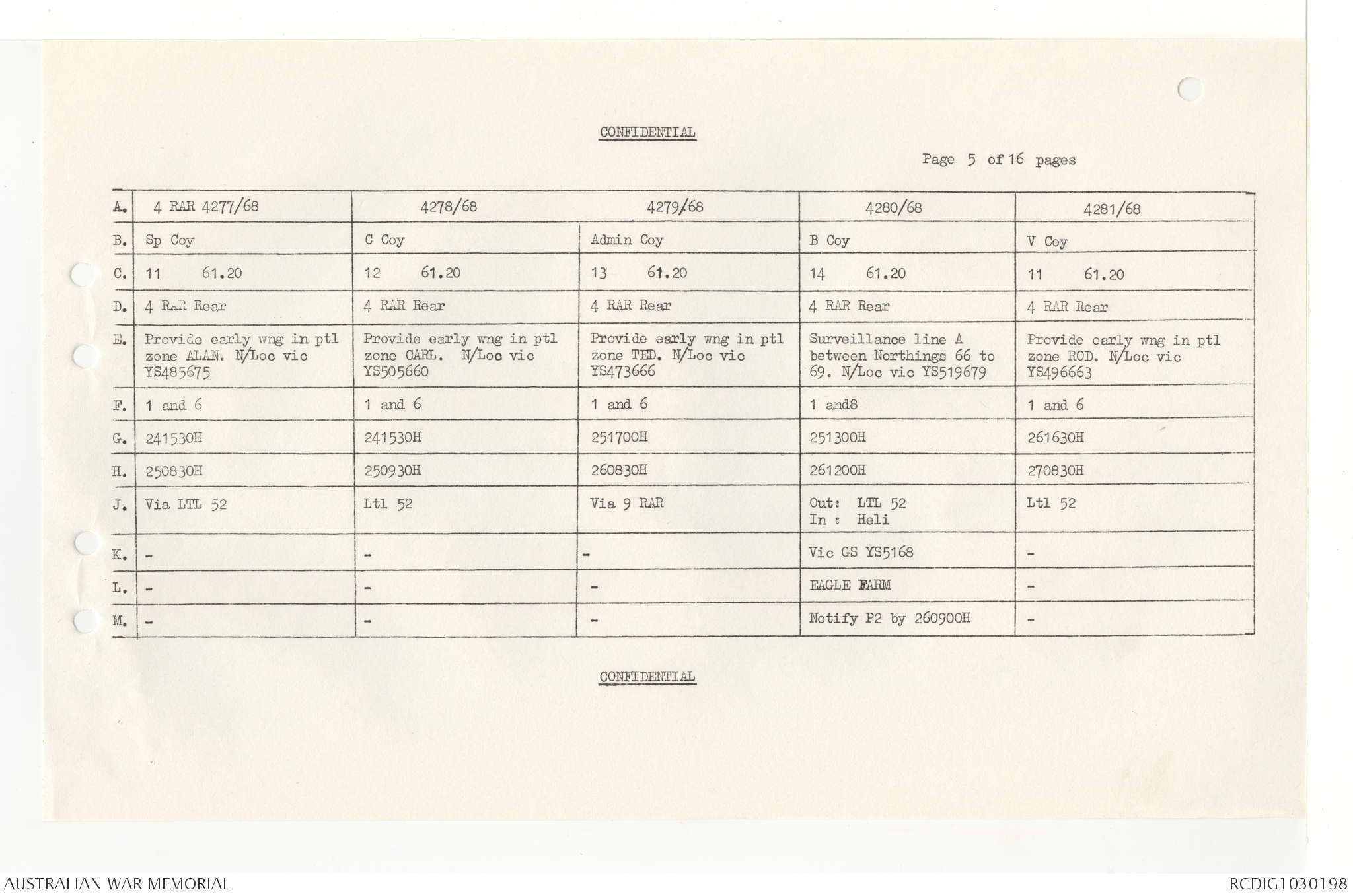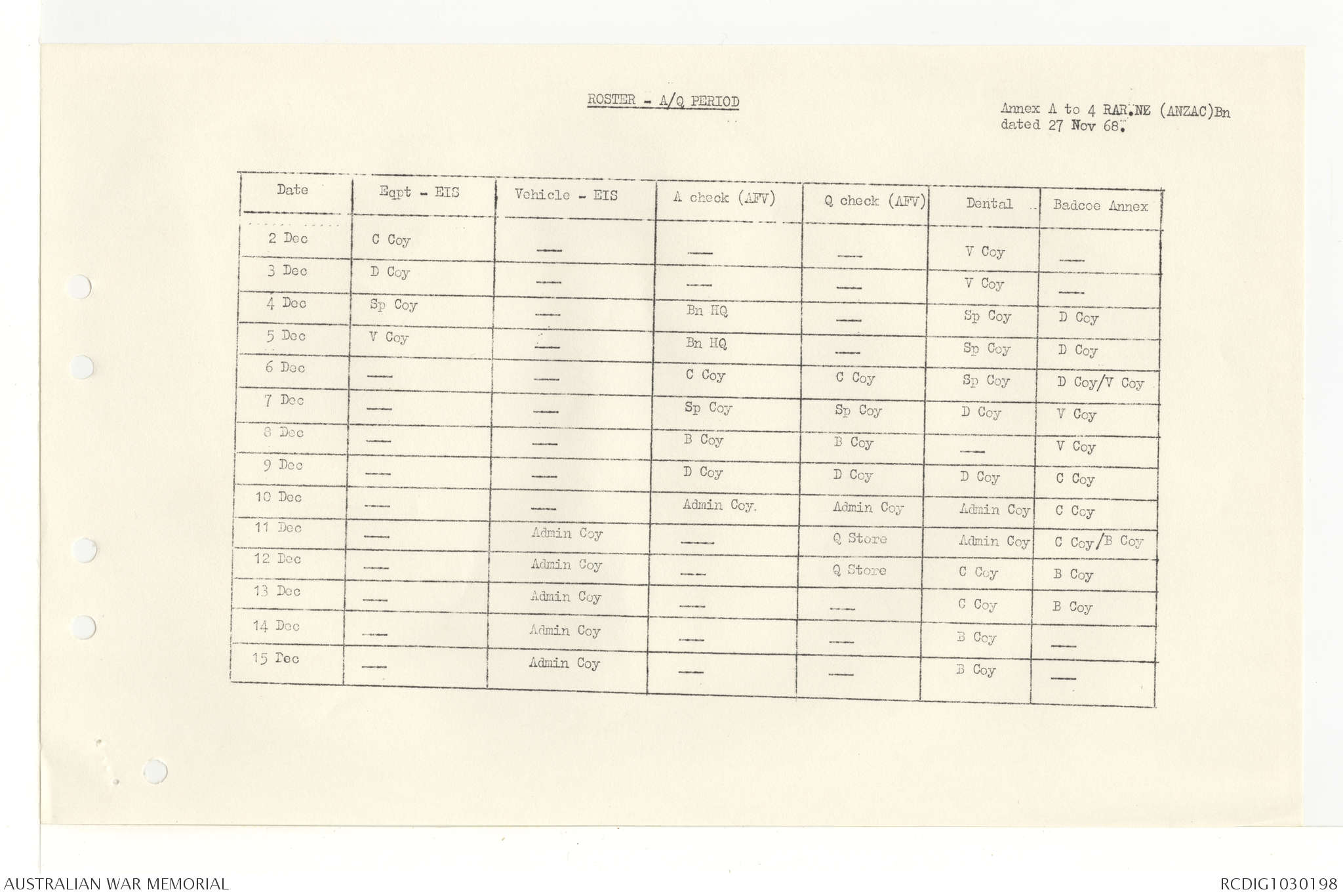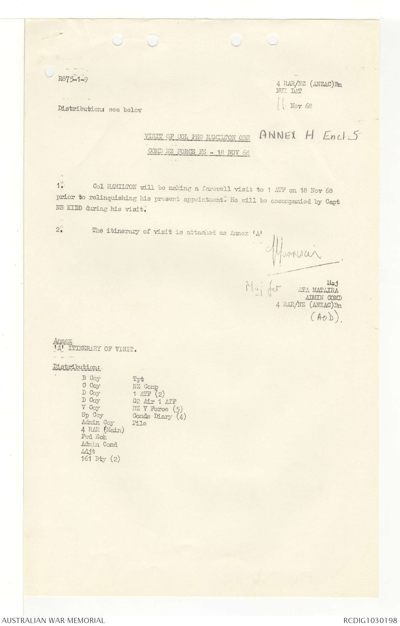 AWM95 7/4/33 - 1-30 November 1968, Narrative, Duty Officer's log, Annexes