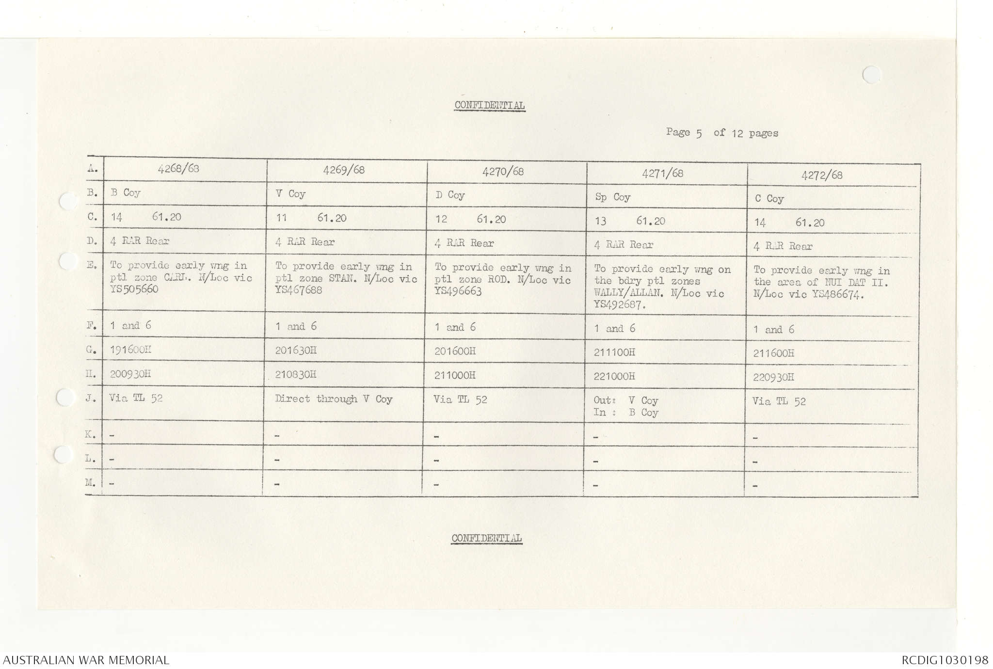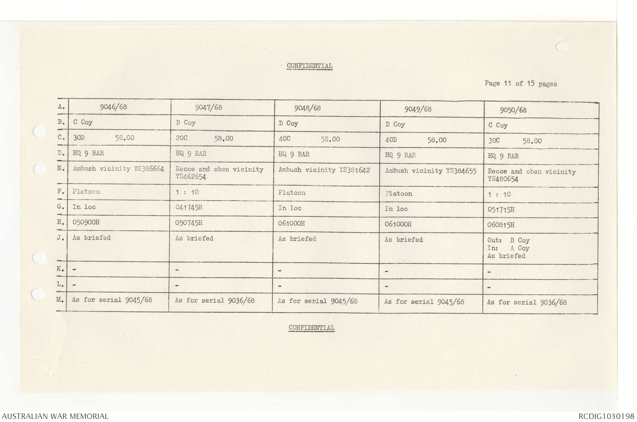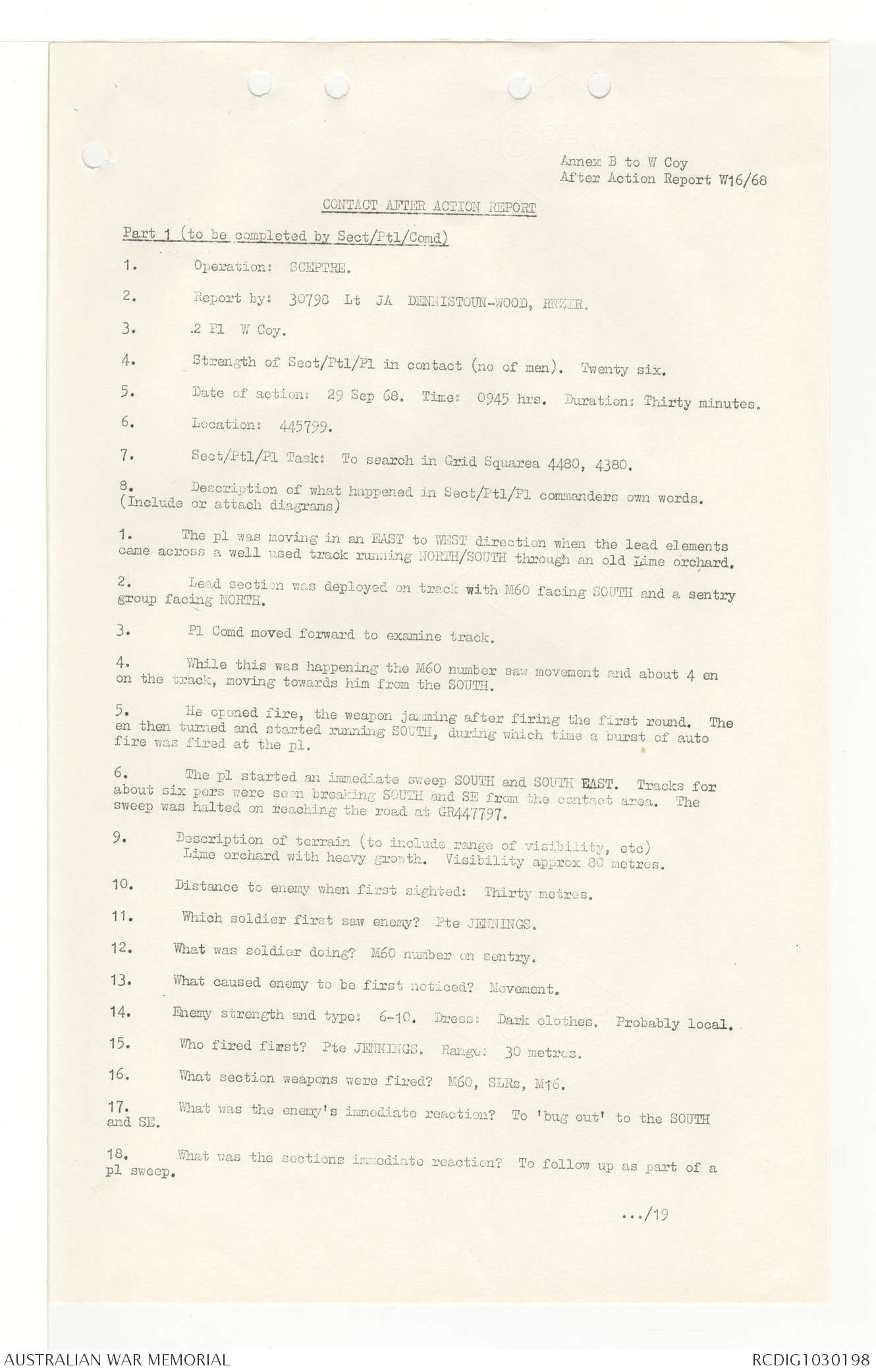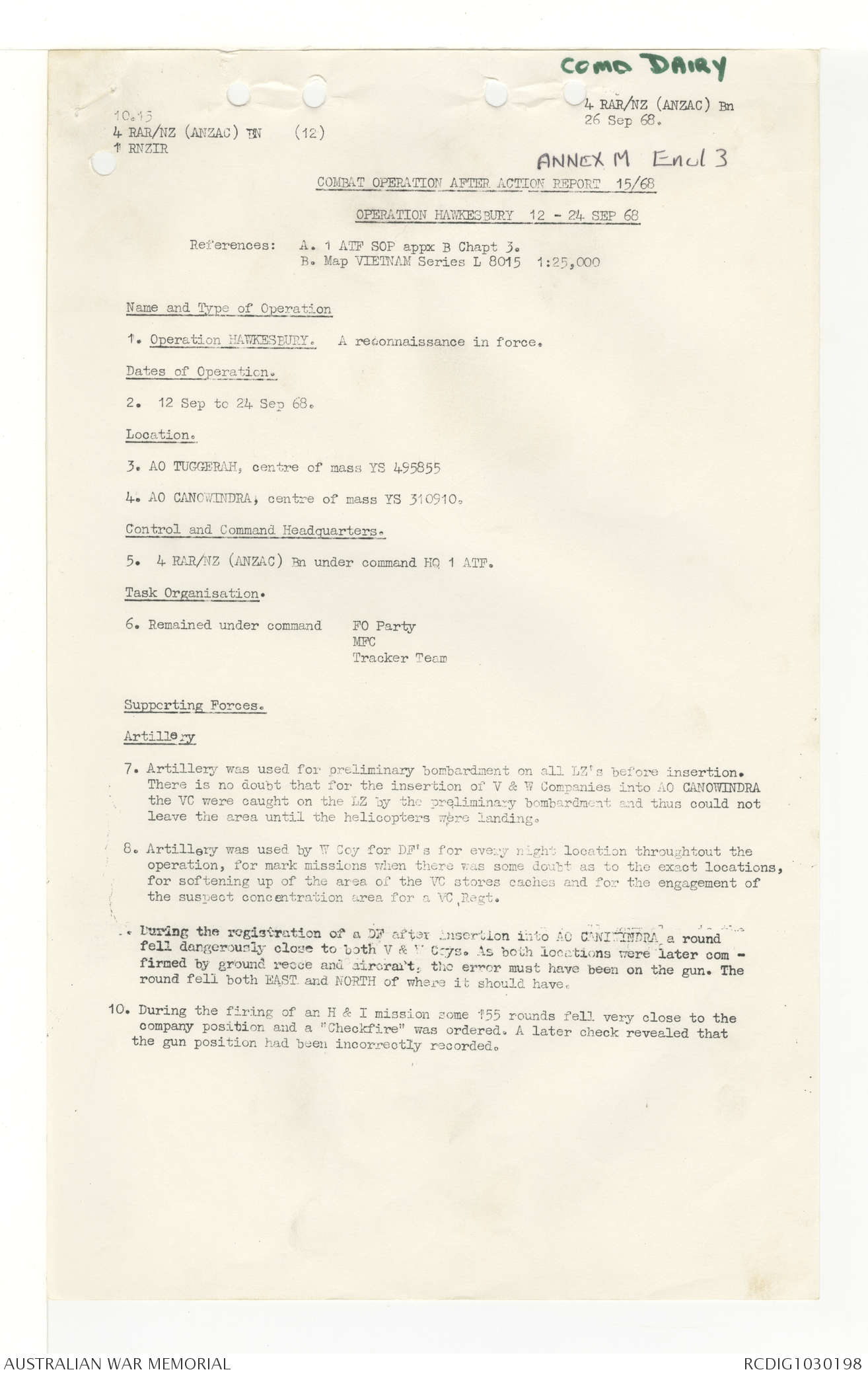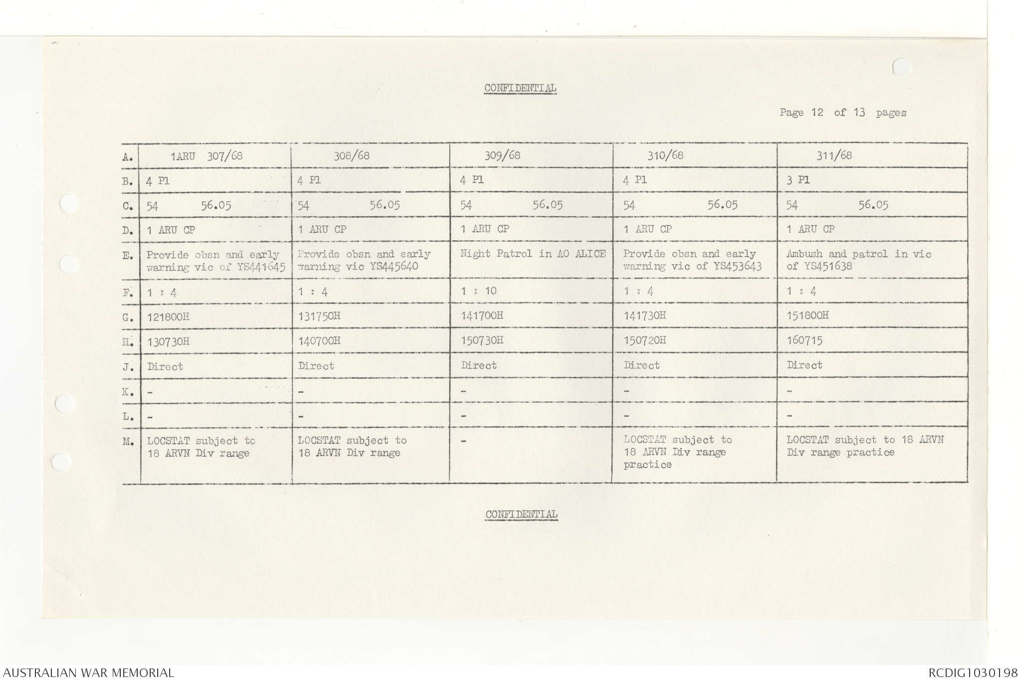 AWM95 7/4/33 - 1-30 November 1968, Narrative, Duty Officer's log, Annexes