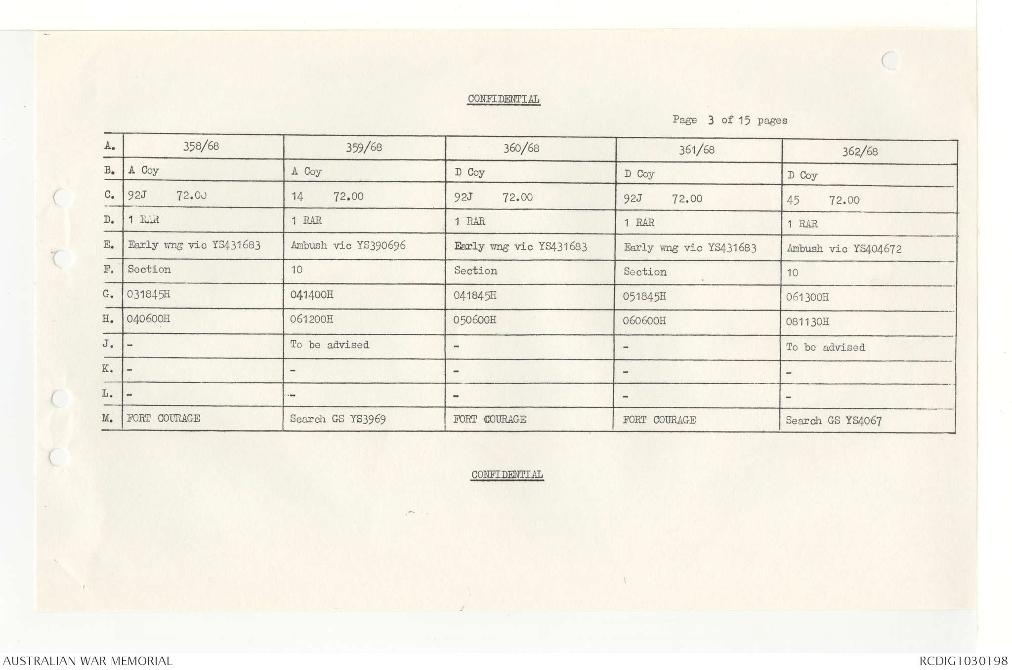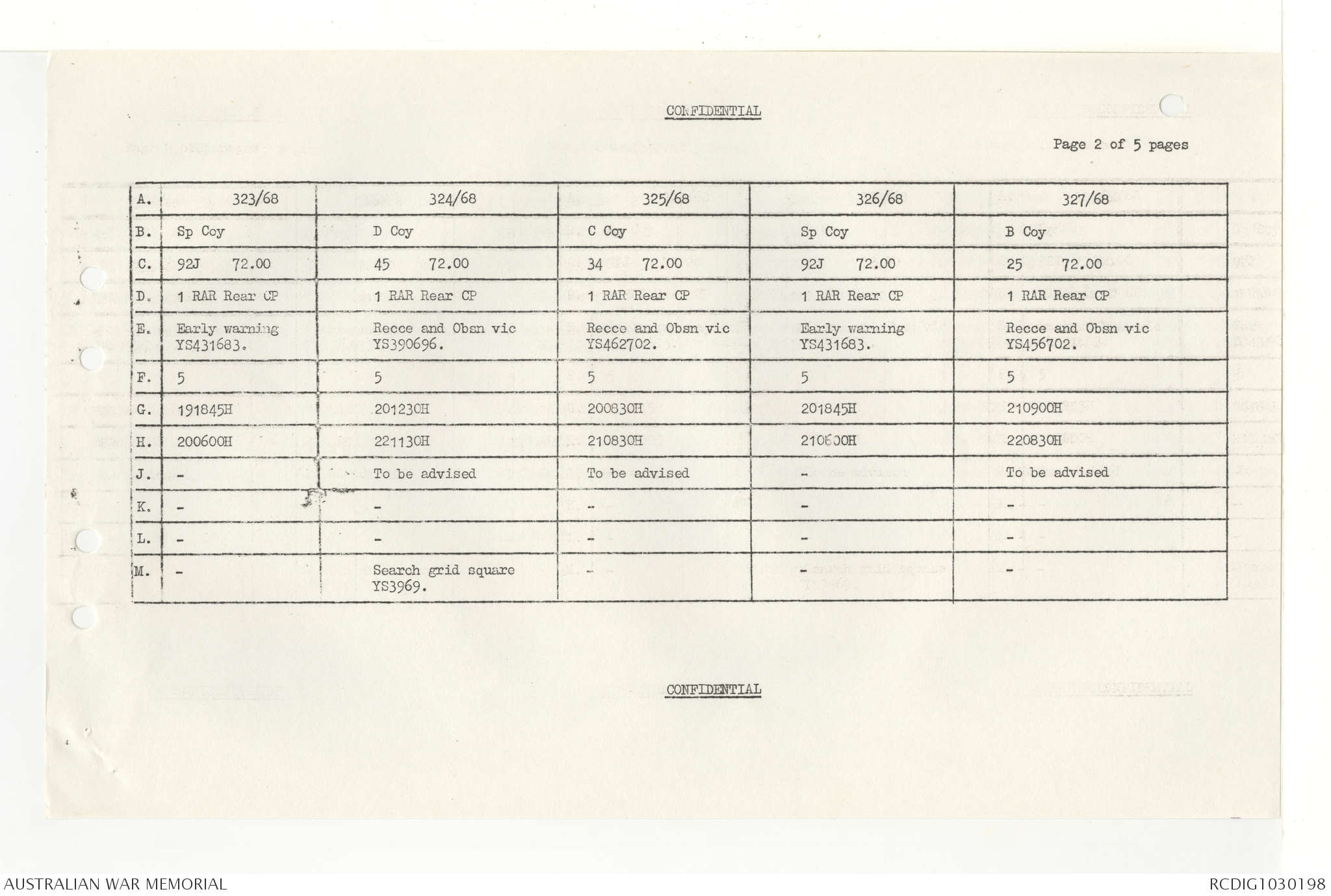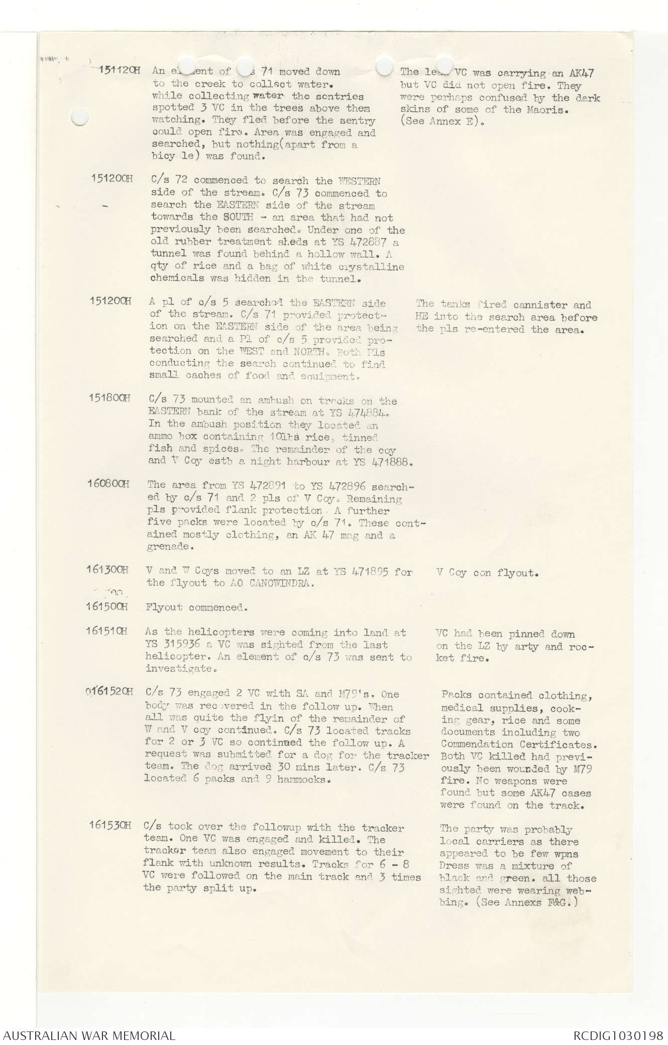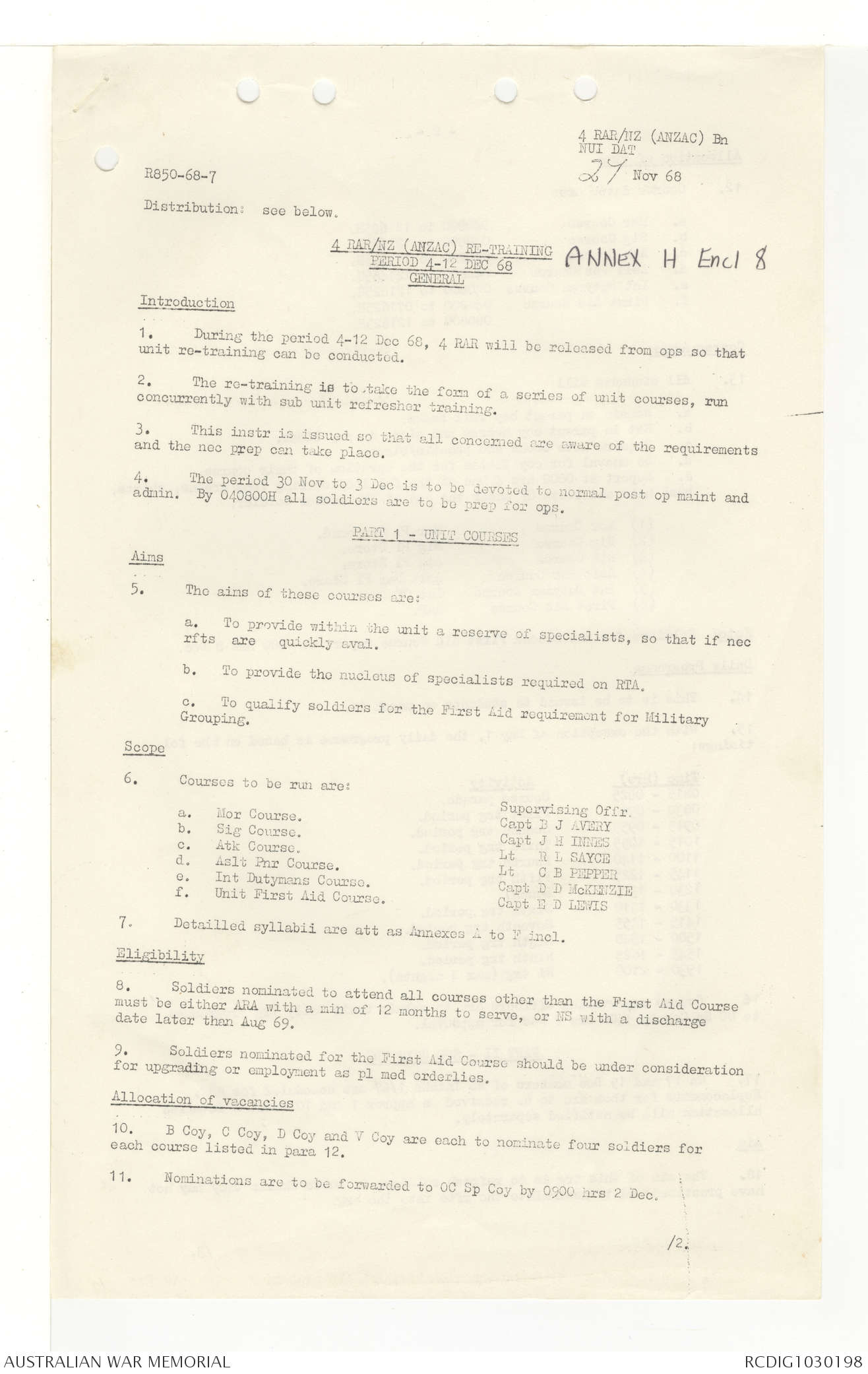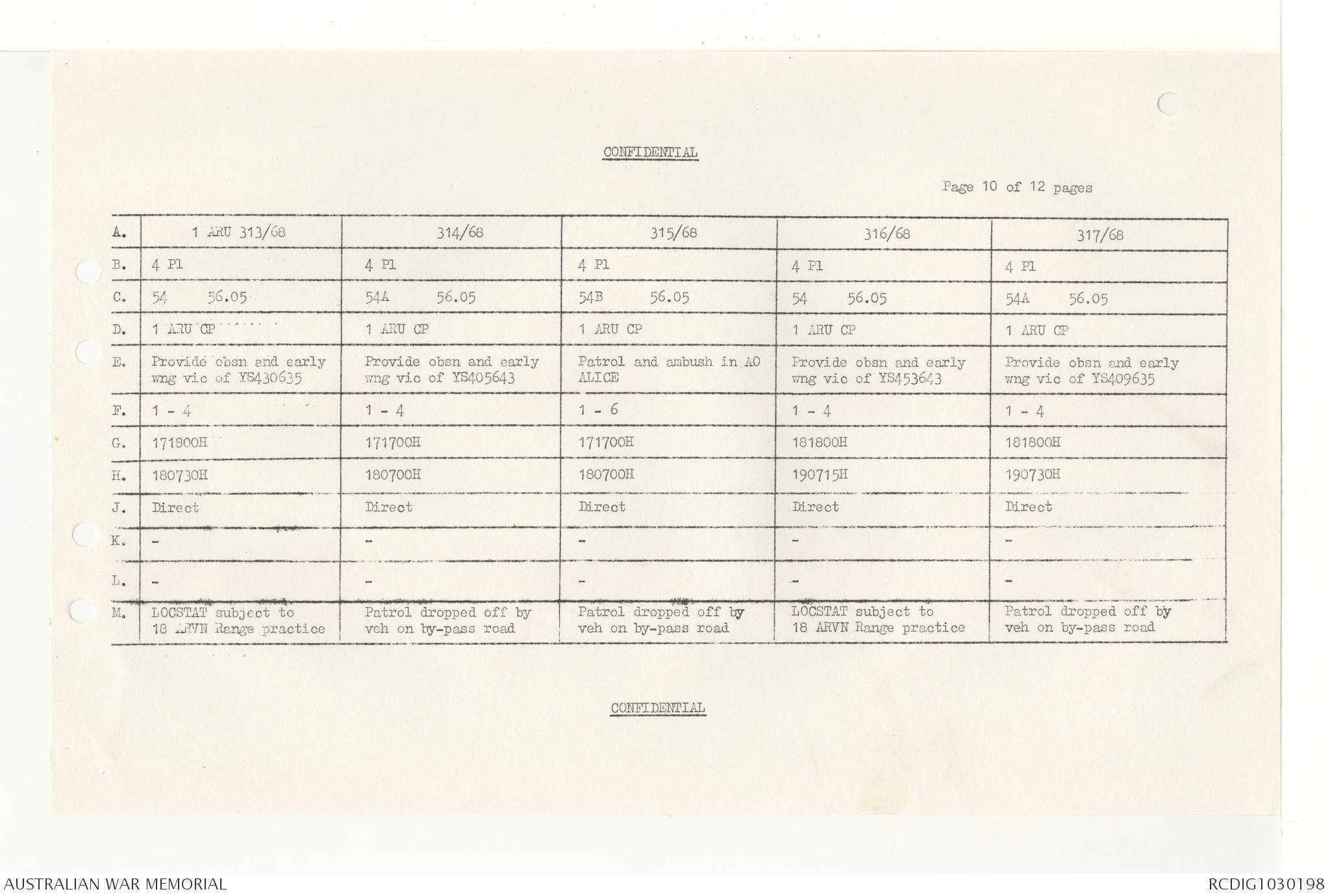 AWM95 7/4/33 - 1-30 November 1968, Narrative, Duty Officer's log, Annexes