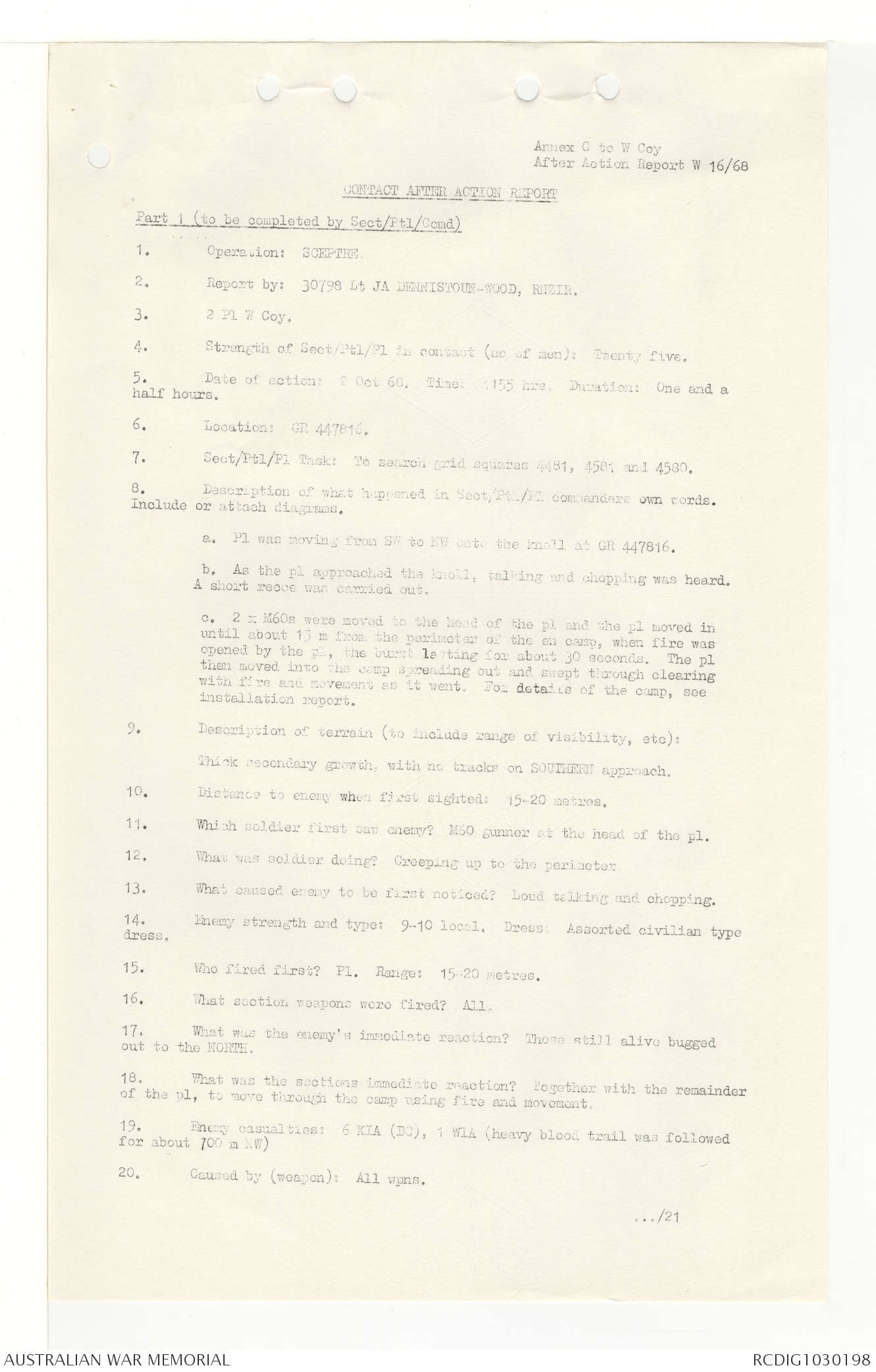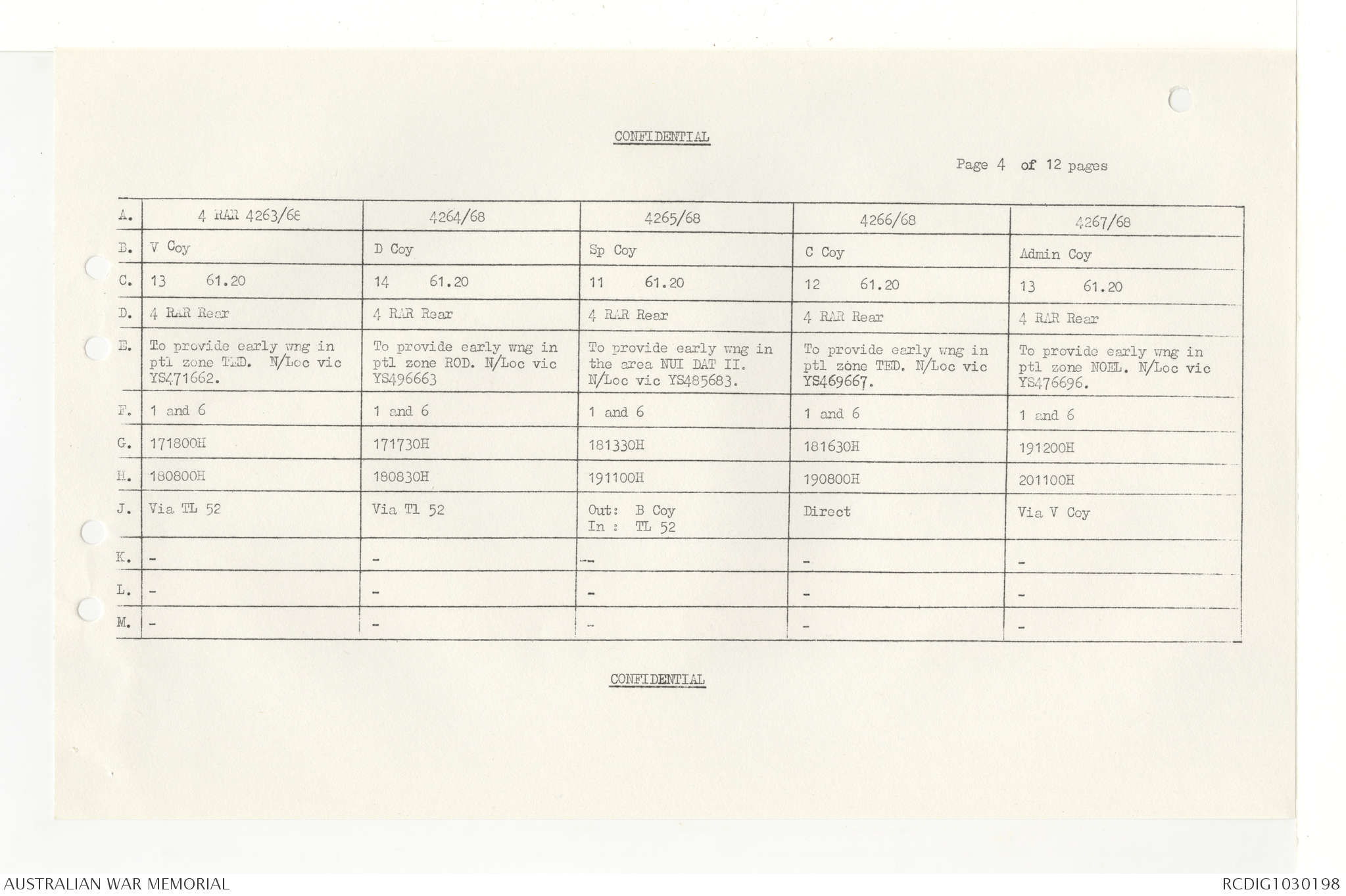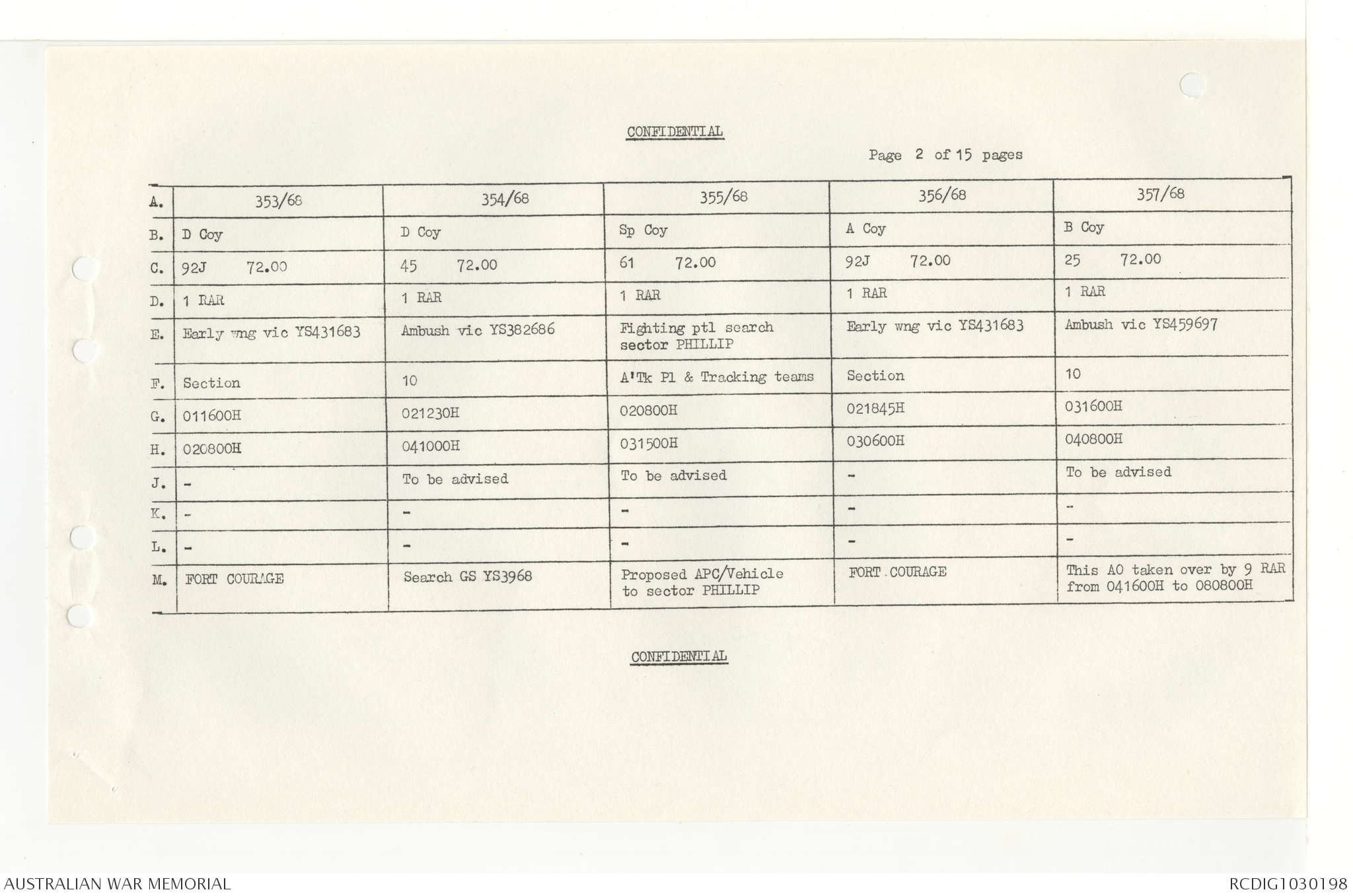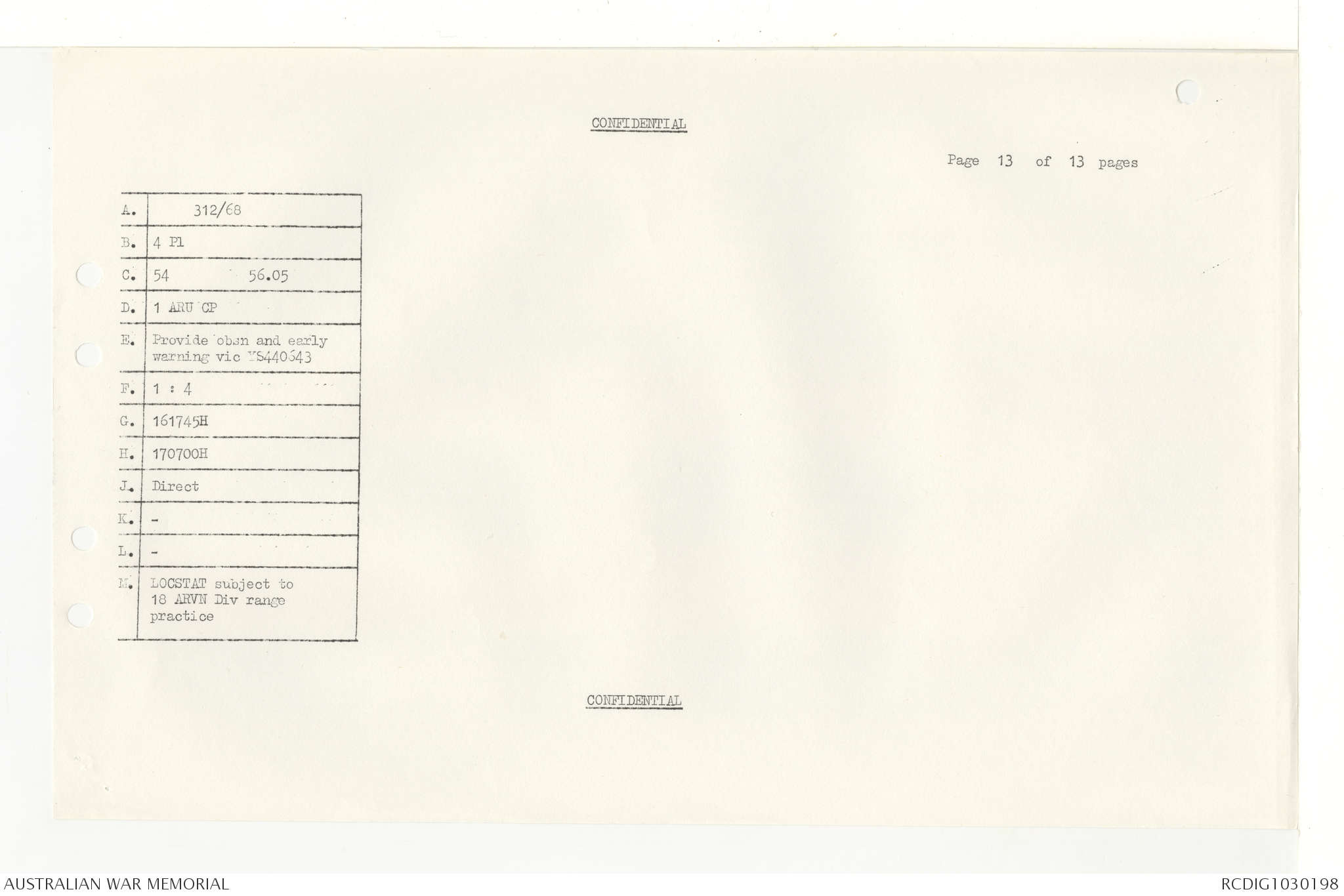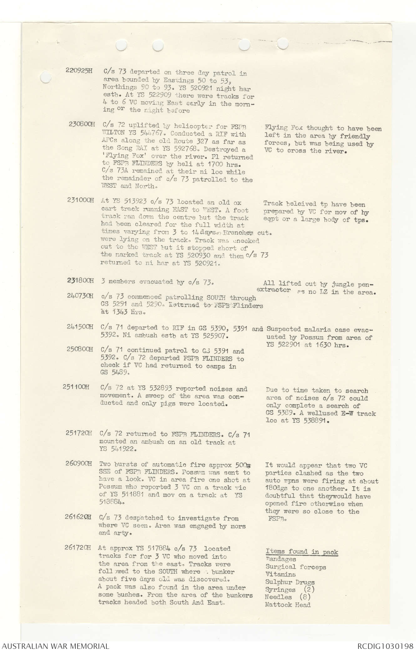 AWM95 7/4/33 - 1-30 November 1968, Narrative, Duty Officer's log, Annexes