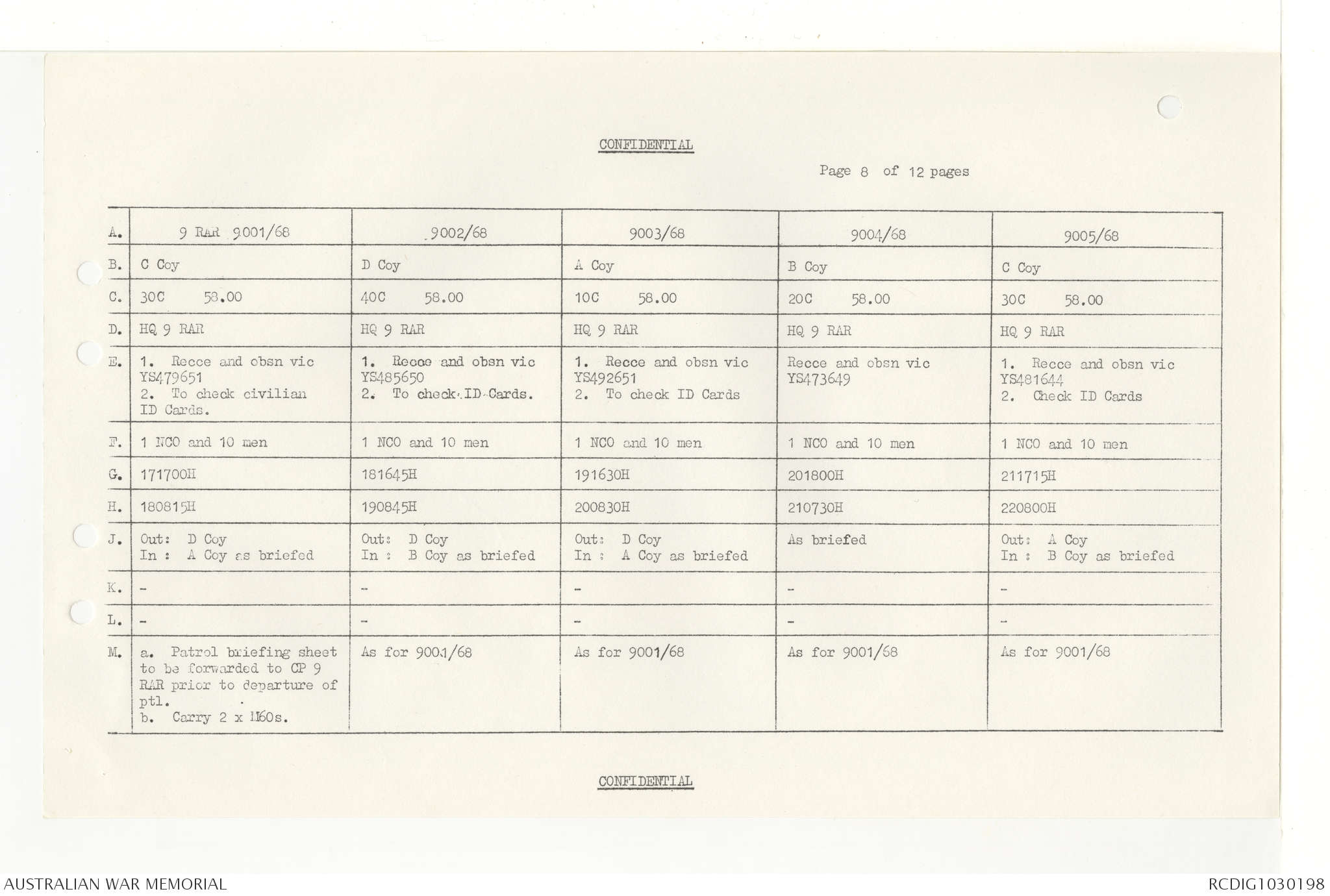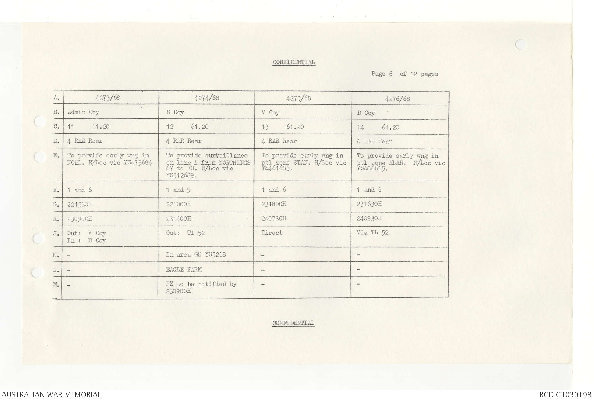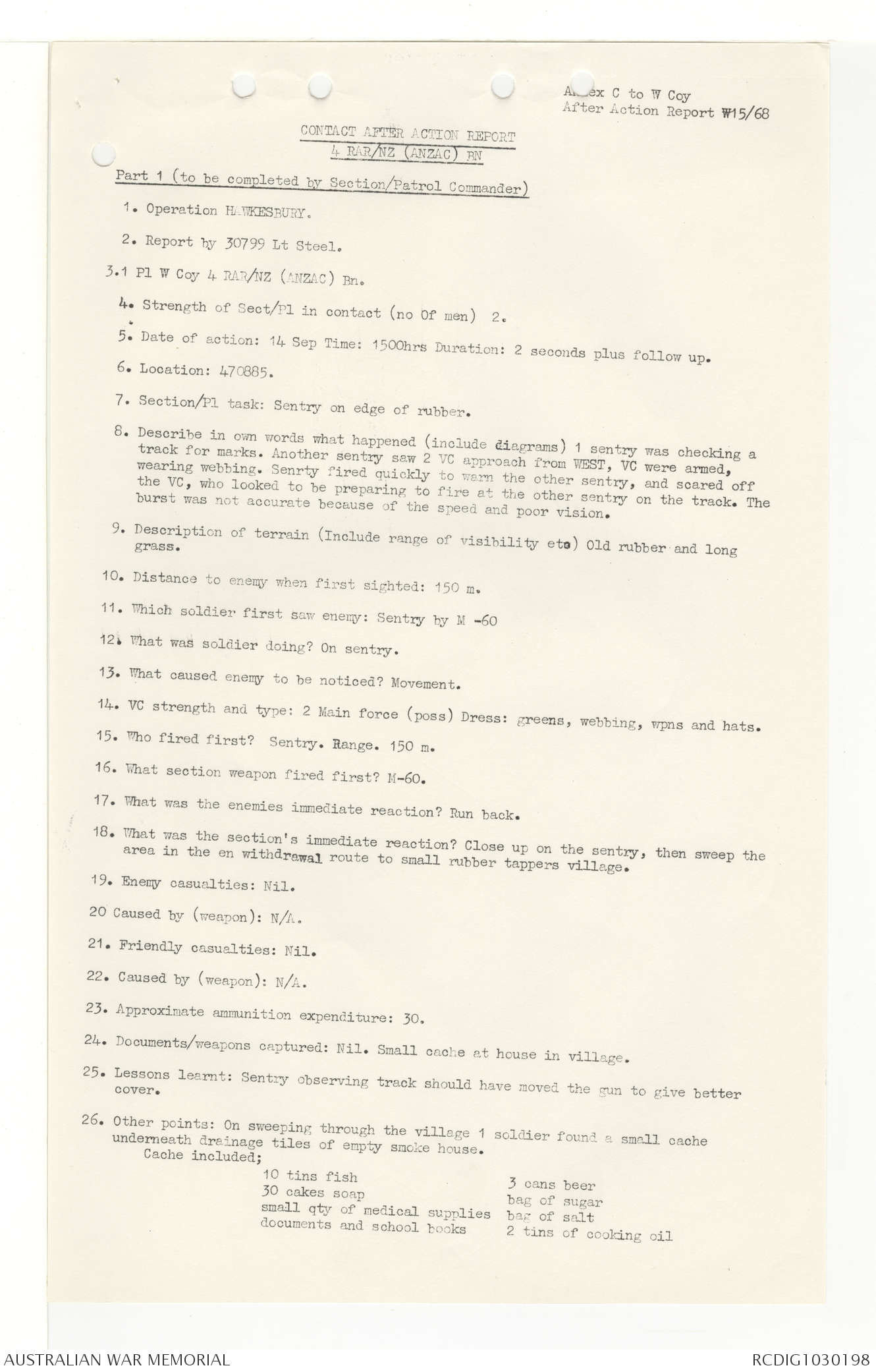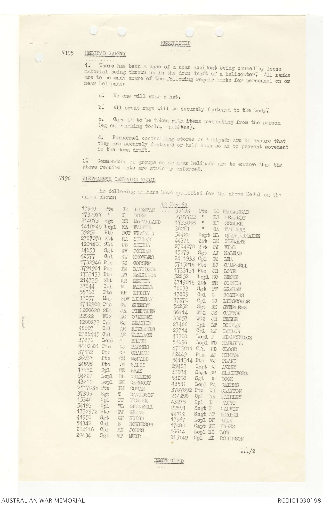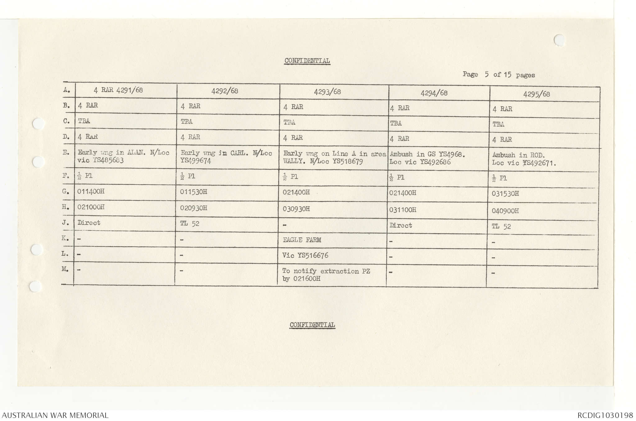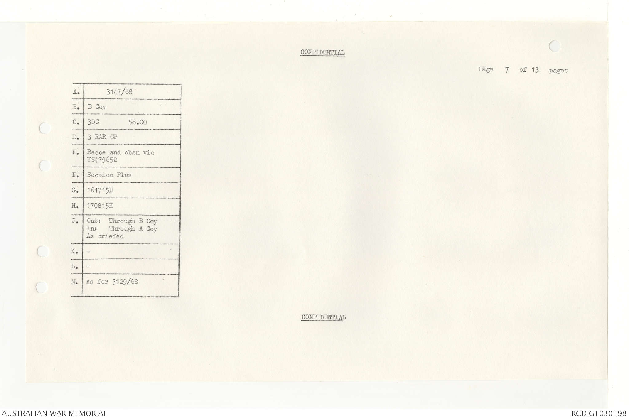AWM95 7/4/33 - 1-30 November 1968, Narrative, Duty Officer's log, Annexes