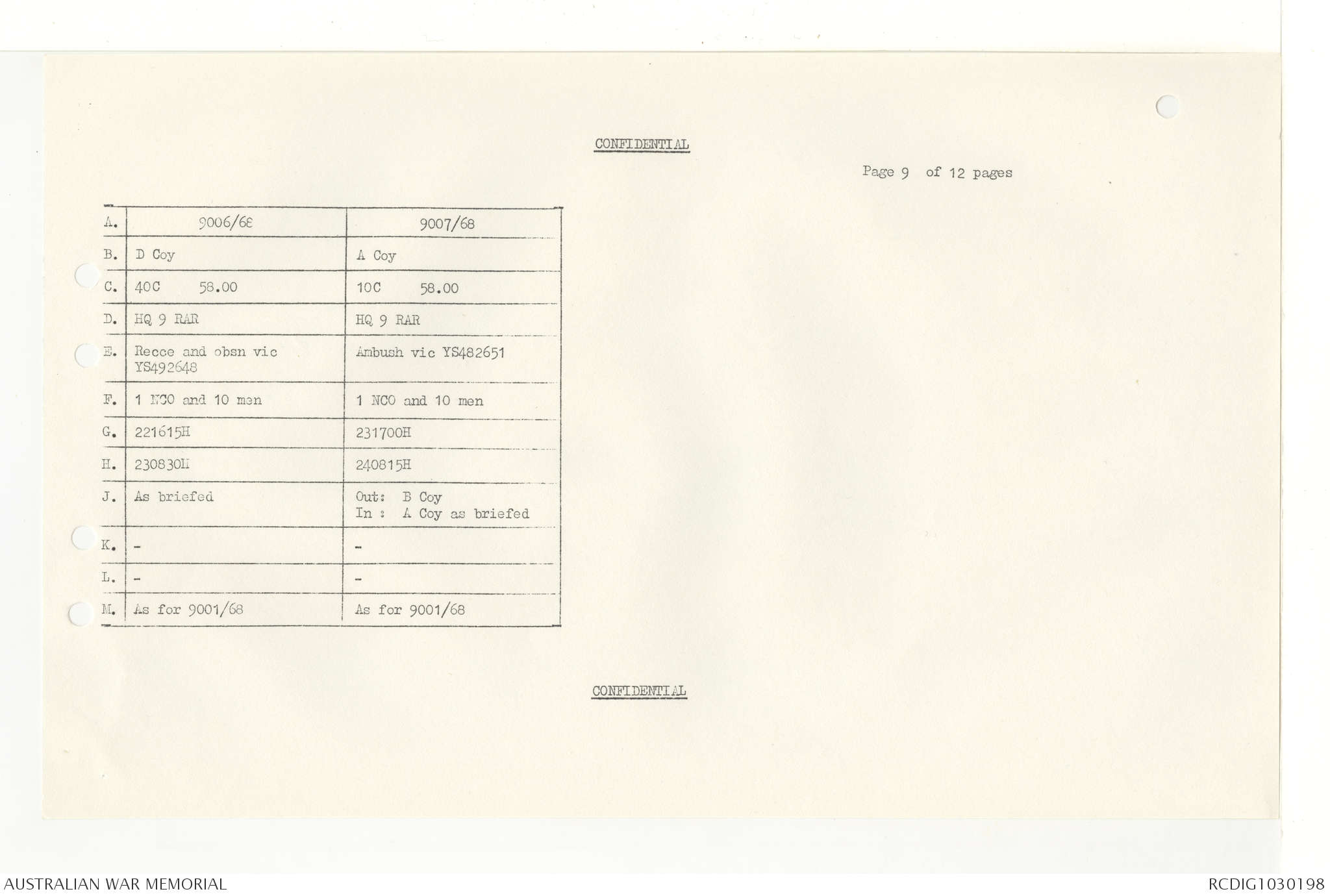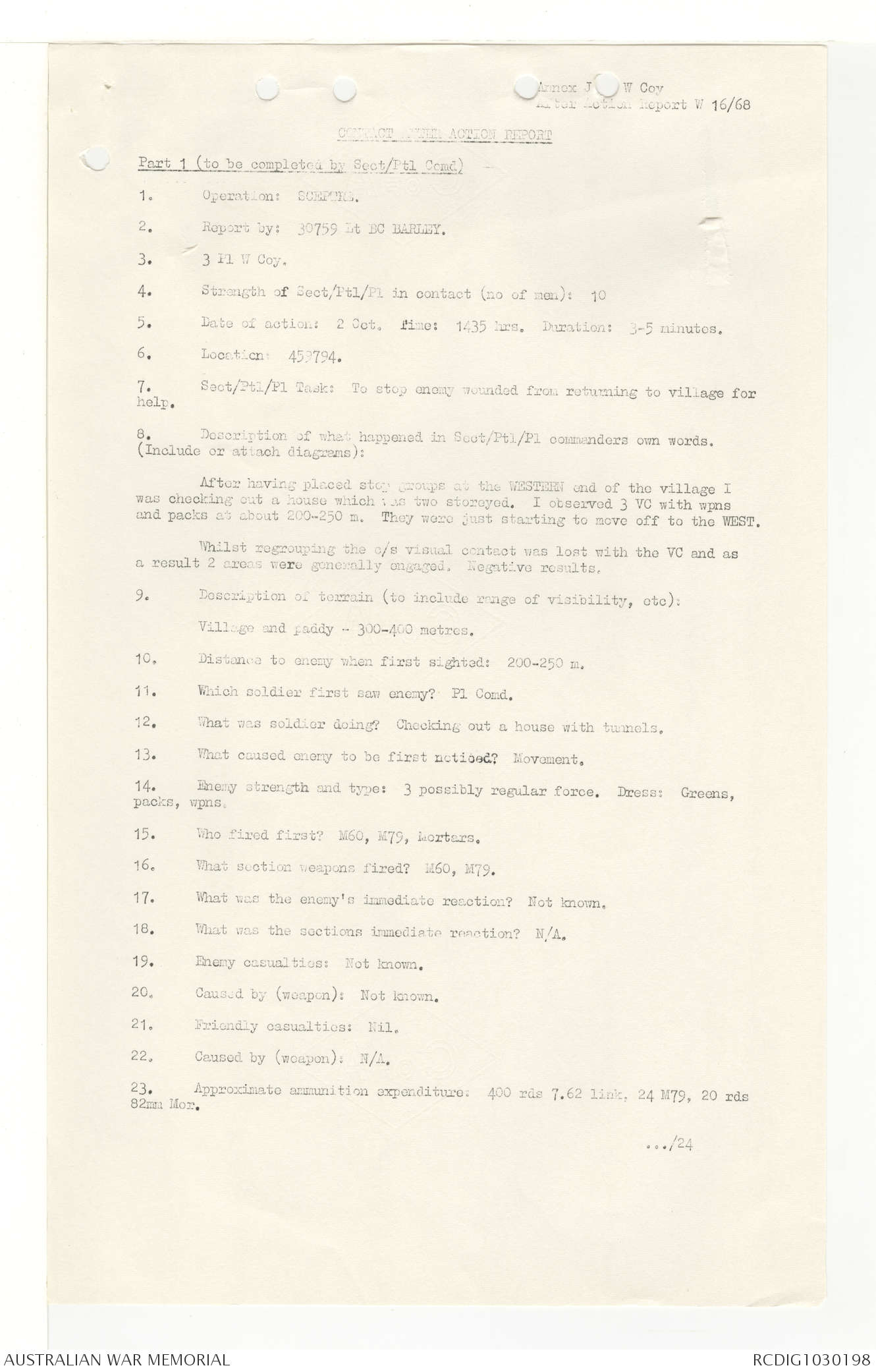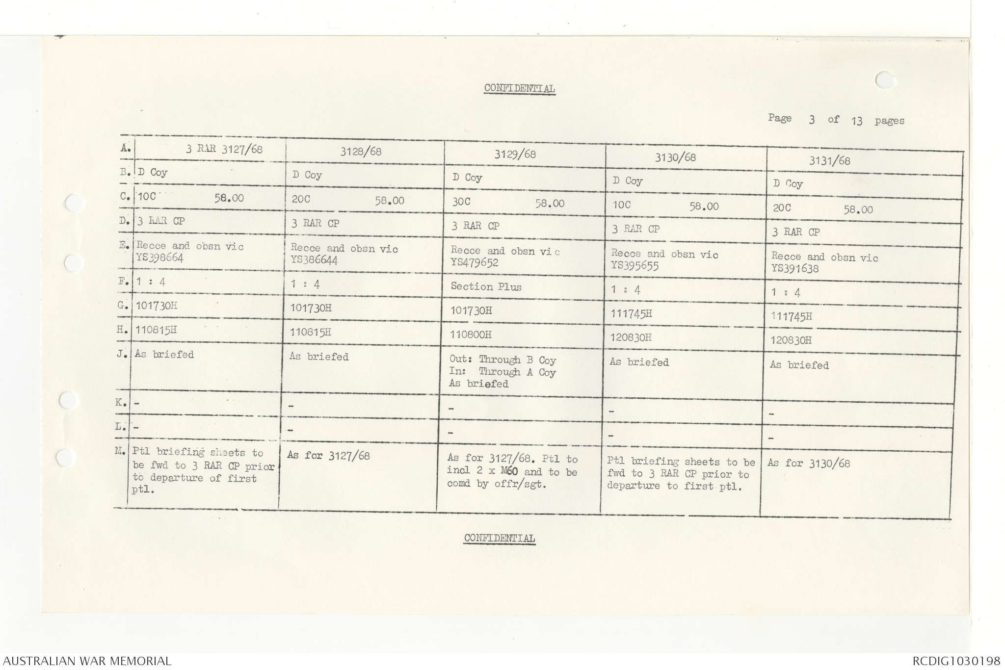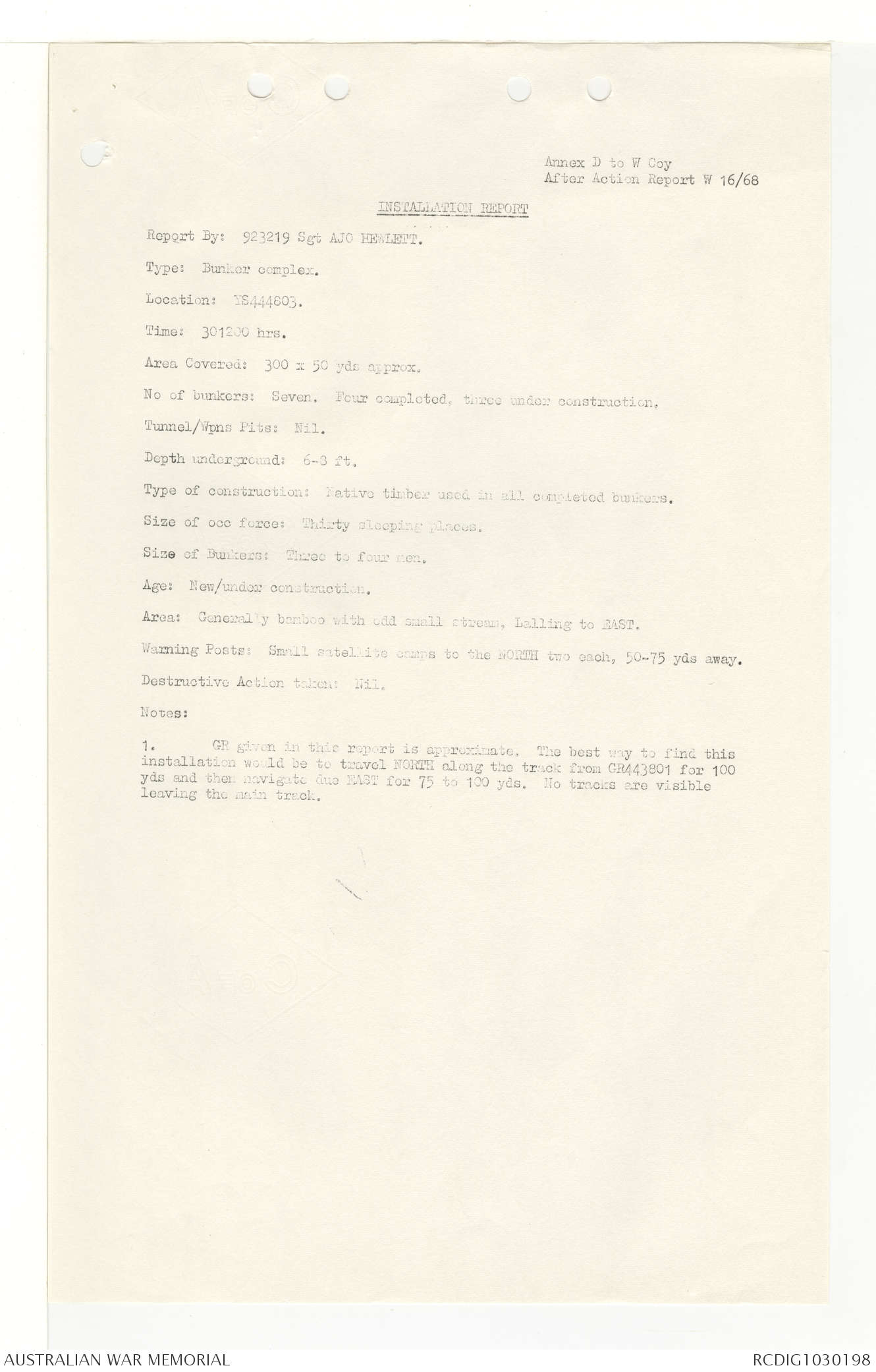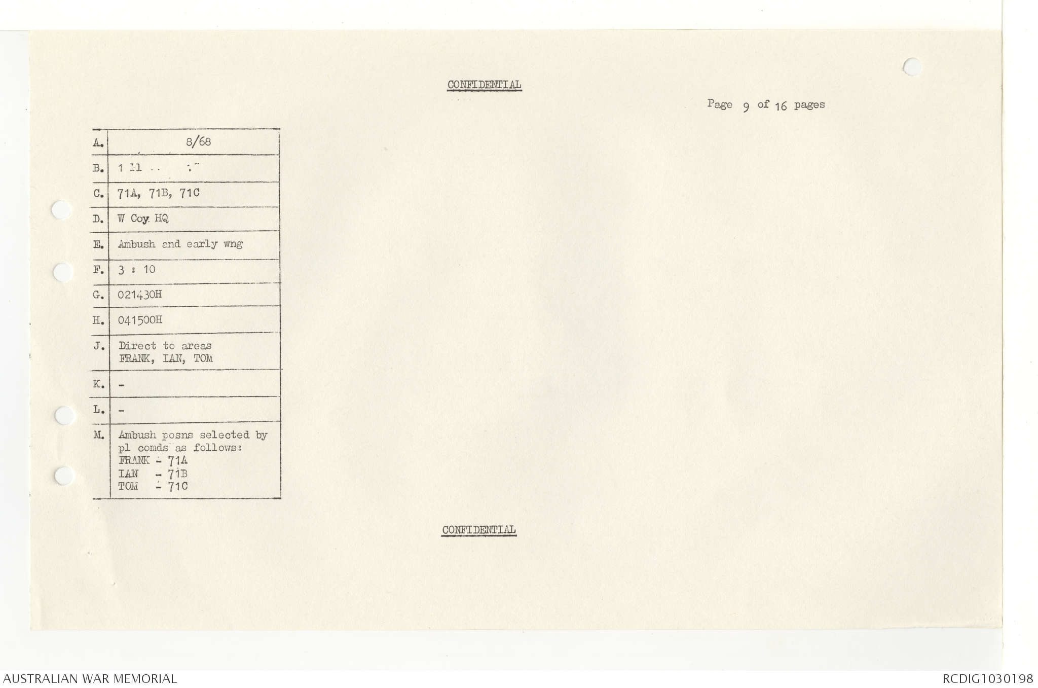 AWM95 7/4/33 - 1-30 November 1968, Narrative, Duty Officer's log, Annexes