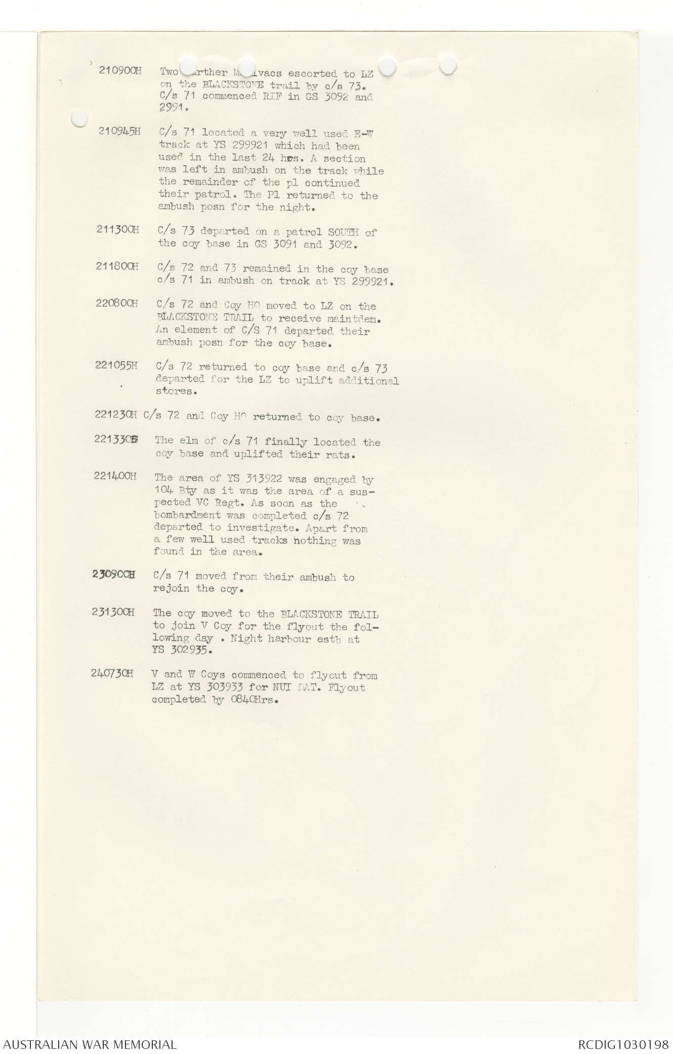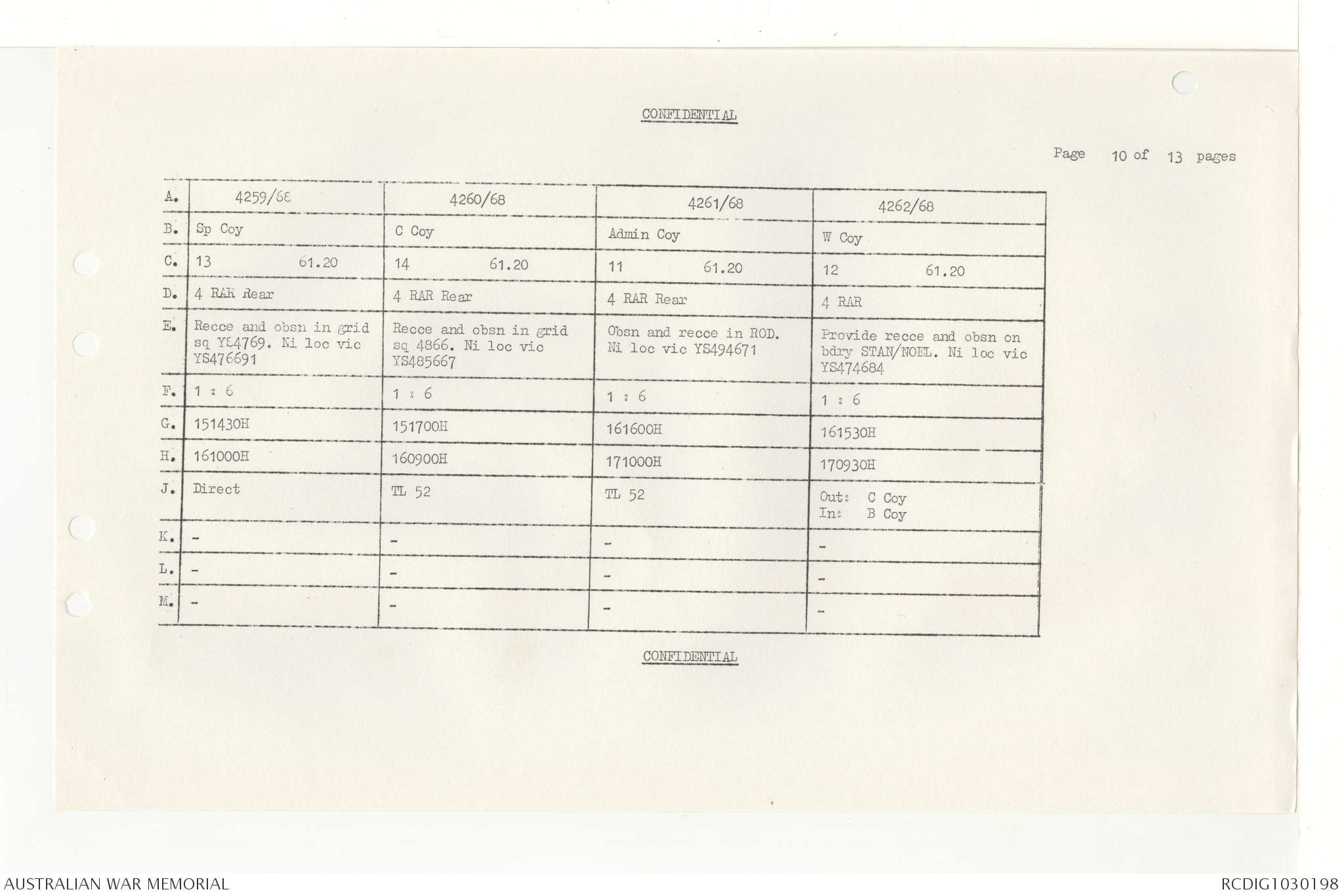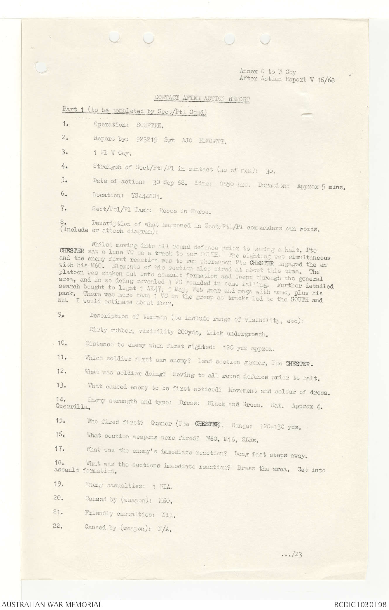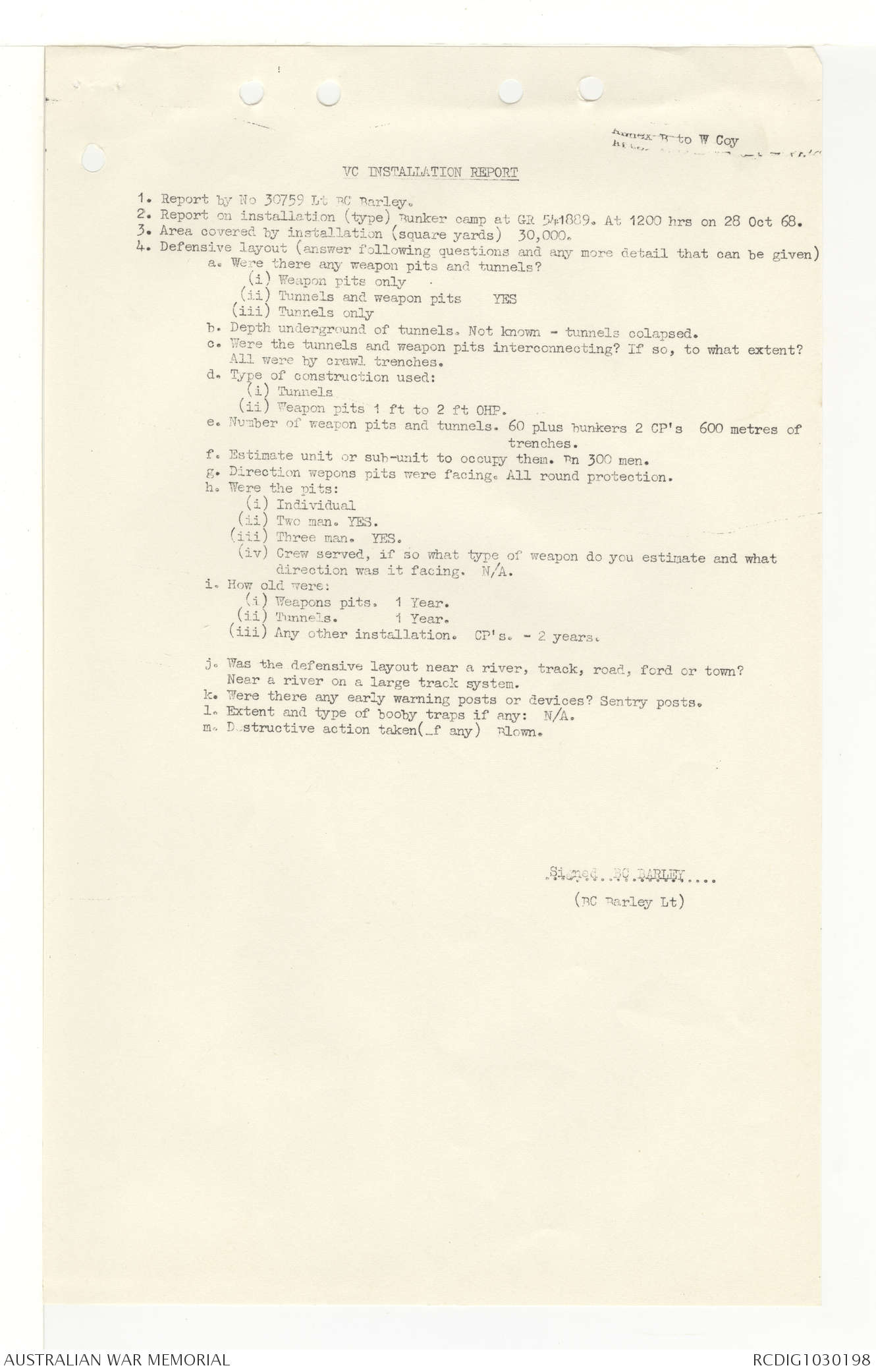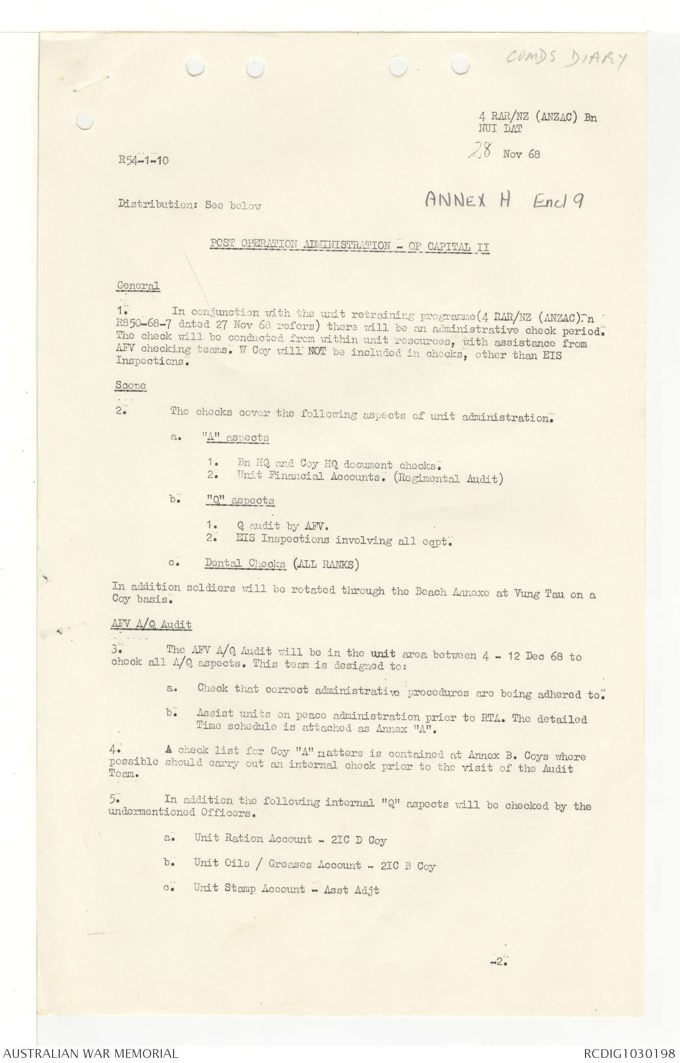 AWM95 7/4/33 - 1-30 November 1968, Narrative, Duty Officer's log, Annexes