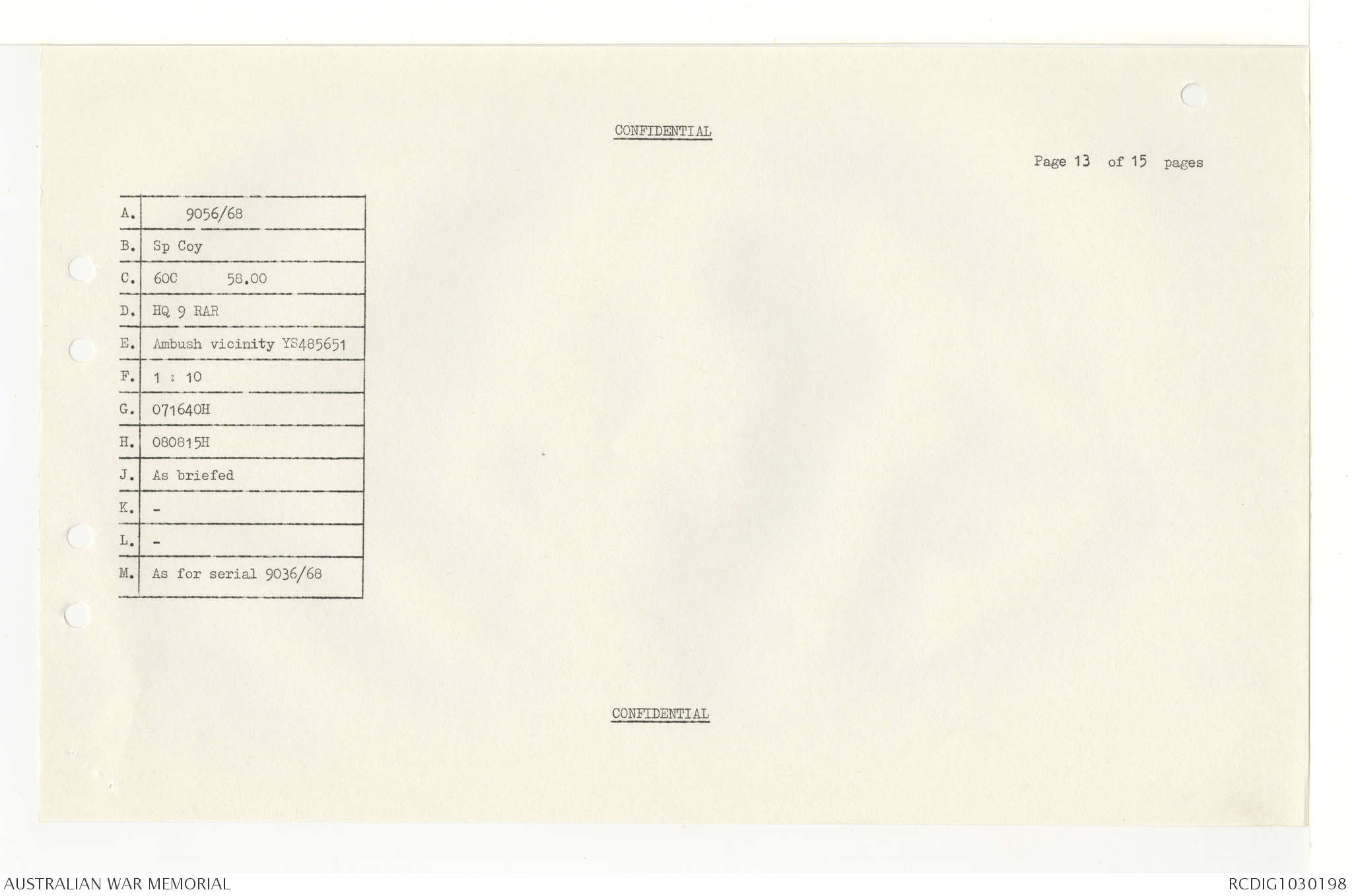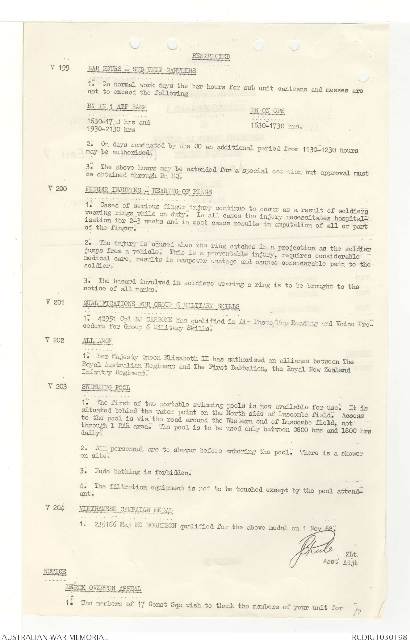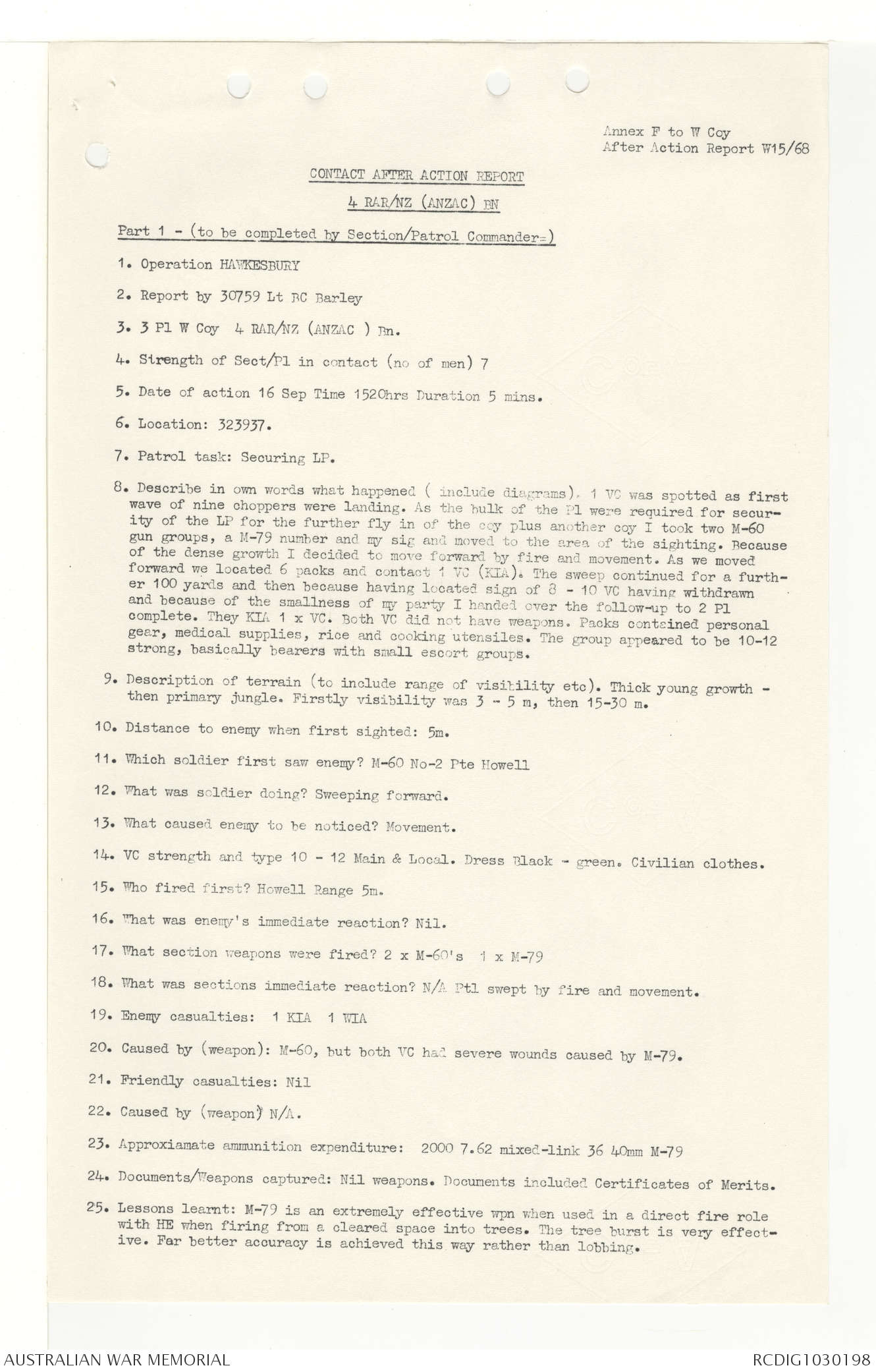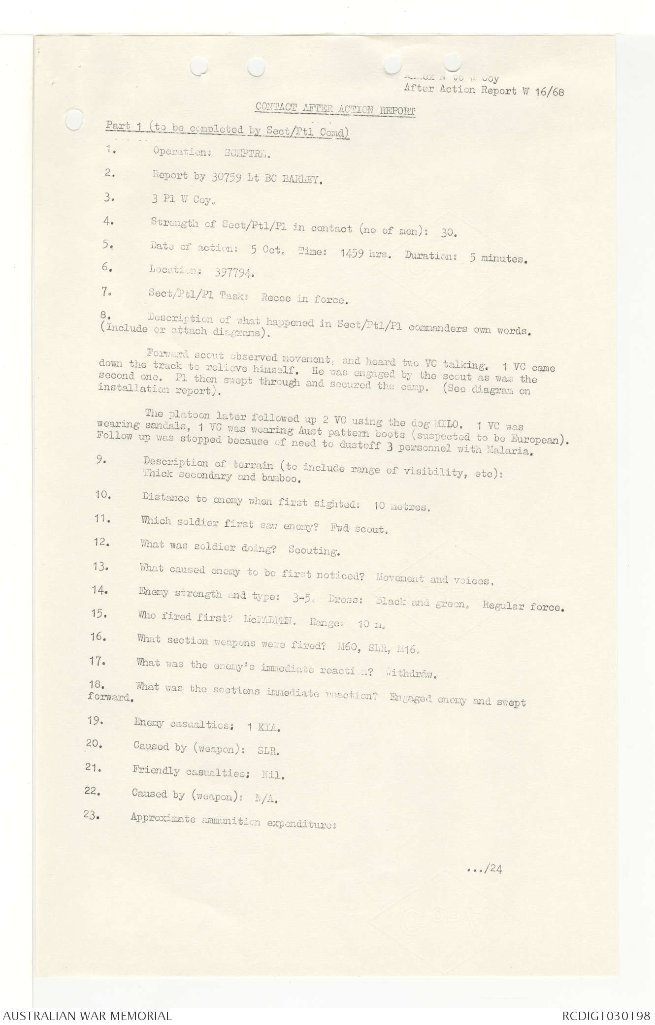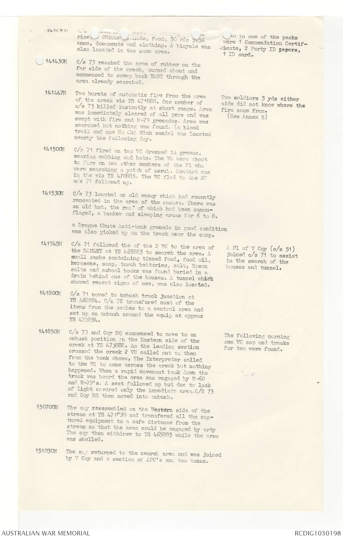 AWM95 7/4/33 - 1-30 November 1968, Narrative, Duty Officer's log, Annexes