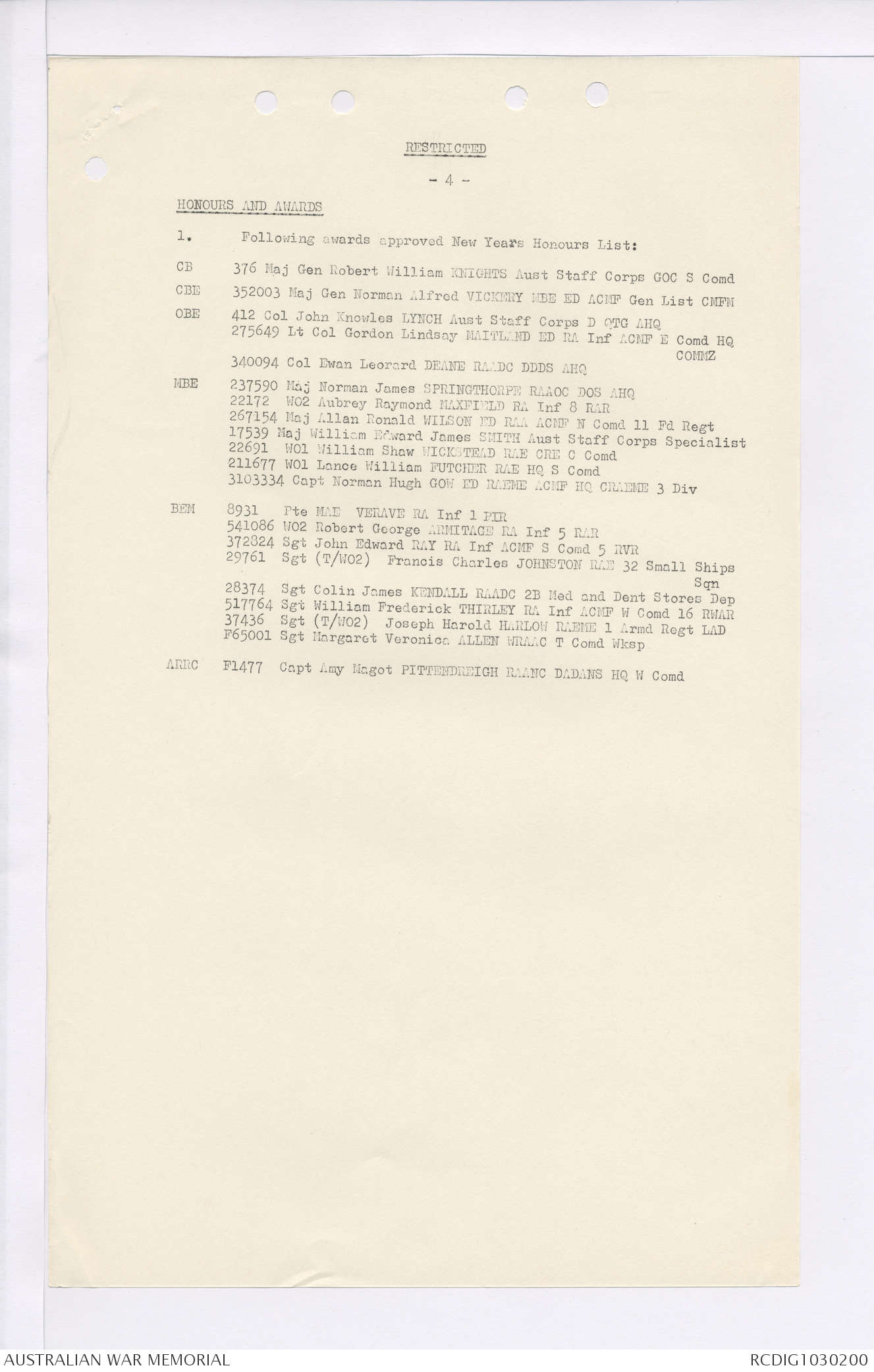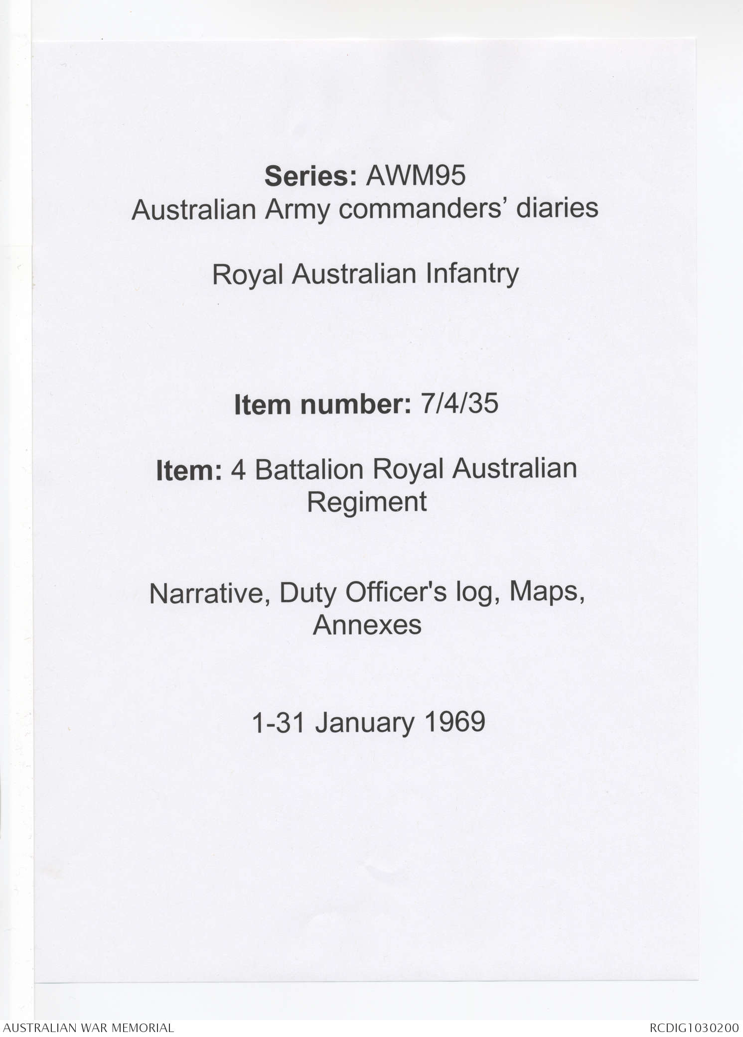 - AWM95 Subclass 7/4 - 4 Battalion Royal Australian Regiment