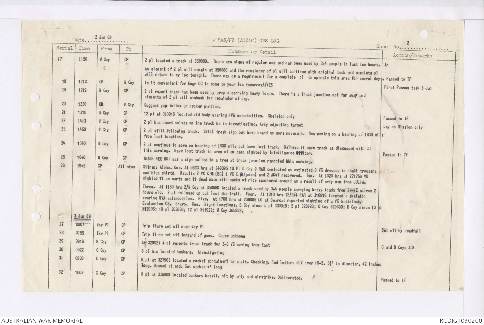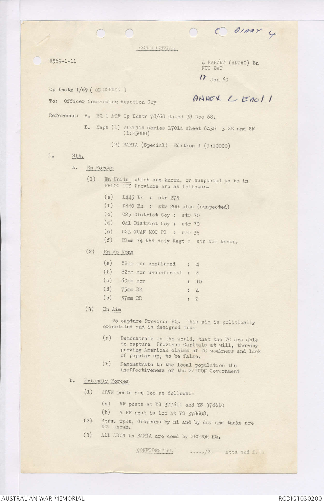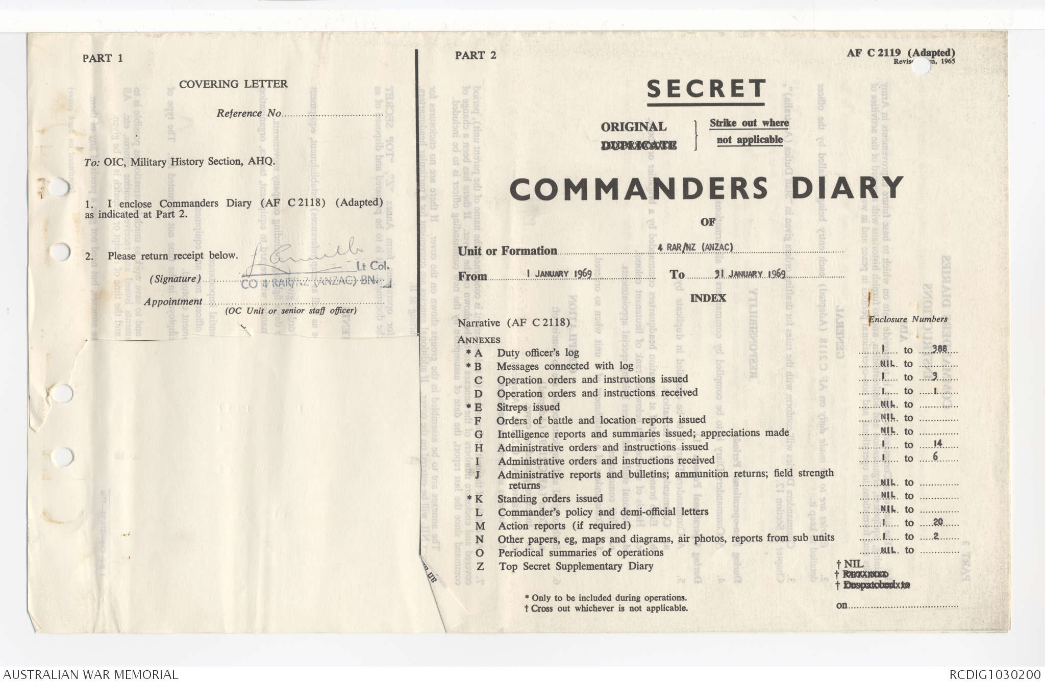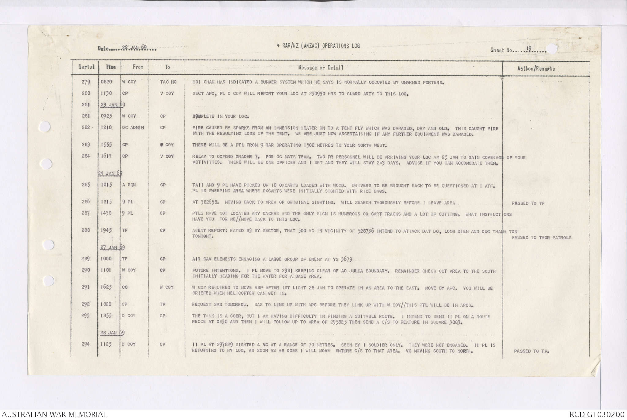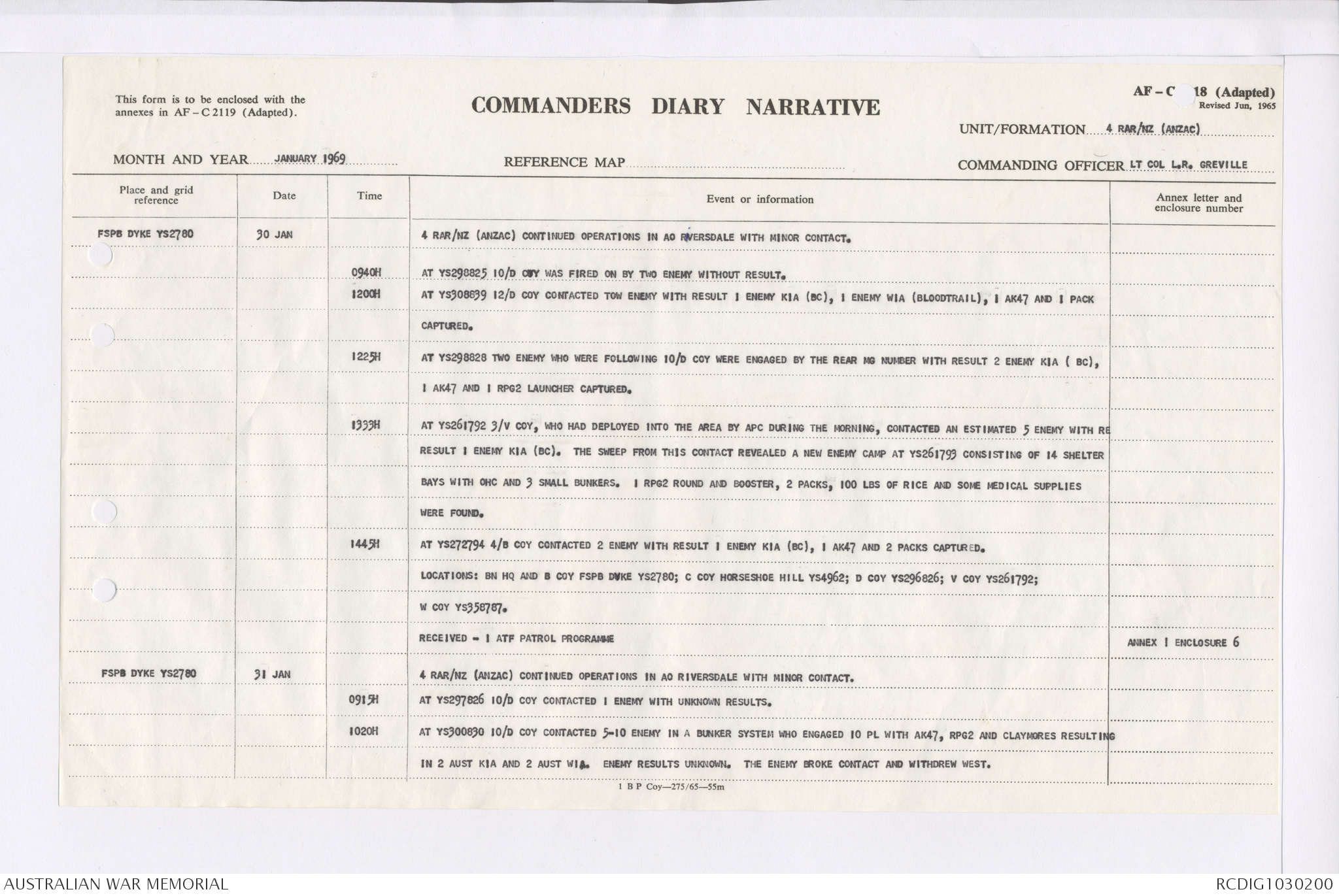 AWM95 7/4/35 - 1-31 January 1969, Narrative, Duty Officer's log, Maps, Annexes