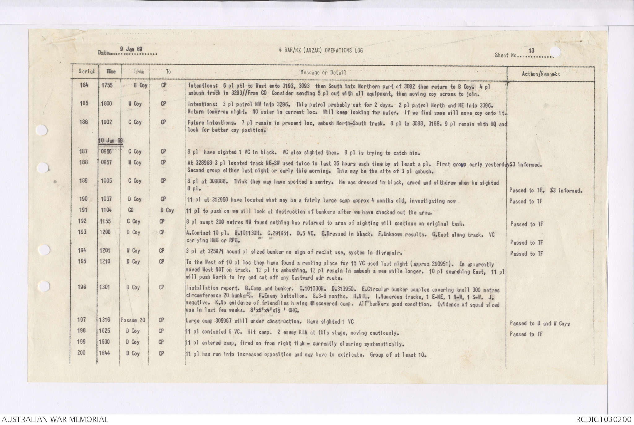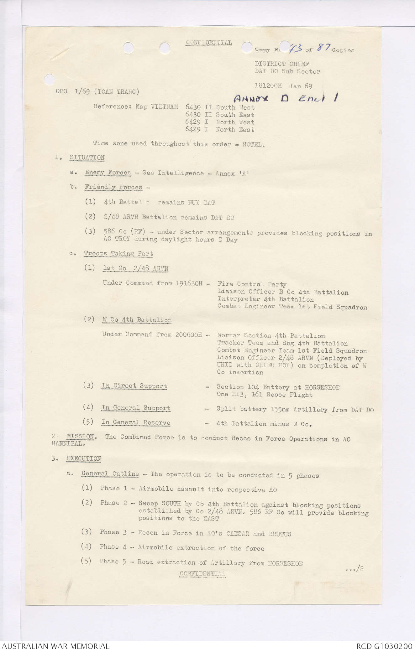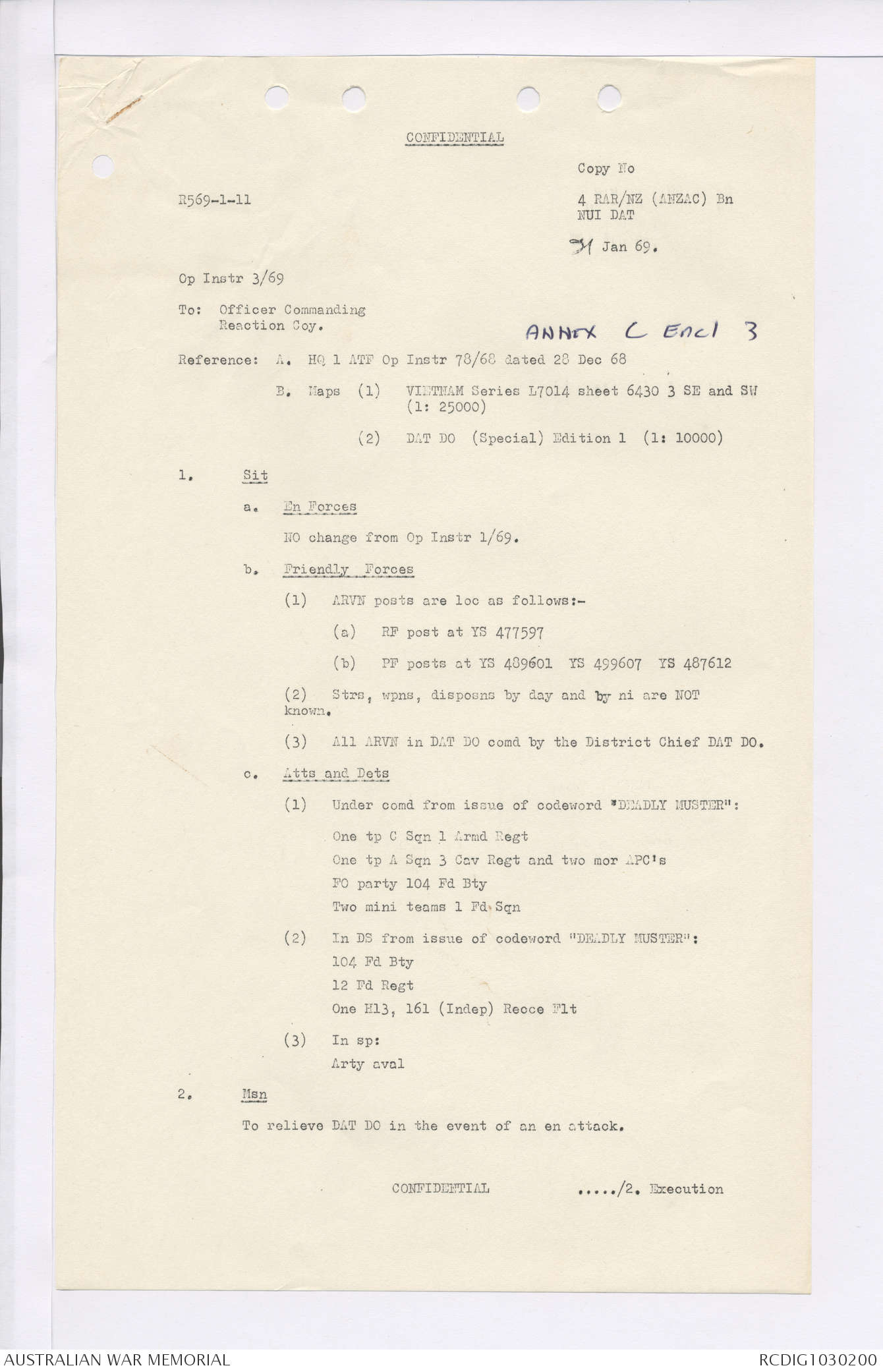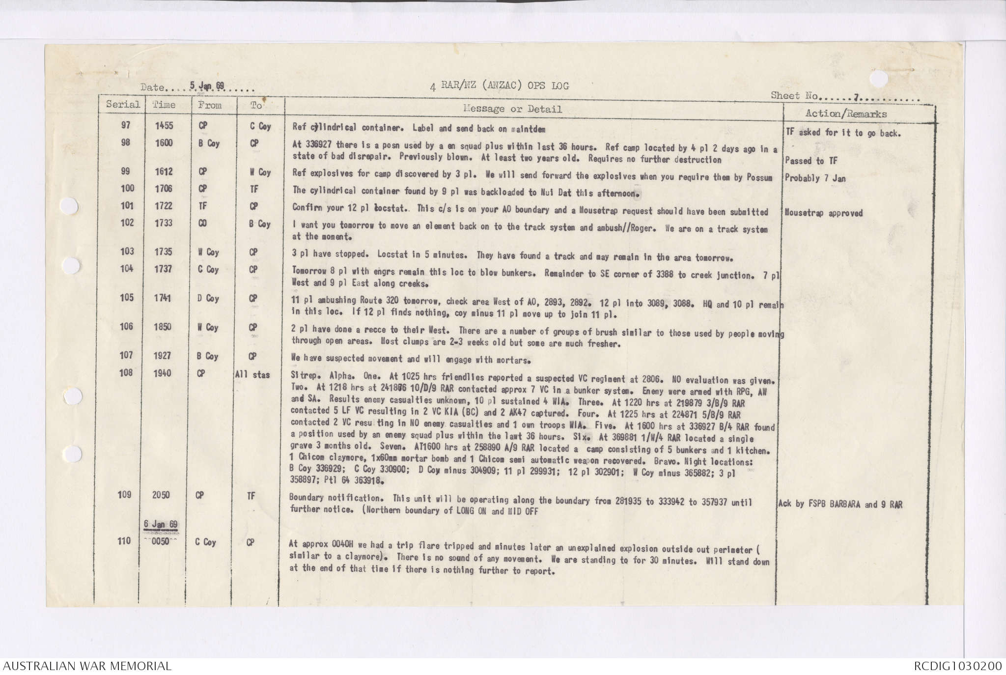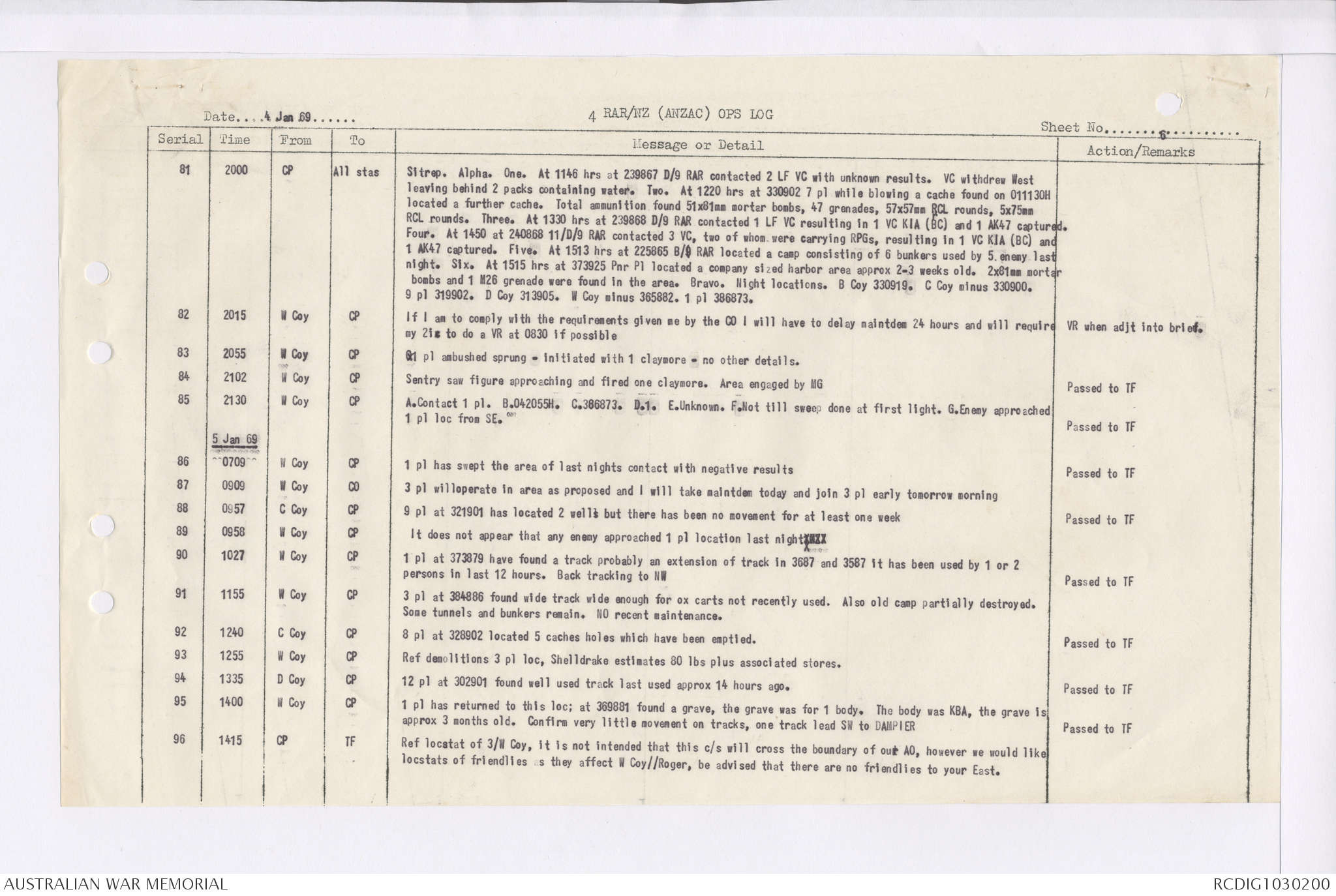 AWM95 7/4/35 - 1-31 January 1969, Narrative, Duty Officer's log, Maps, Annexes