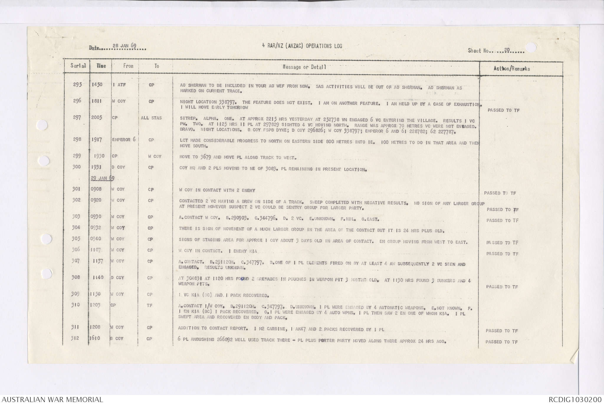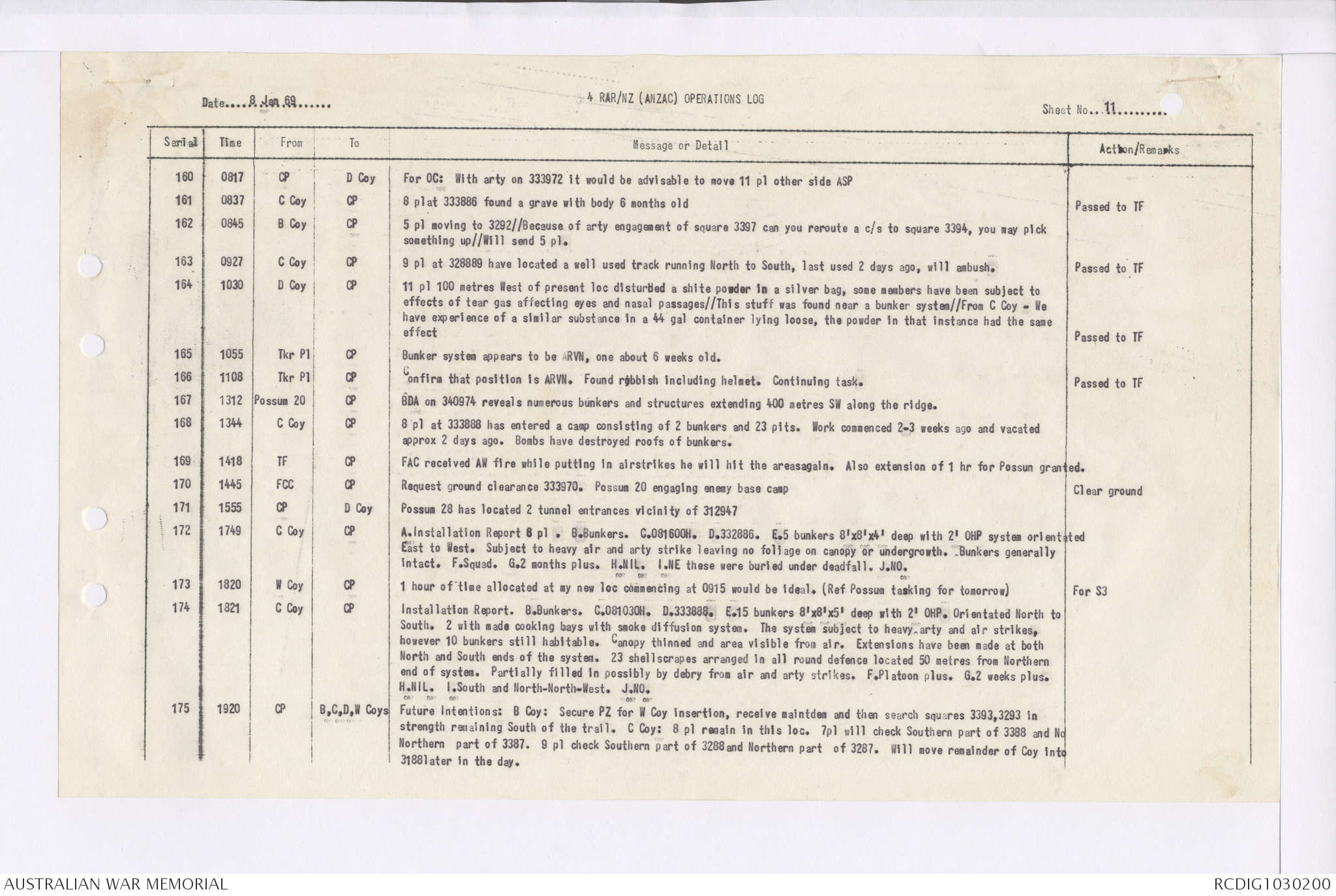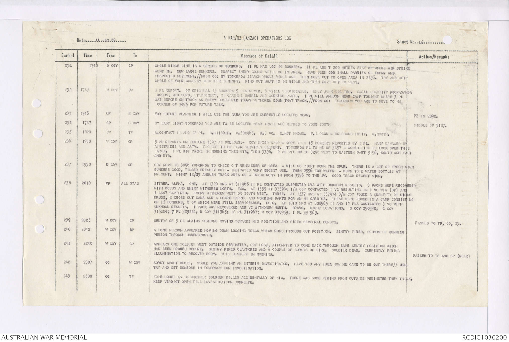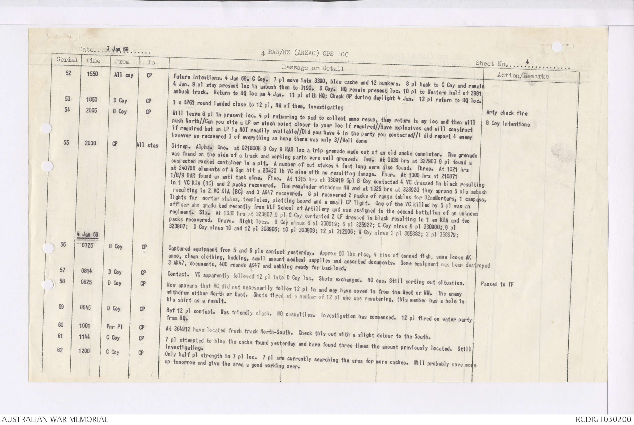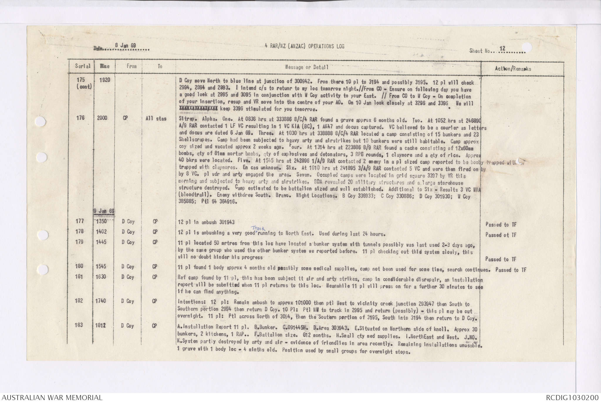 AWM95 7/4/35 - 1-31 January 1969, Narrative, Duty Officer's log, Maps, Annexes