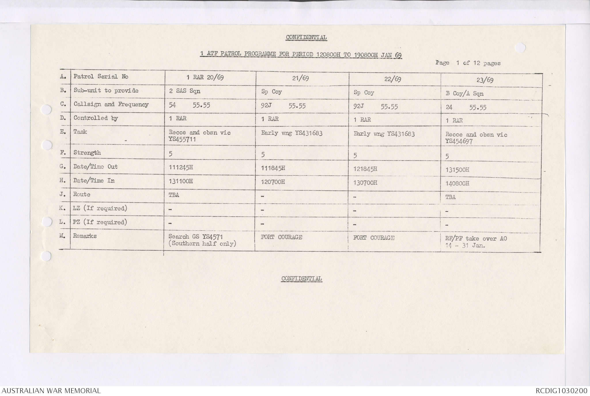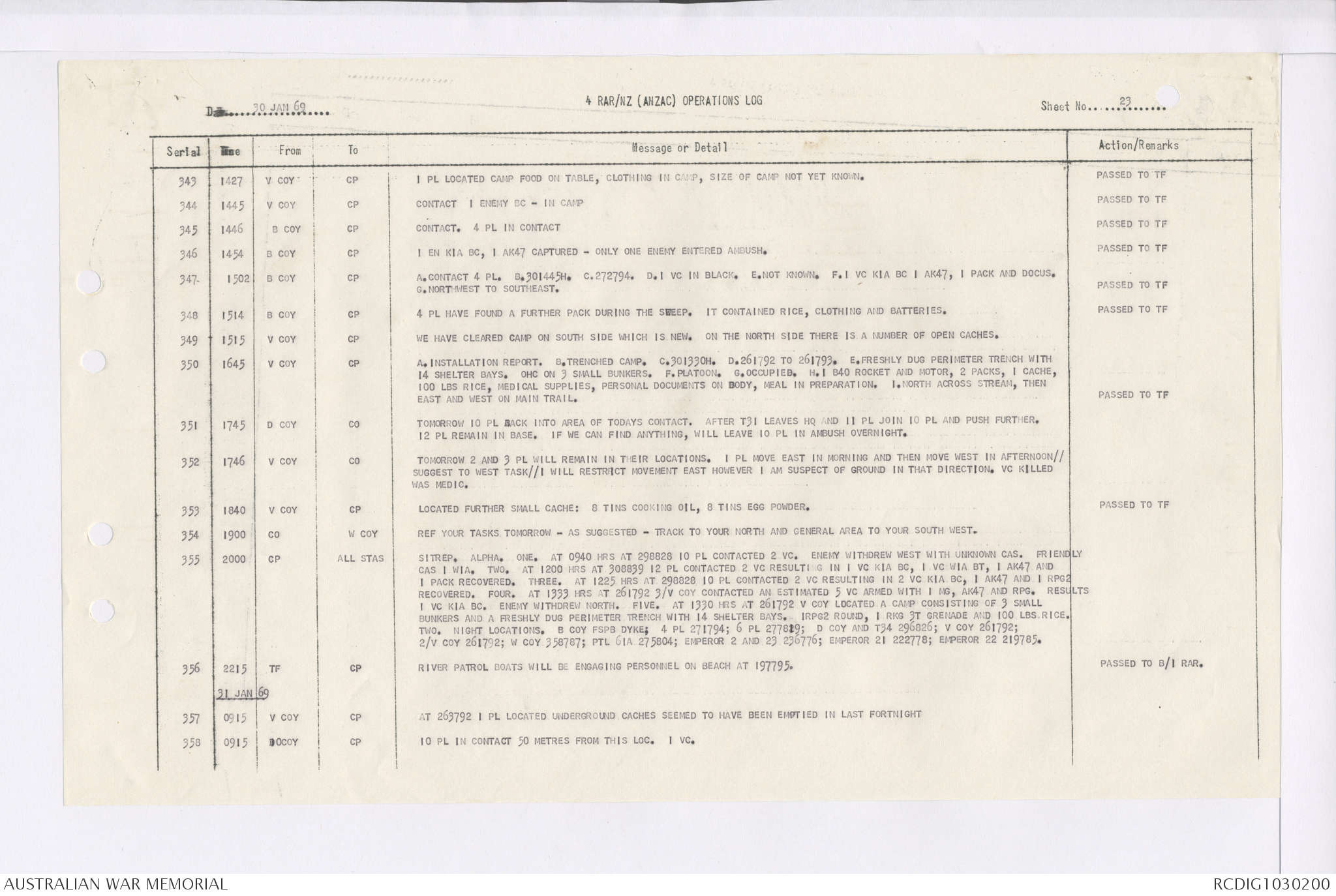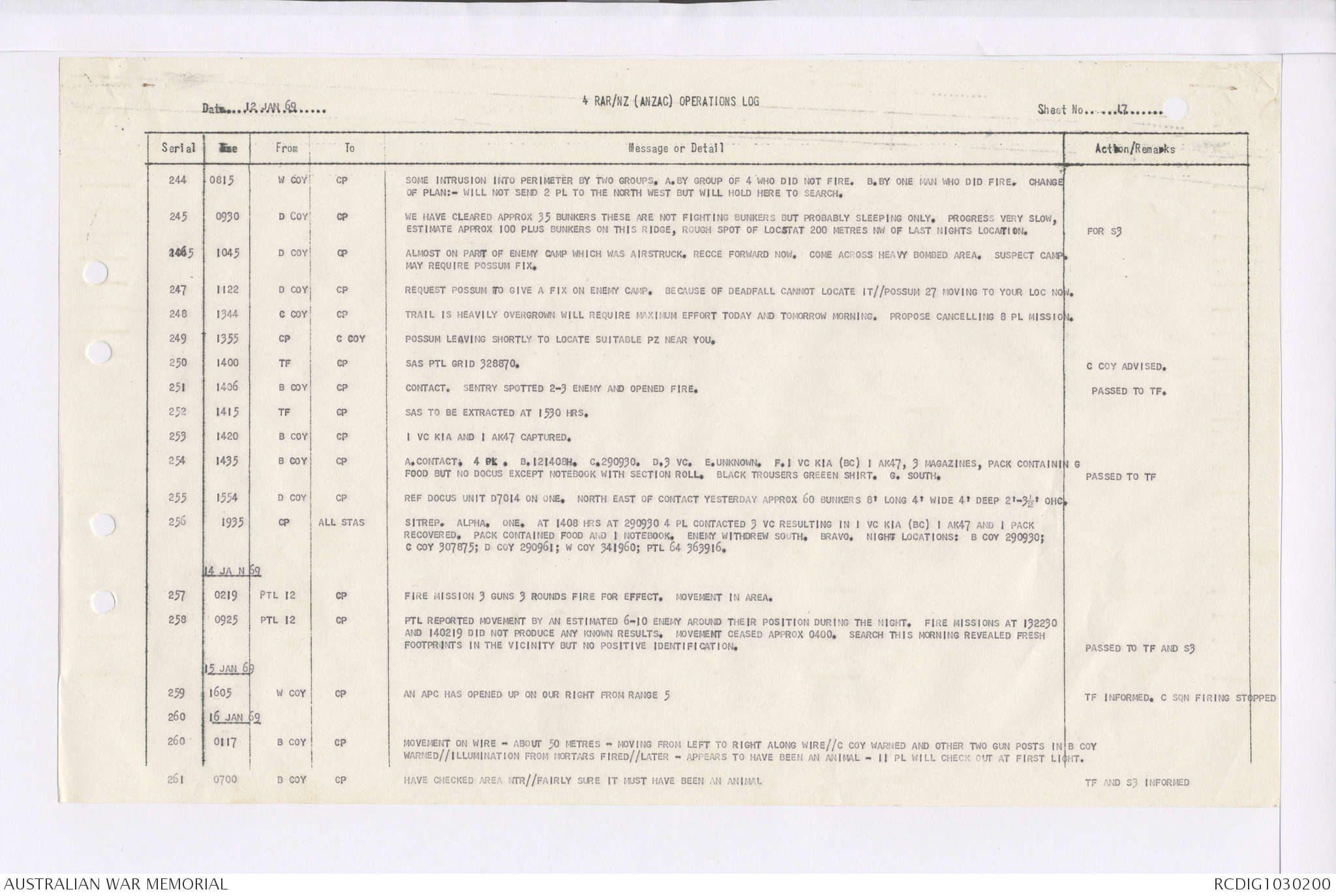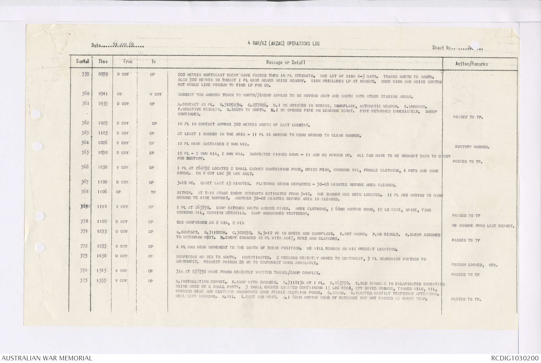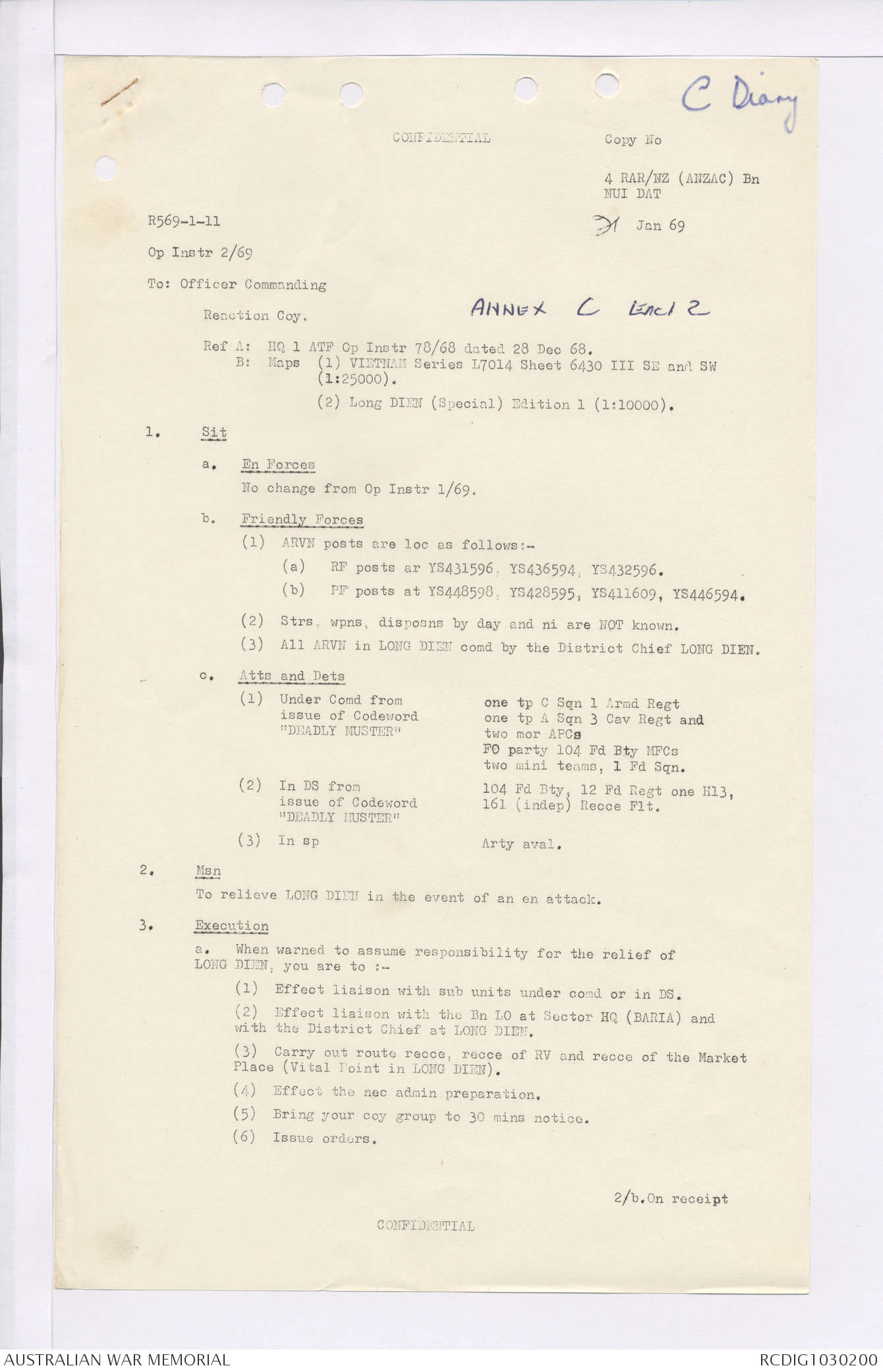 AWM95 7/4/35 - 1-31 January 1969, Narrative, Duty Officer's log, Maps, Annexes