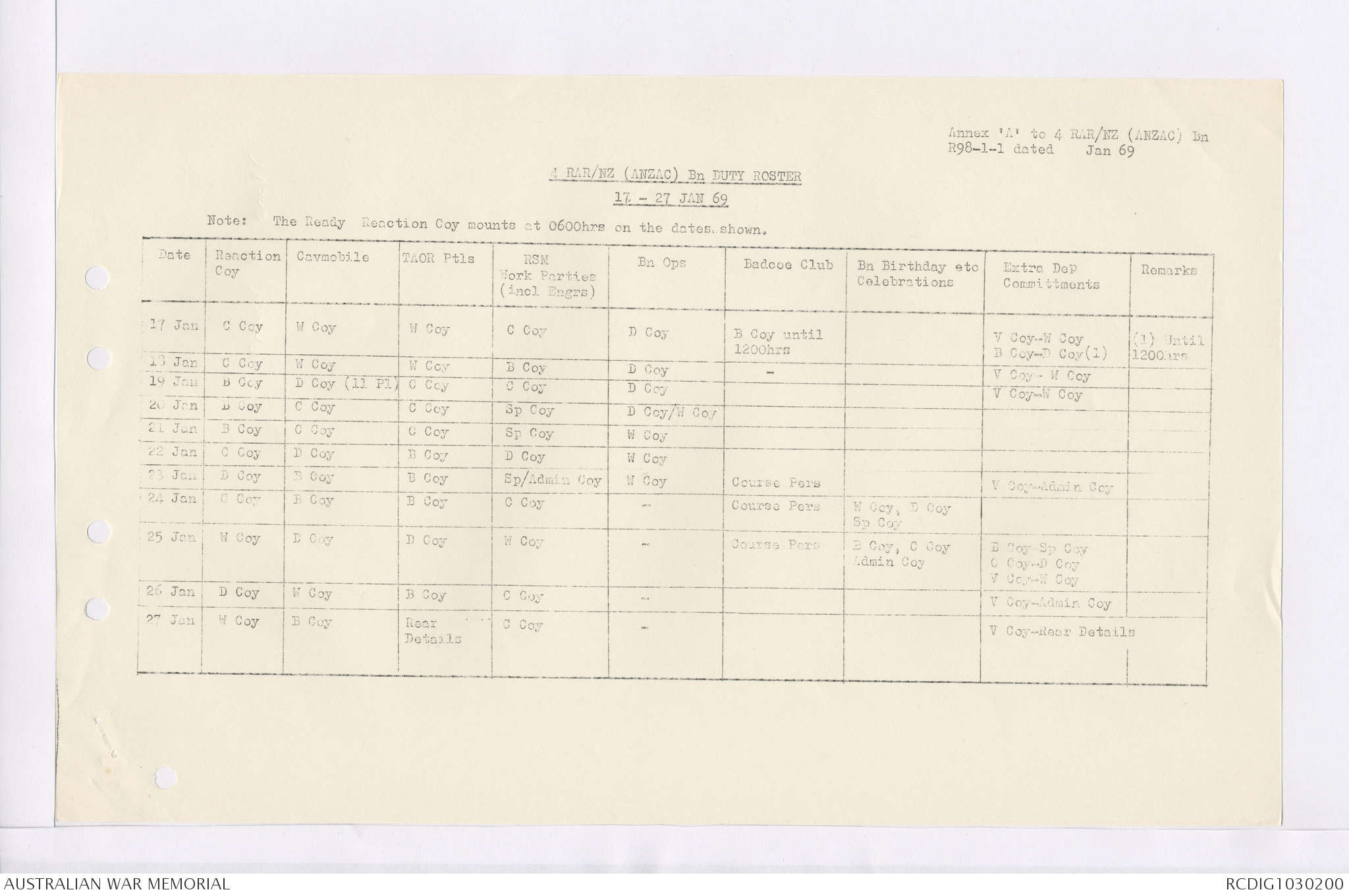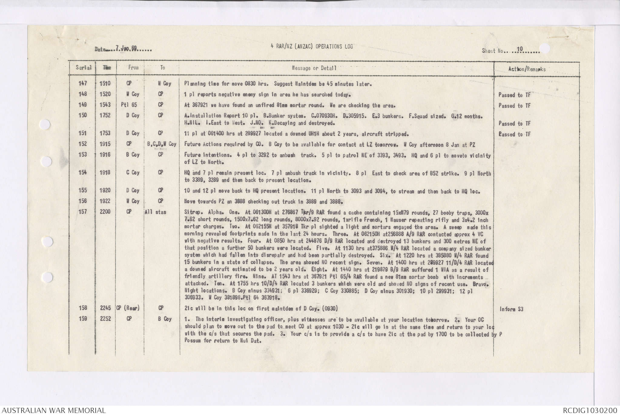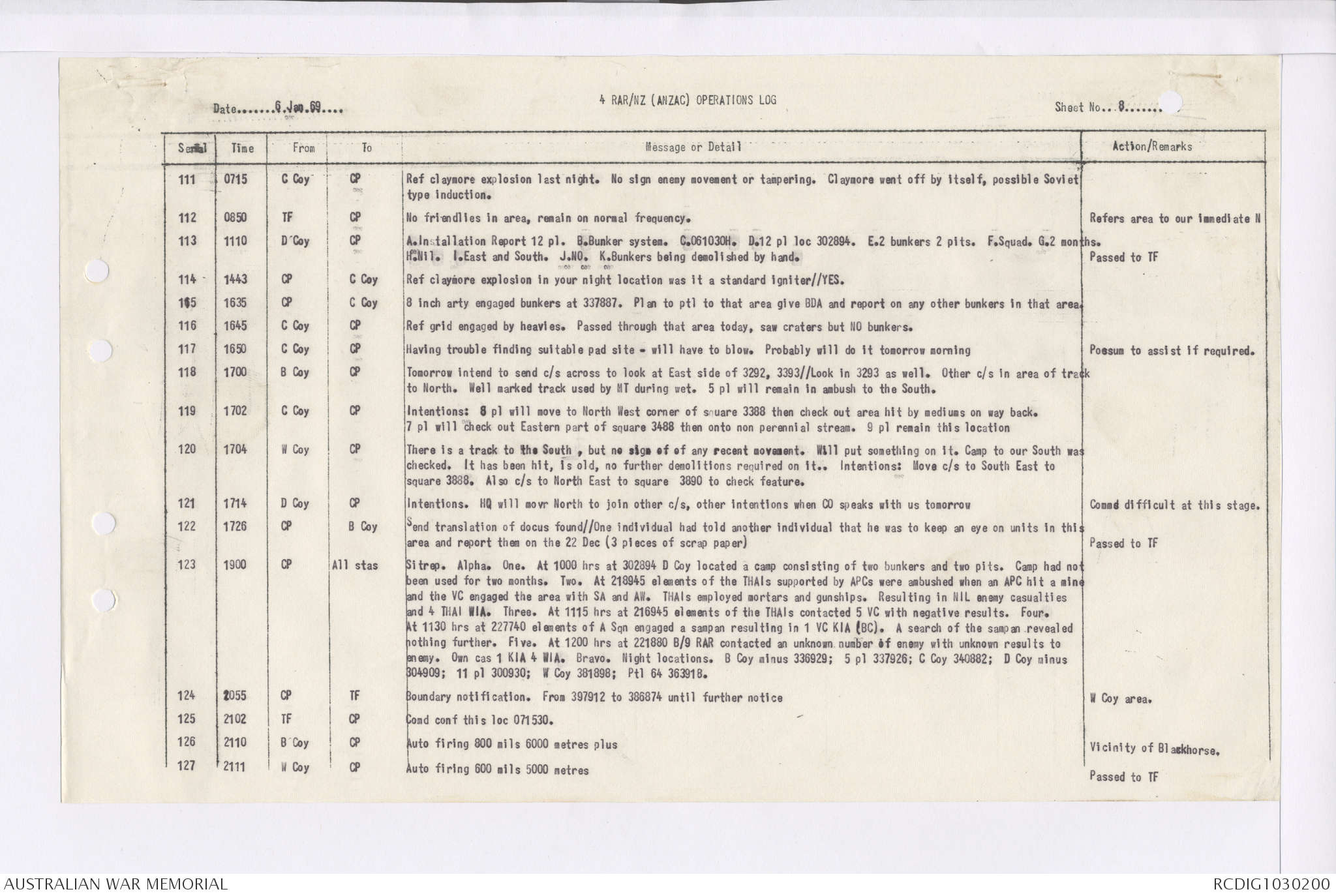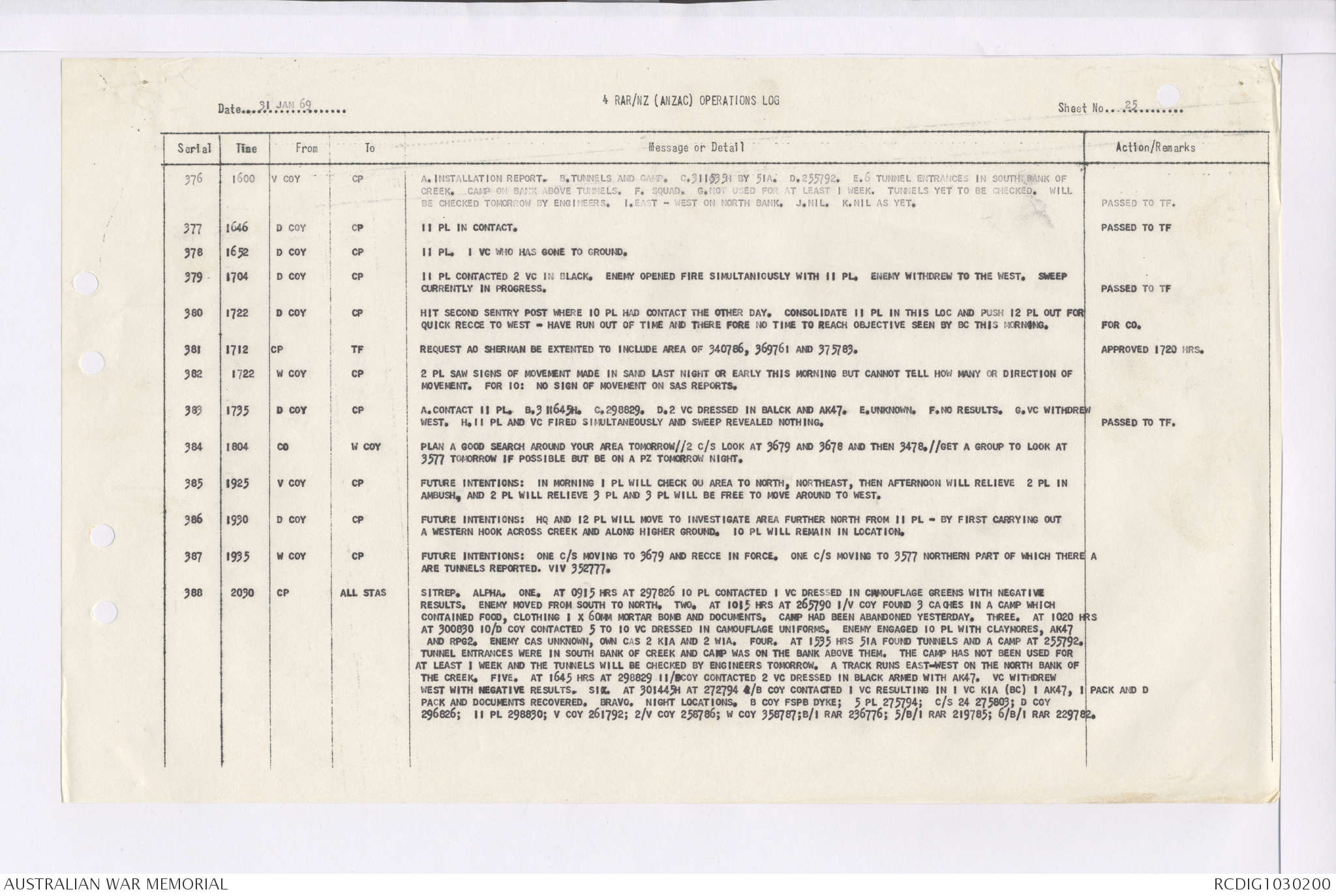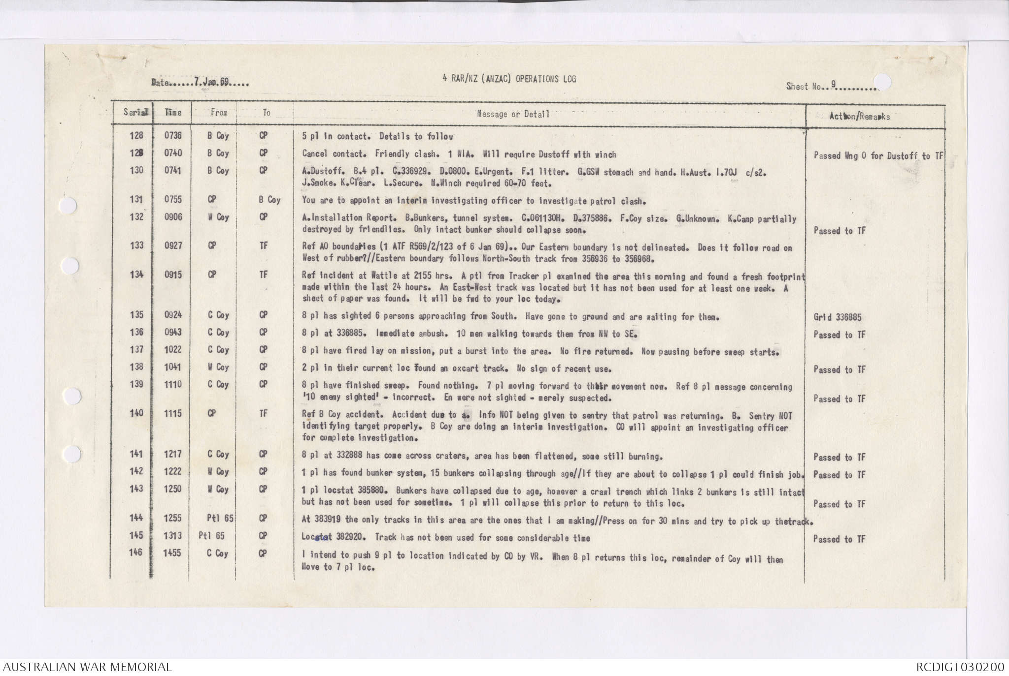 AWM95 7/4/35 - 1-31 January 1969, Narrative, Duty Officer's log, Maps, Annexes