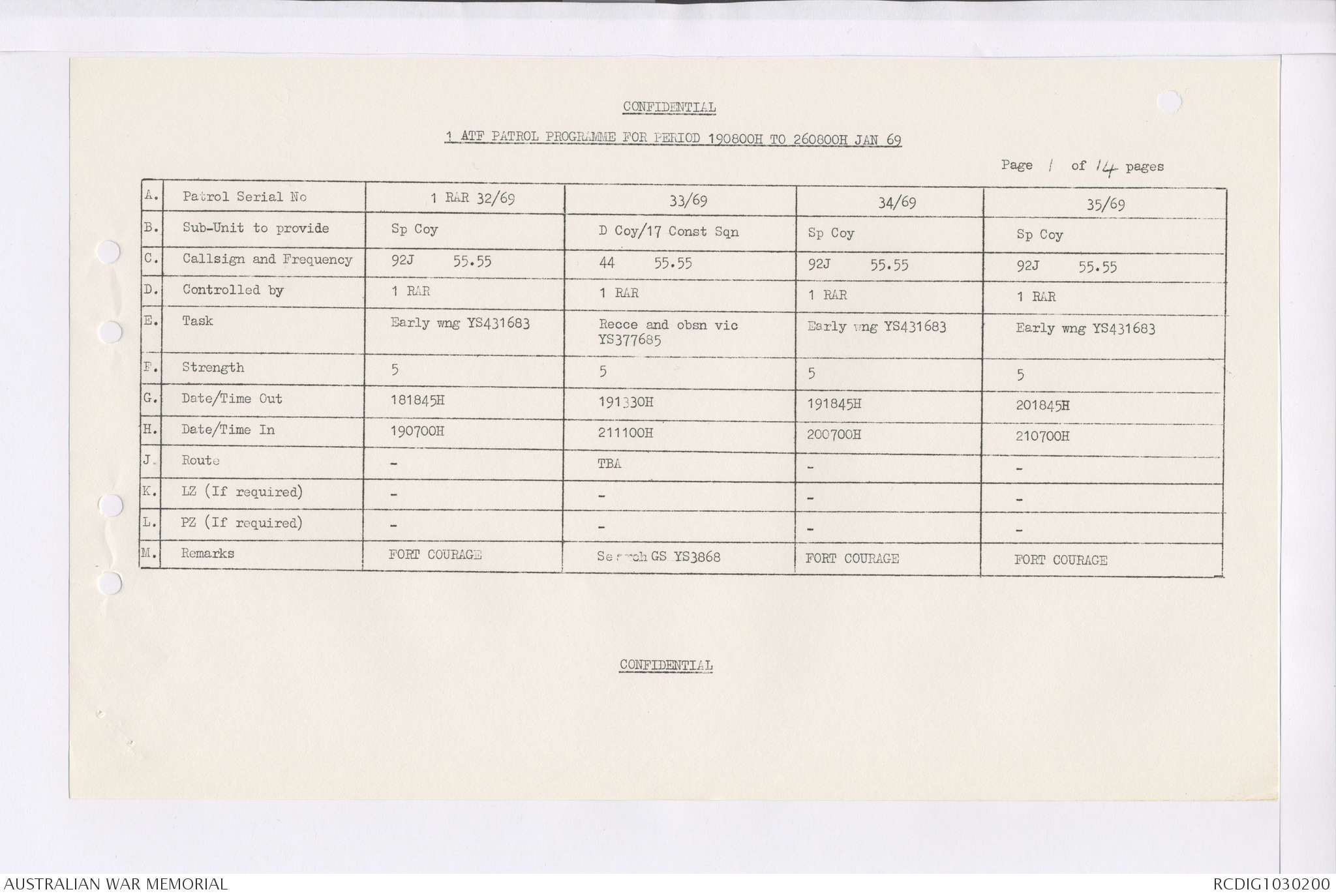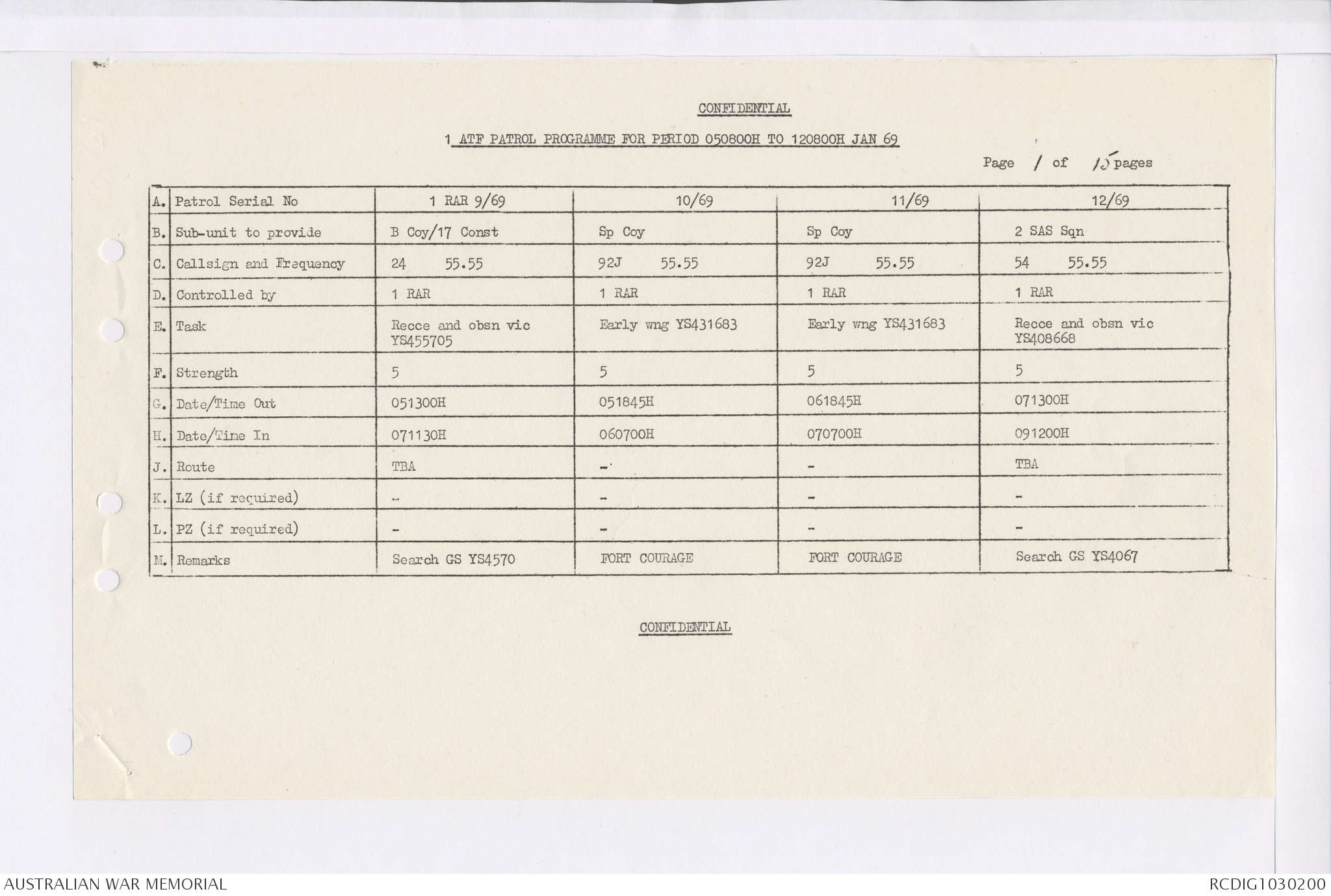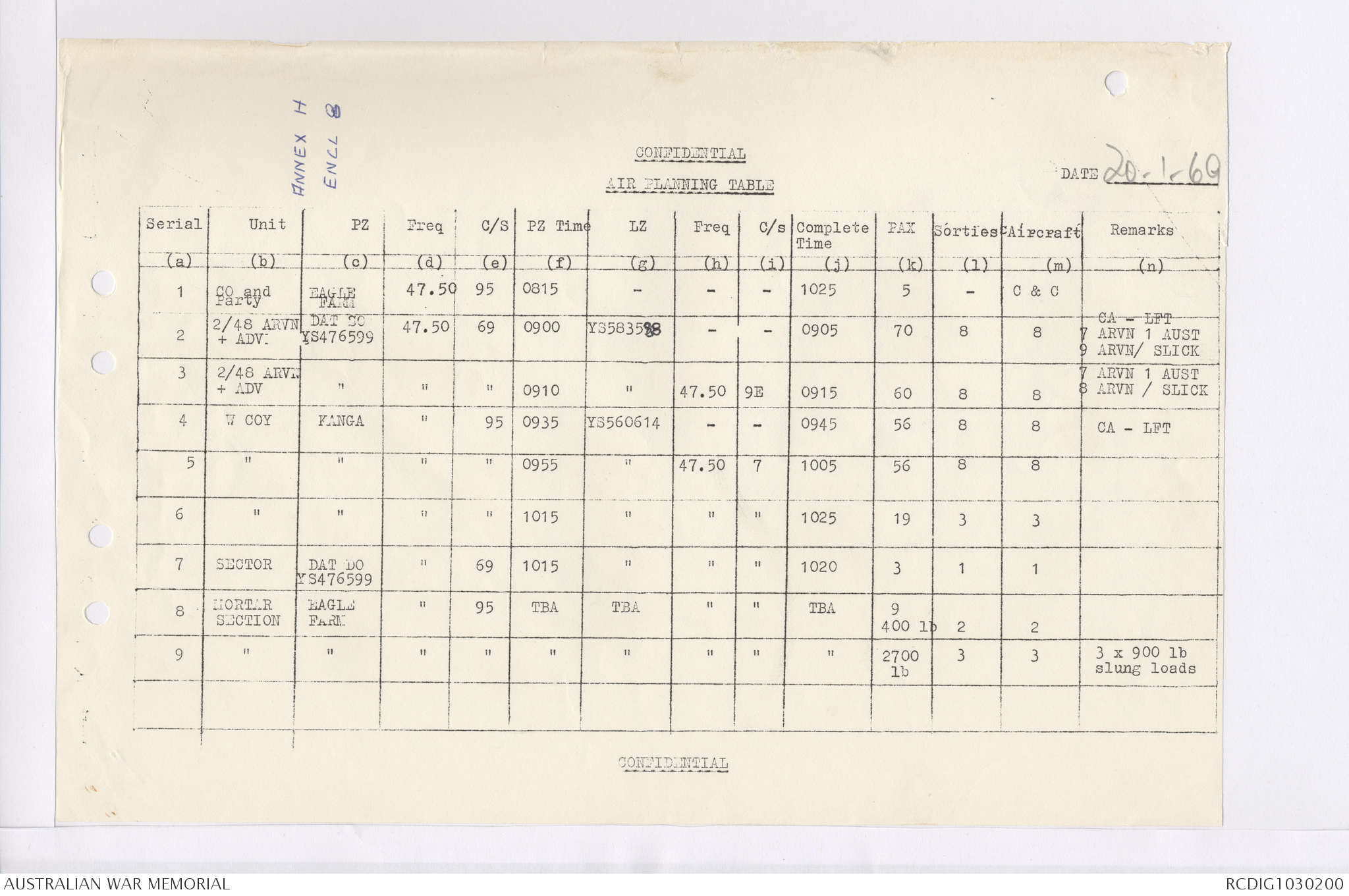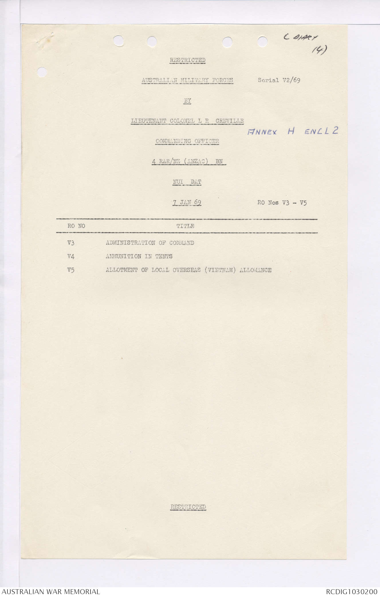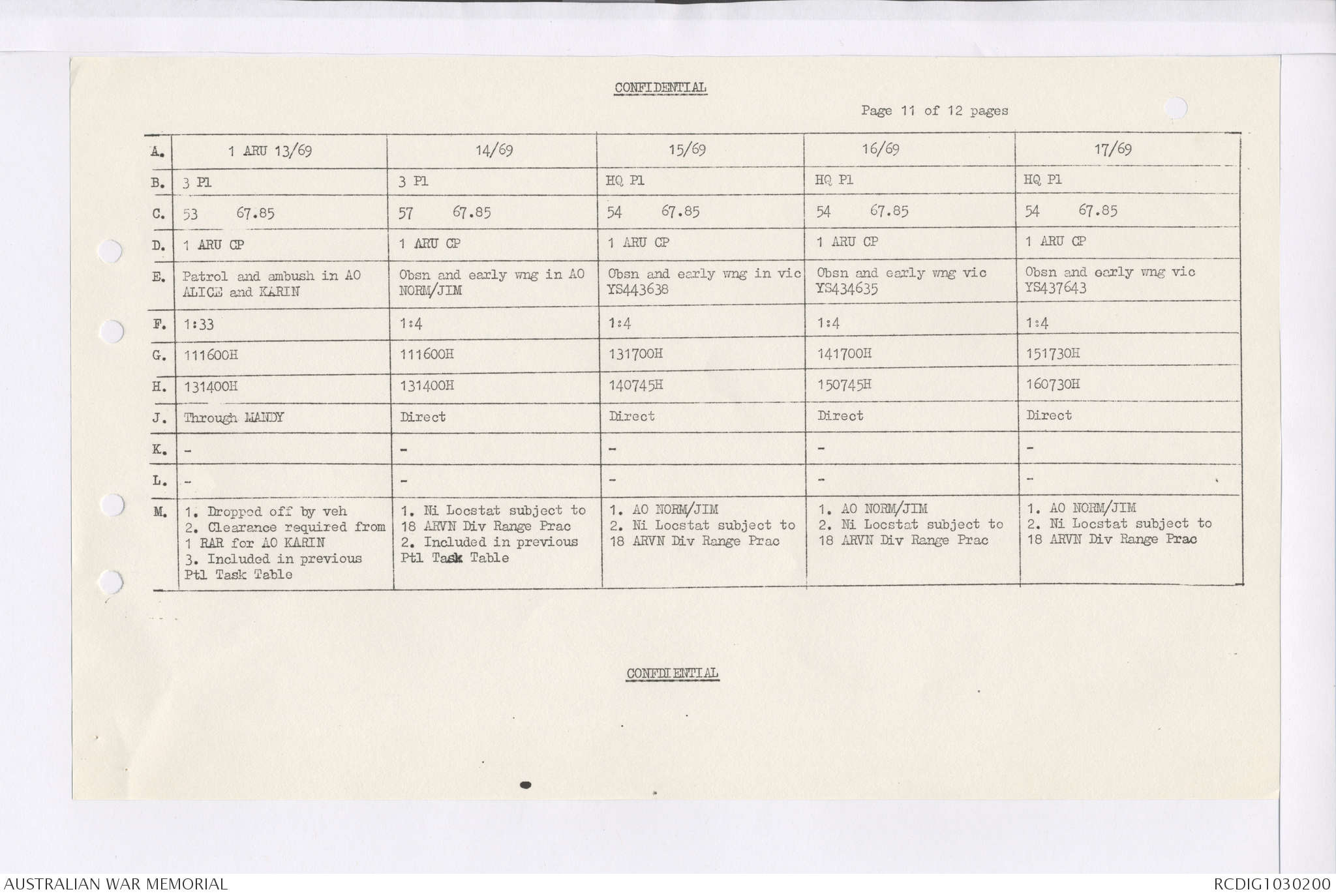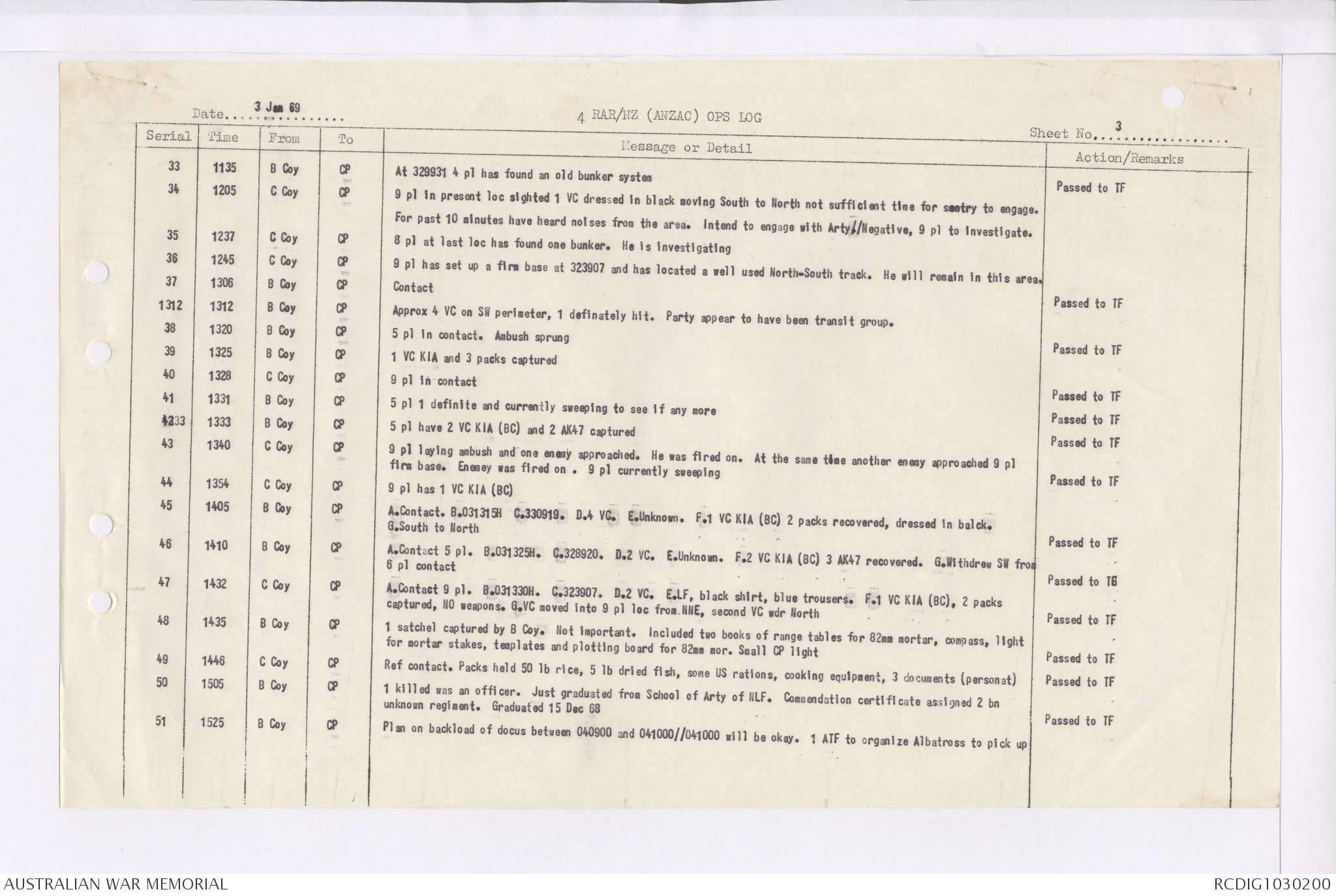 AWM95 7/4/35 - 1-31 January 1969, Narrative, Duty Officer's log, Maps, Annexes