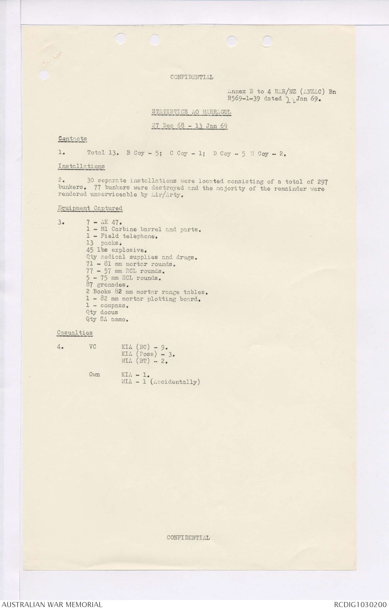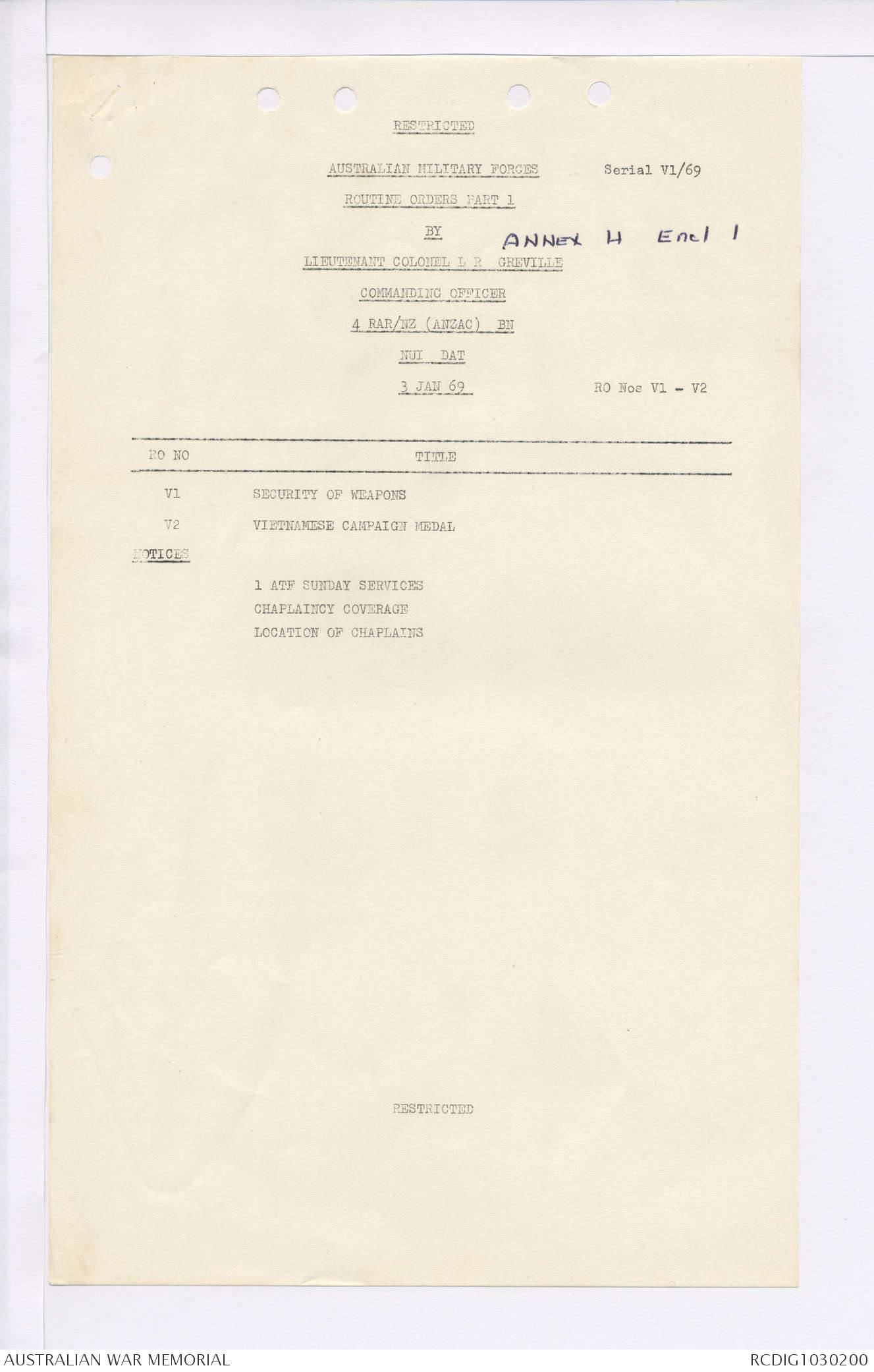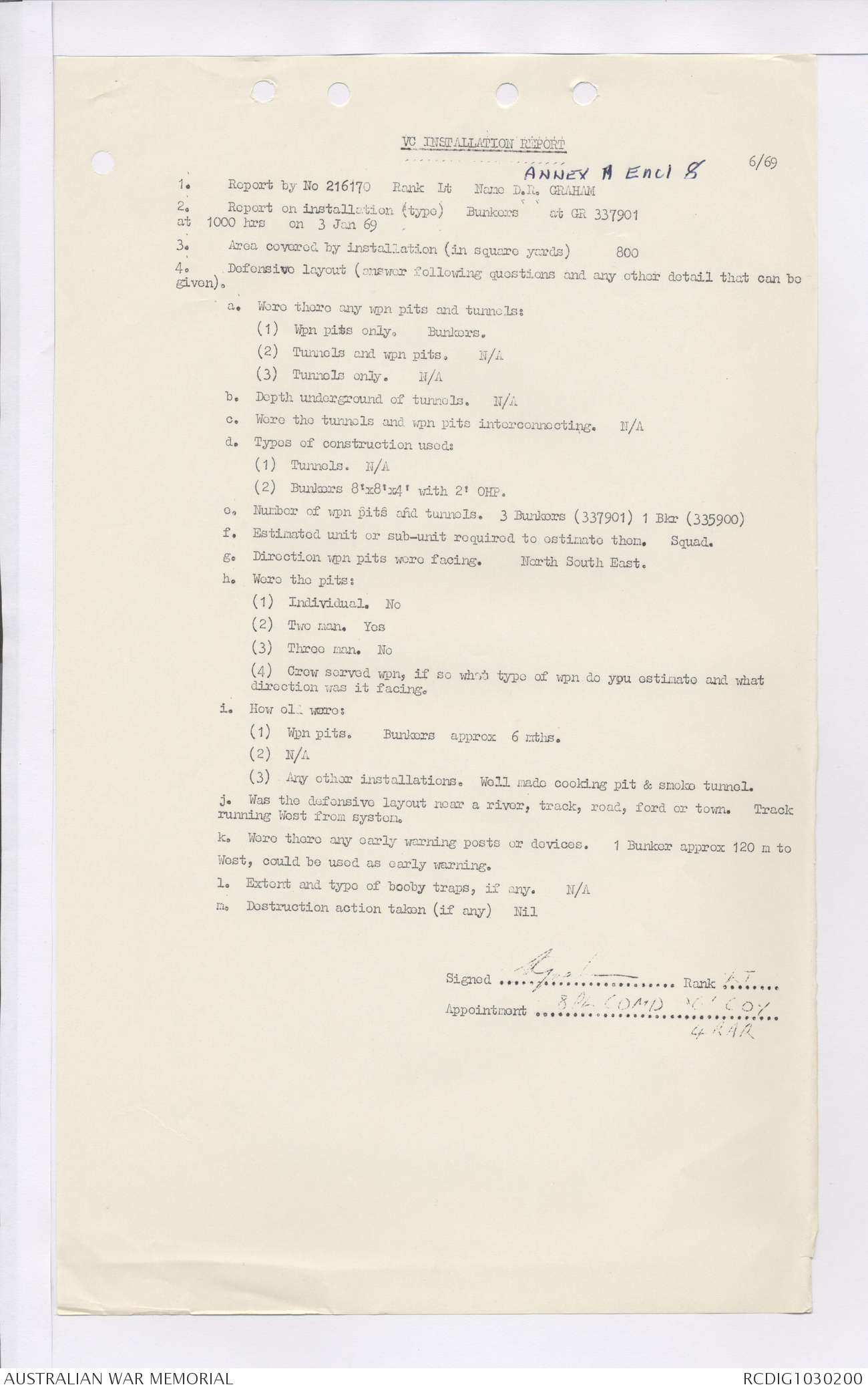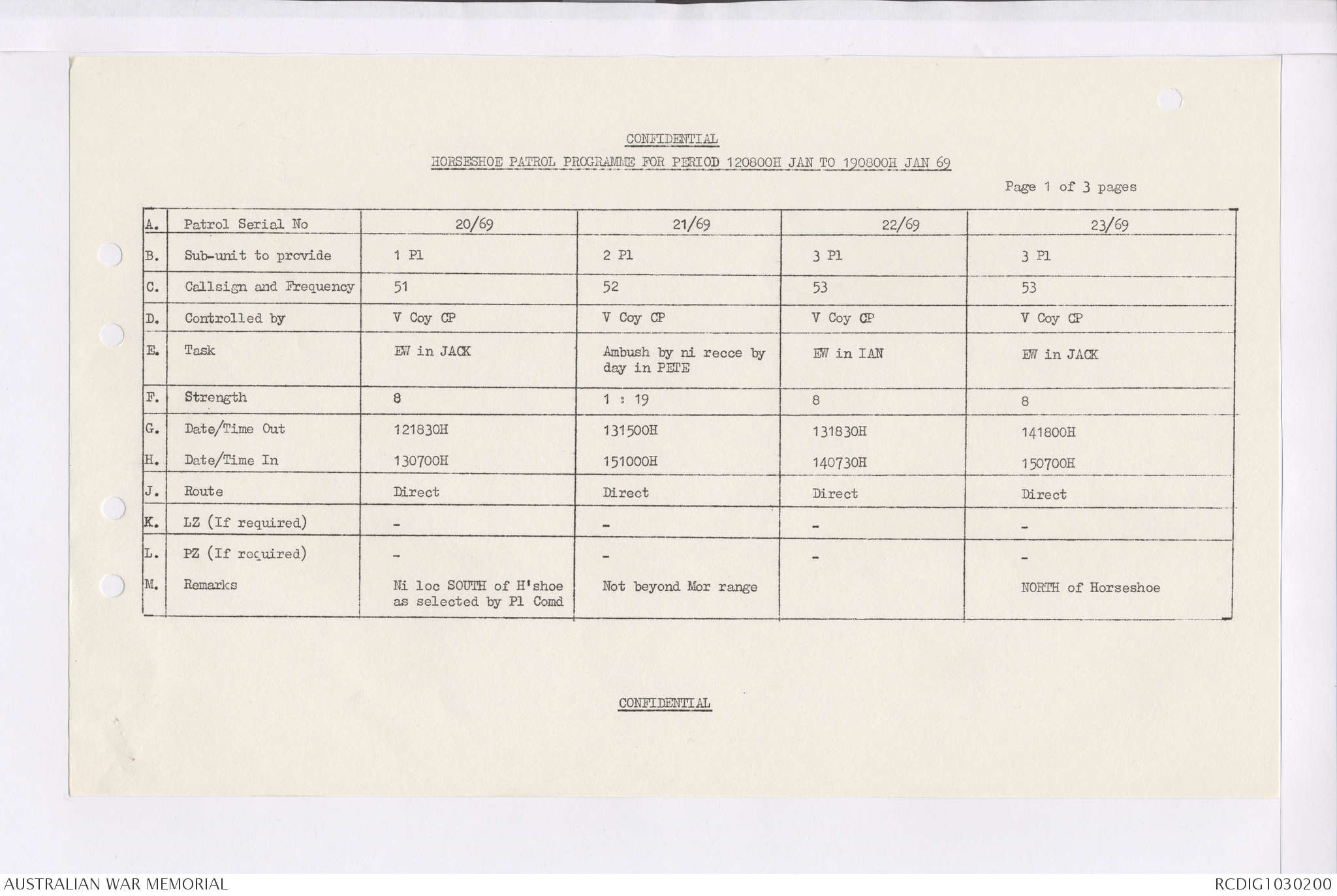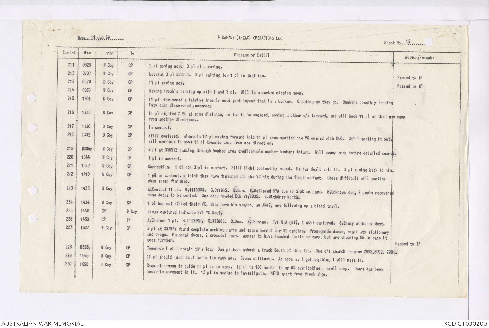AWM95 7/4/35 - 1-31 January 1969, Narrative, Duty Officer's log, Maps, Annexes