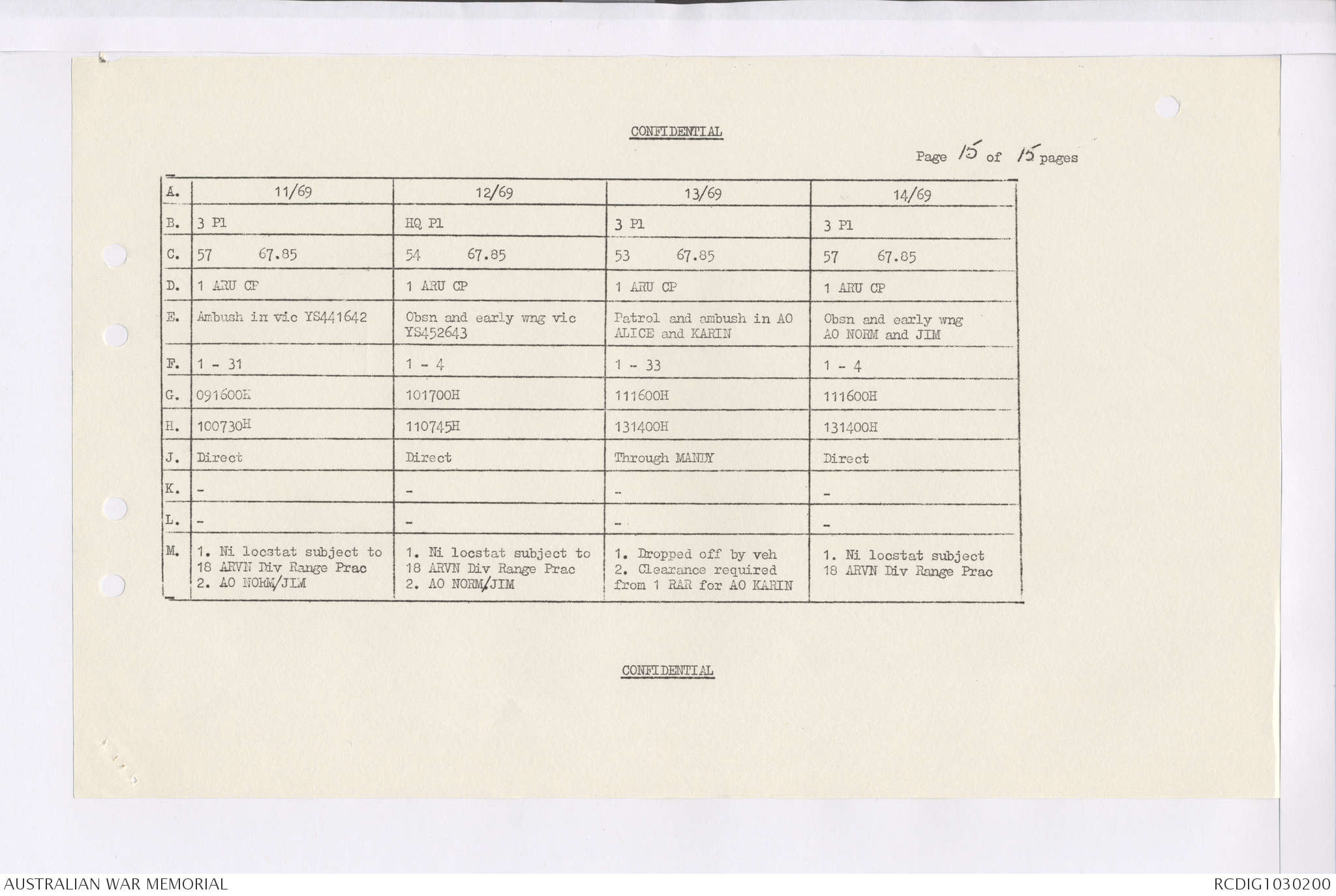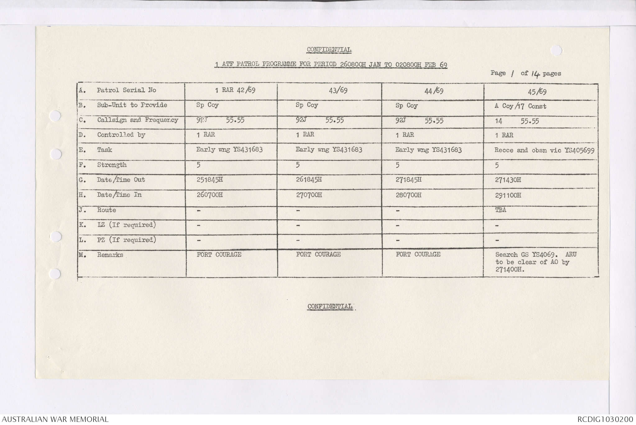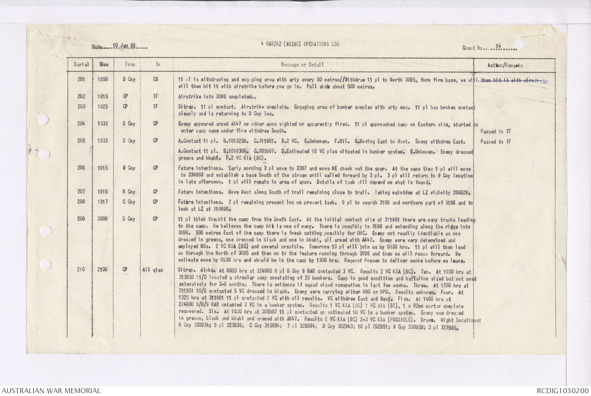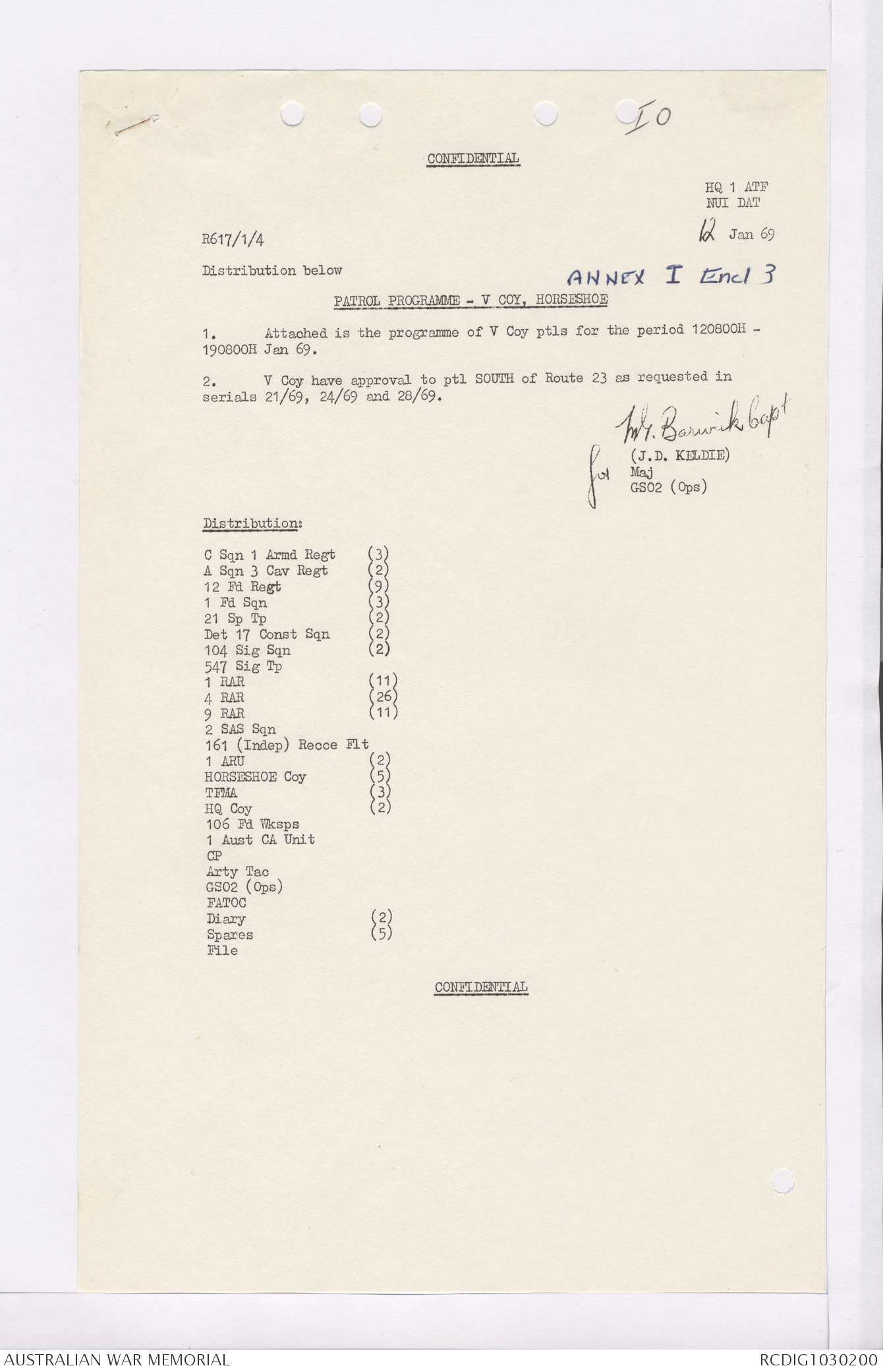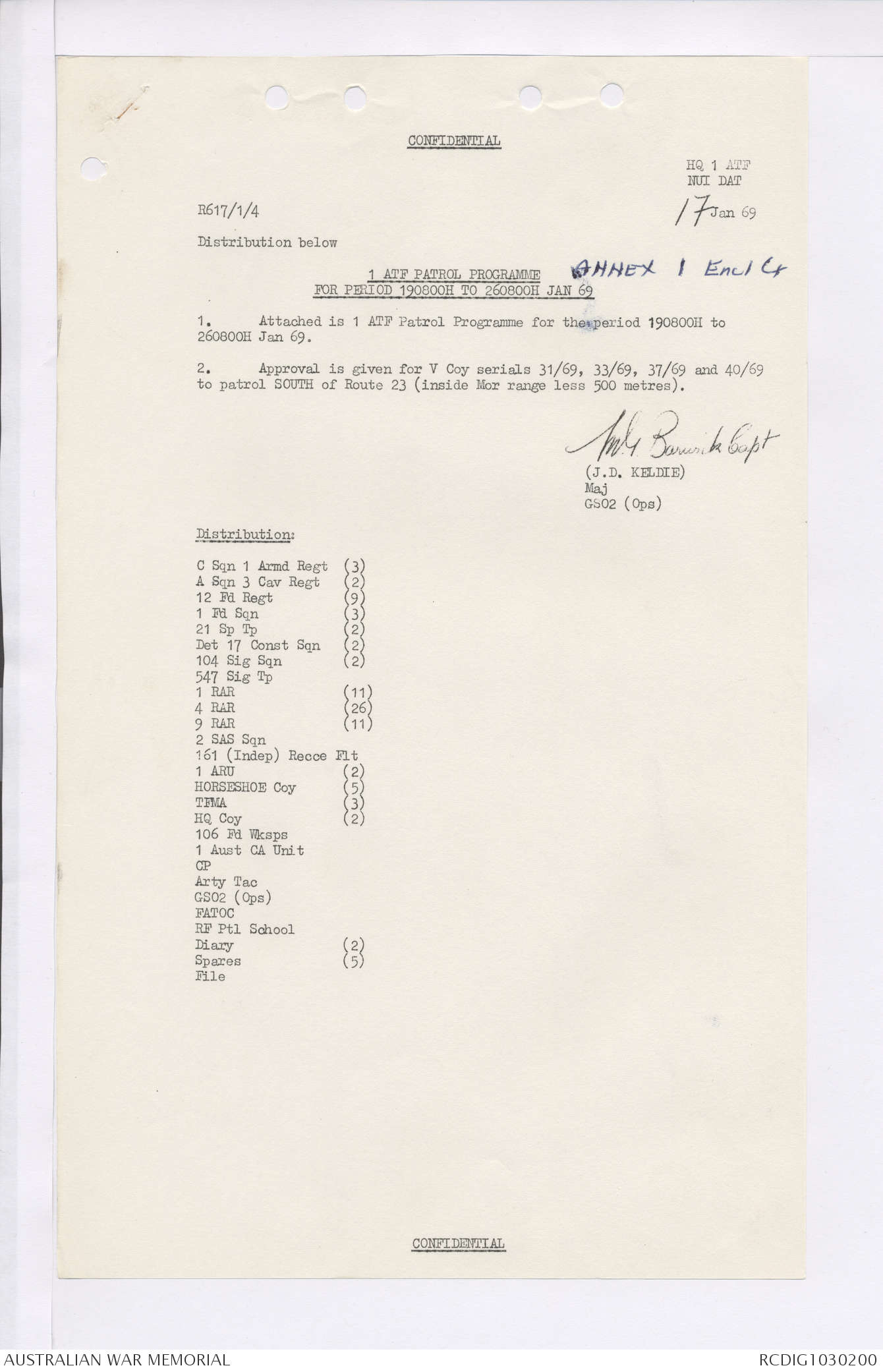 AWM95 7/4/35 - 1-31 January 1969, Narrative, Duty Officer's log, Maps, Annexes