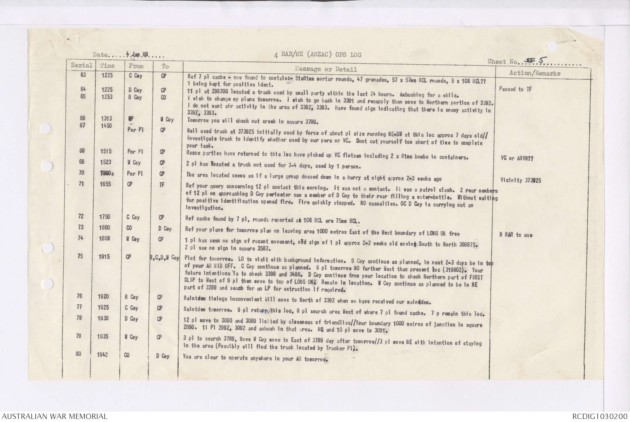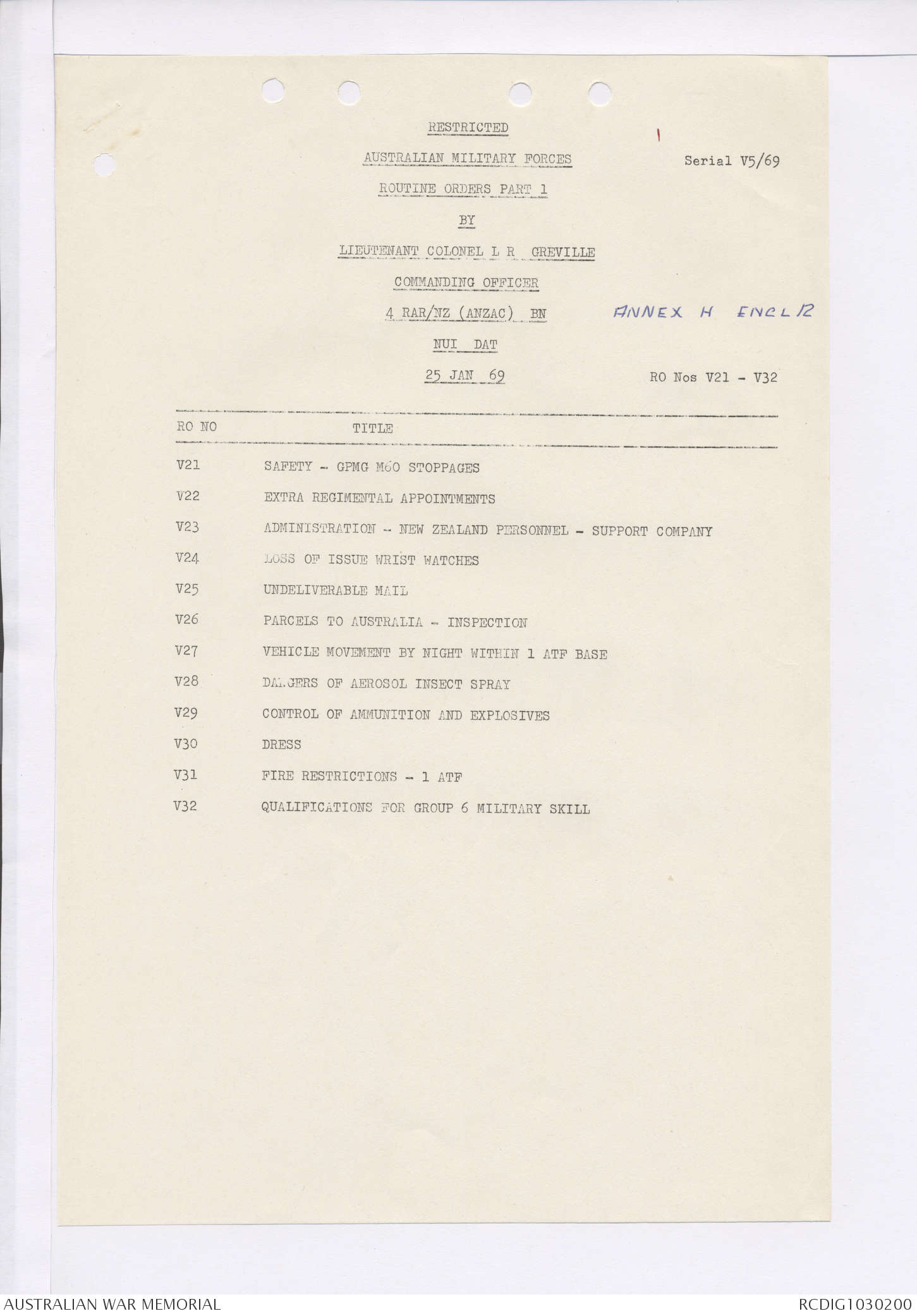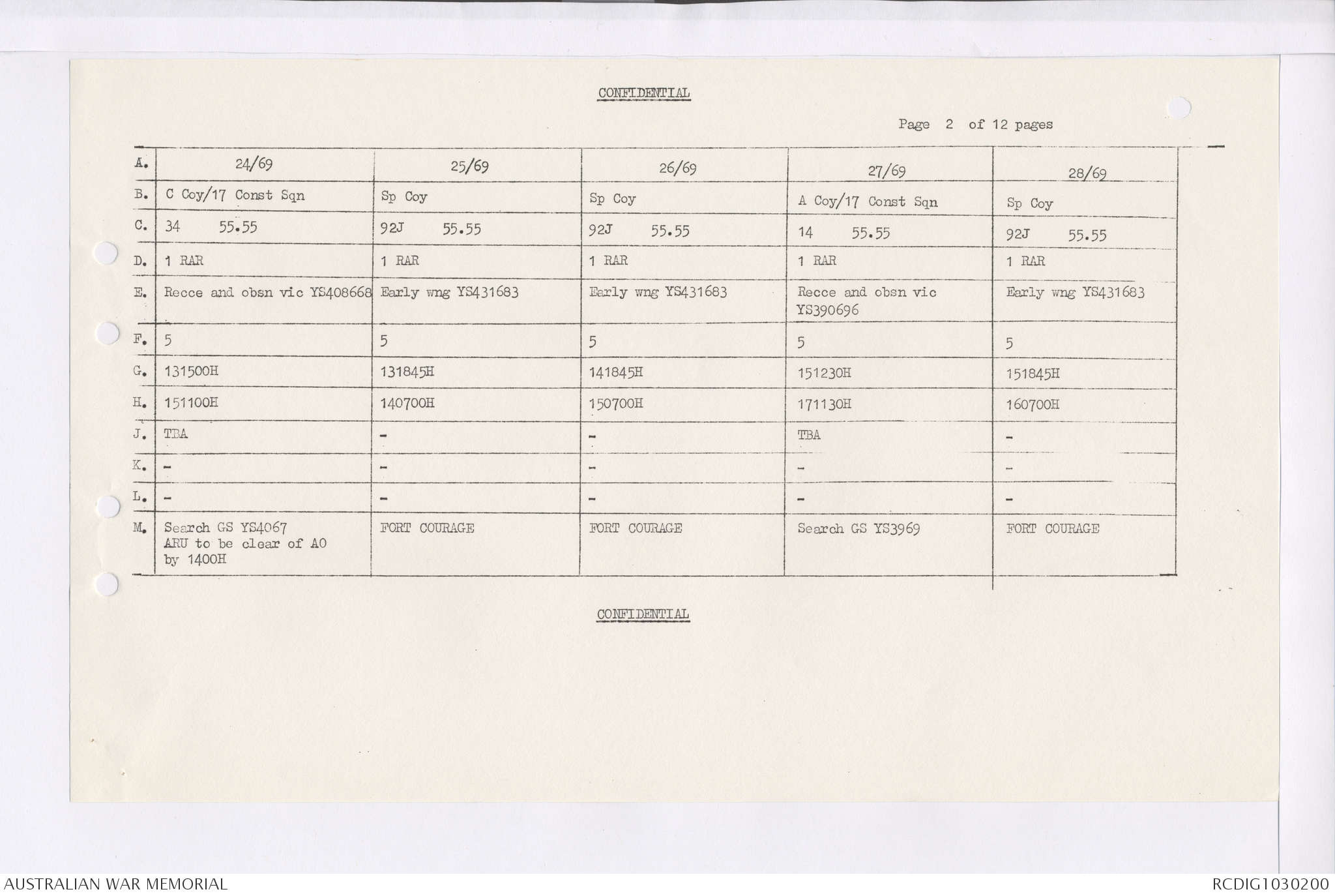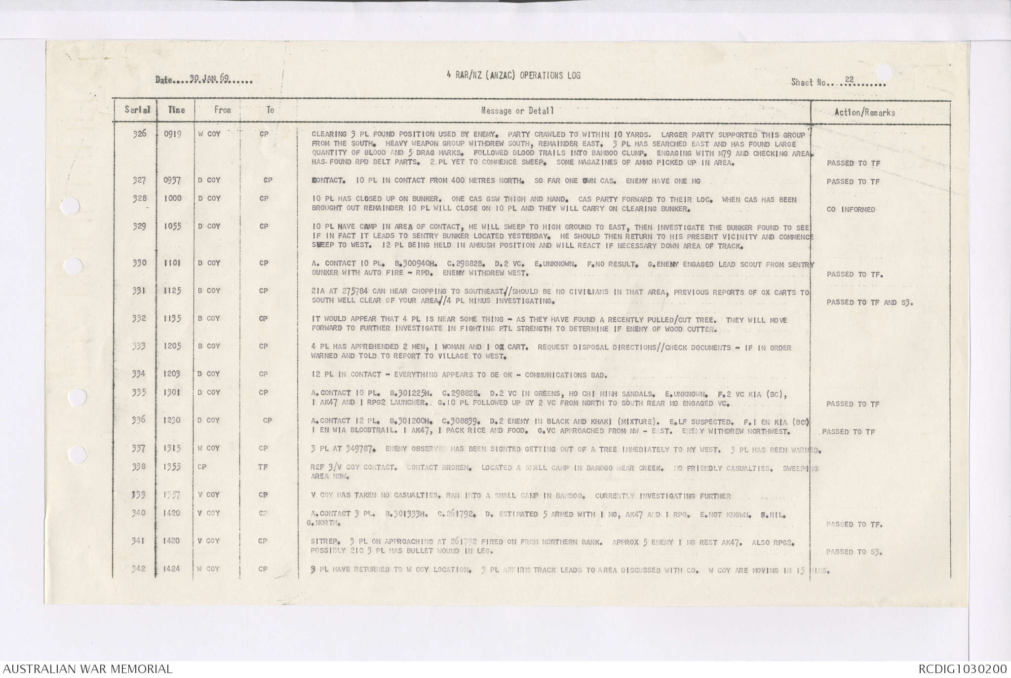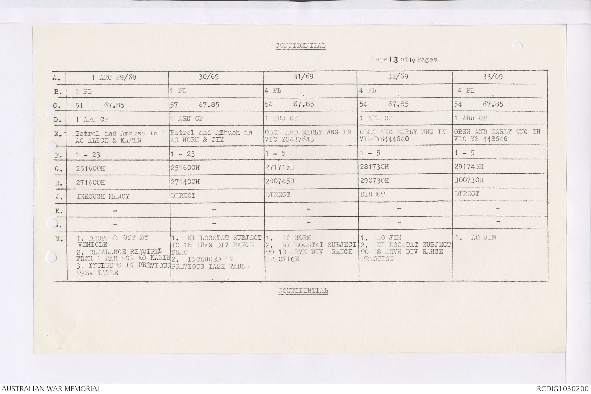 AWM95 7/4/35 - 1-31 January 1969, Narrative, Duty Officer's log, Maps, Annexes