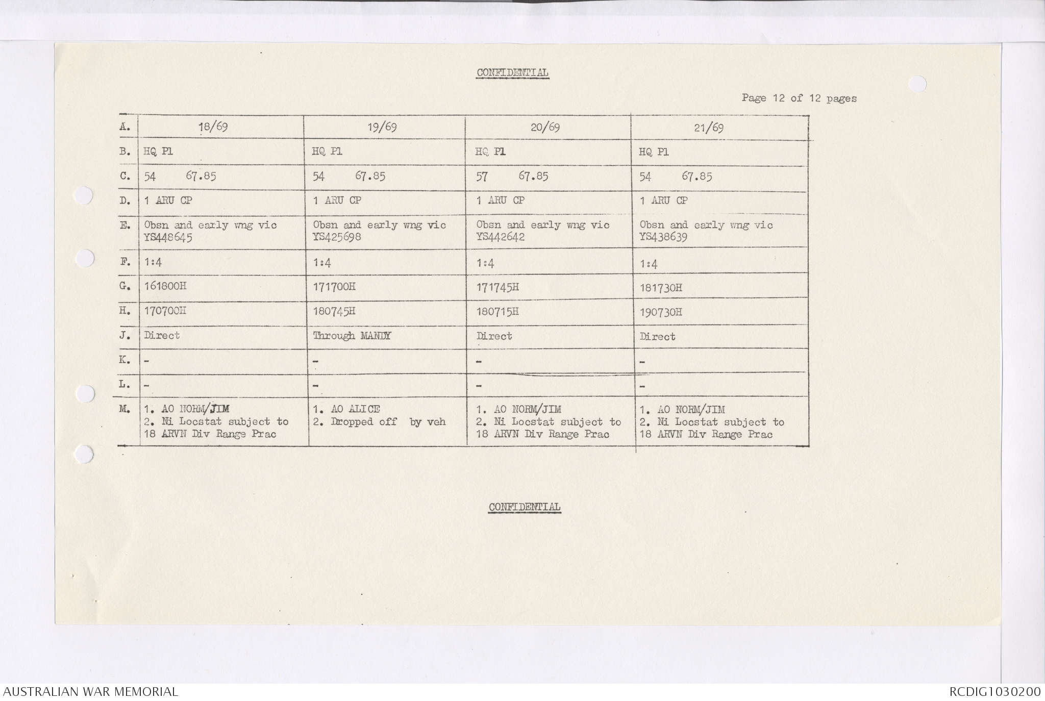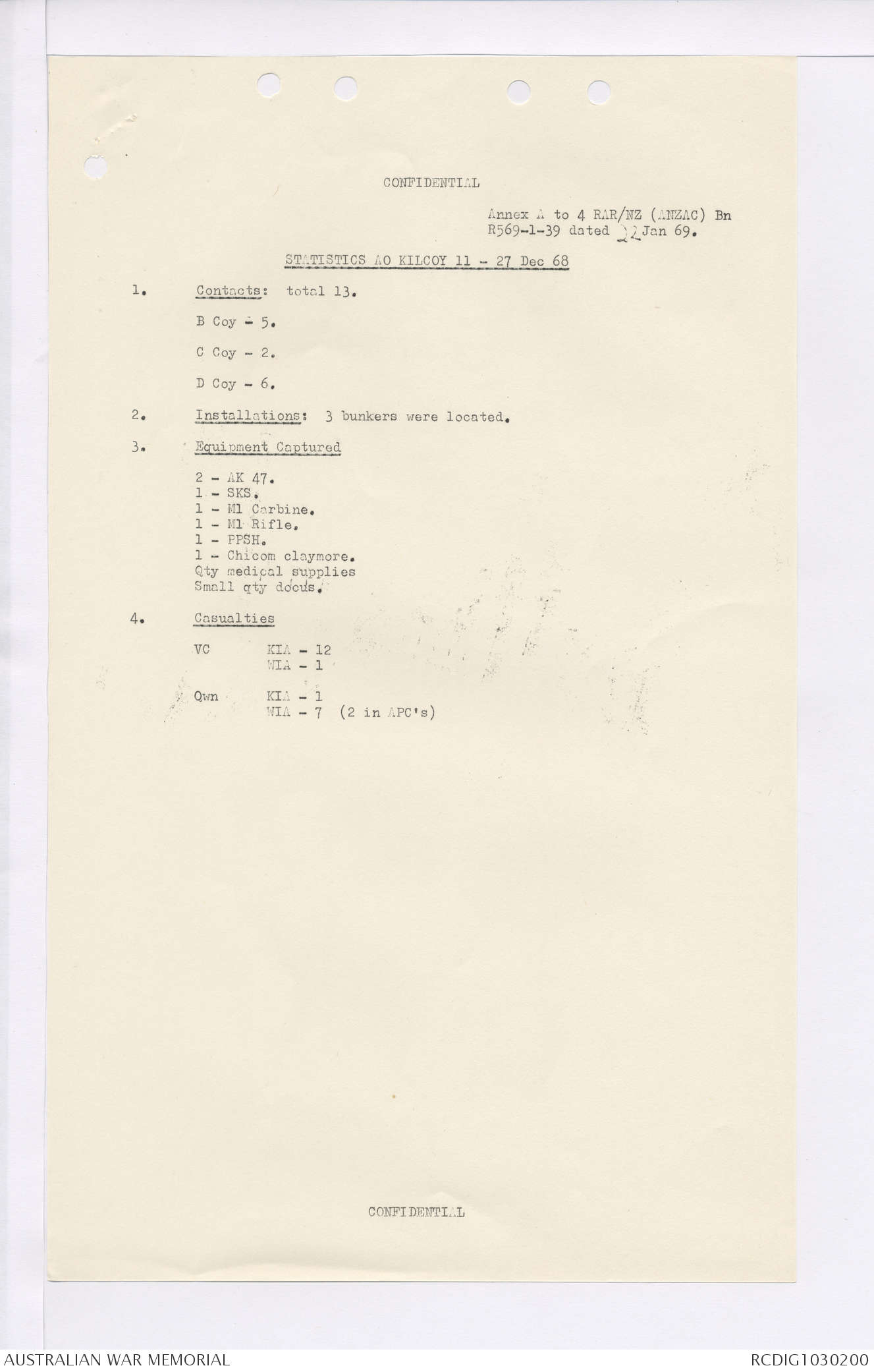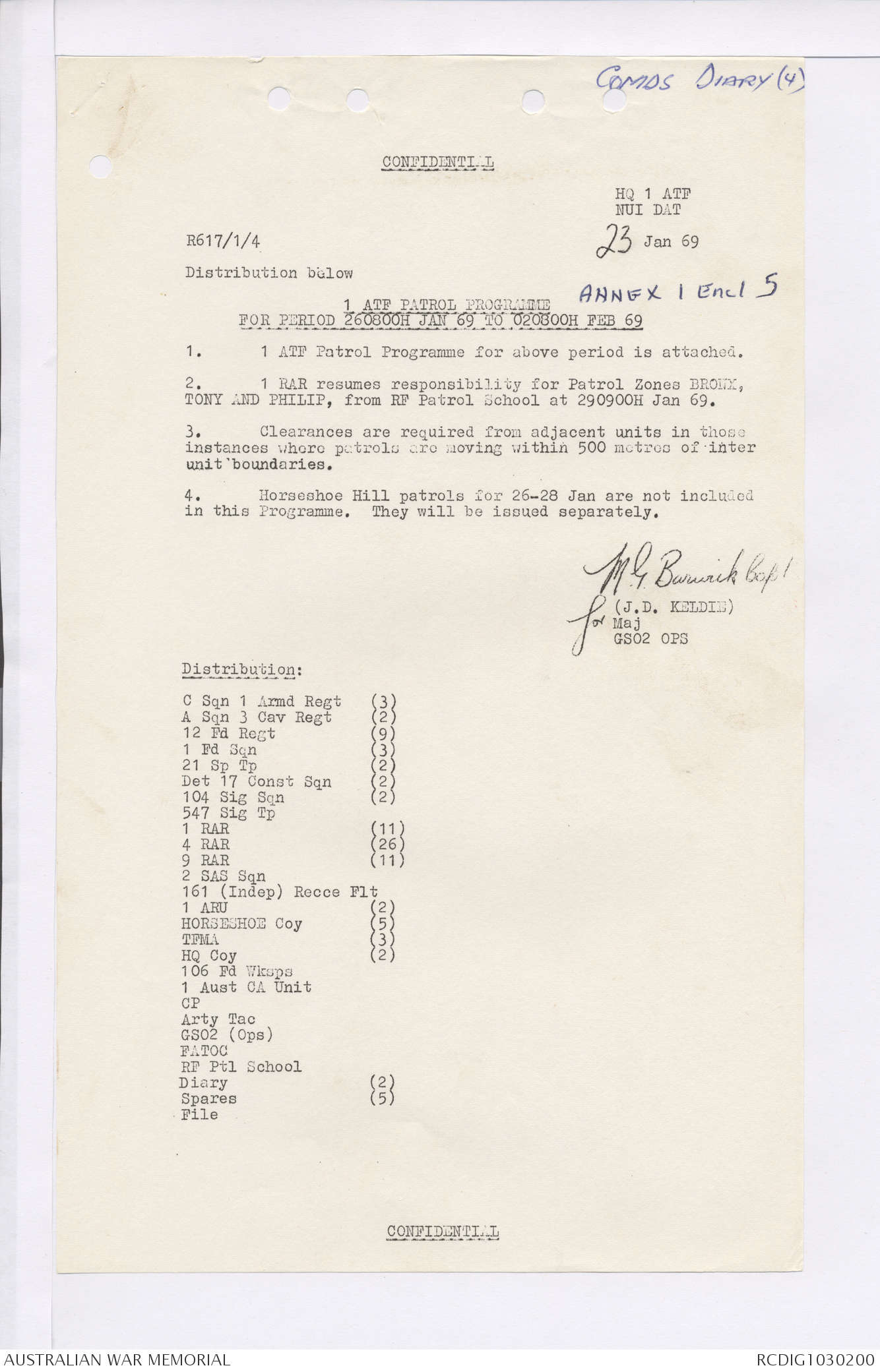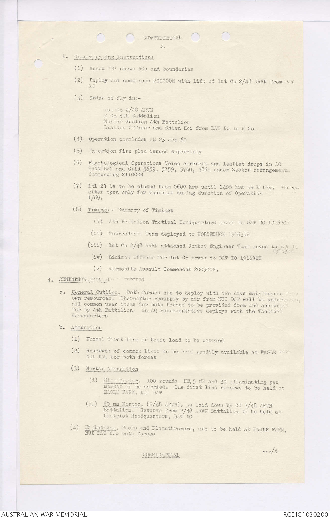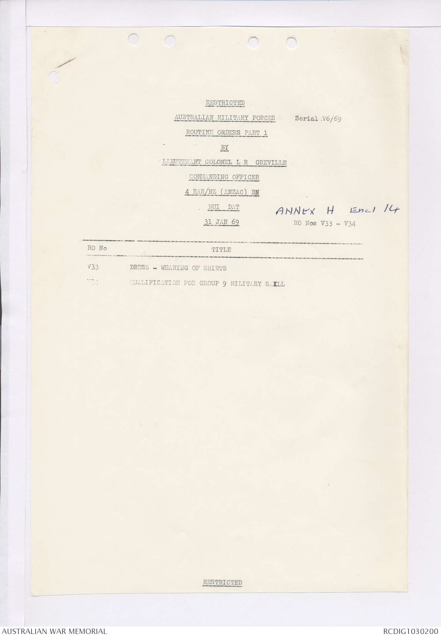 AWM95 7/4/35 - 1-31 January 1969, Narrative, Duty Officer's log, Maps, Annexes