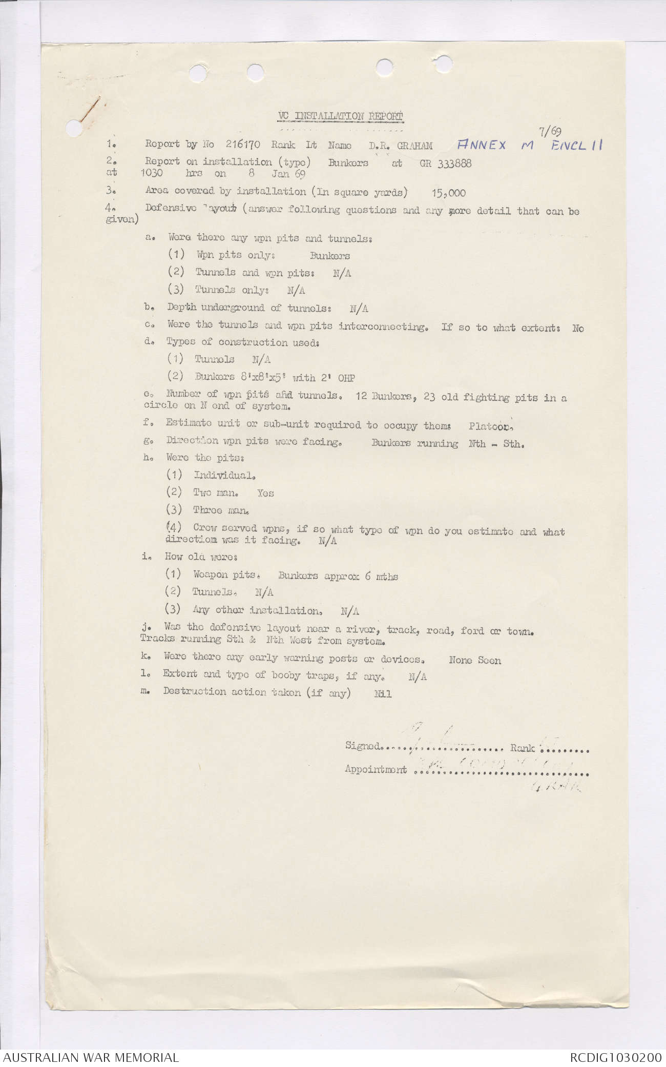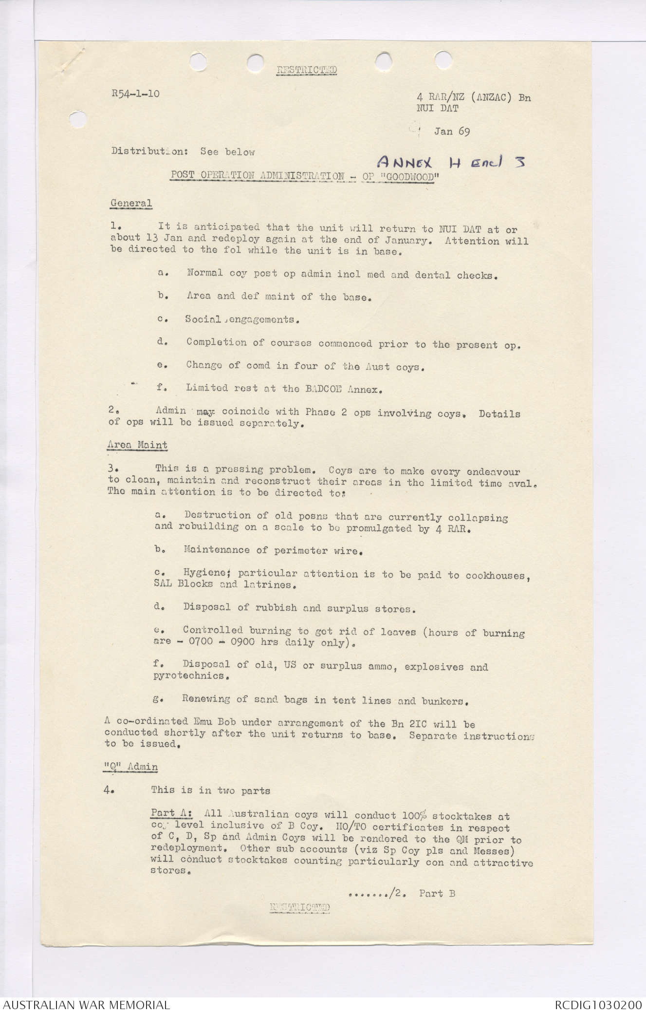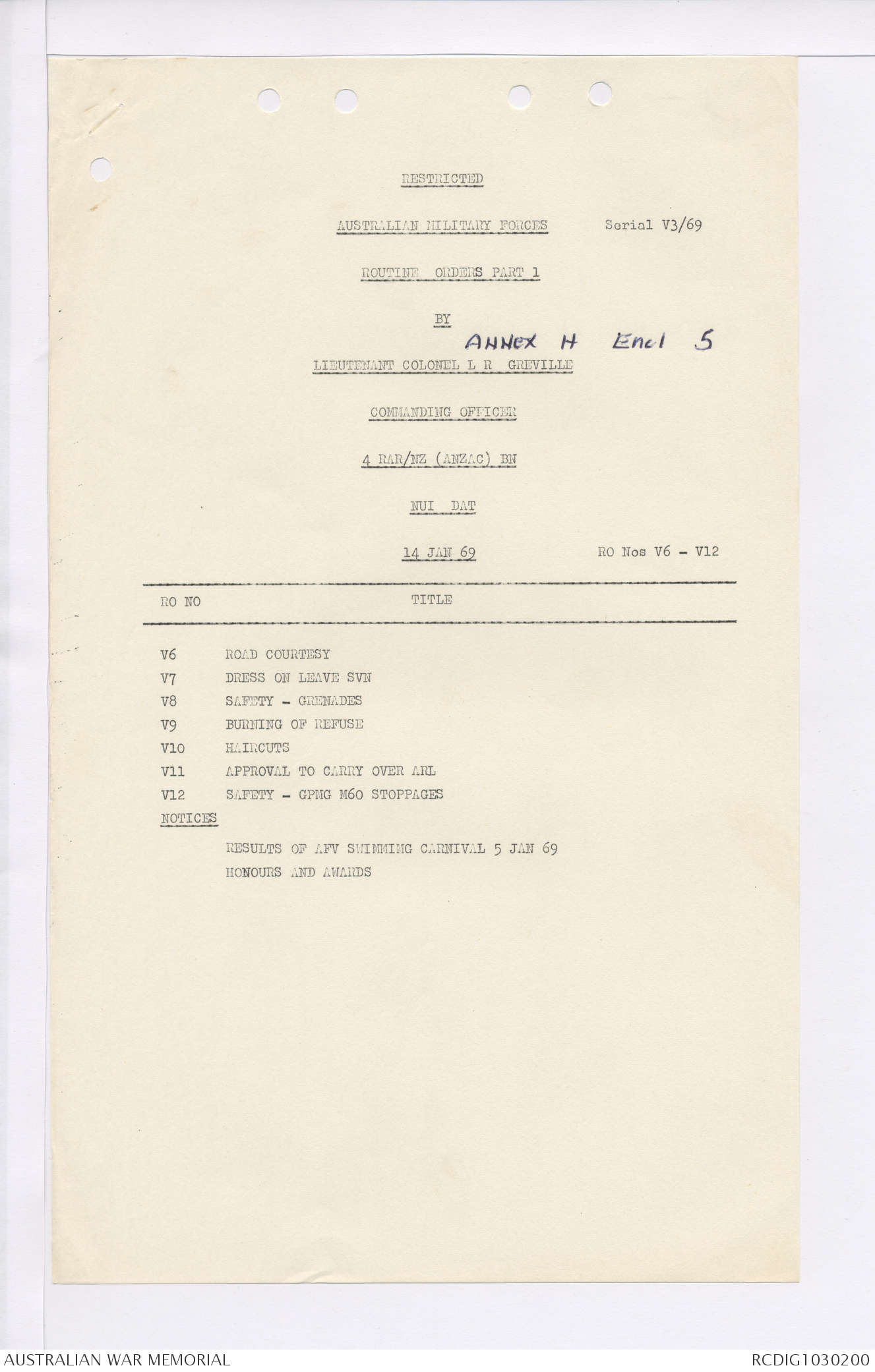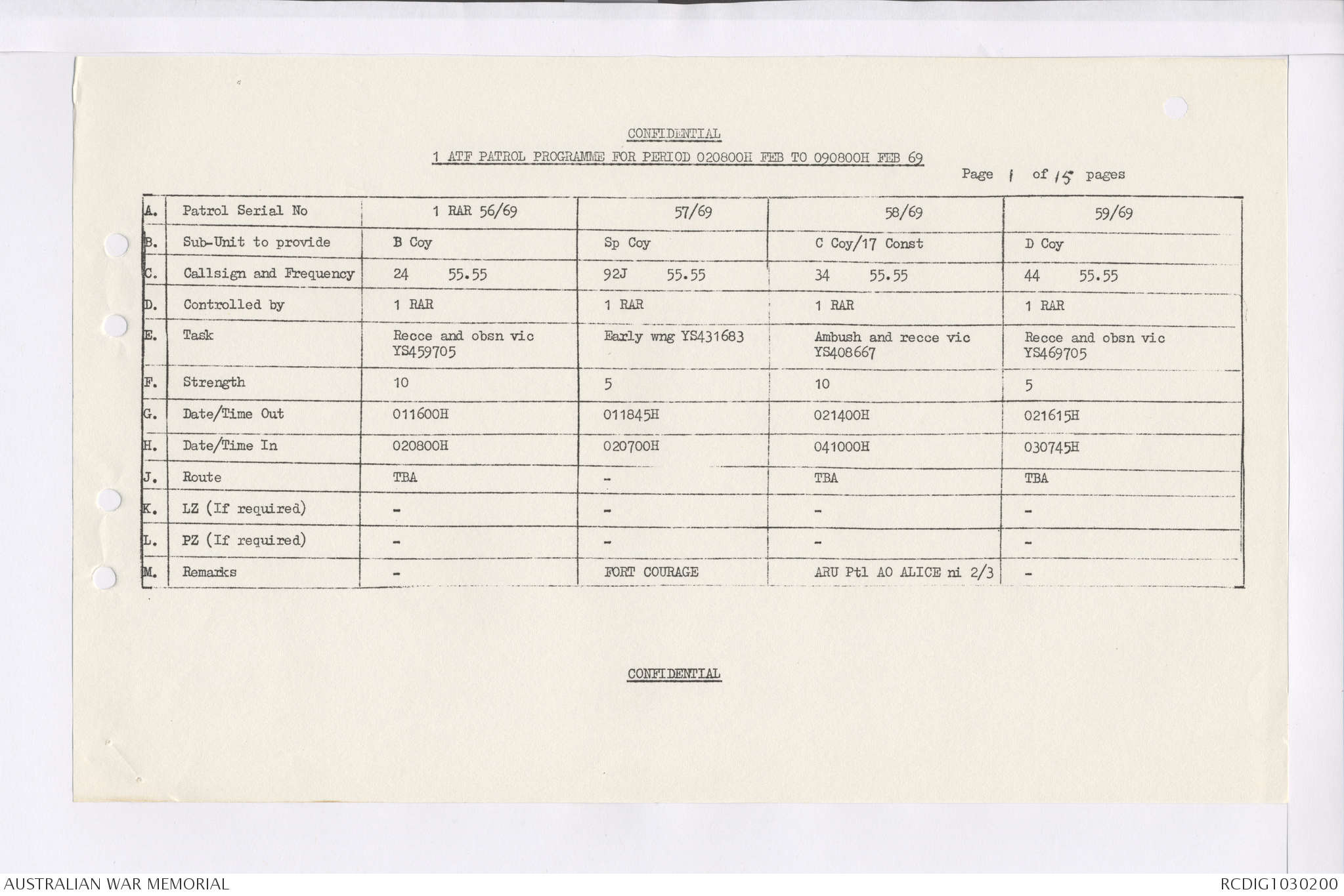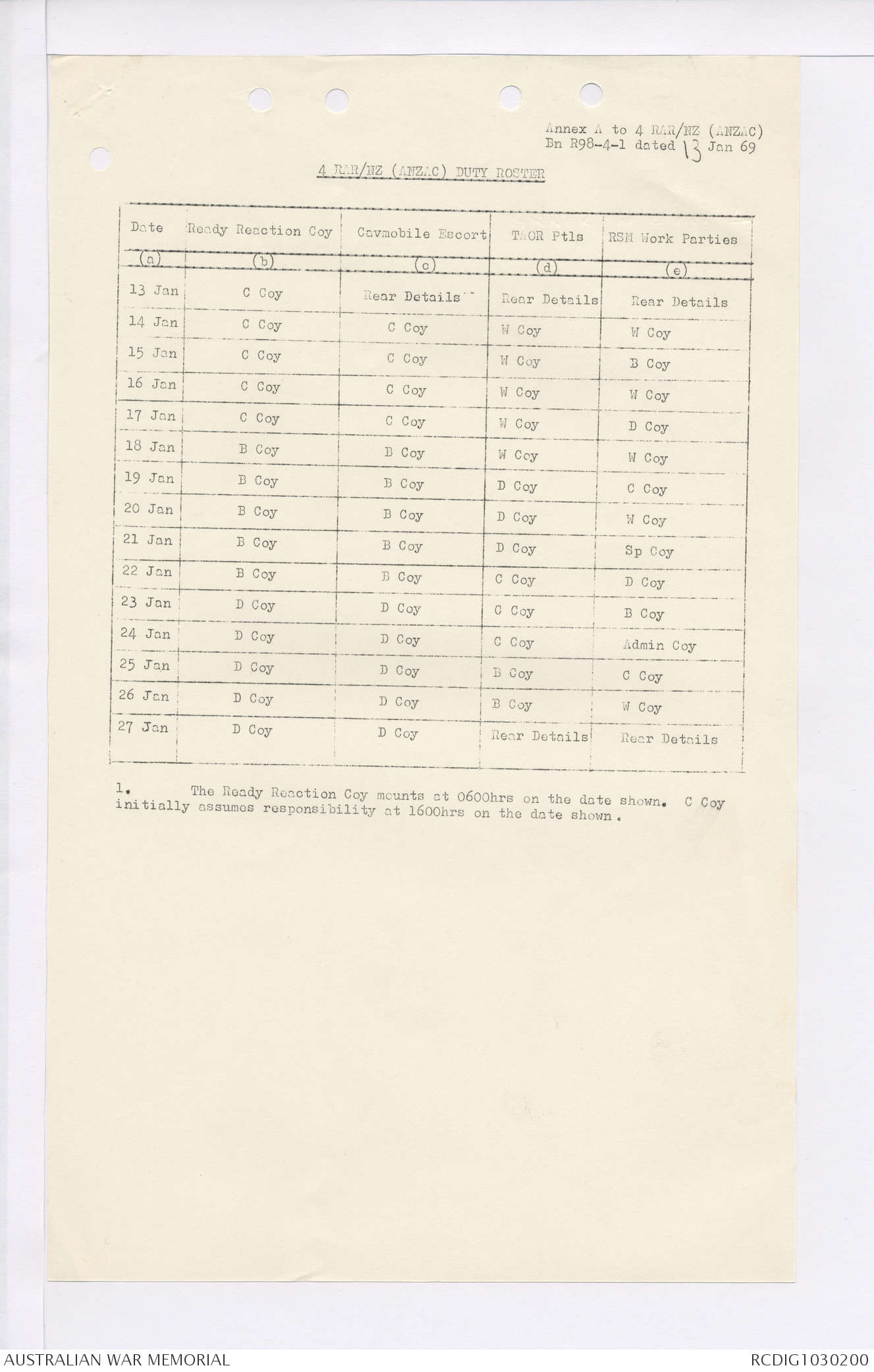 AWM95 7/4/35 - 1-31 January 1969, Narrative, Duty Officer's log, Maps, Annexes