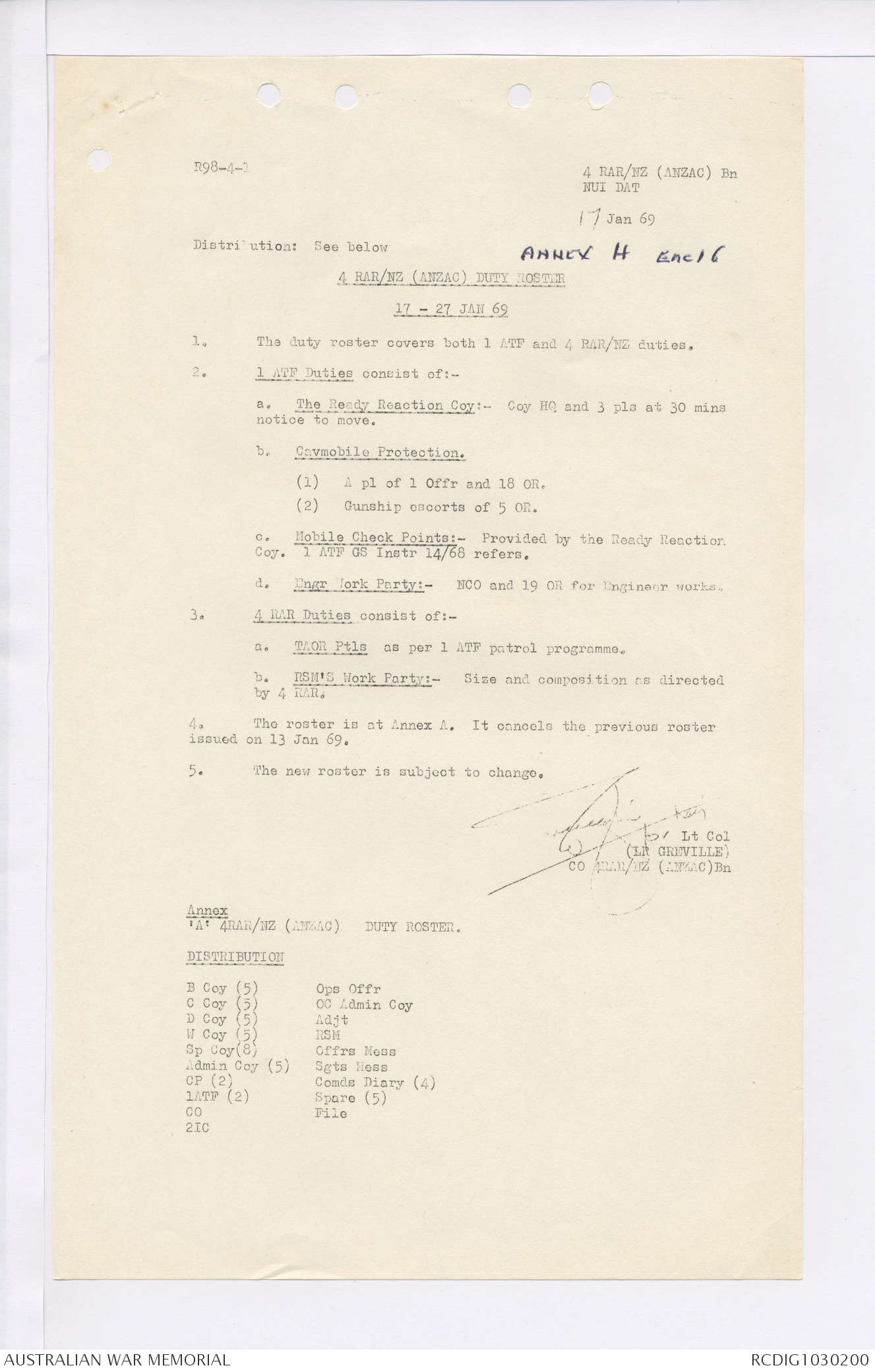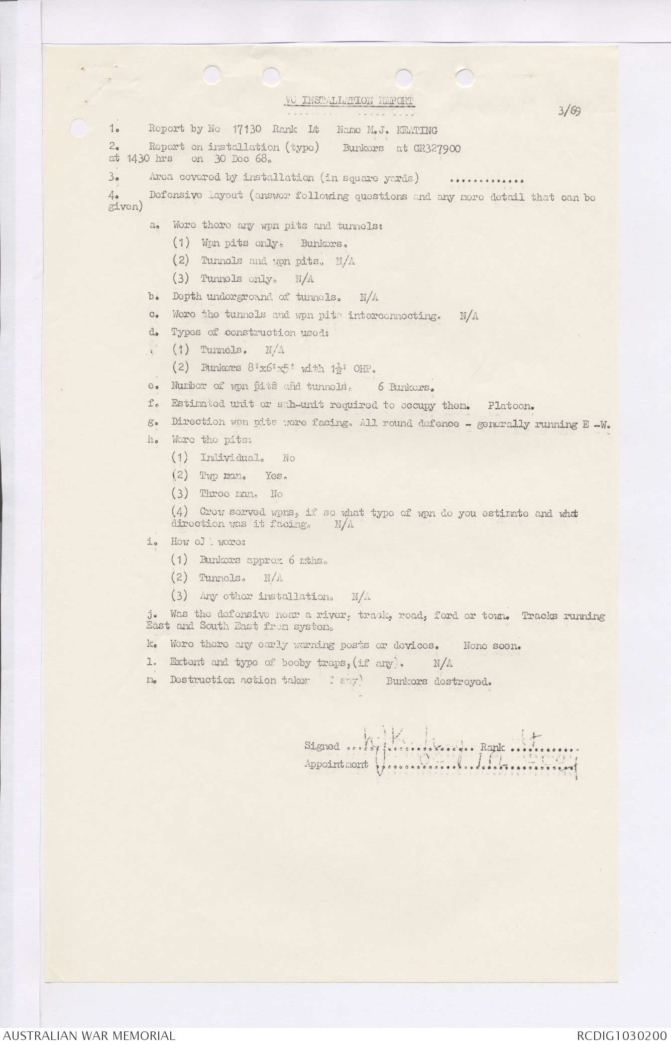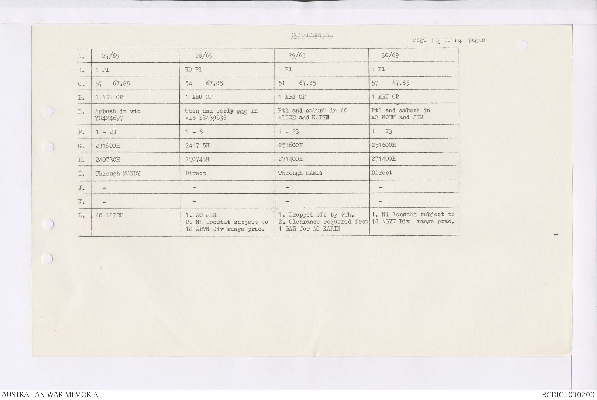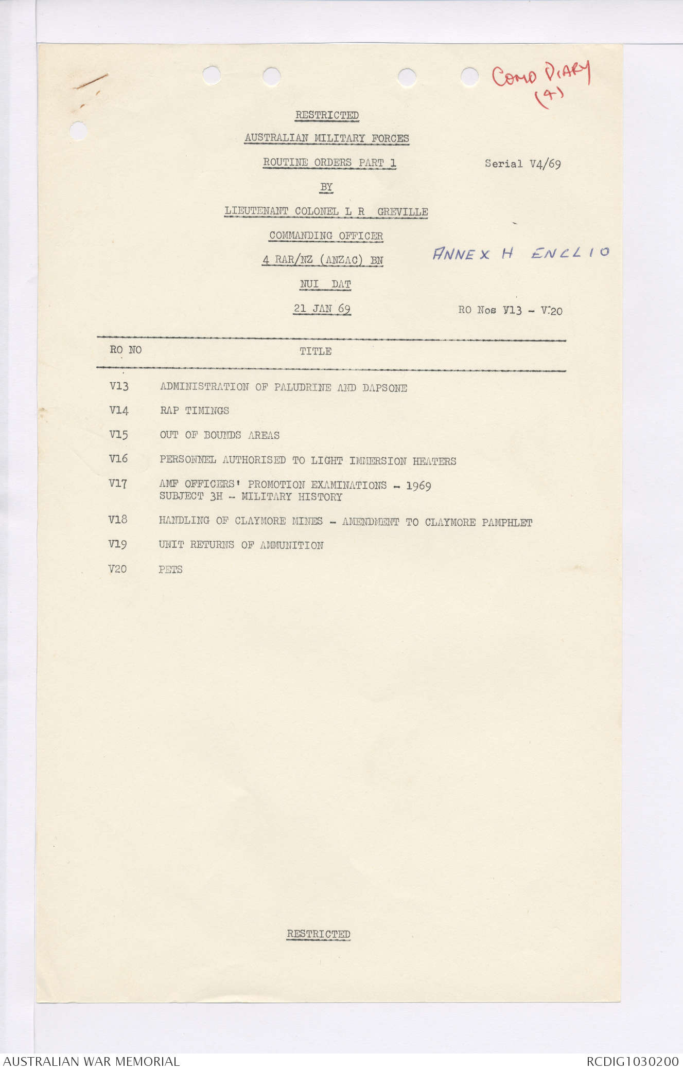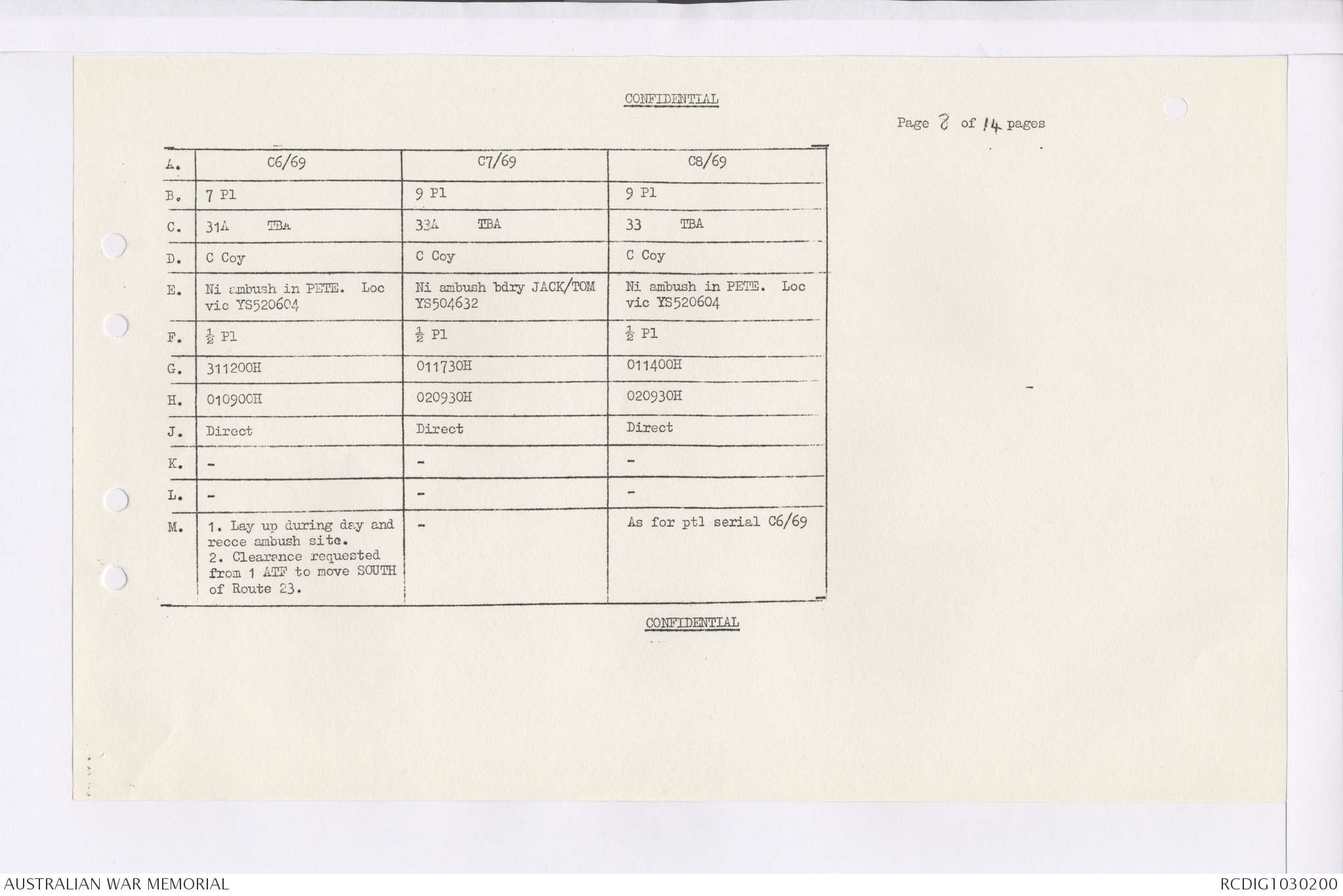 AWM95 7/4/35 - 1-31 January 1969, Narrative, Duty Officer's log, Maps, Annexes