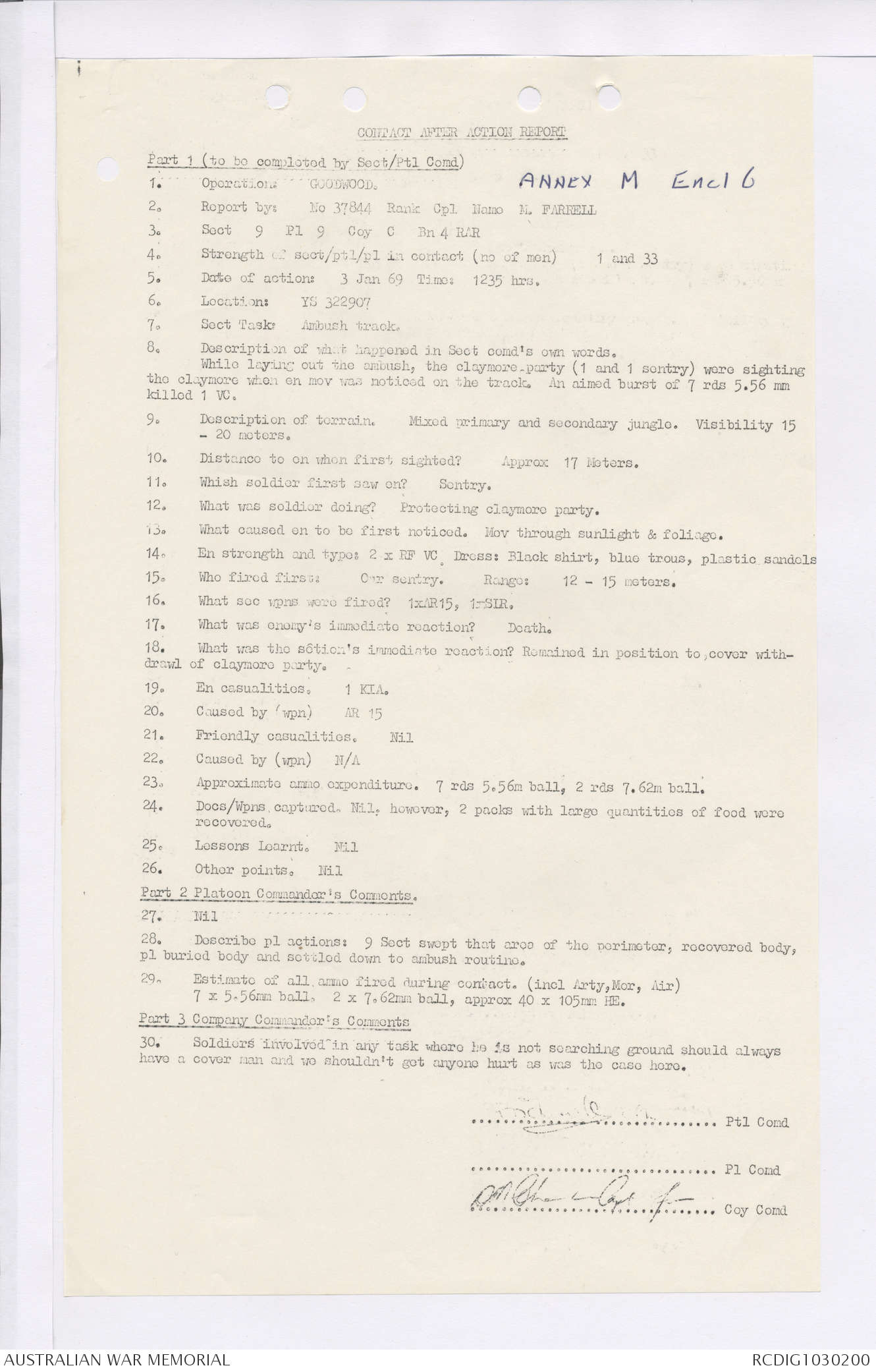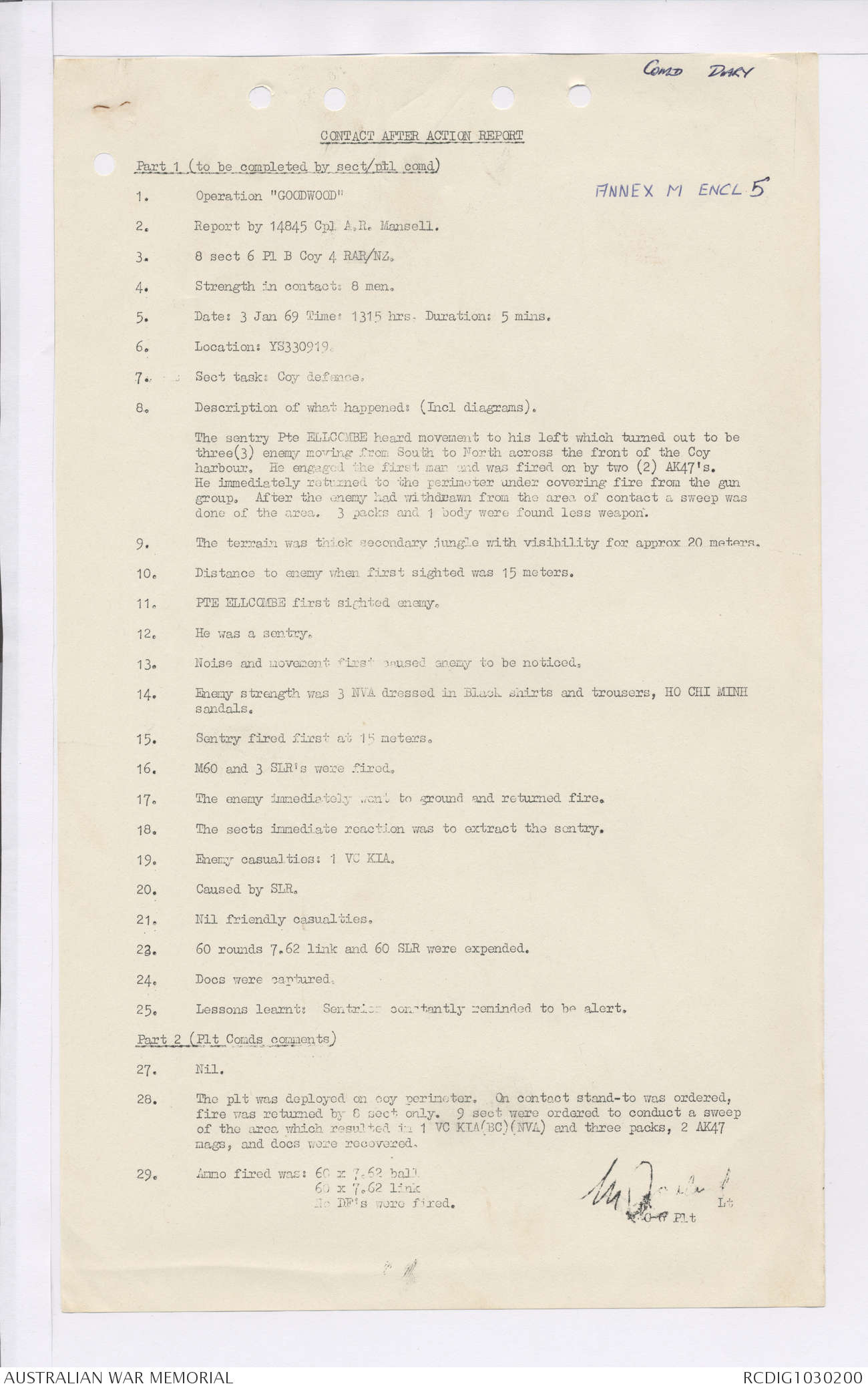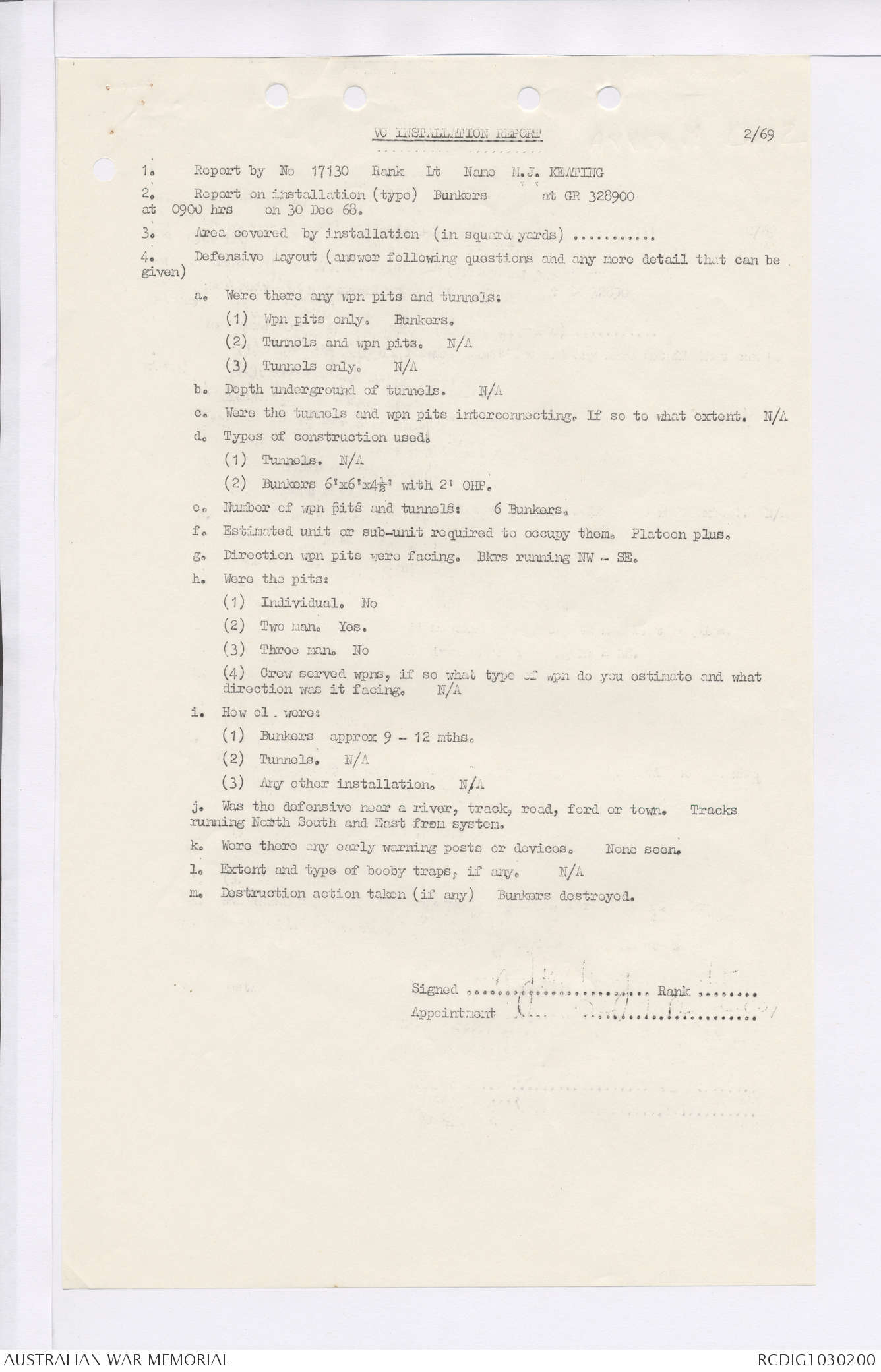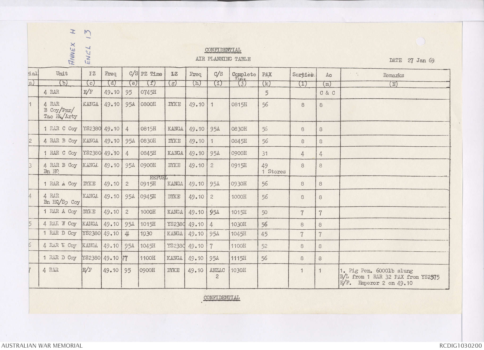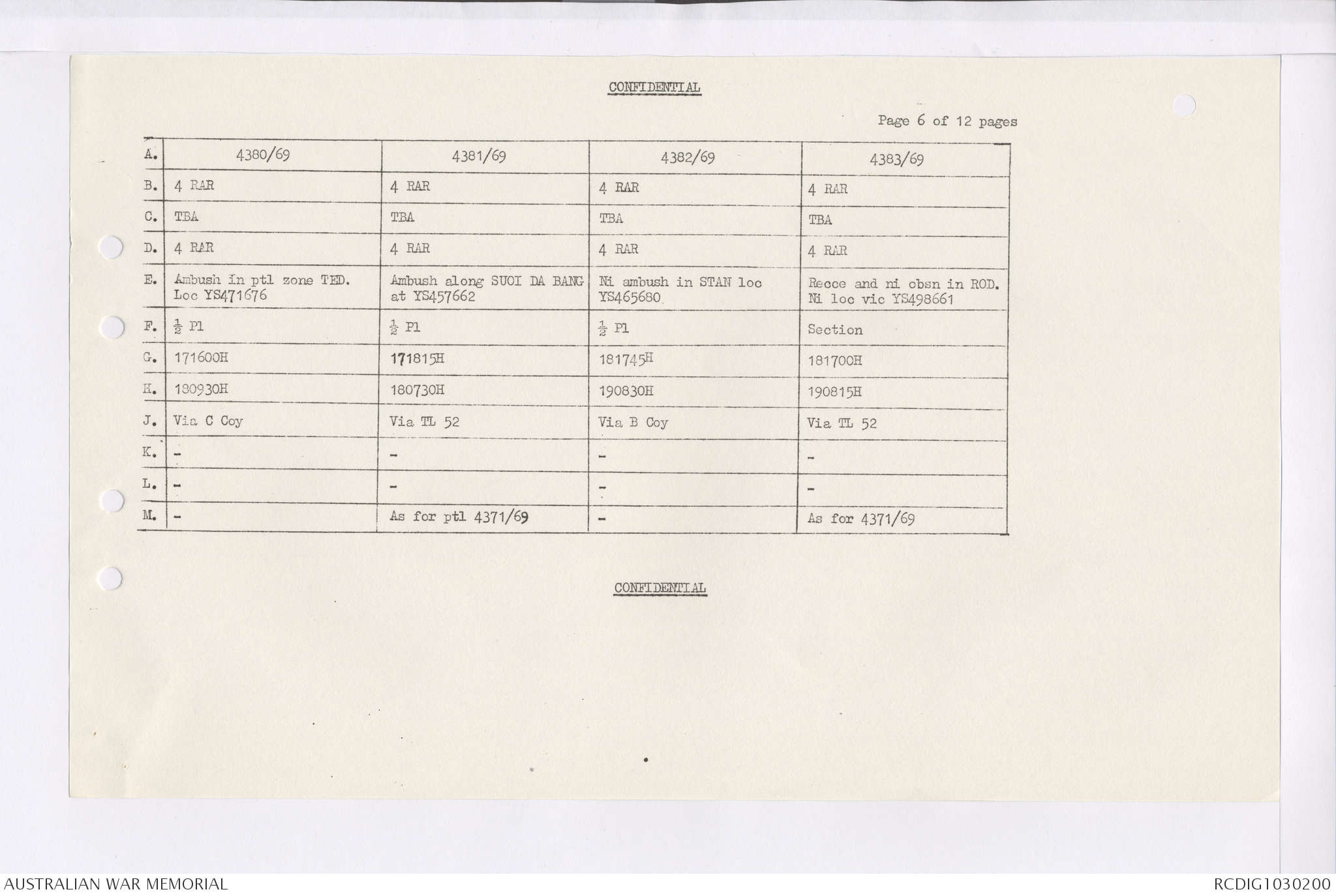 AWM95 7/4/35 - 1-31 January 1969, Narrative, Duty Officer's log, Maps, Annexes
