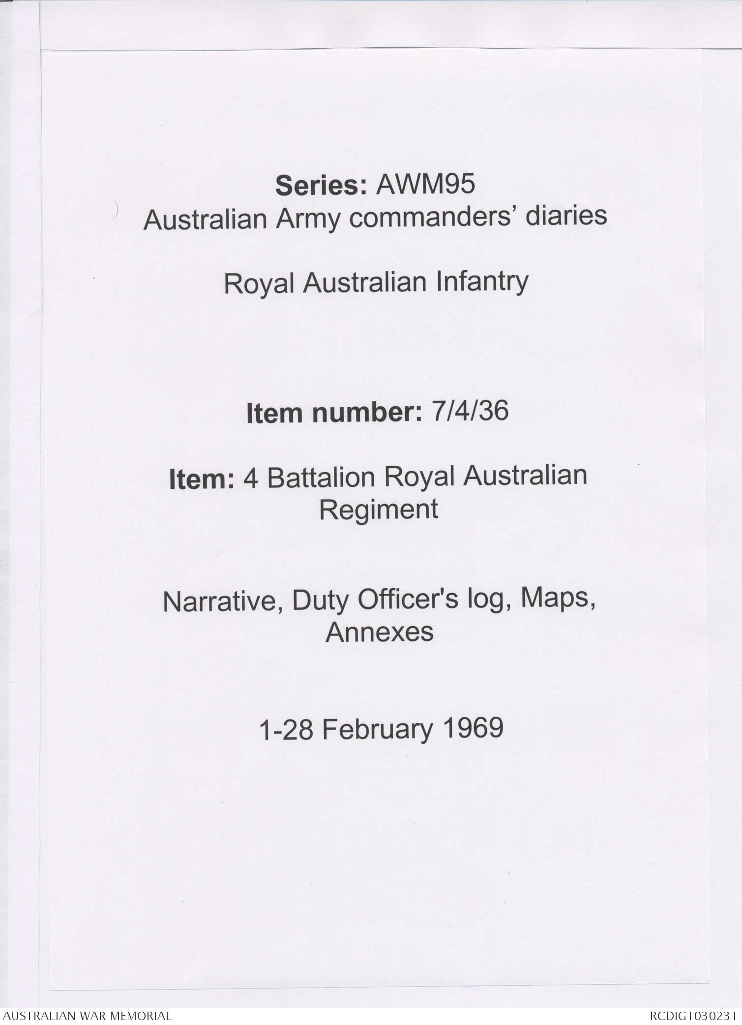 - AWM95 Subclass 7/4 - 4 Battalion Royal Australian Regiment