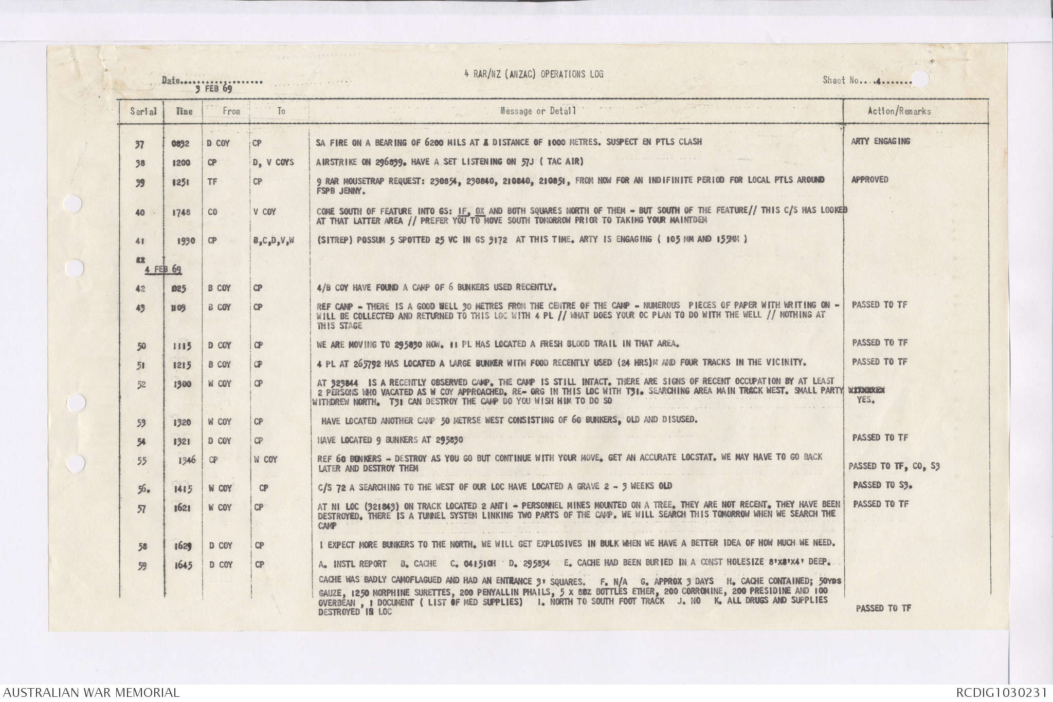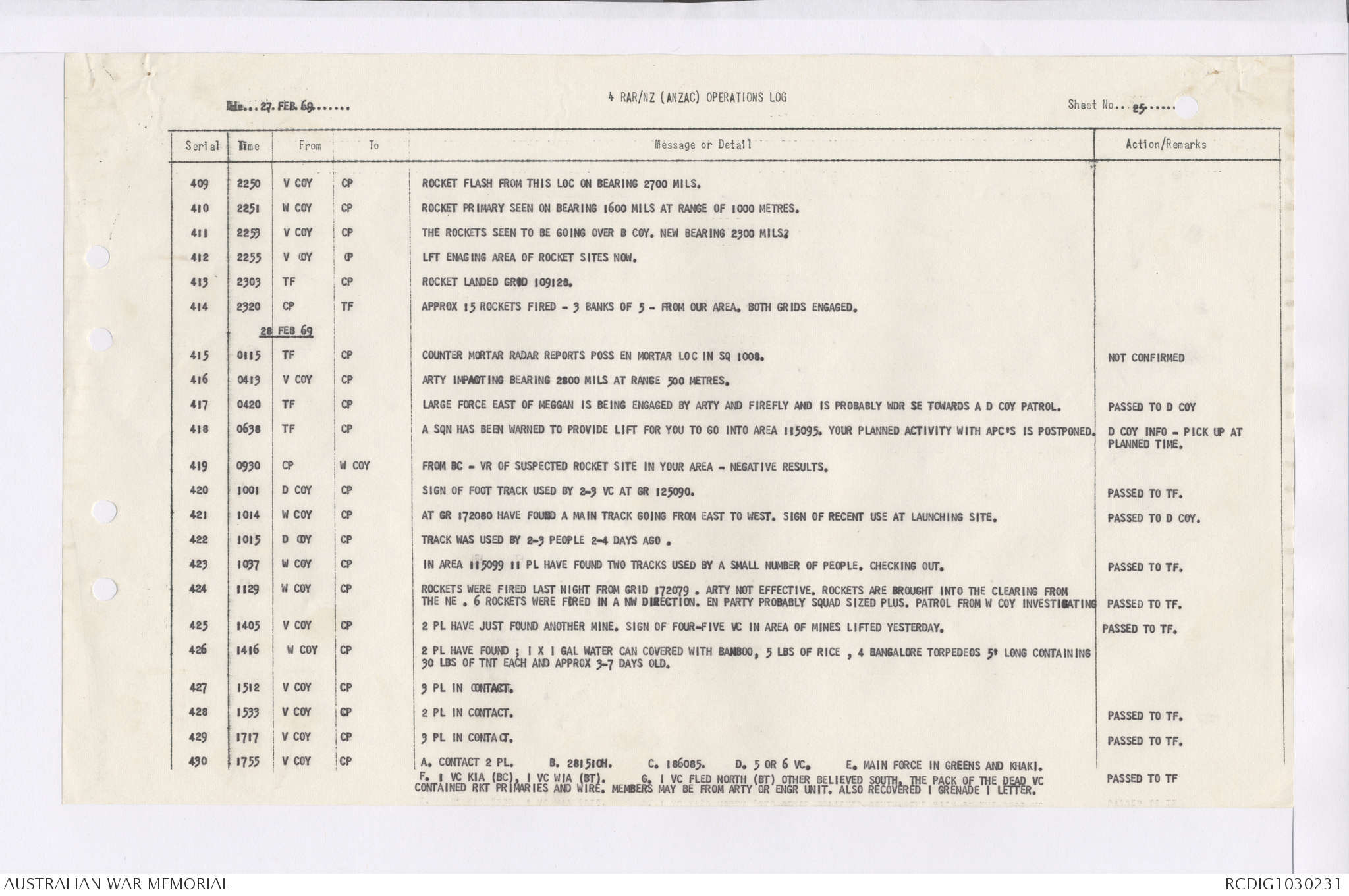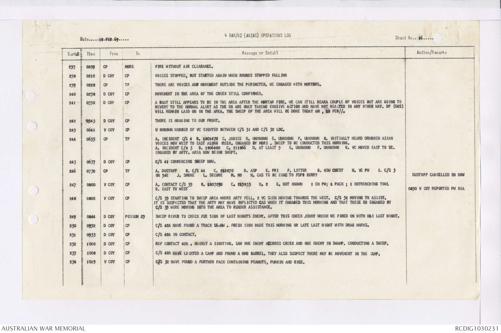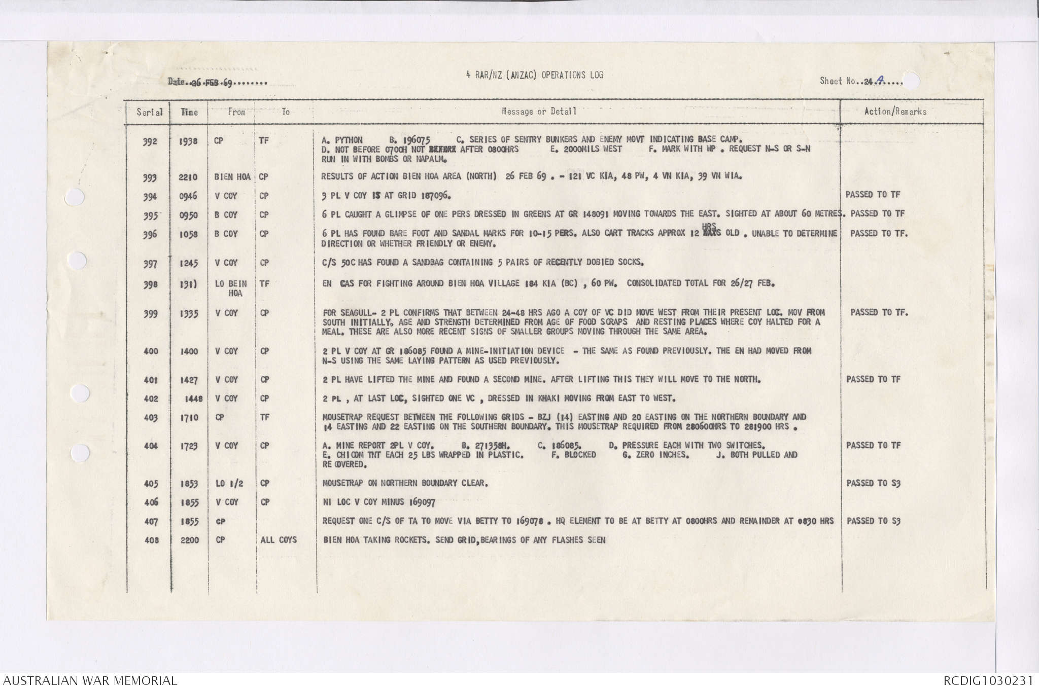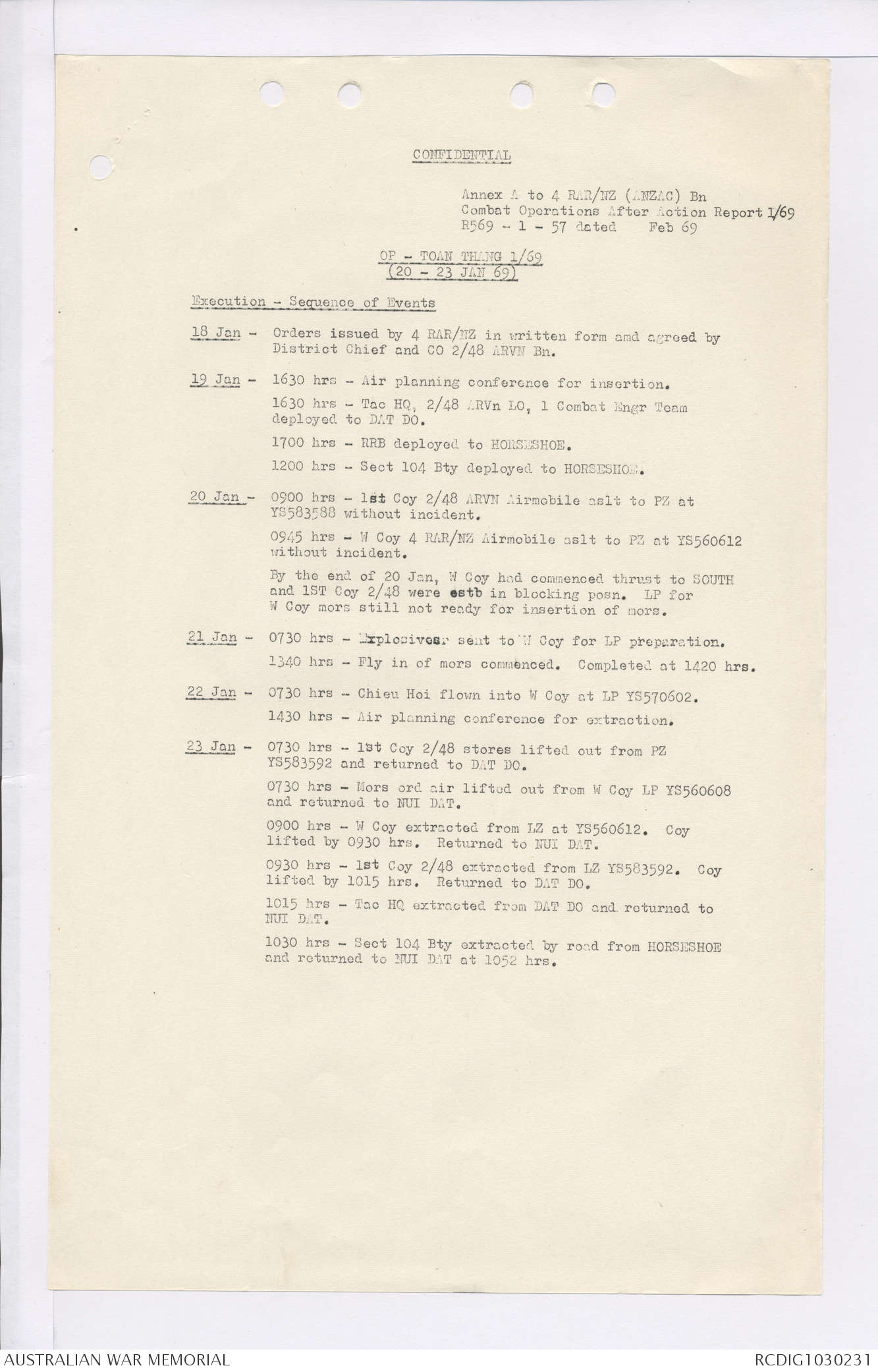 AWM95 7/4/36 - 1-28 February 1969, Narrative, Duty Officer's log, Maps, Annexes