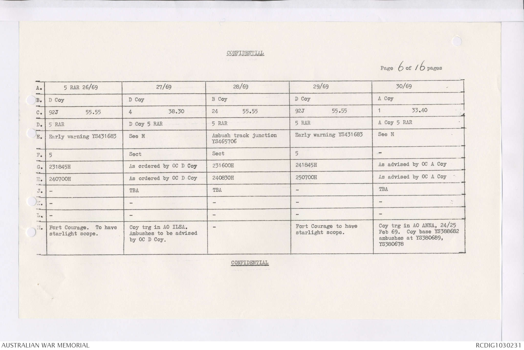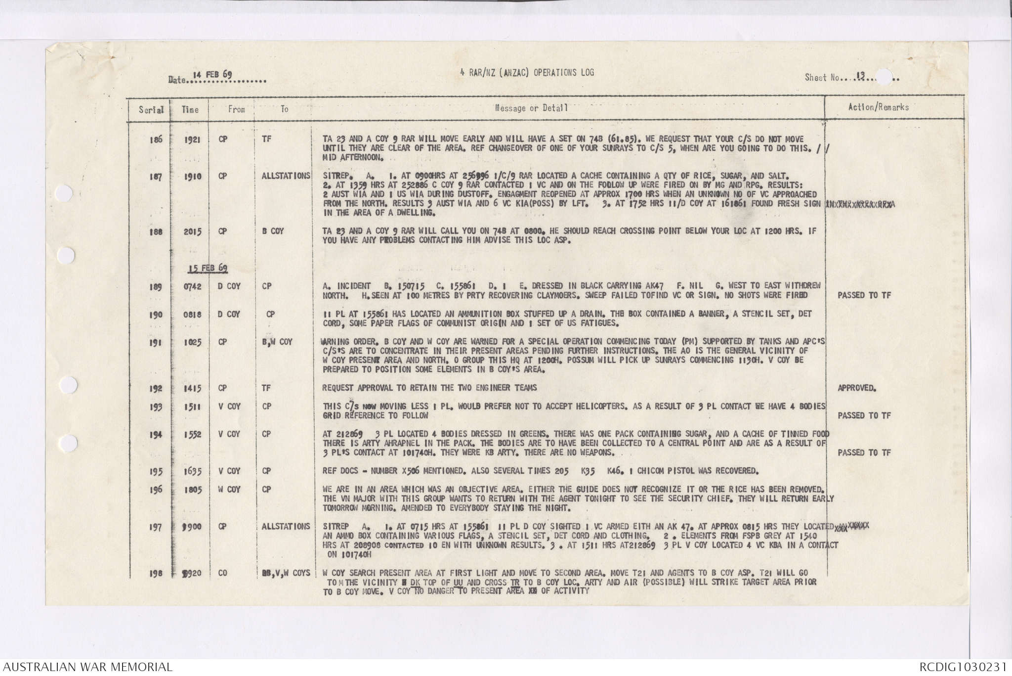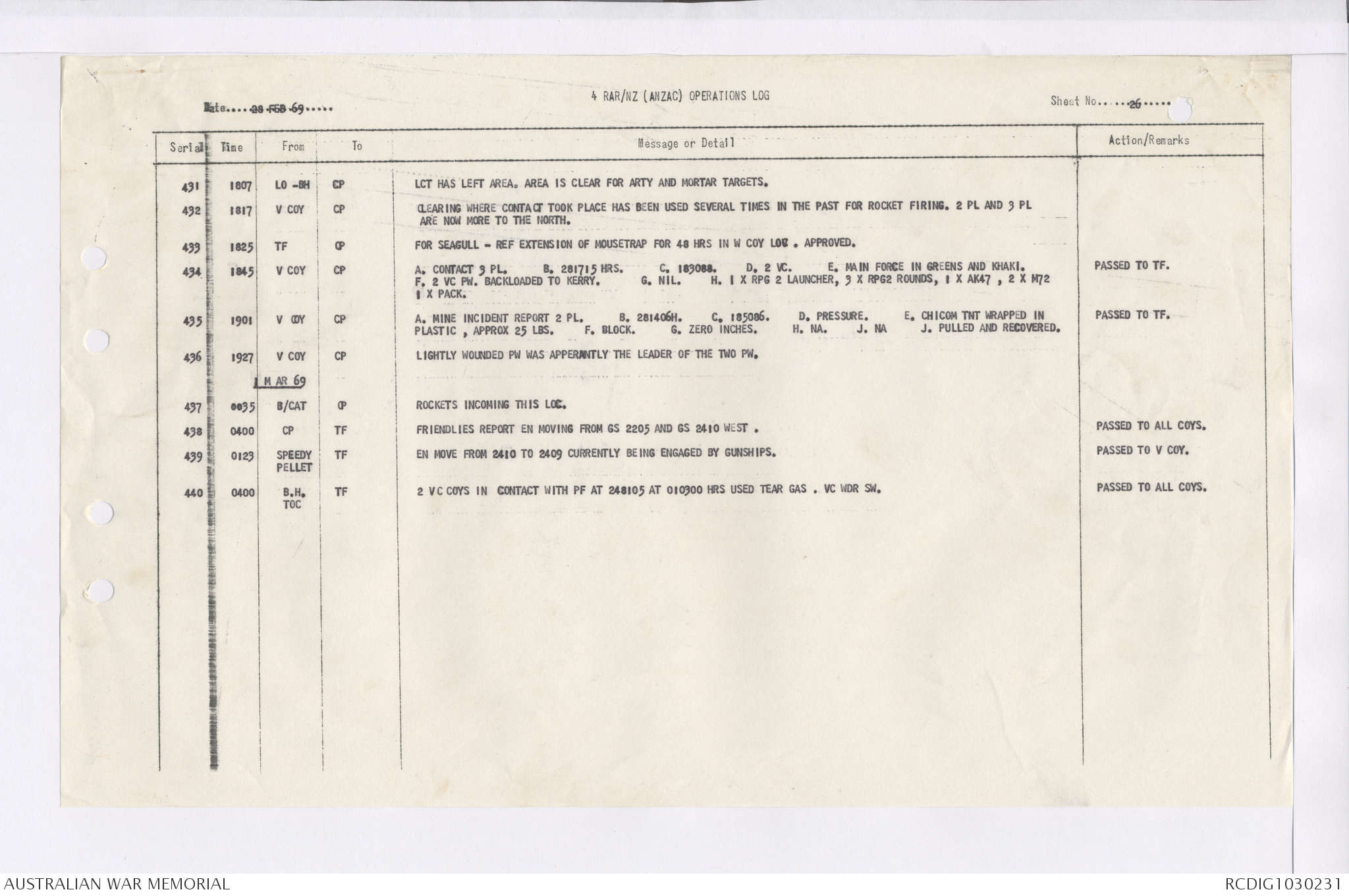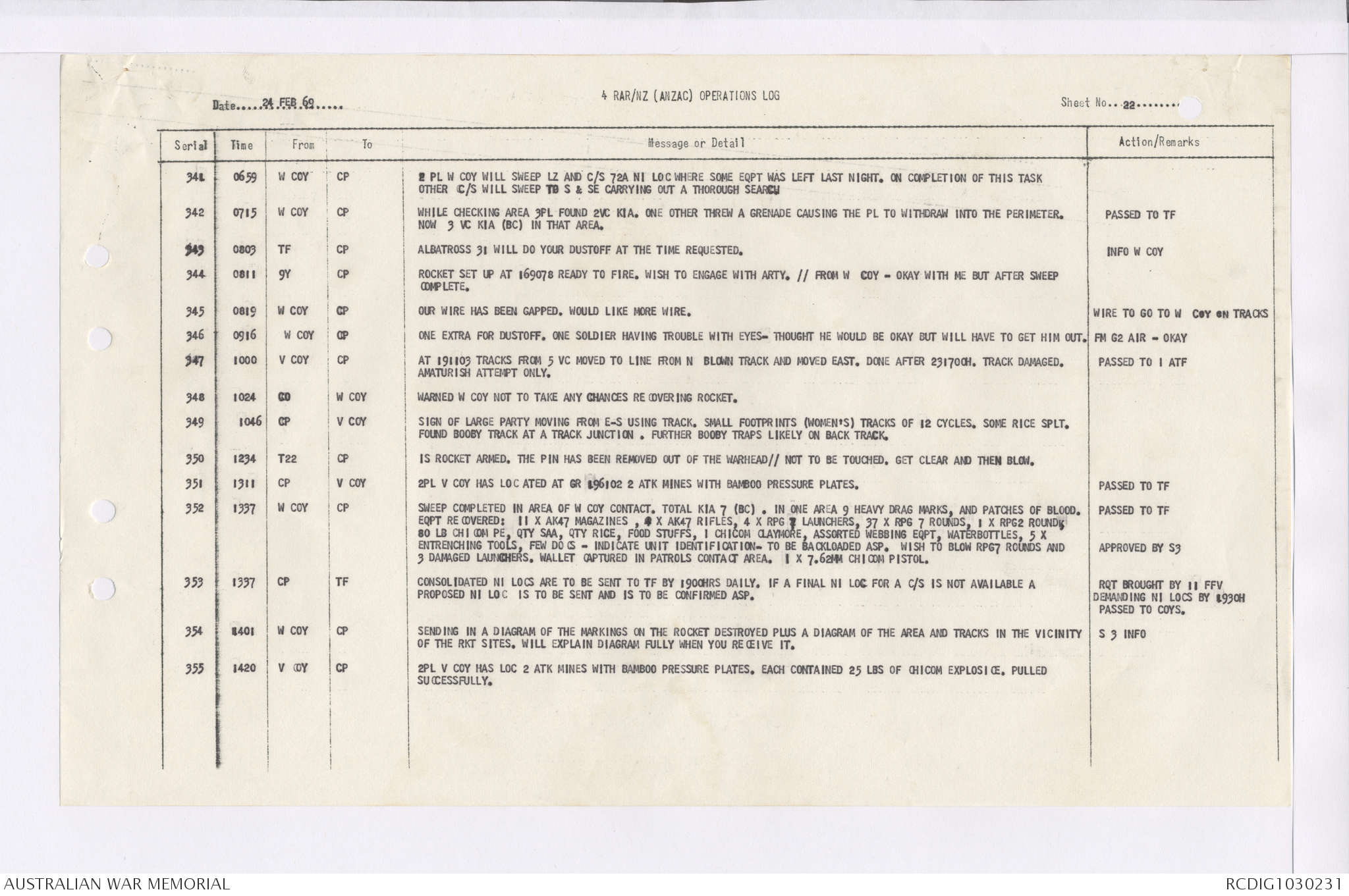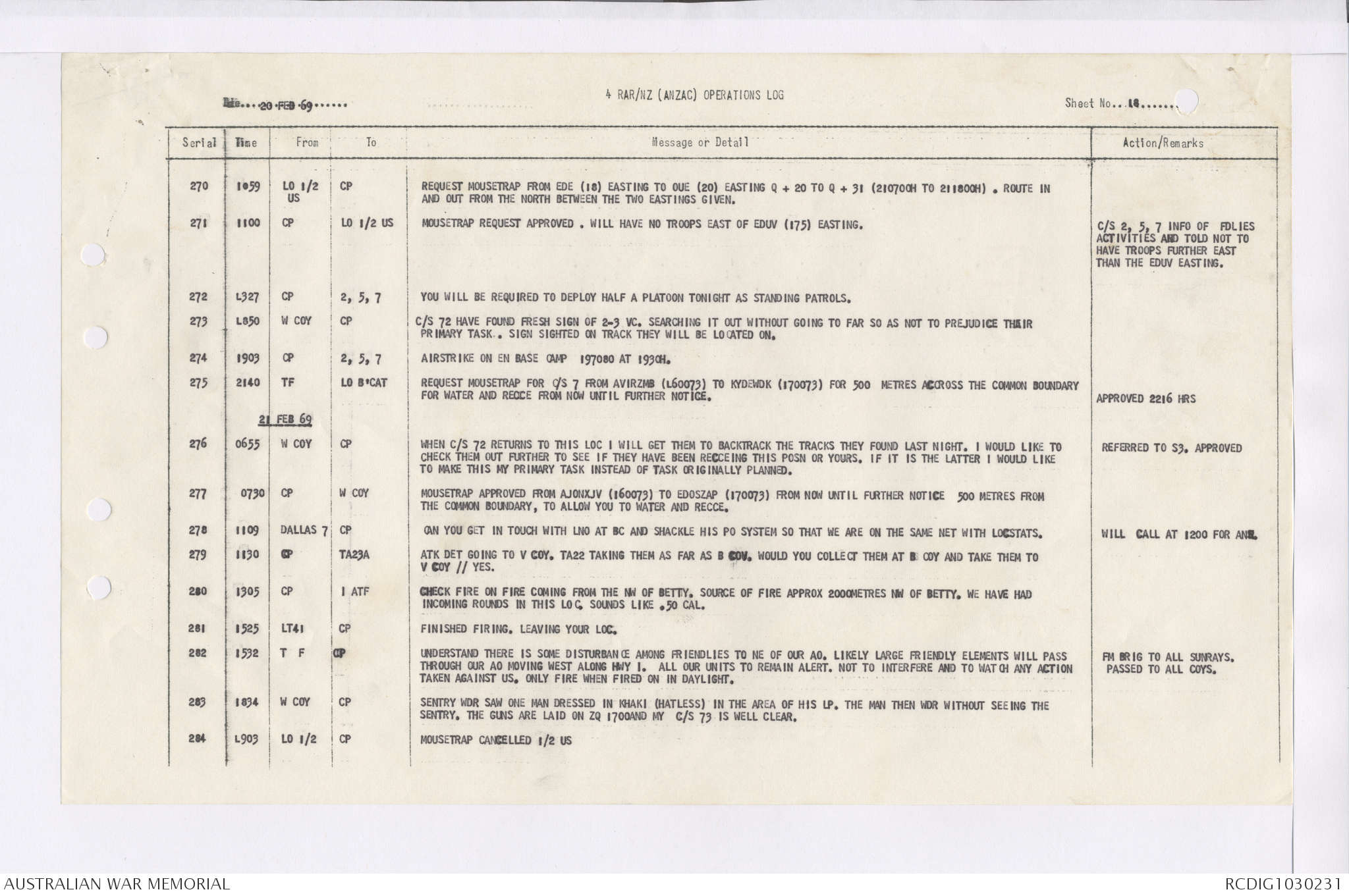 AWM95 7/4/36 - 1-28 February 1969, Narrative, Duty Officer's log, Maps, Annexes