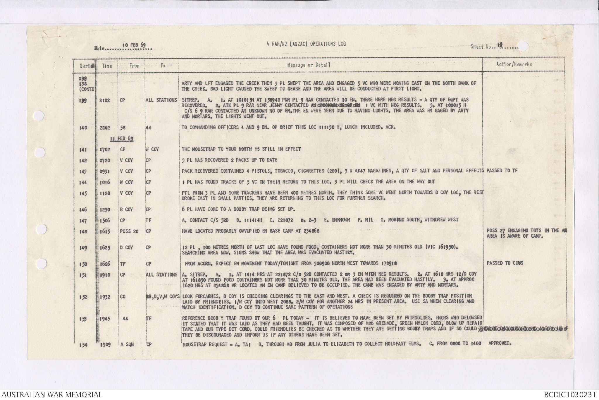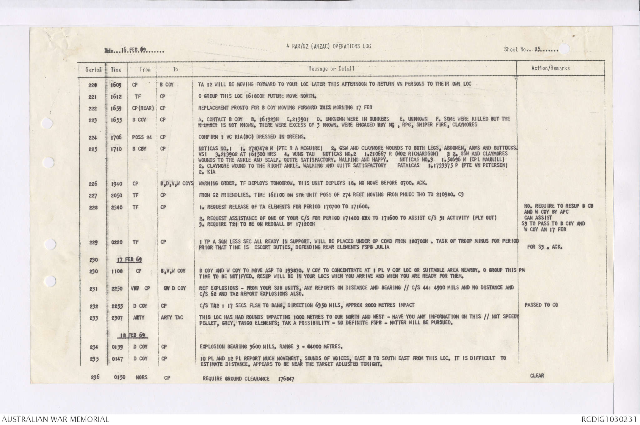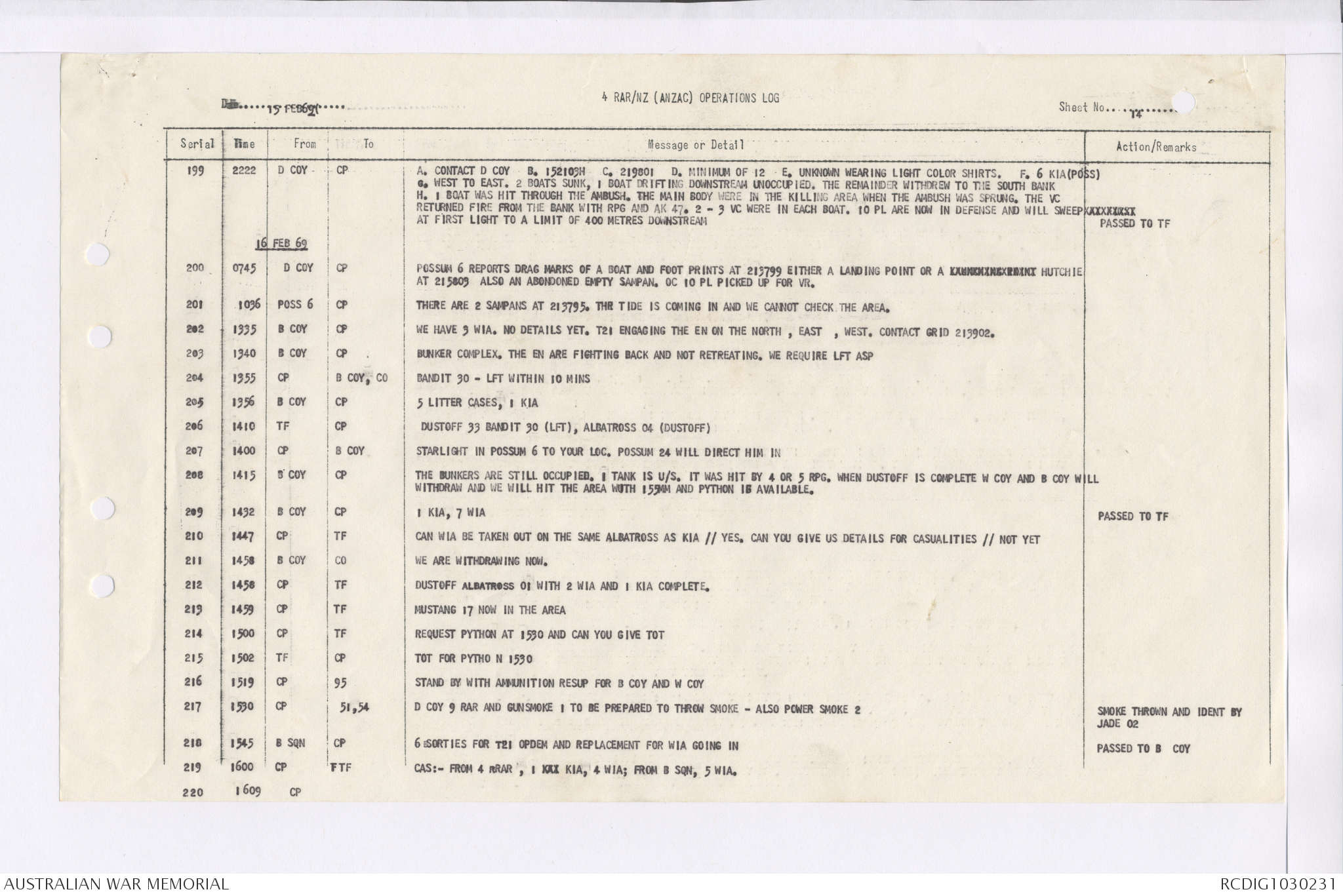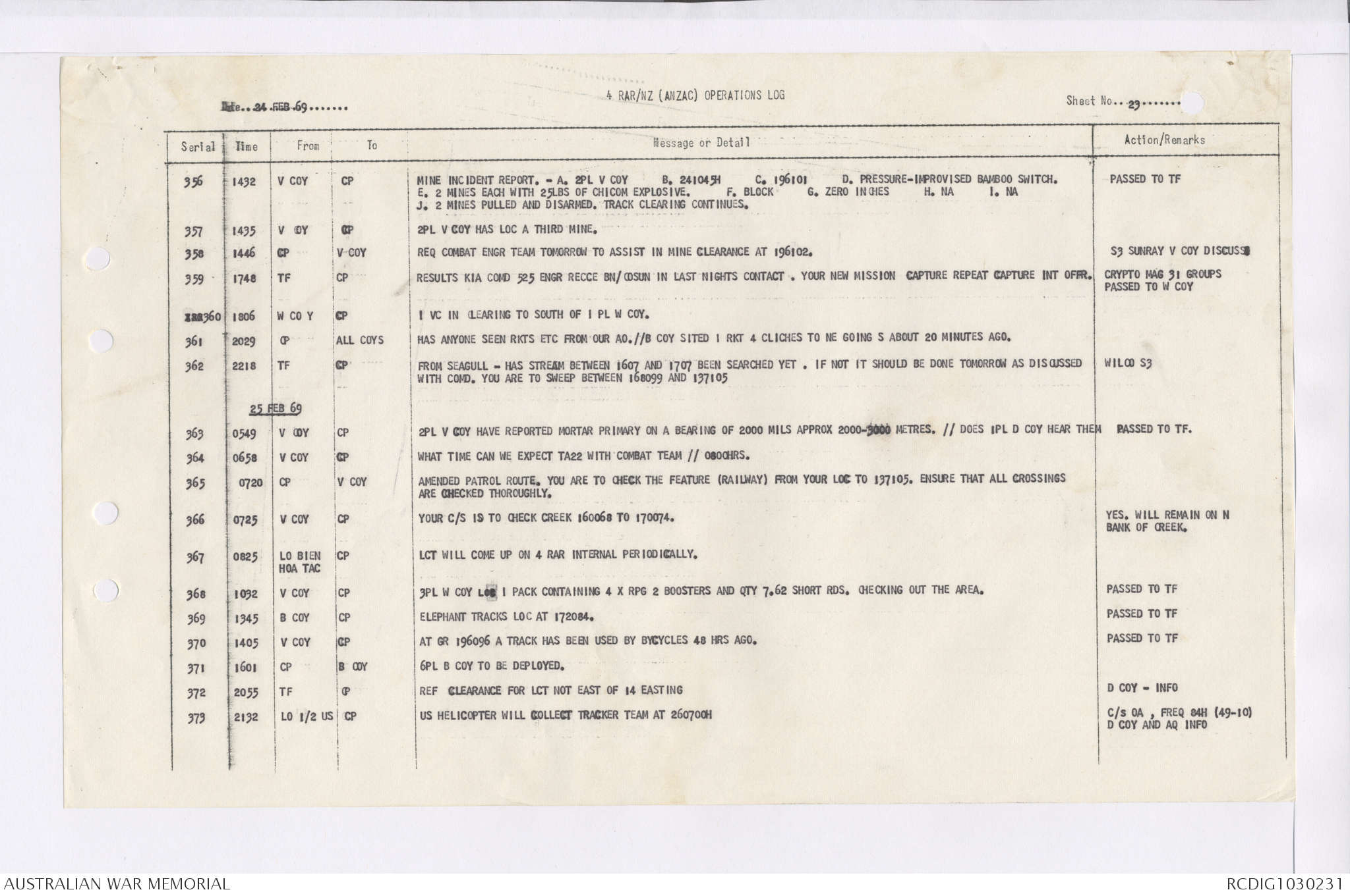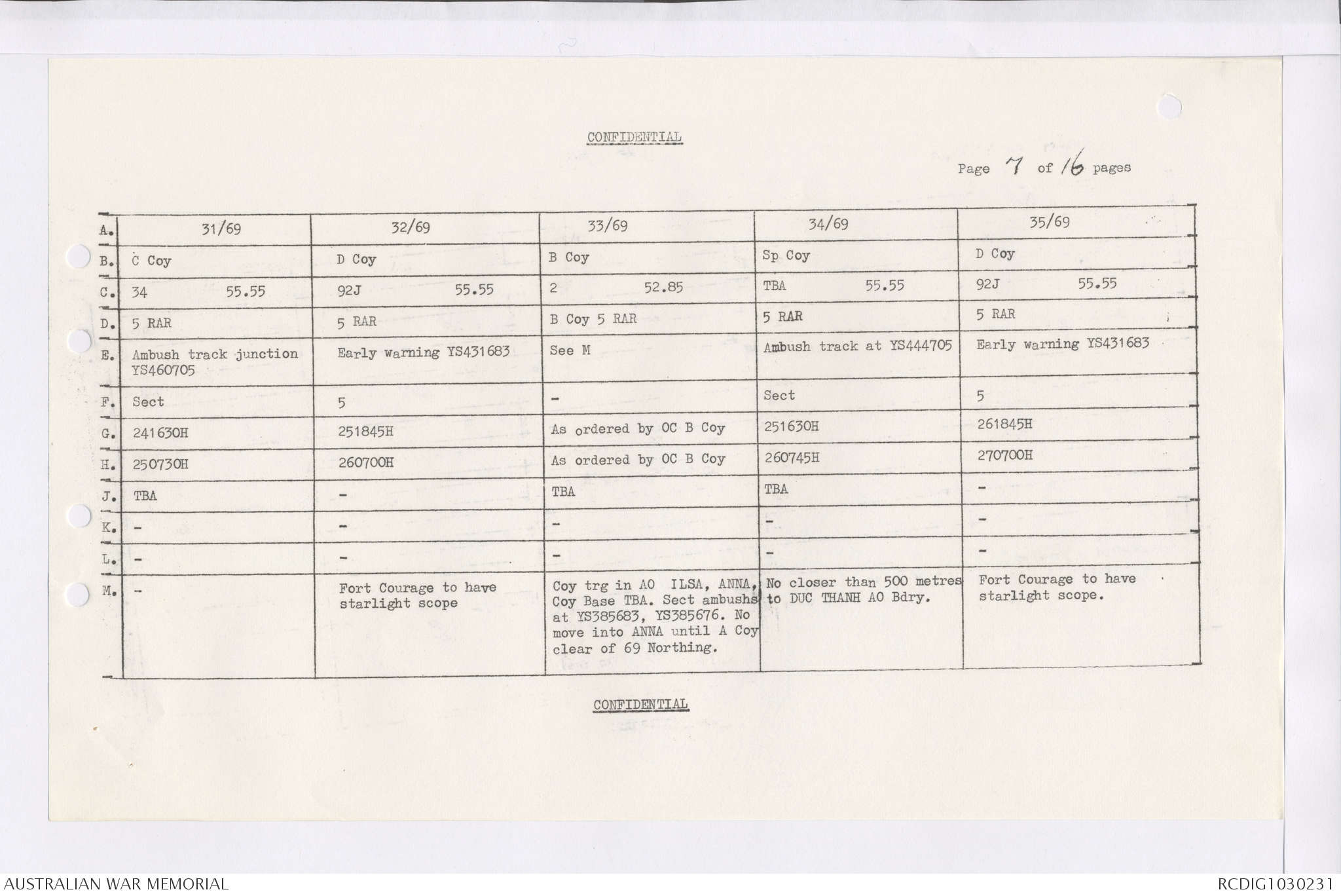 AWM95 7/4/36 - 1-28 February 1969, Narrative, Duty Officer's log, Maps, Annexes