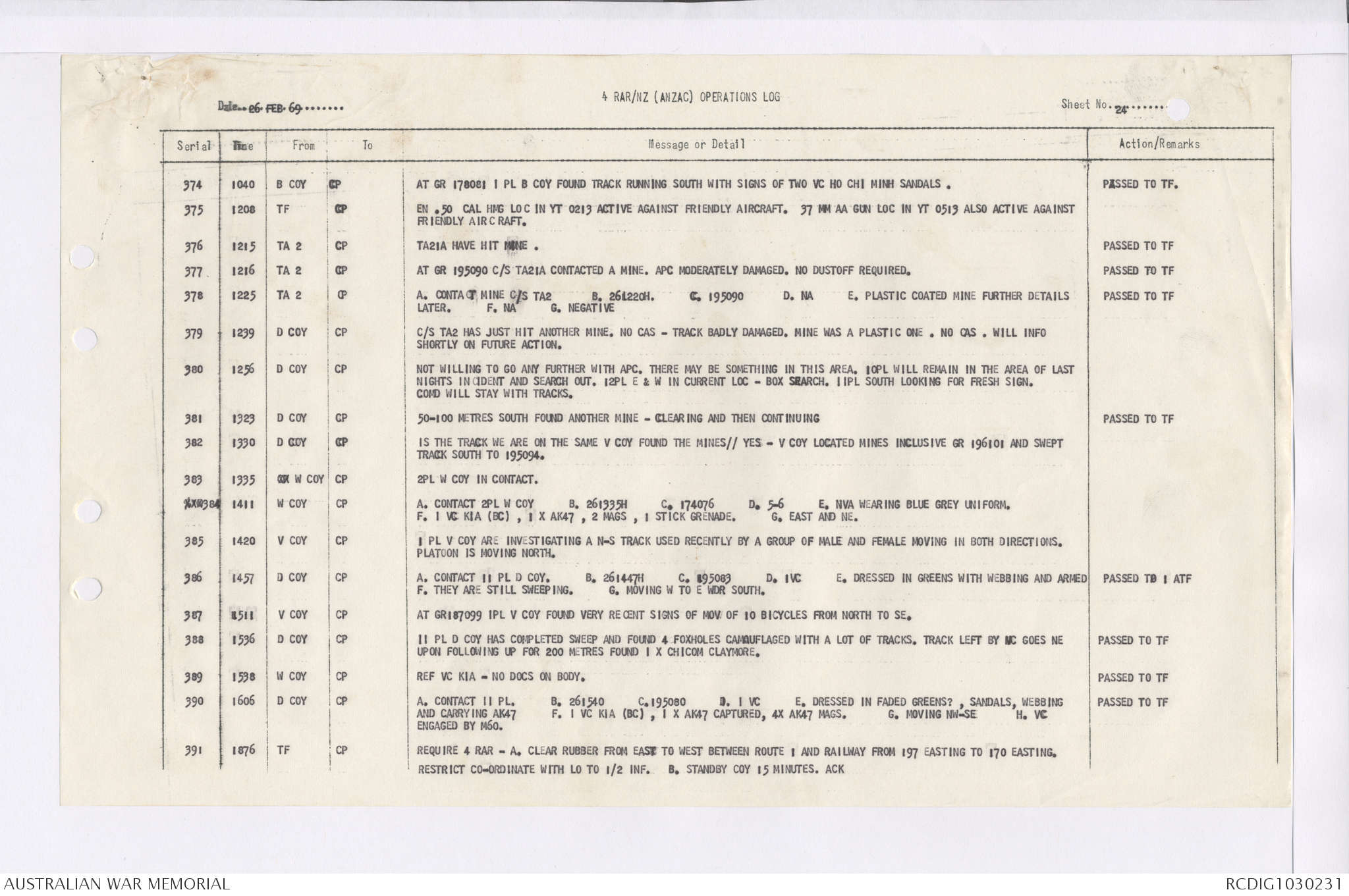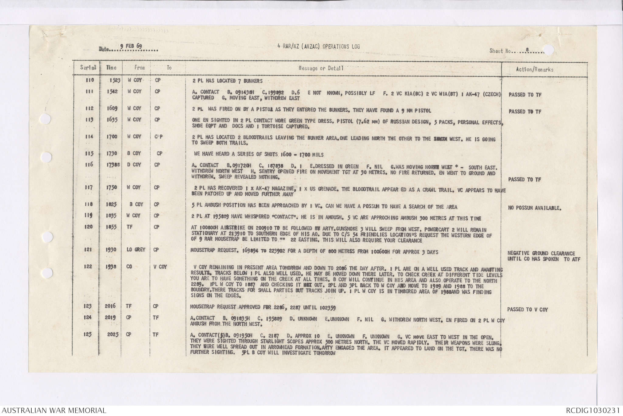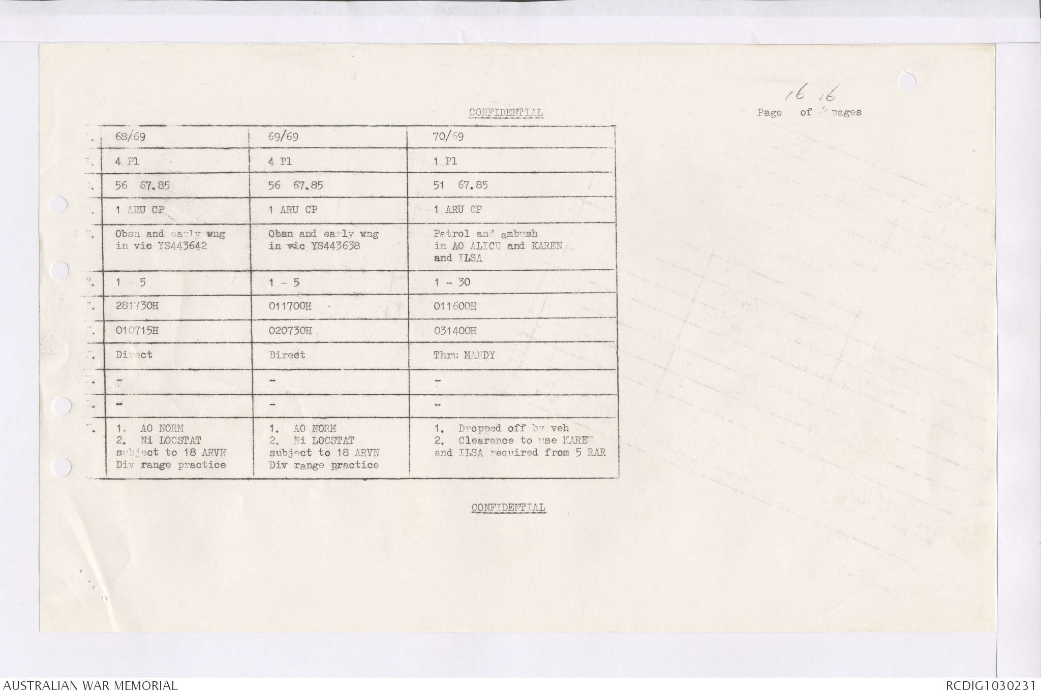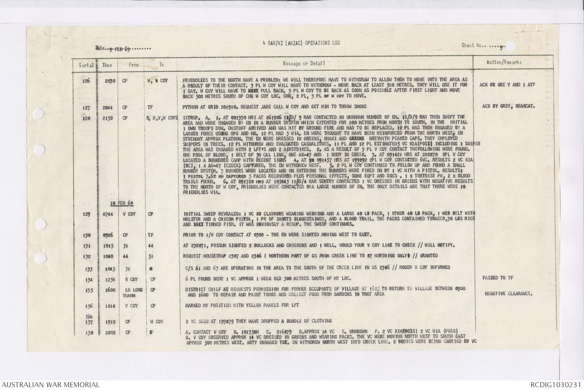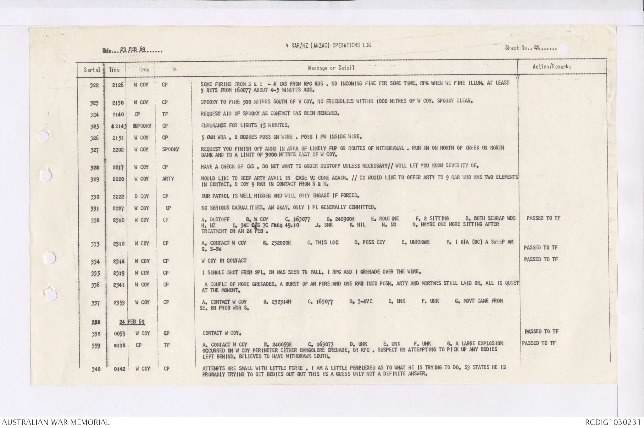 AWM95 7/4/36 - 1-28 February 1969, Narrative, Duty Officer's log, Maps, Annexes