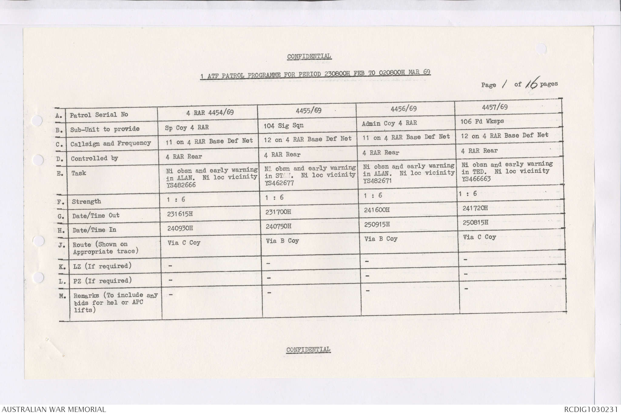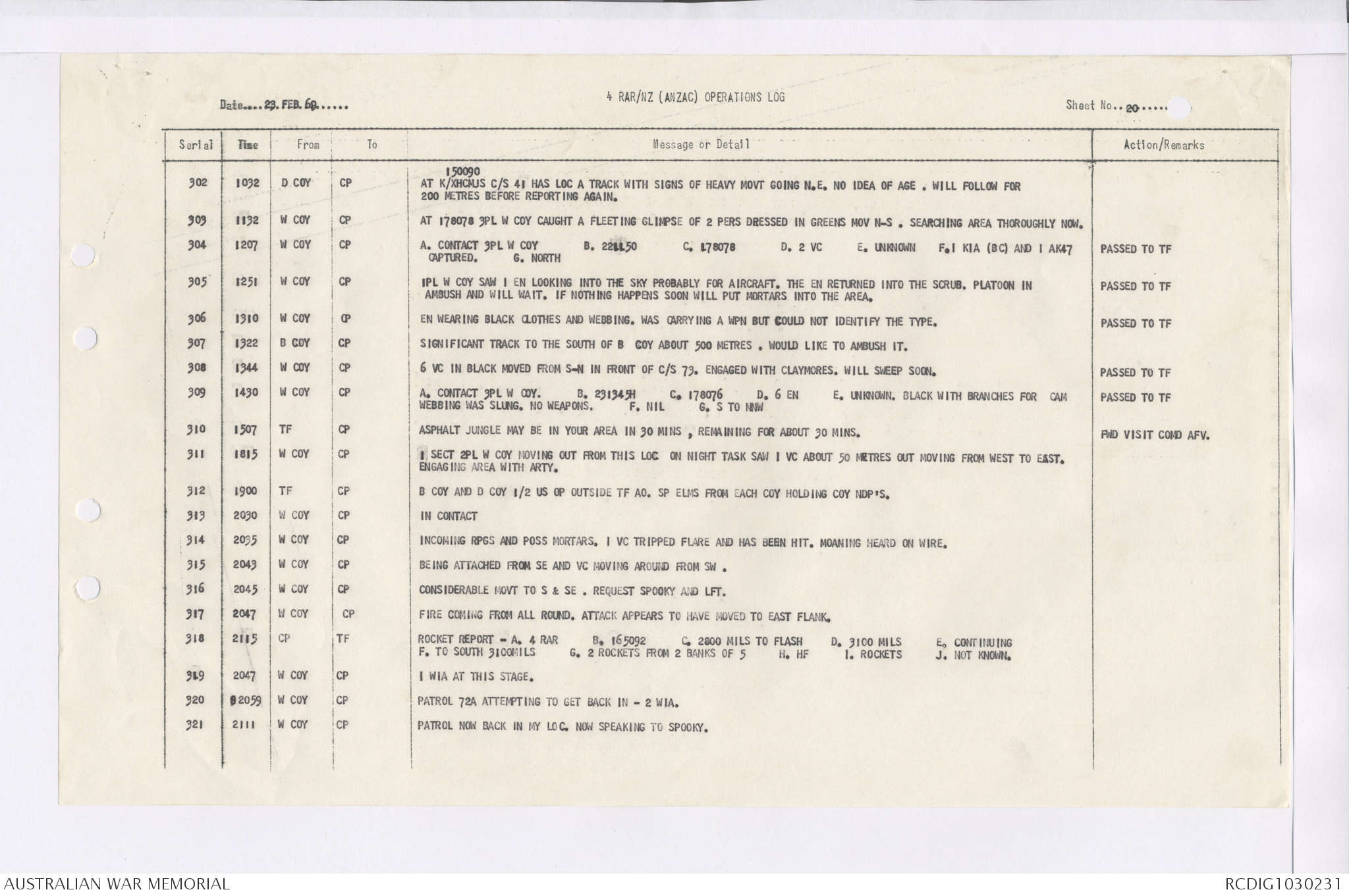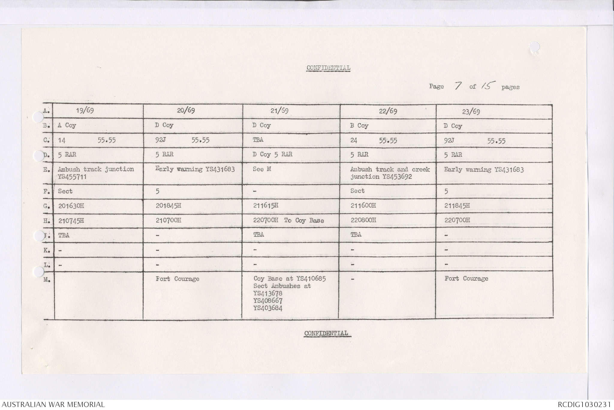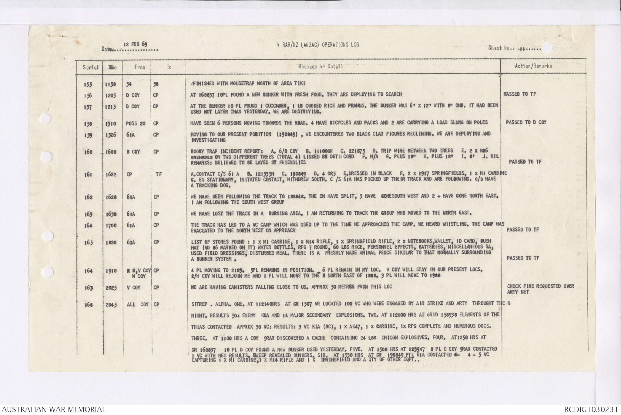 AWM95 7/4/36 - 1-28 February 1969, Narrative, Duty Officer's log, Maps, Annexes