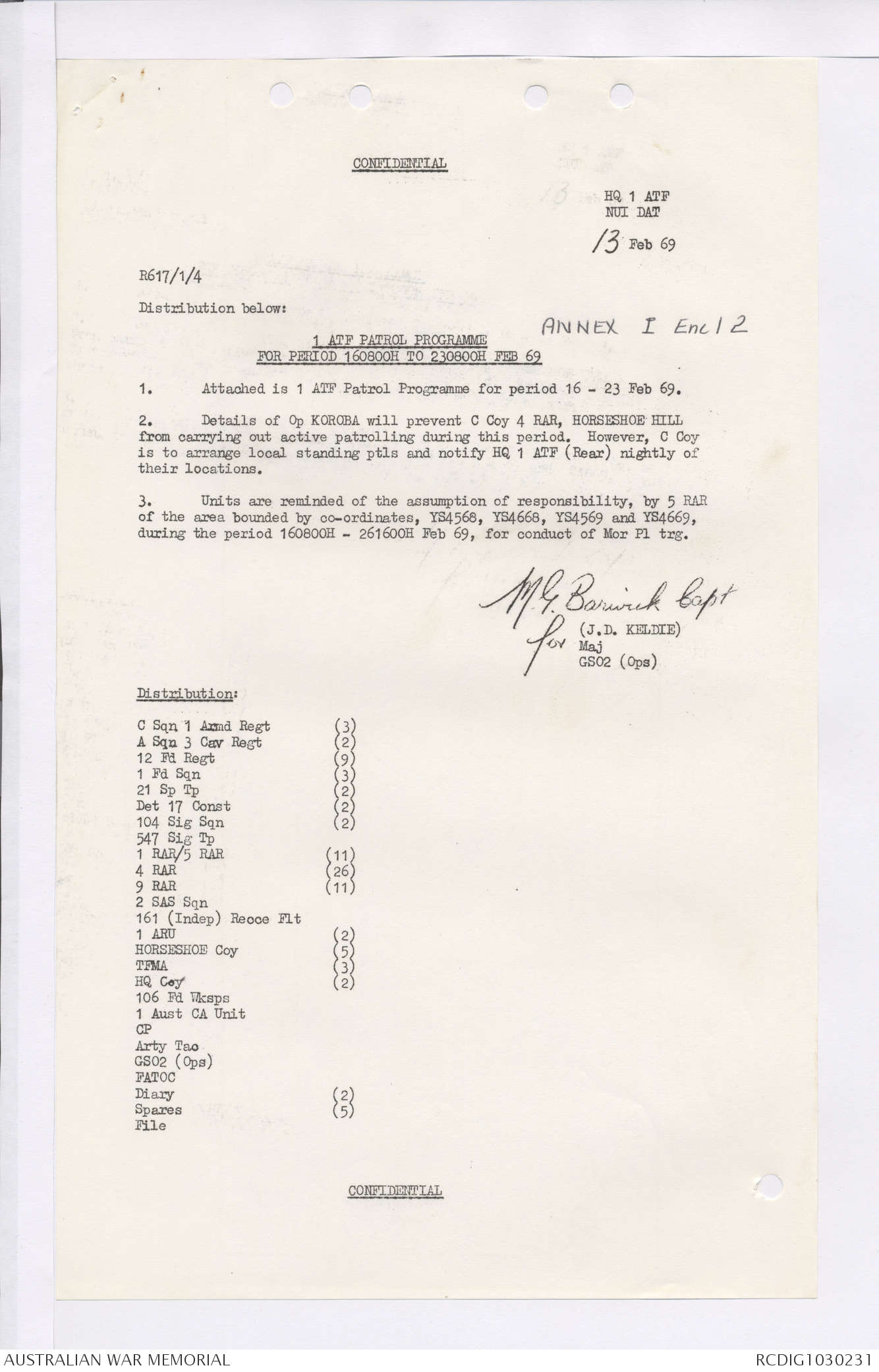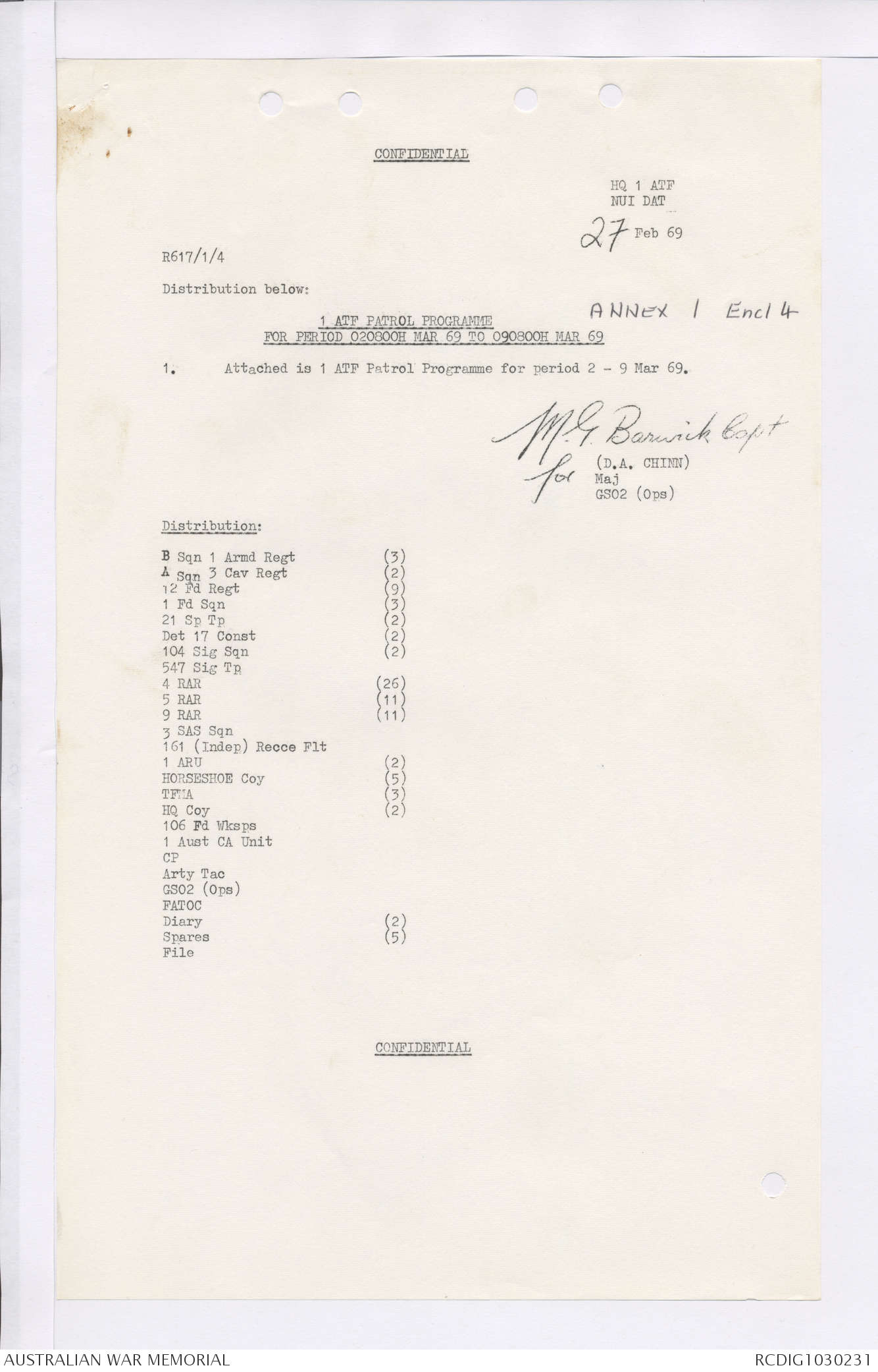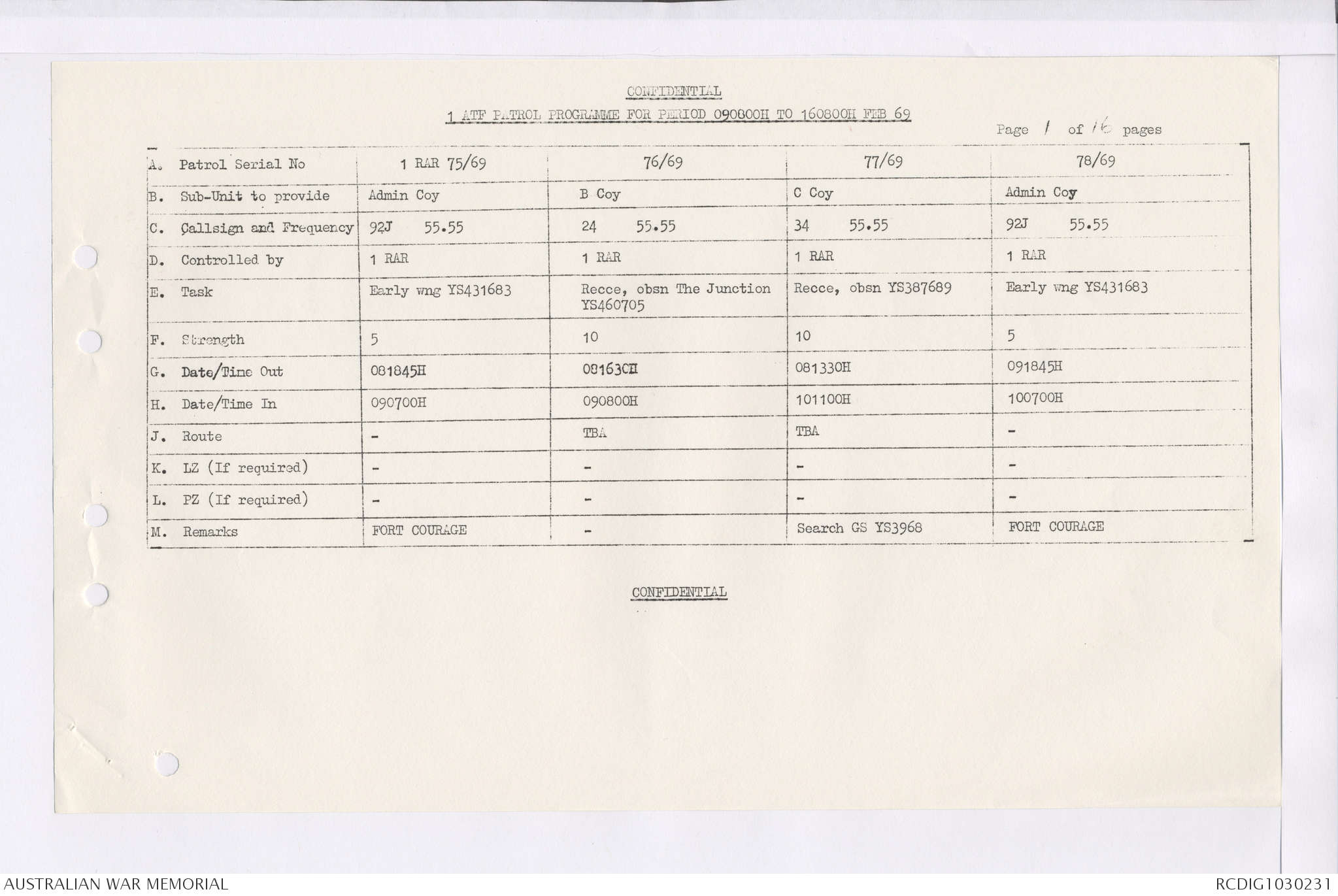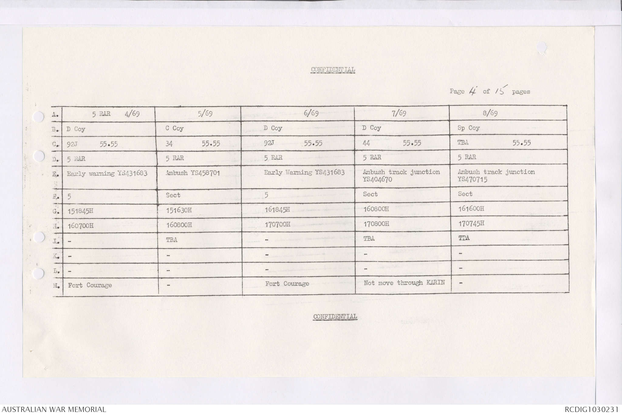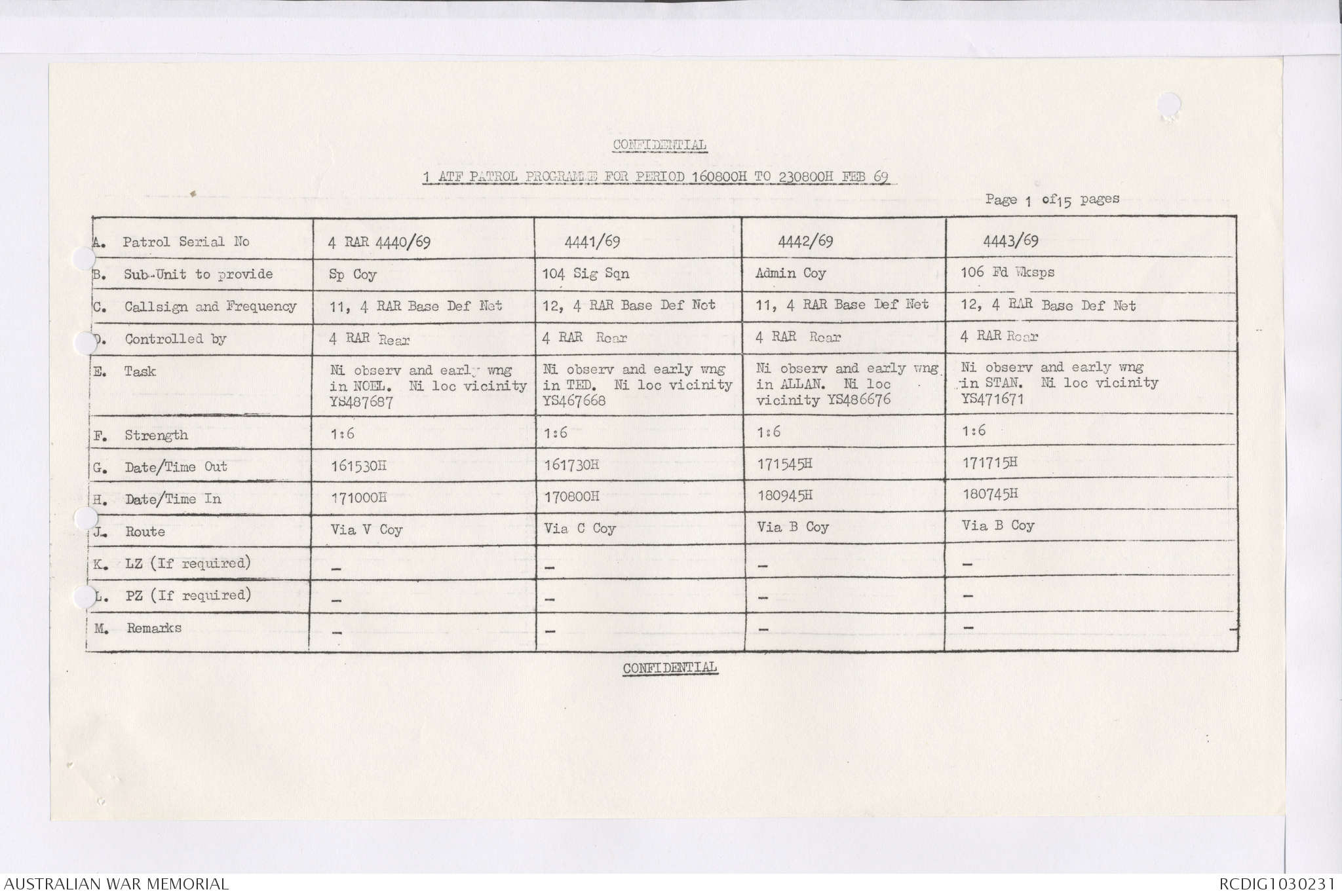 AWM95 7/4/36 - 1-28 February 1969, Narrative, Duty Officer's log, Maps, Annexes