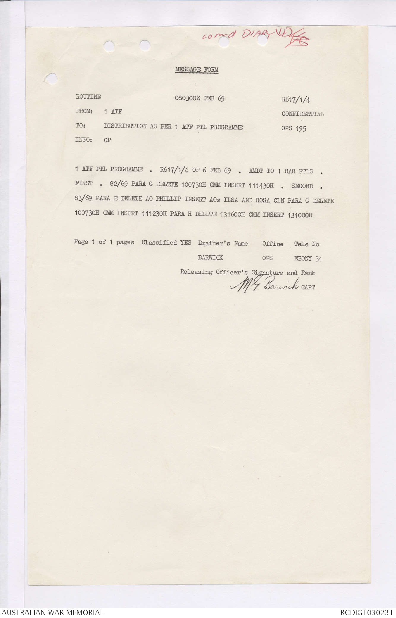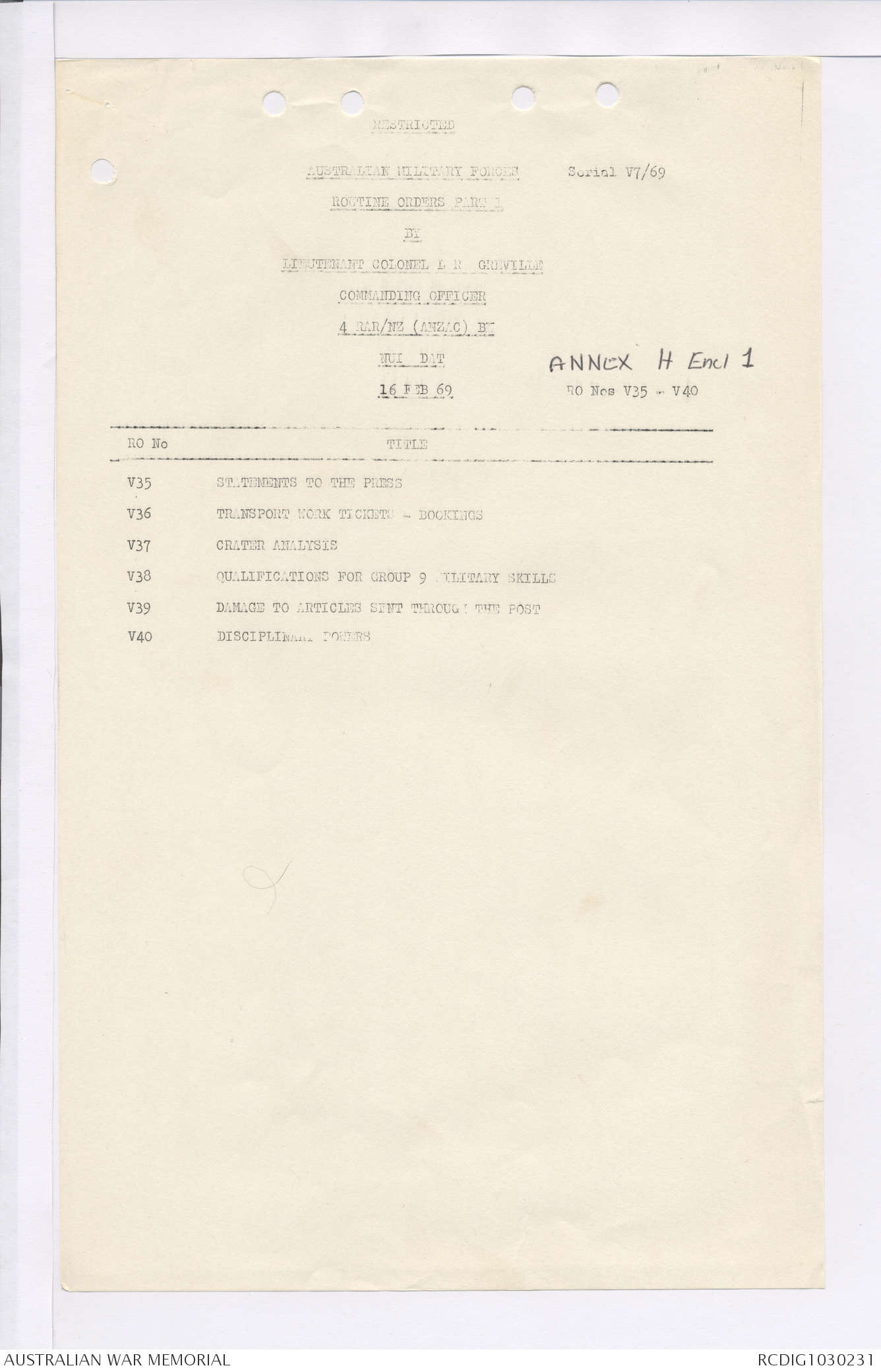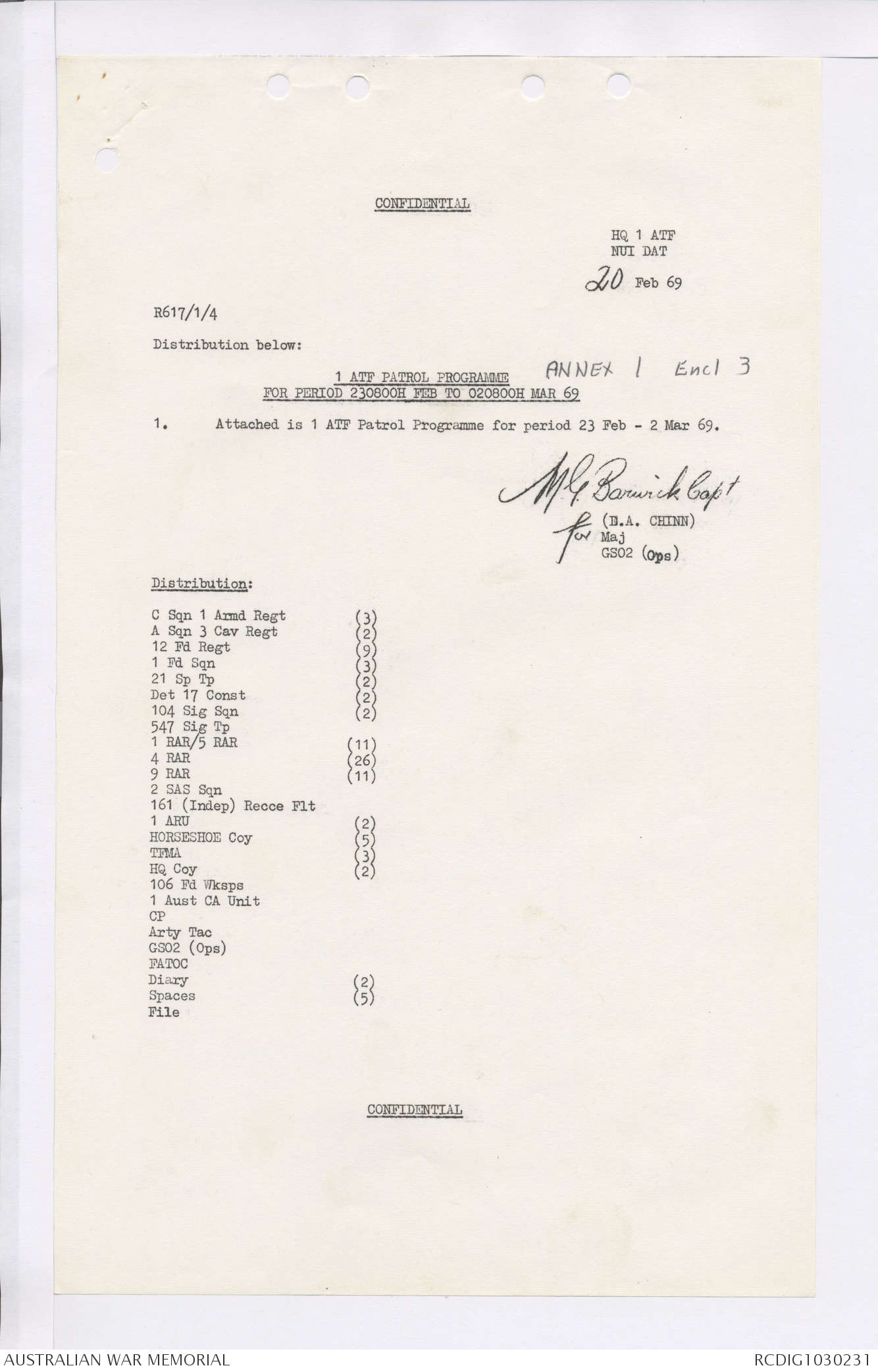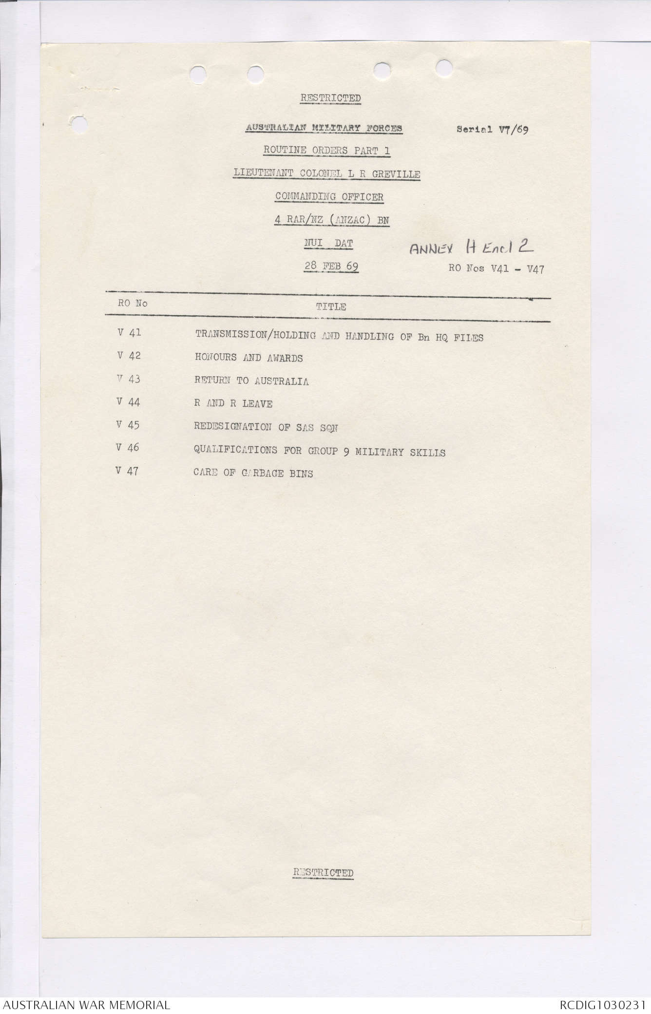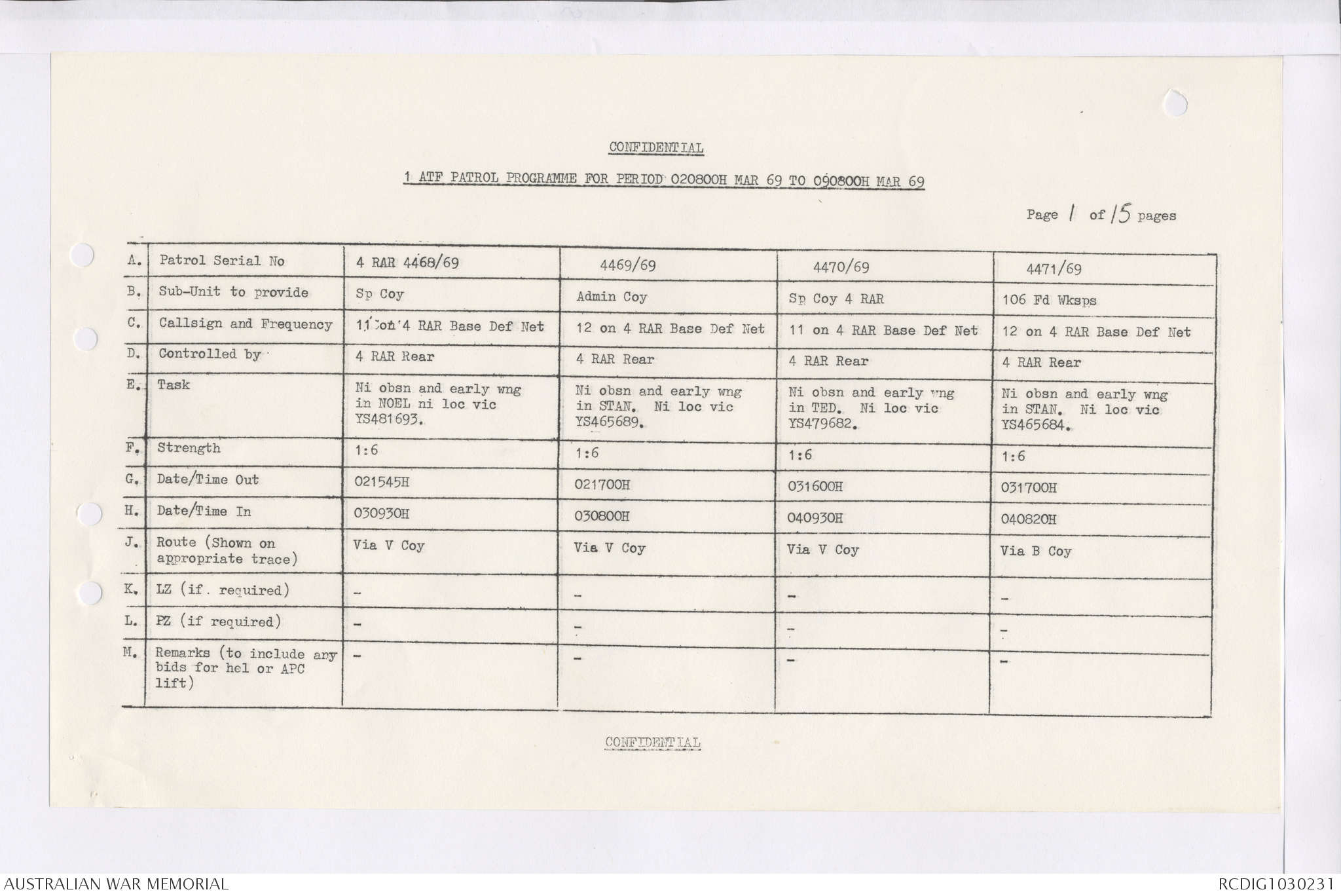 AWM95 7/4/36 - 1-28 February 1969, Narrative, Duty Officer's log, Maps, Annexes