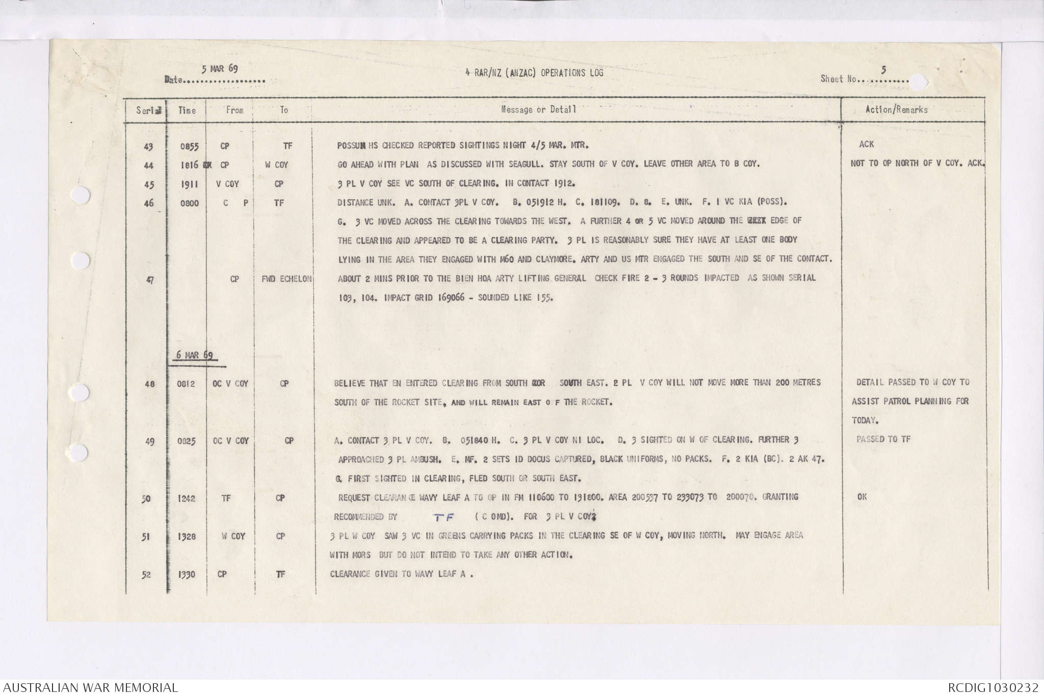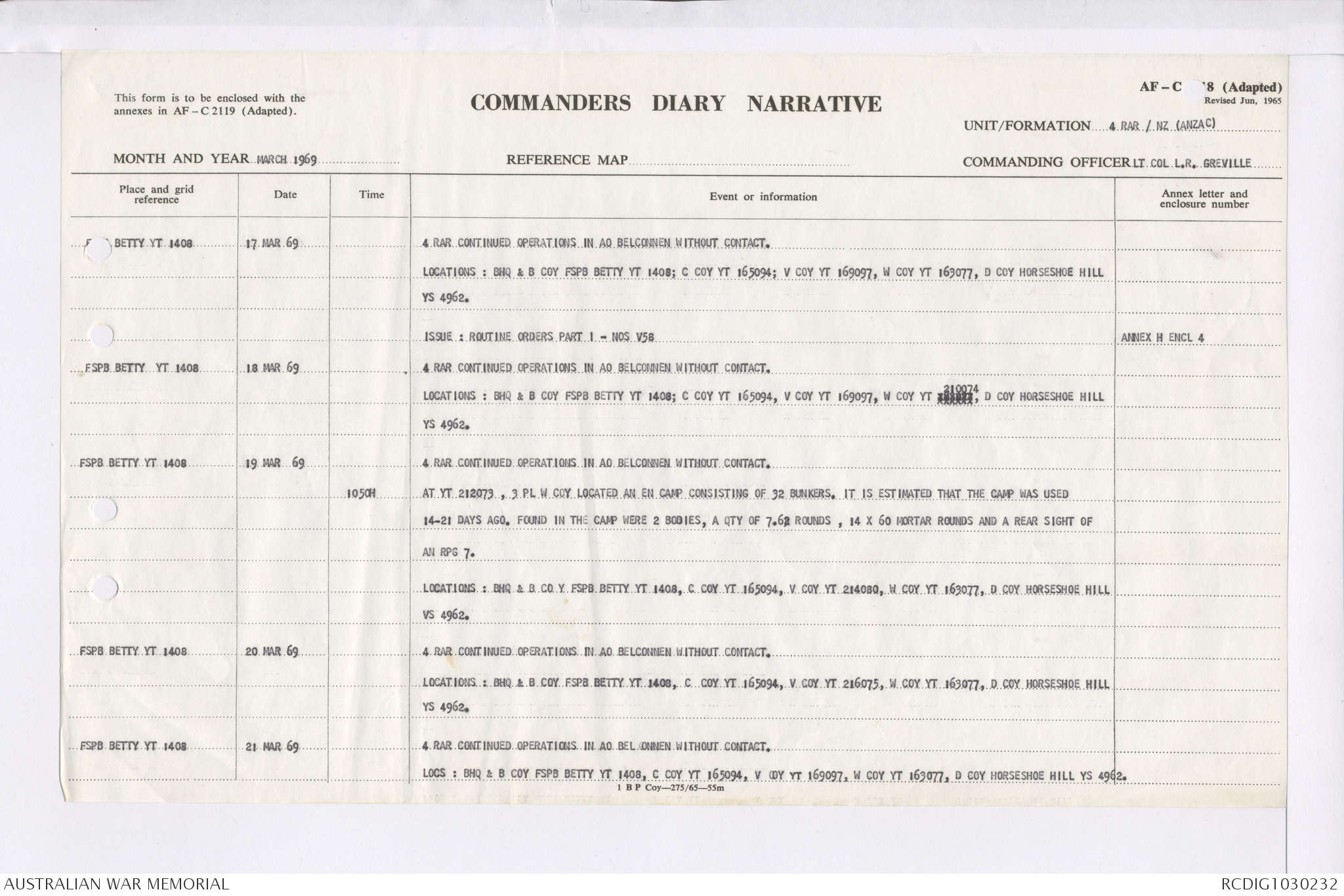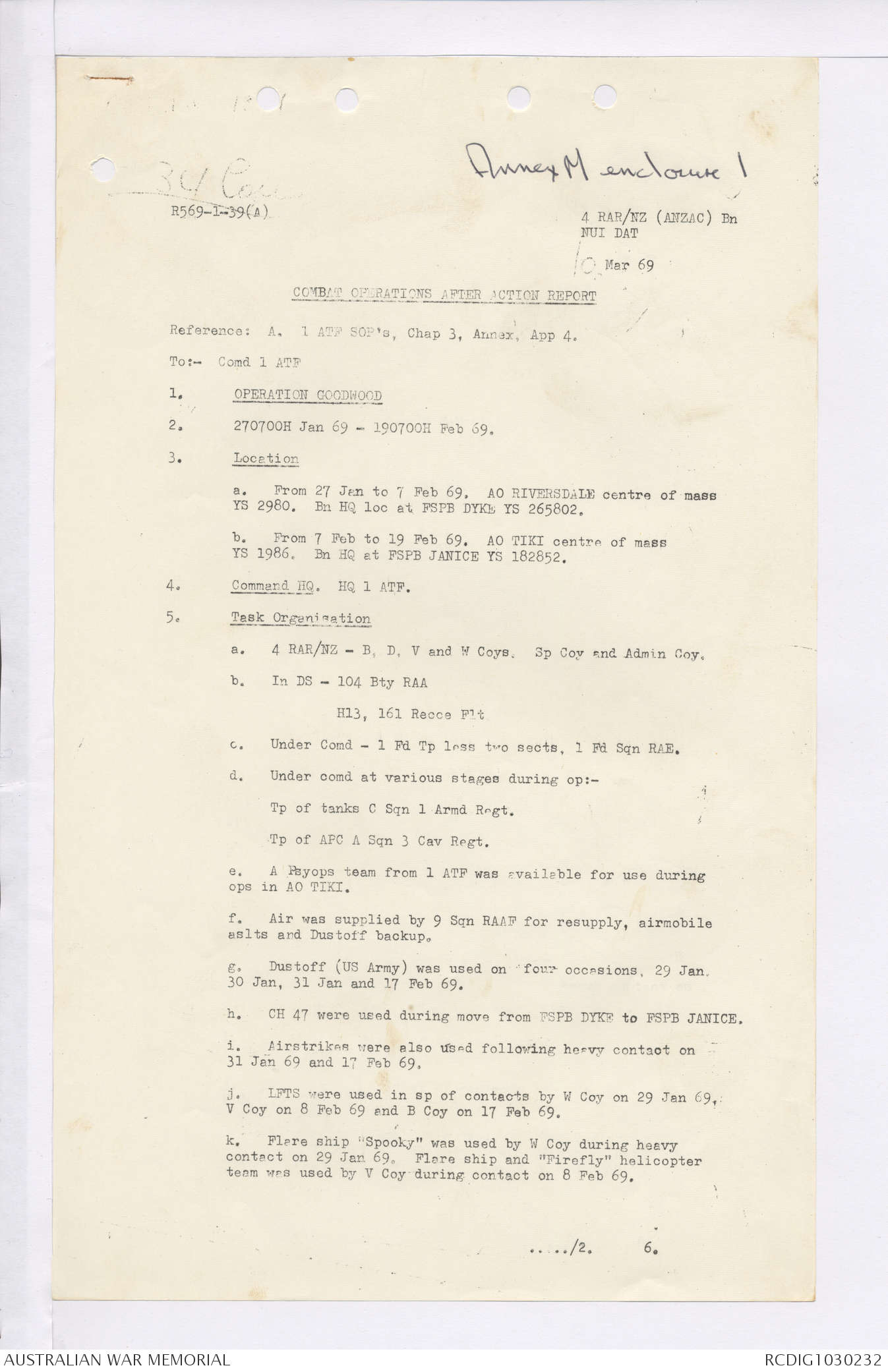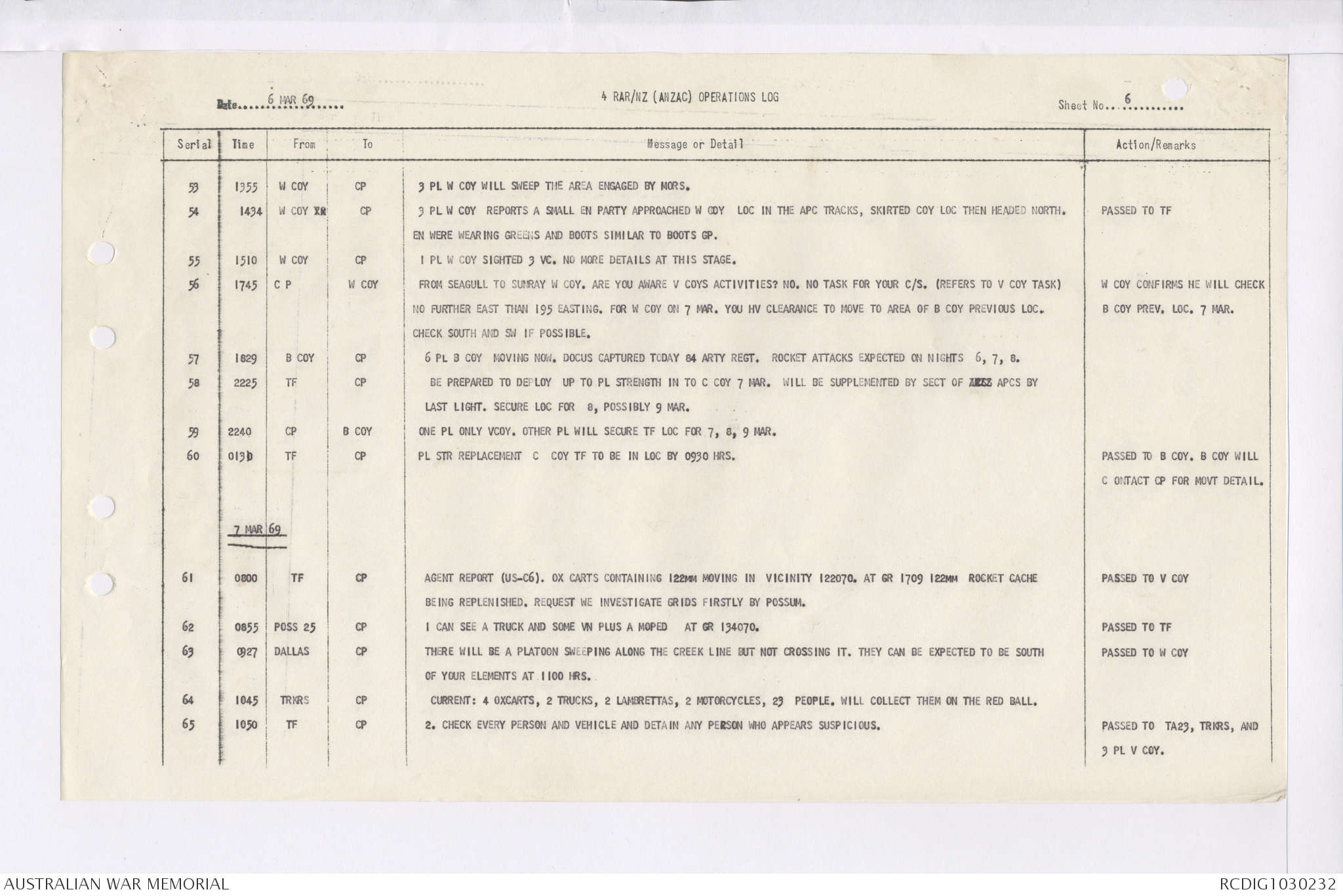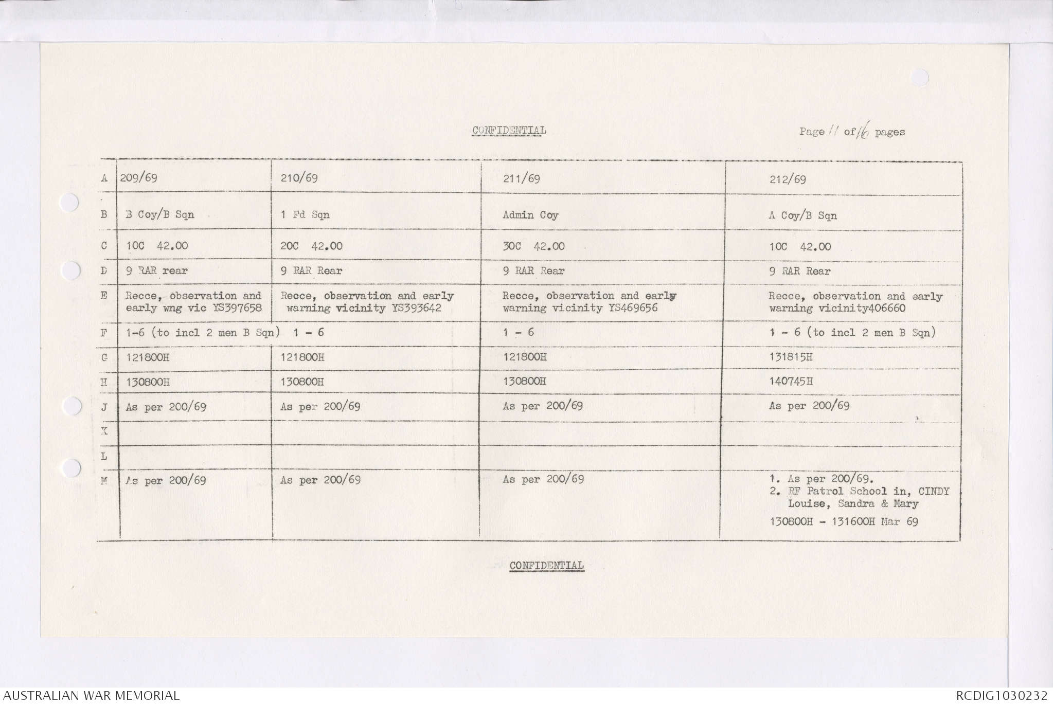 AWM95 7/4/37 - 1-31 March 1969, Narrative, Duty Officer's log, Annexes