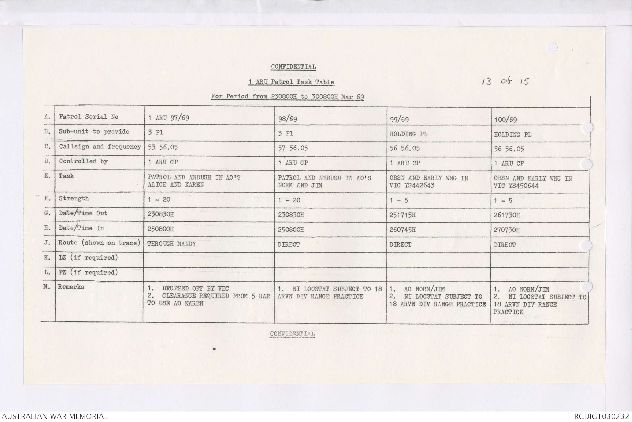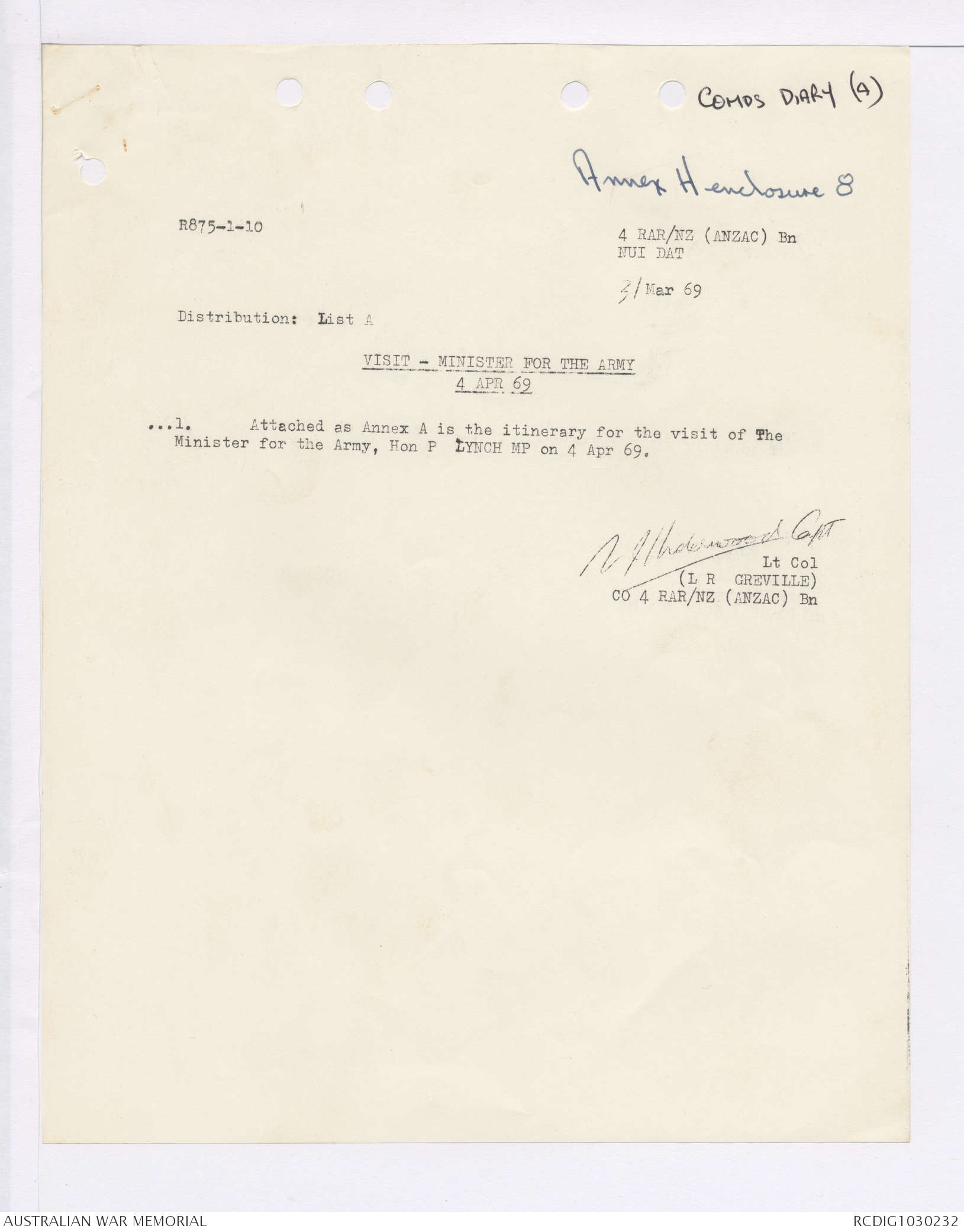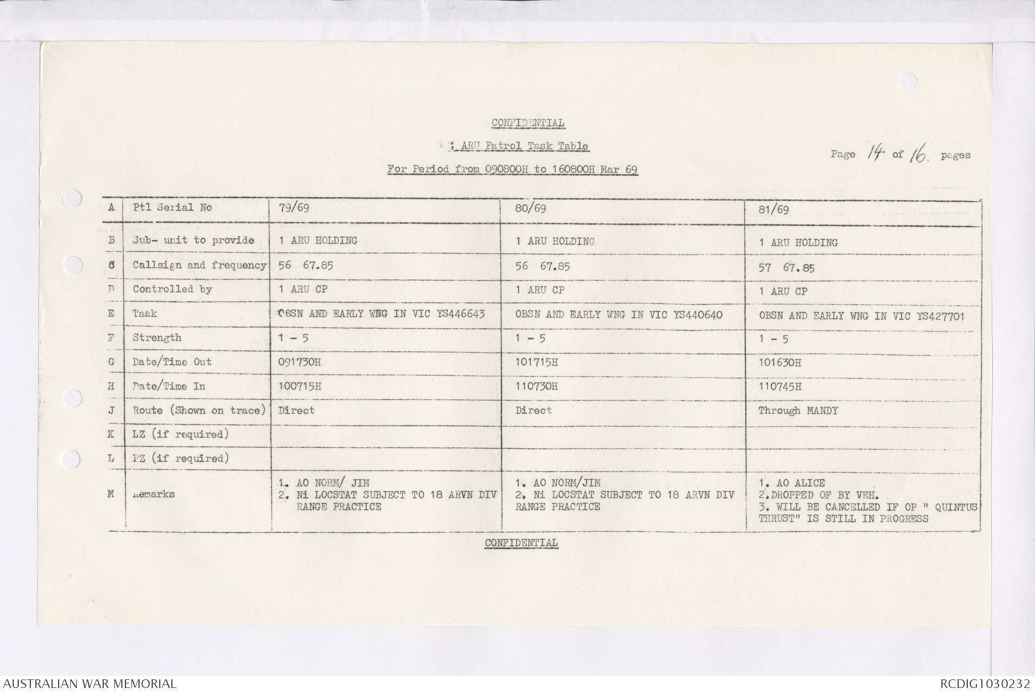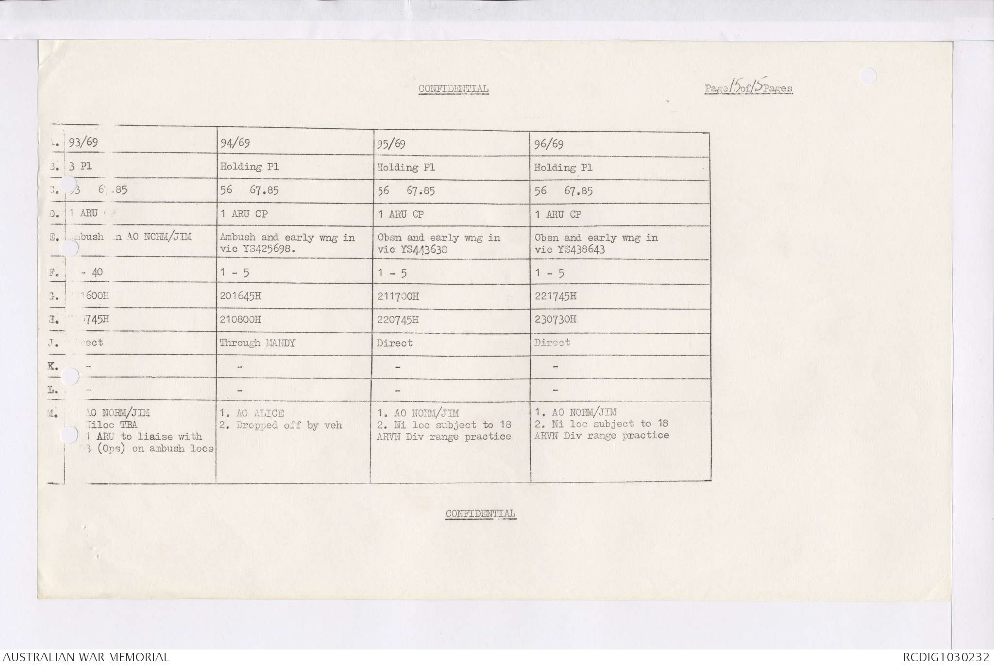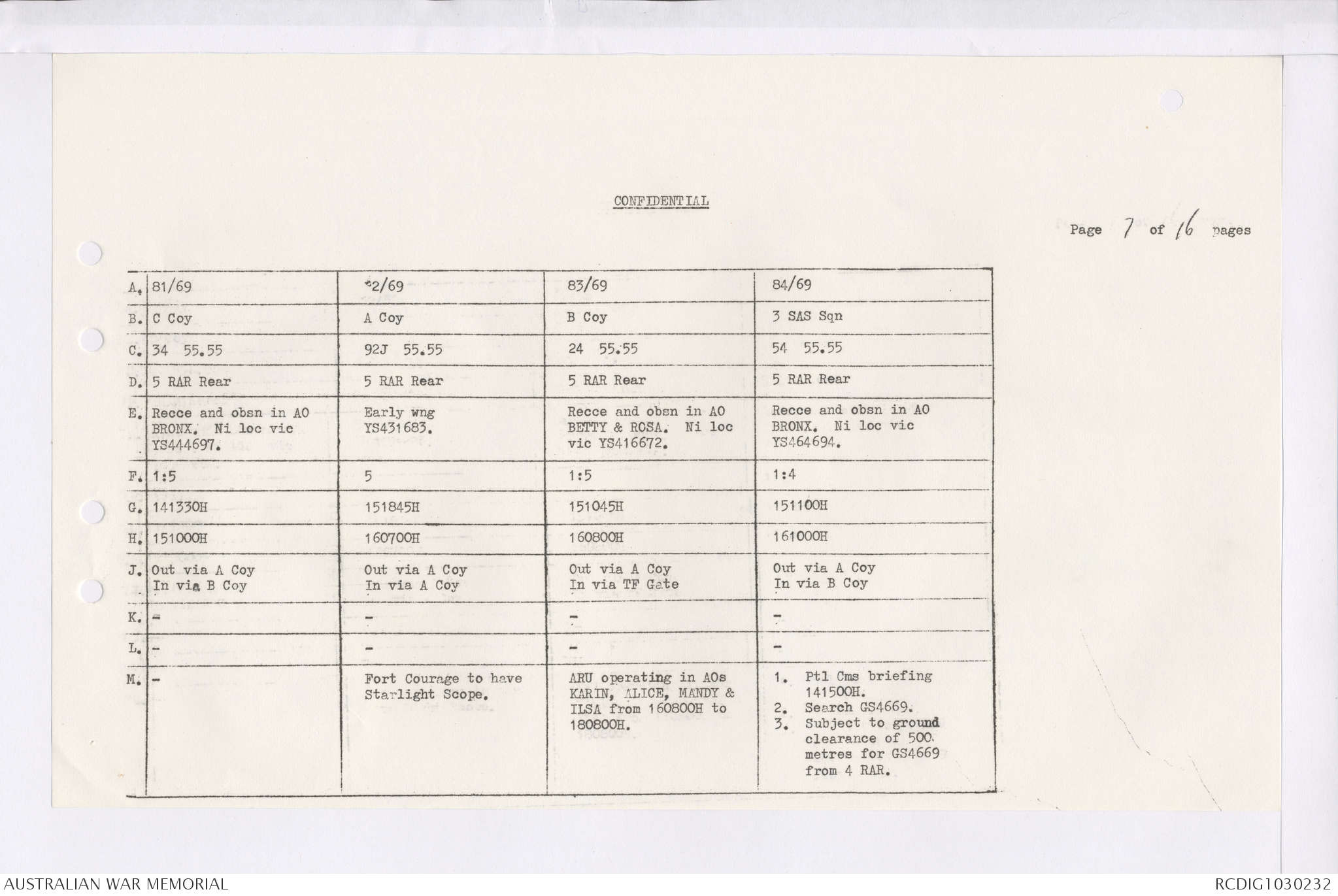AWM95 7/4/37 - 1-31 March 1969, Narrative, Duty Officer's log, Annexes