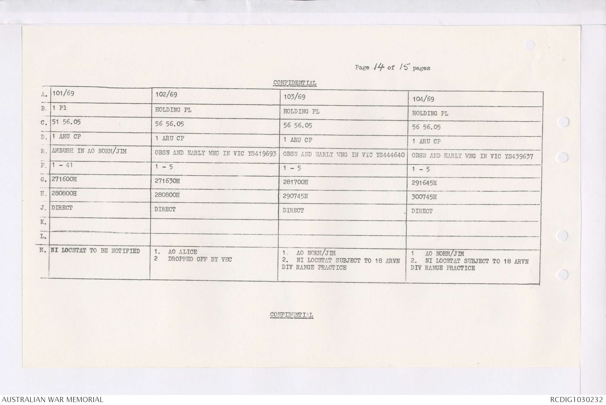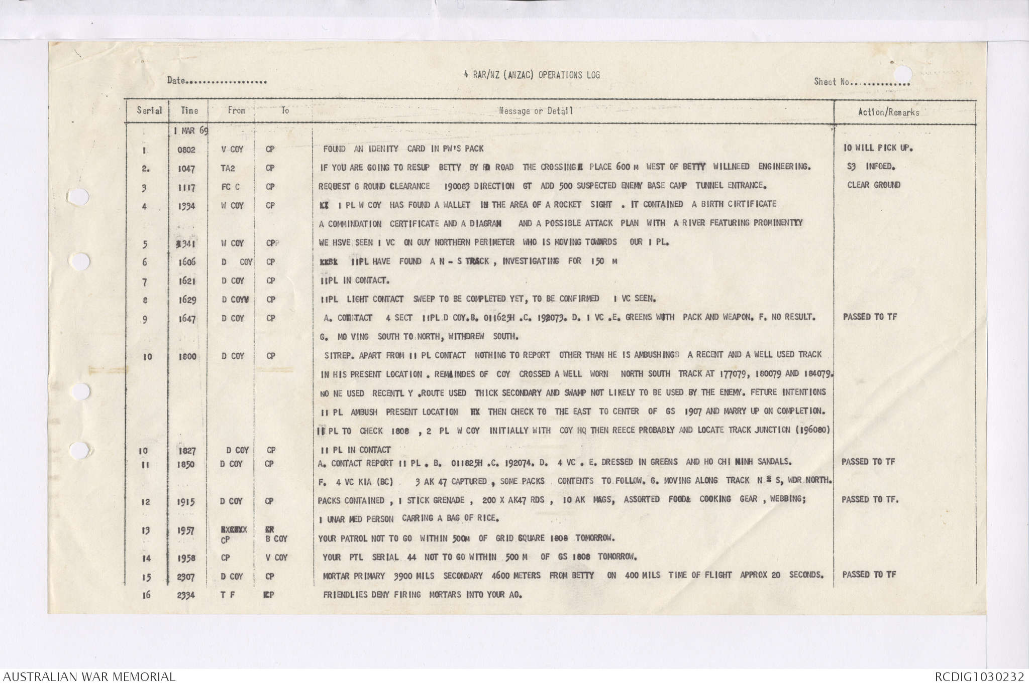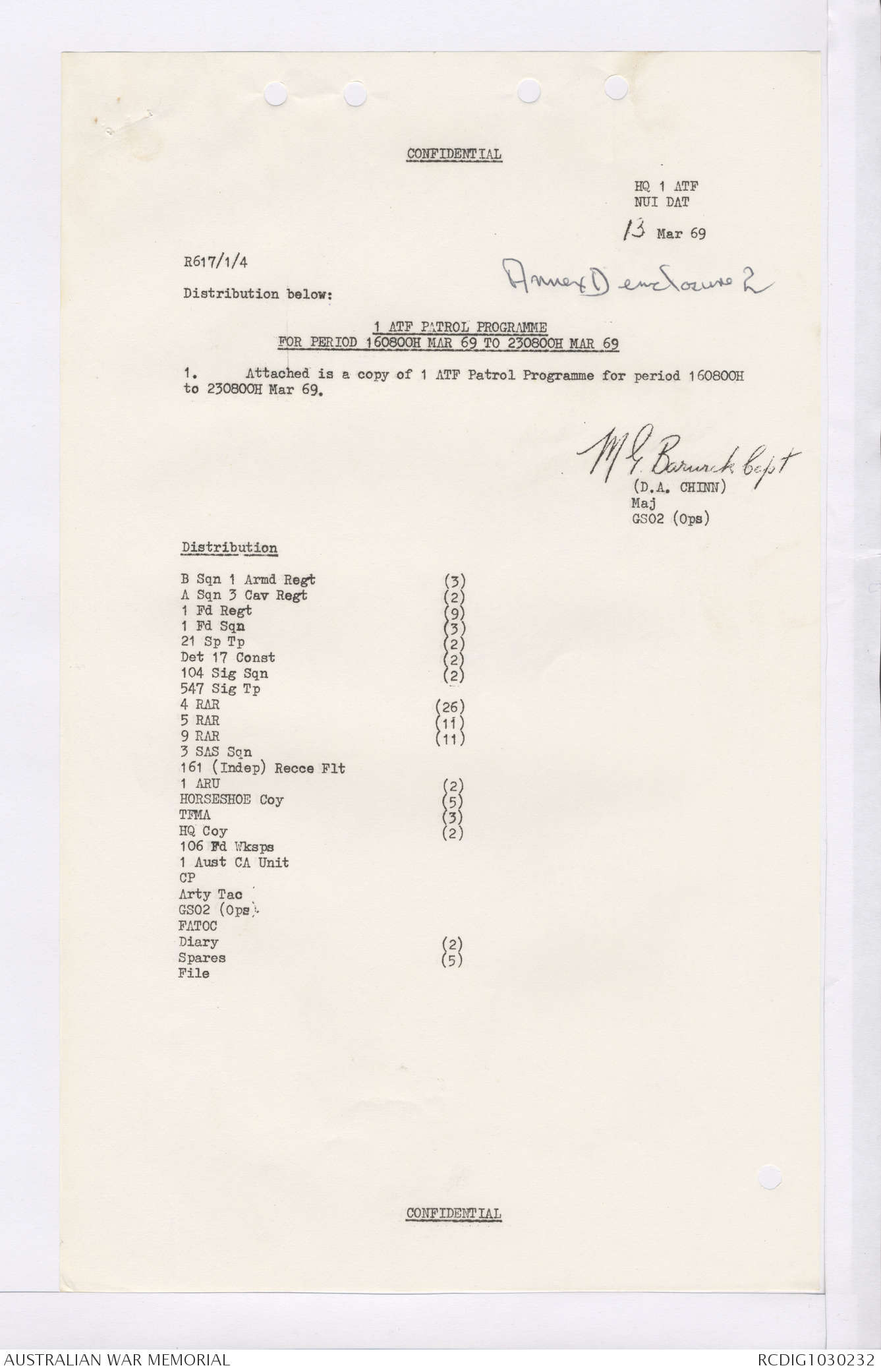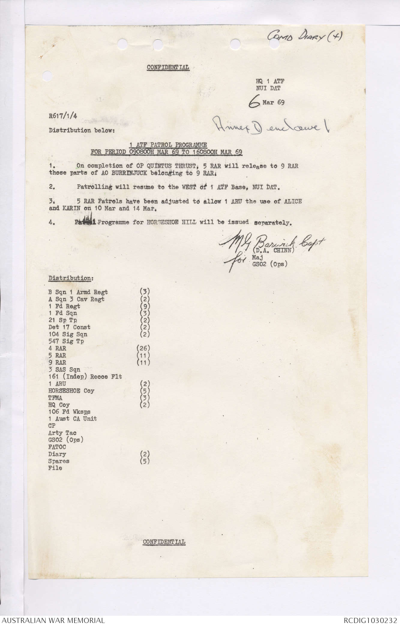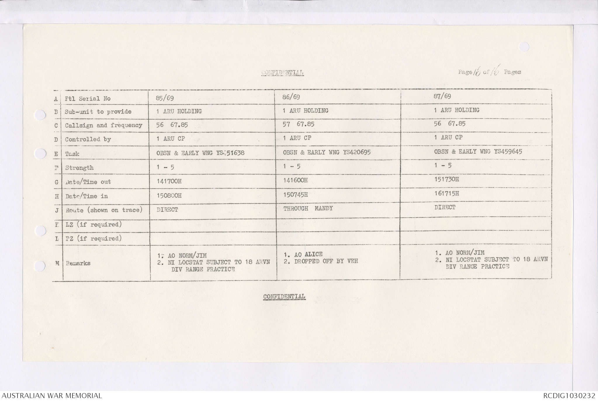 AWM95 7/4/37 - 1-31 March 1969, Narrative, Duty Officer's log, Annexes