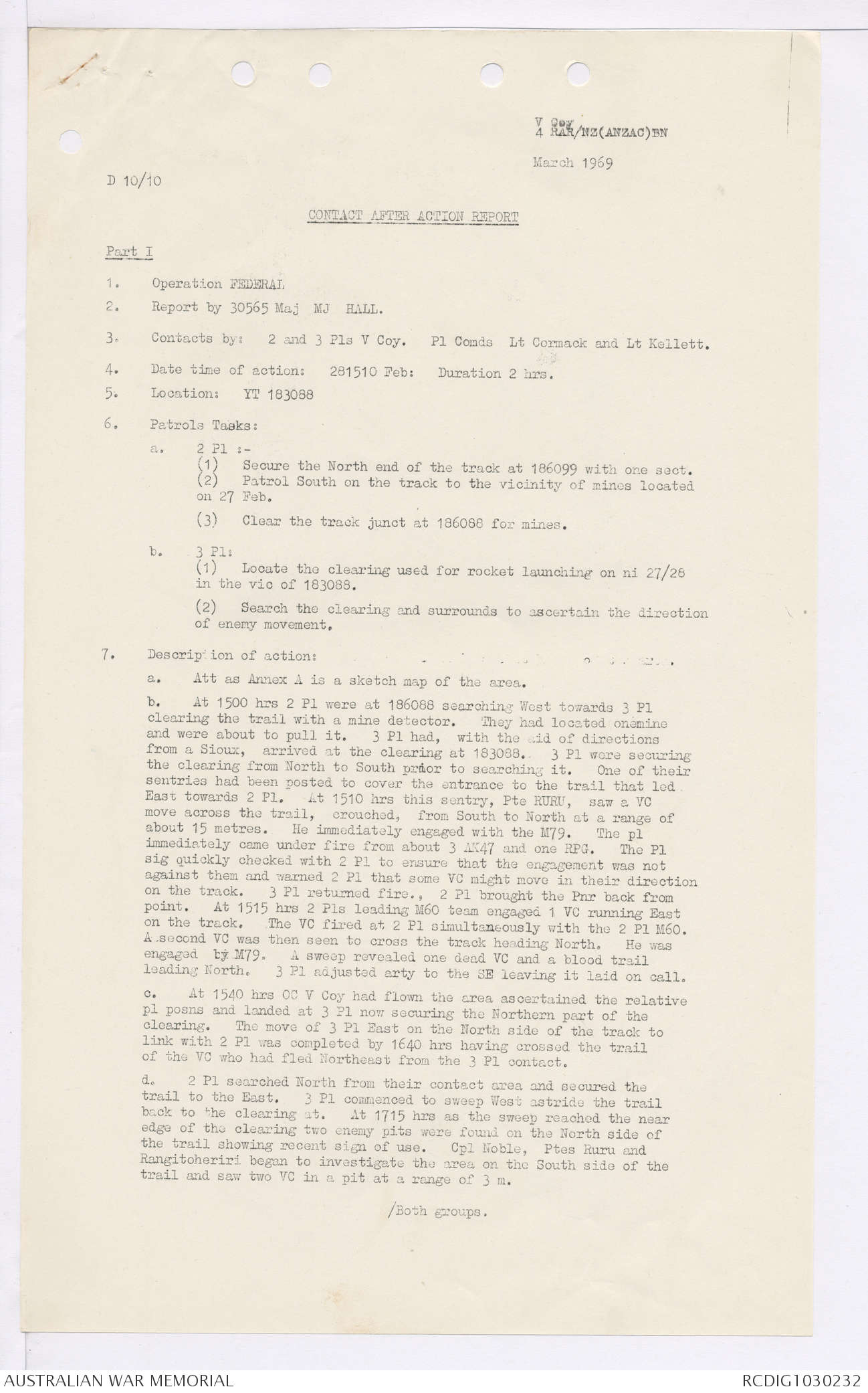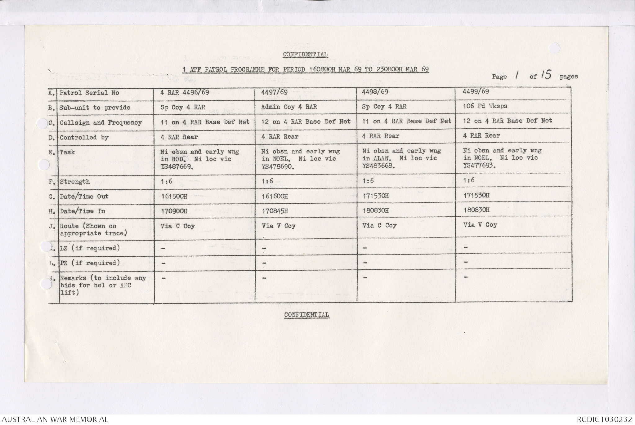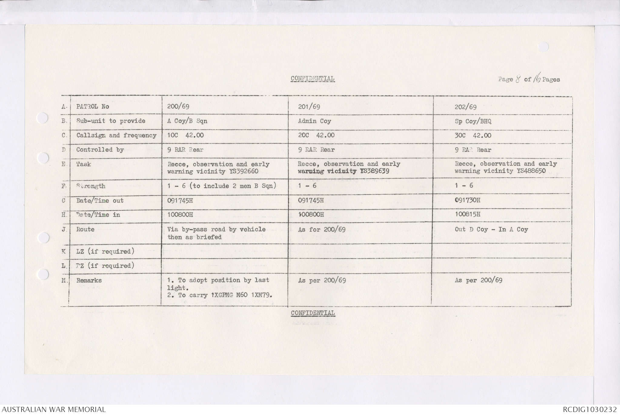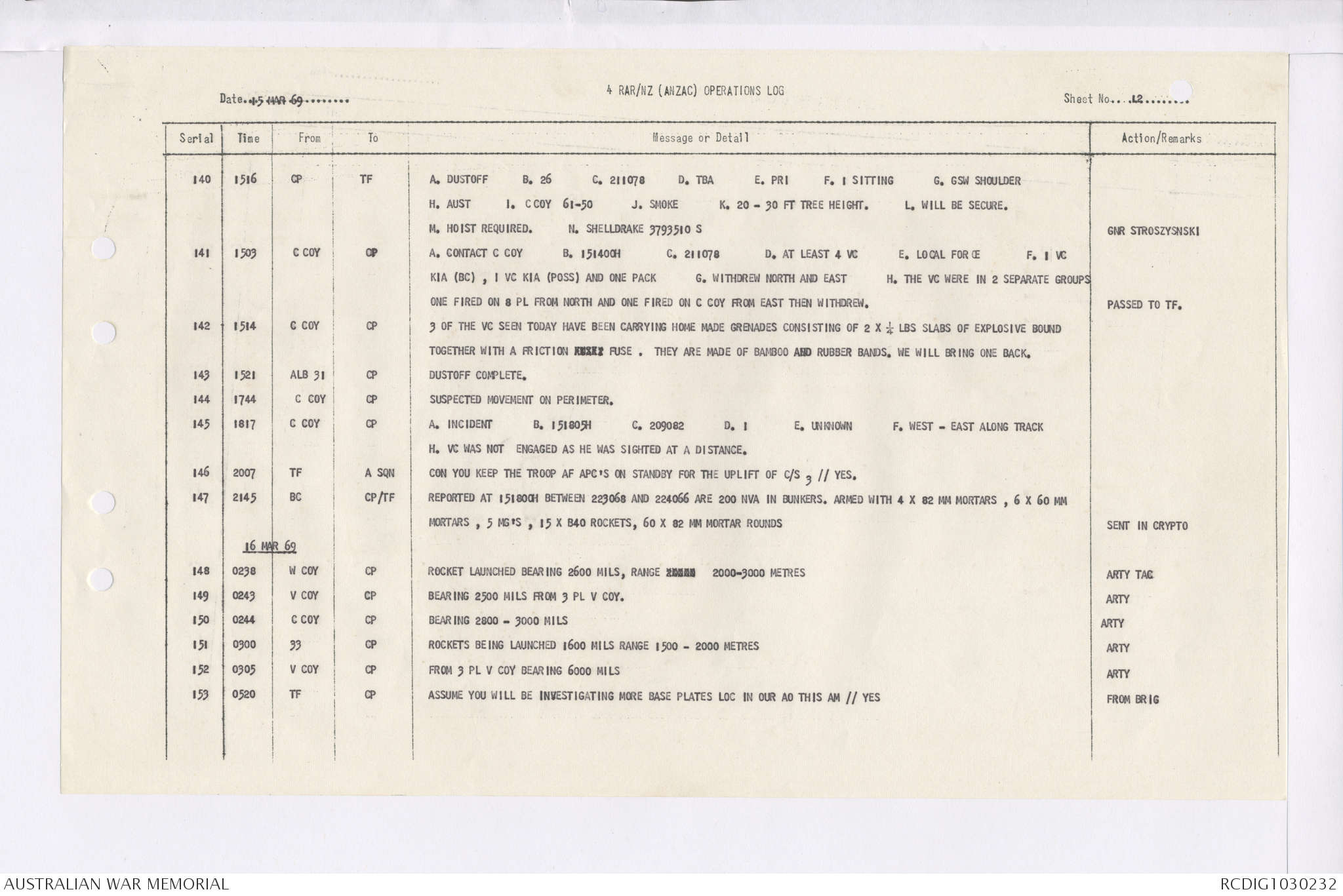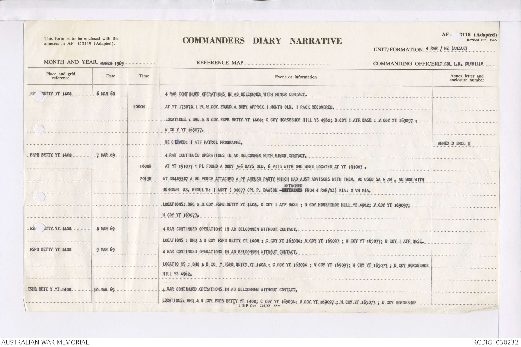 AWM95 7/4/37 - 1-31 March 1969, Narrative, Duty Officer's log, Annexes