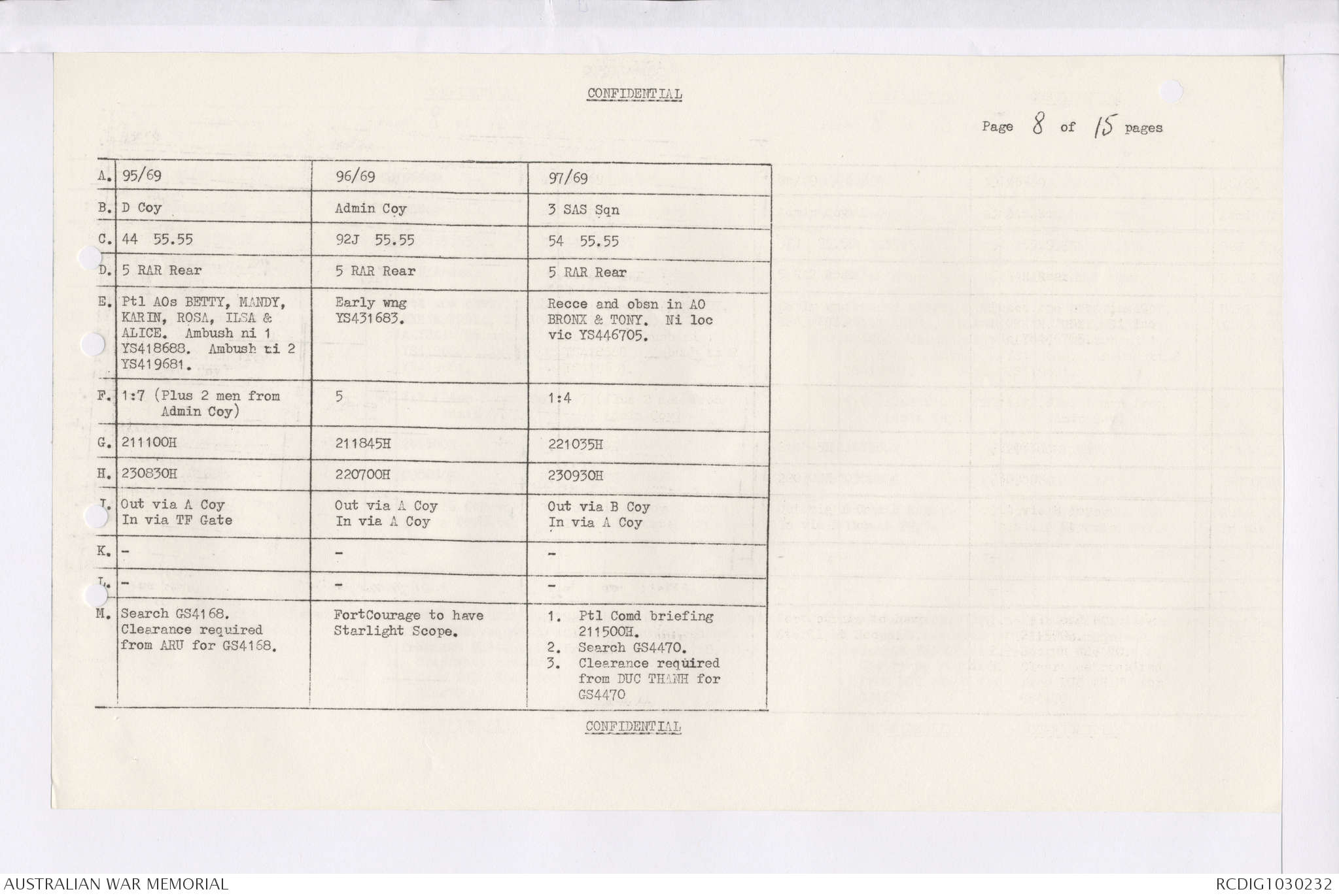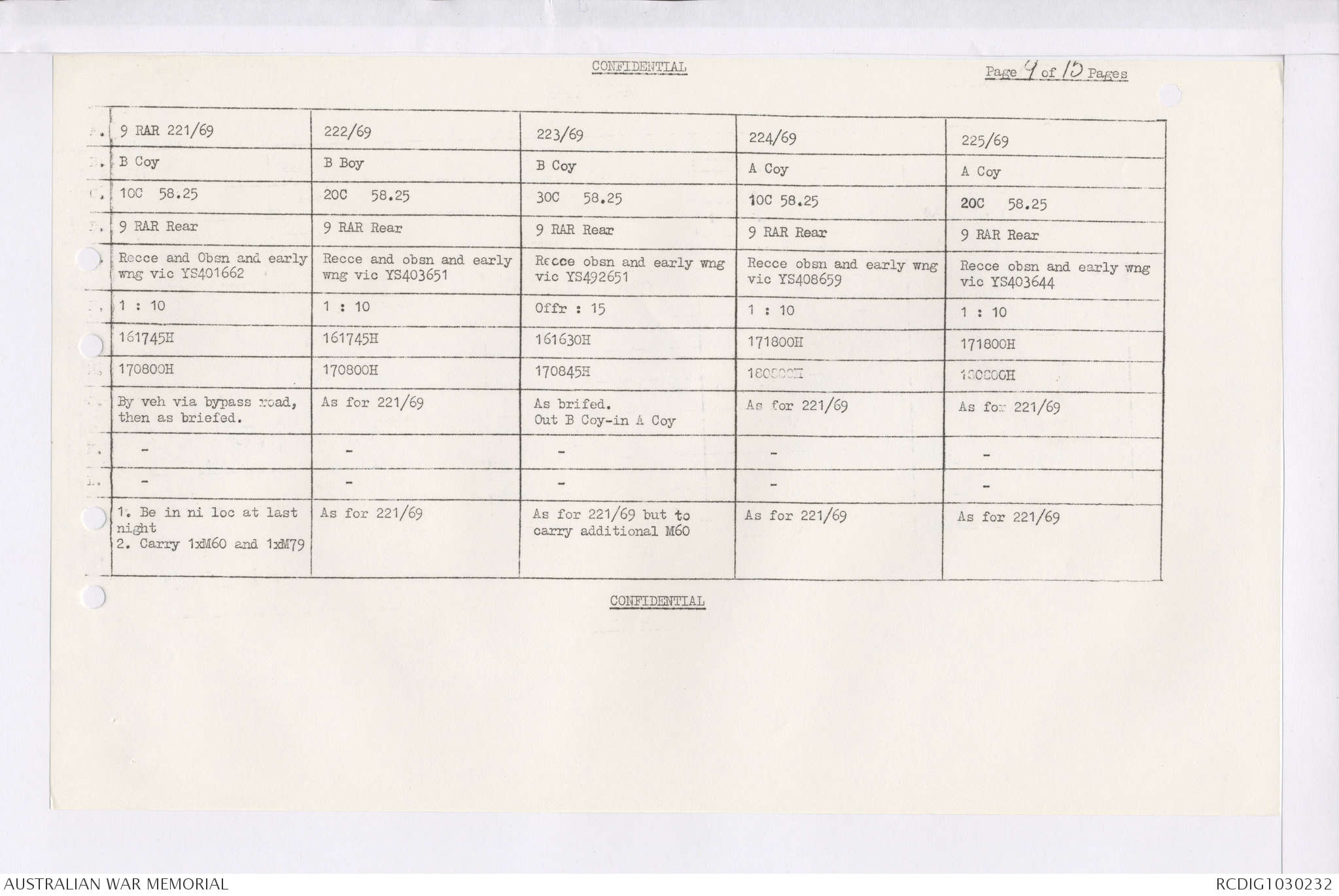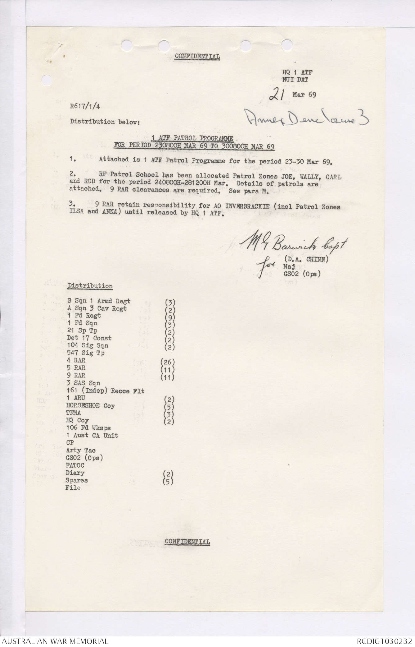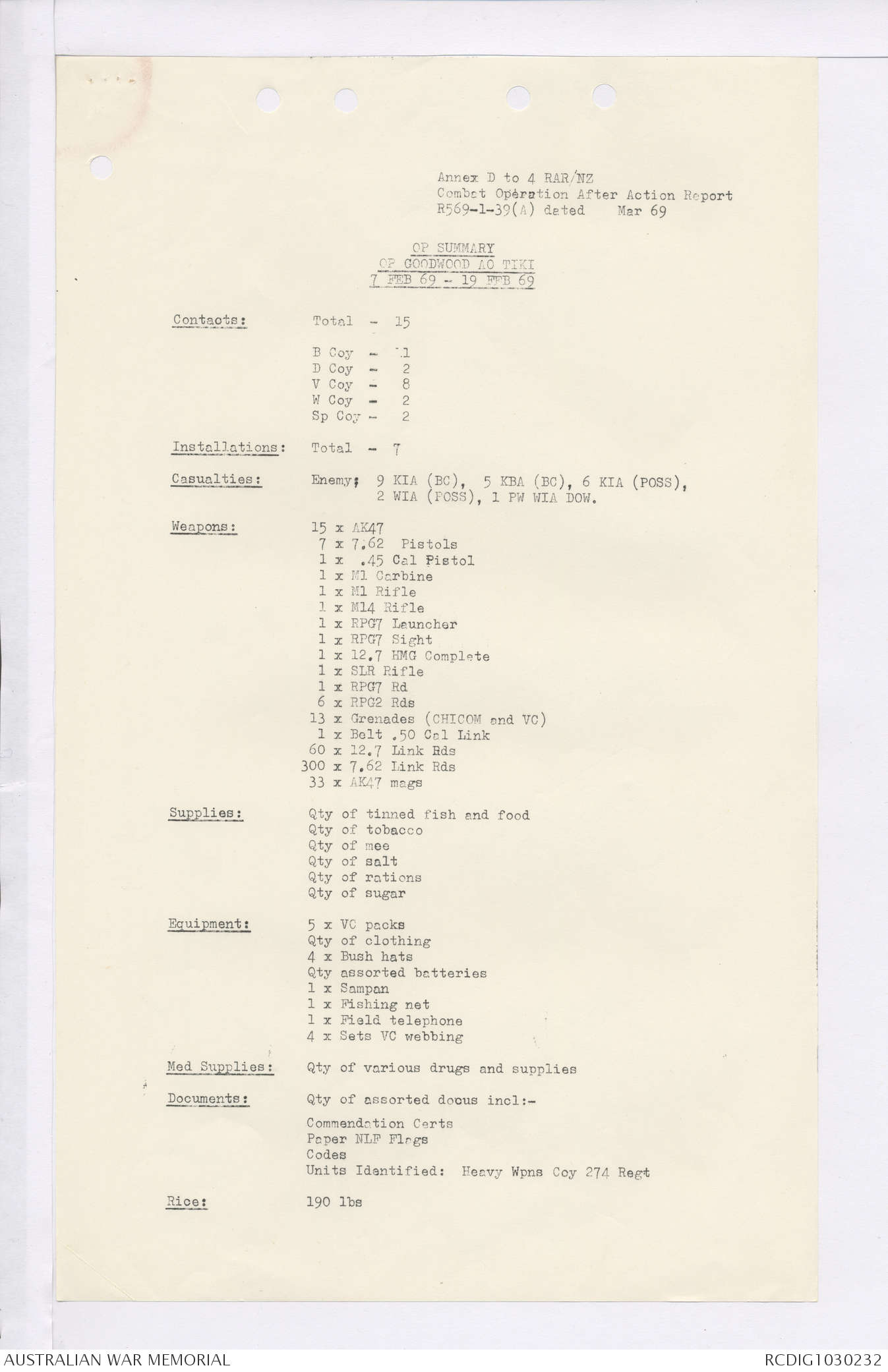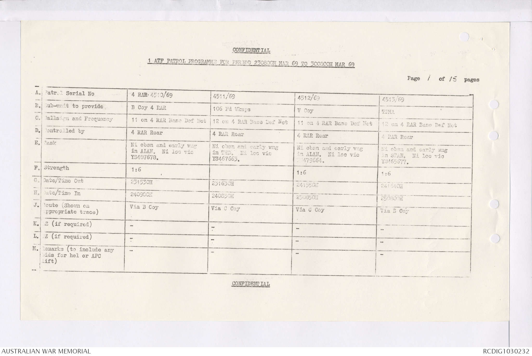 AWM95 7/4/37 - 1-31 March 1969, Narrative, Duty Officer's log, Annexes