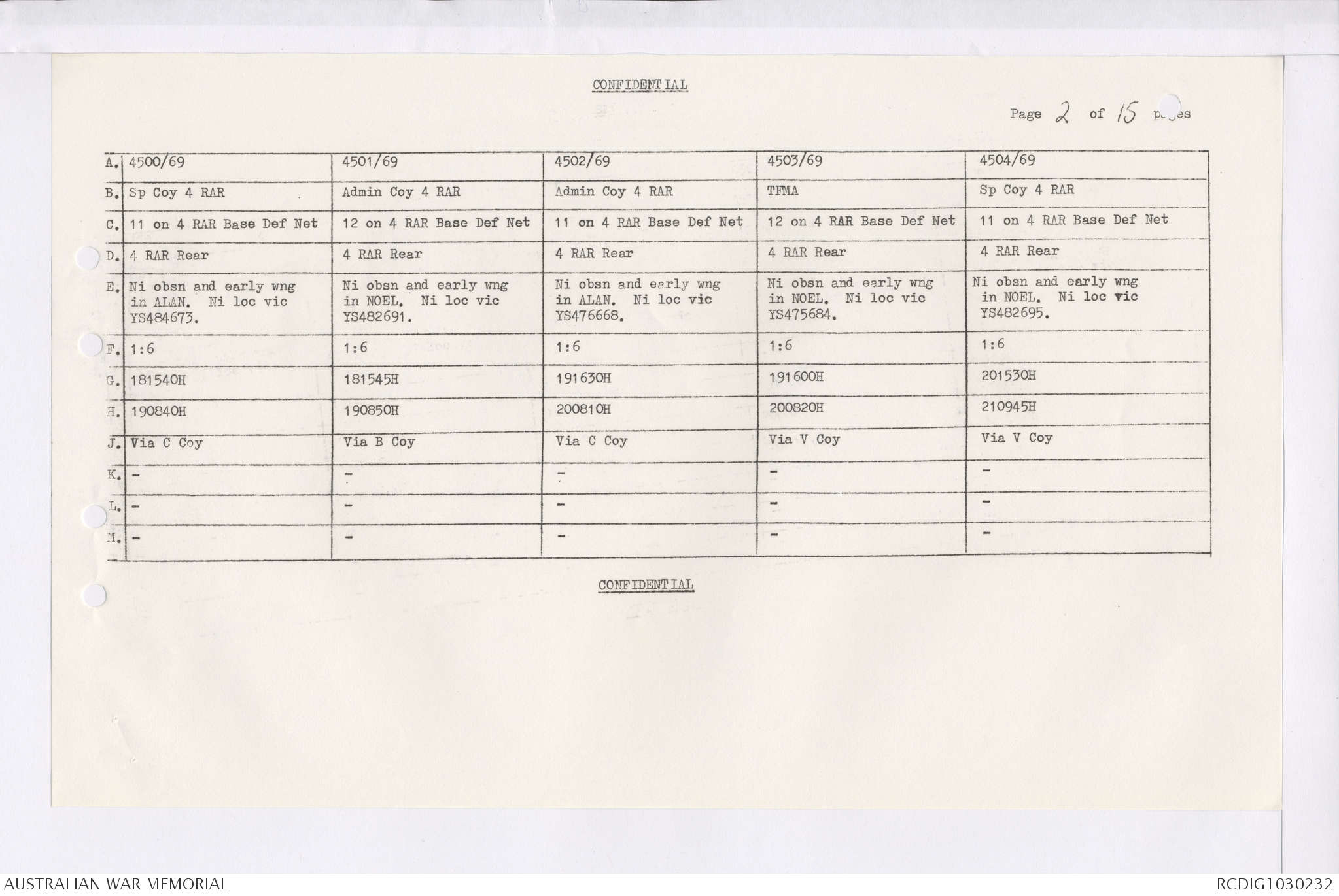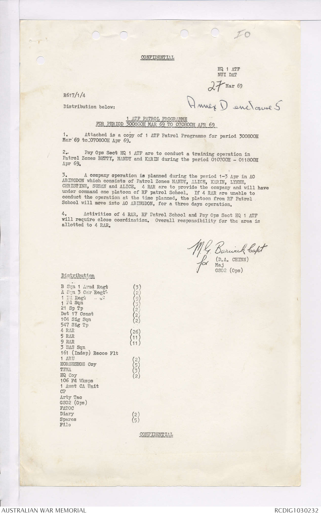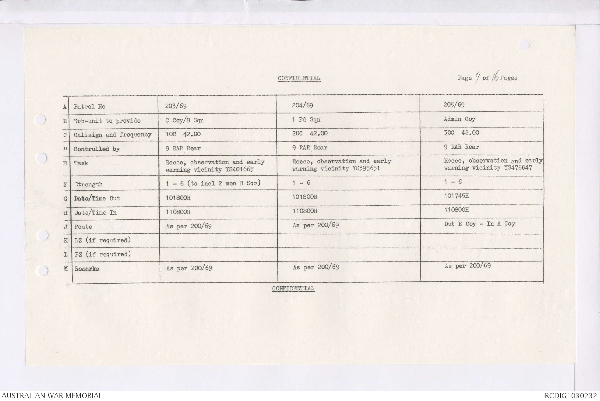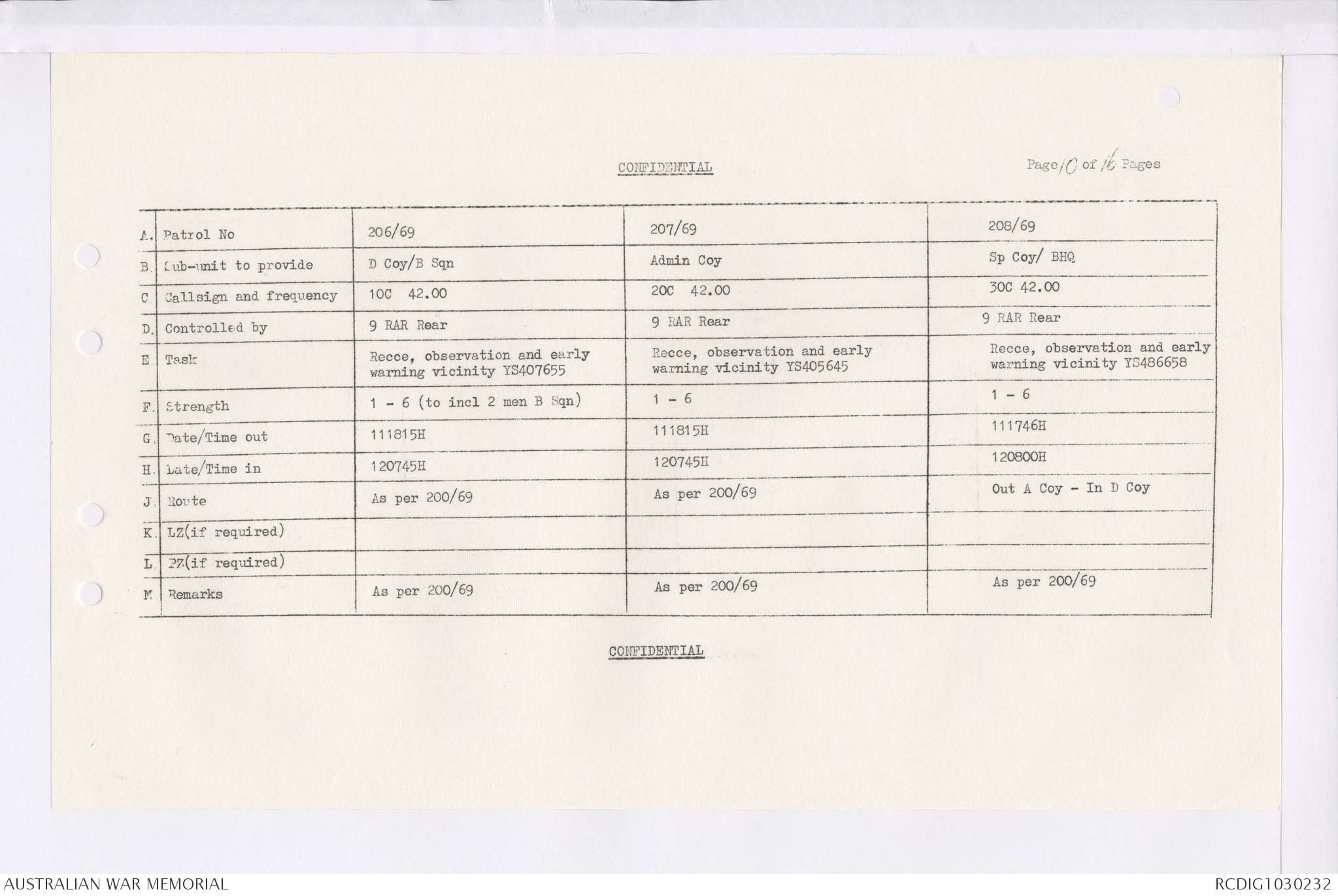 AWM95 7/4/37 - 1-31 March 1969, Narrative, Duty Officer's log, Annexes