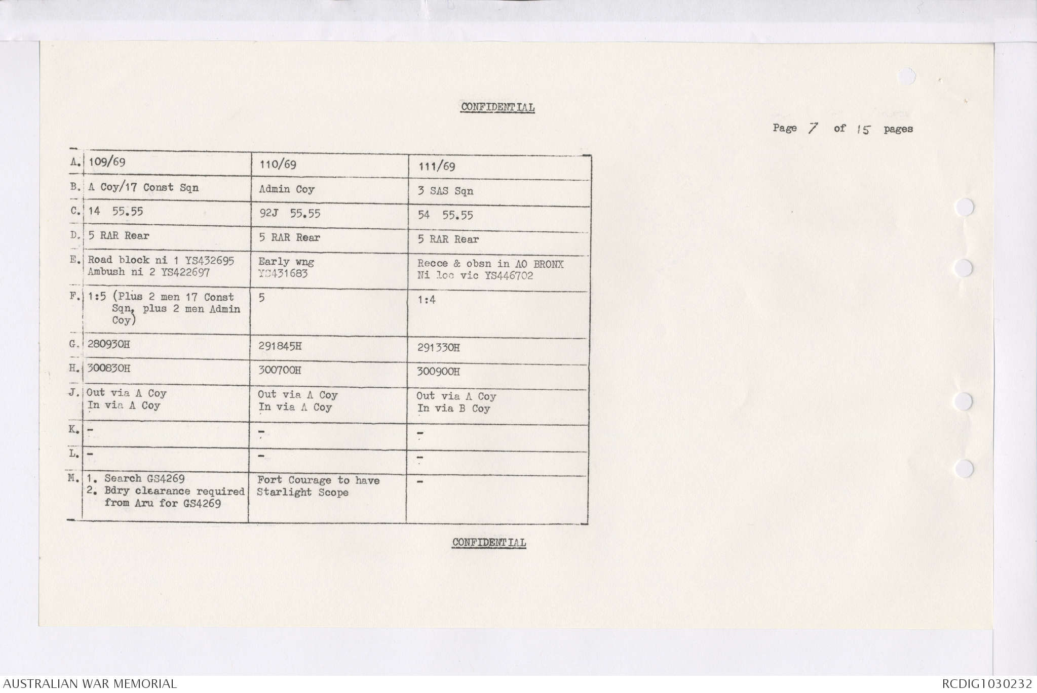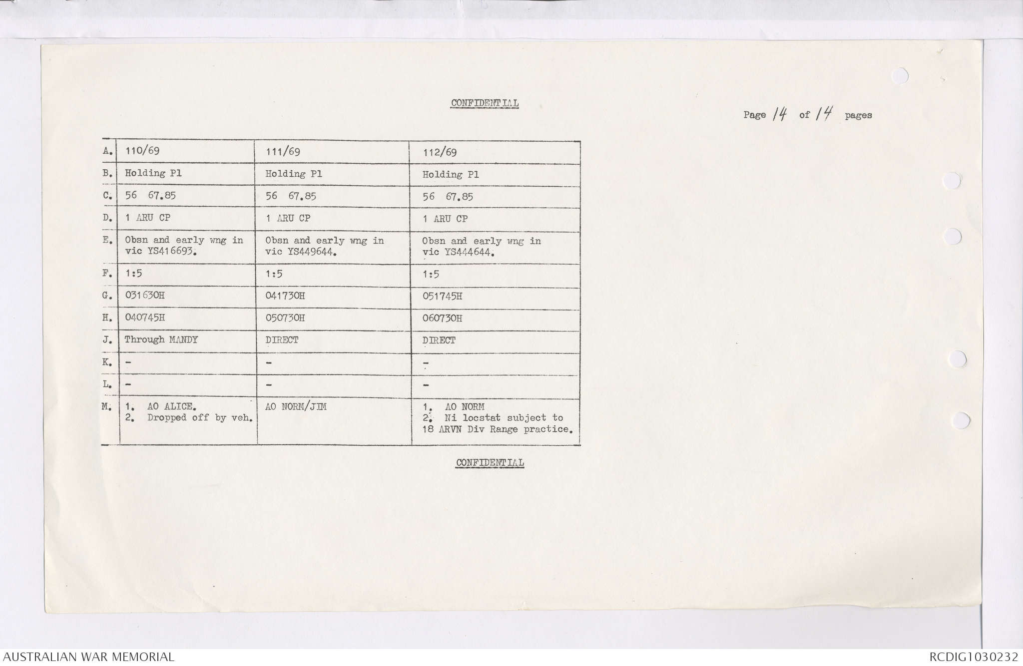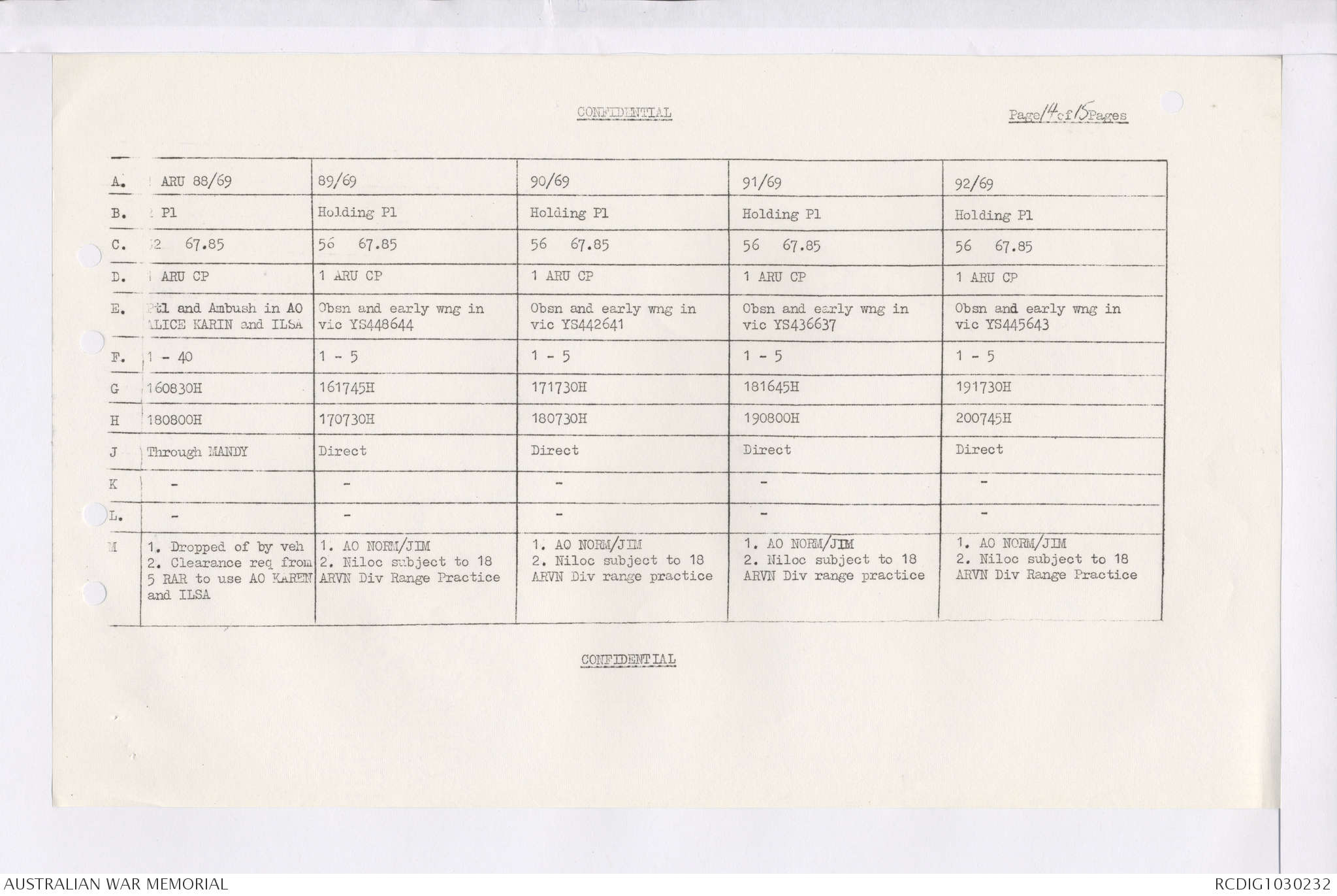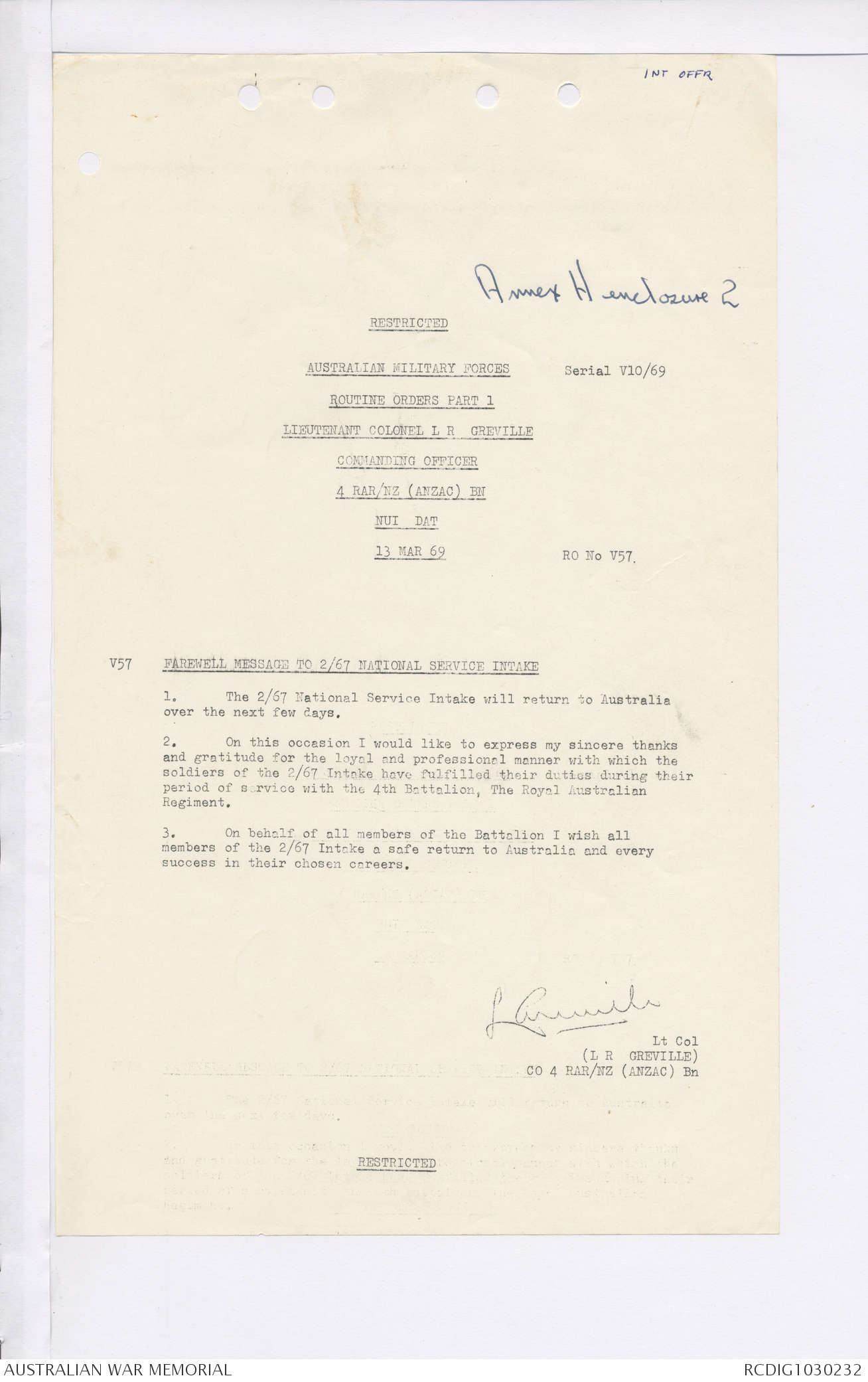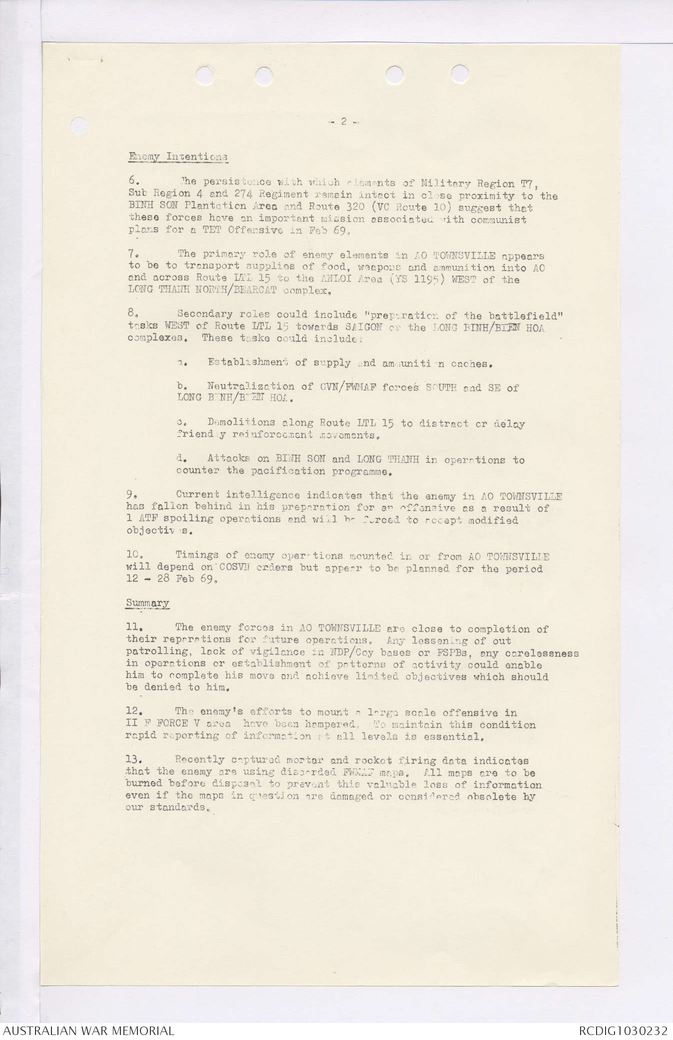 AWM95 7/4/37 - 1-31 March 1969, Narrative, Duty Officer's log, Annexes