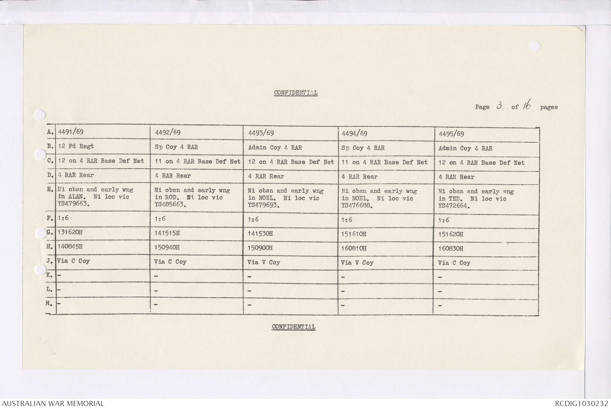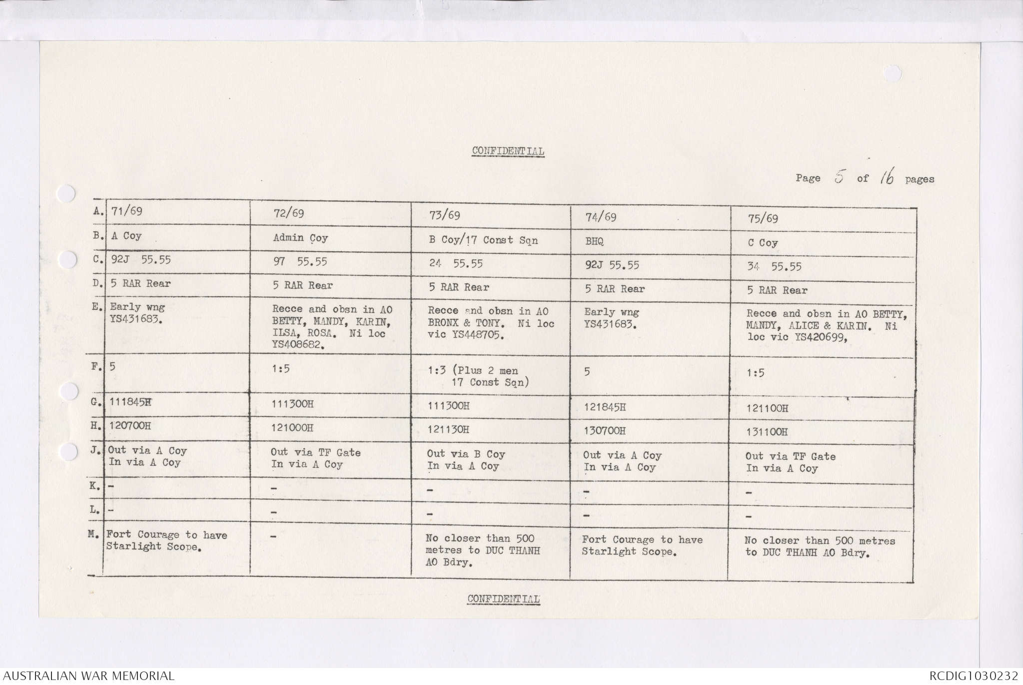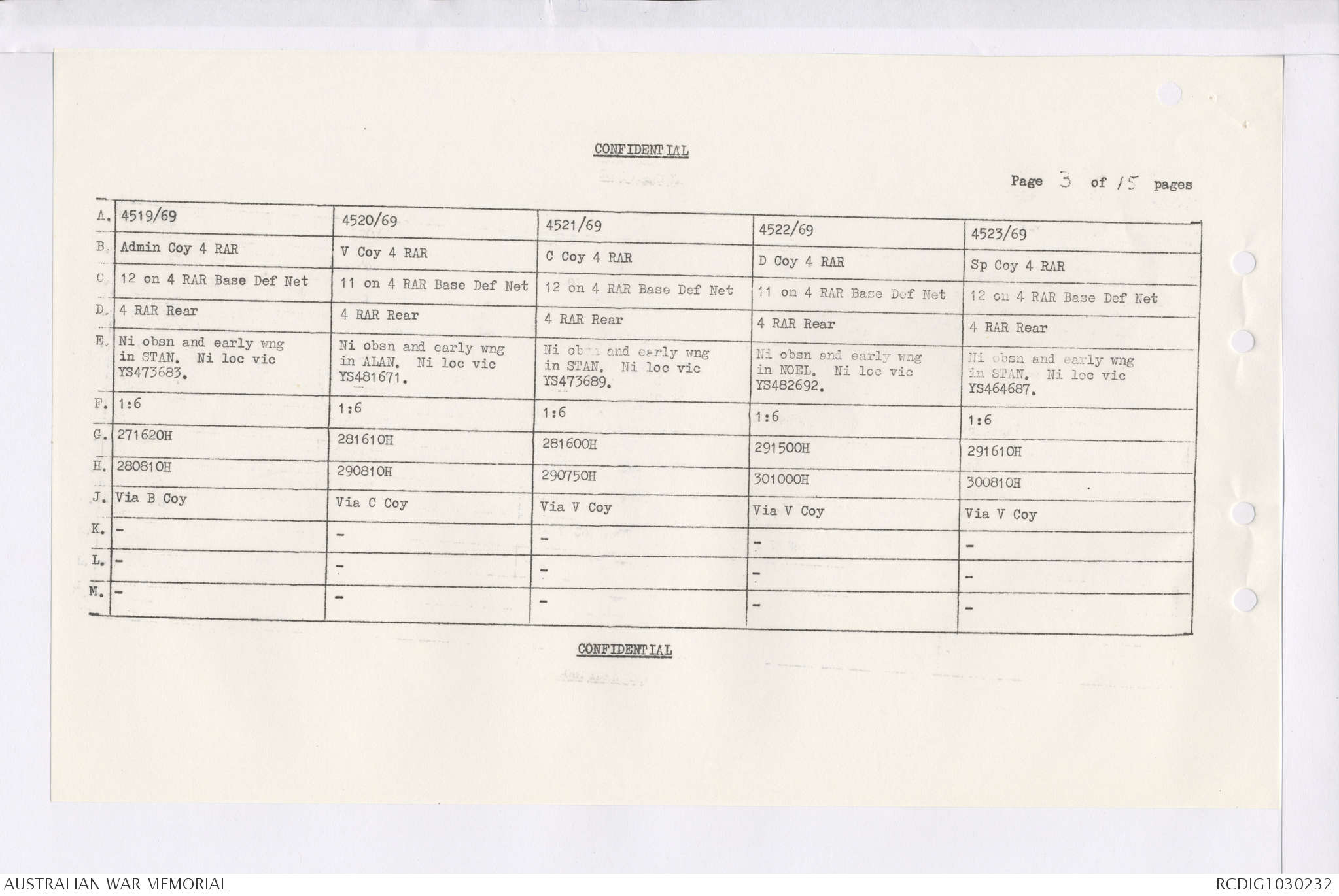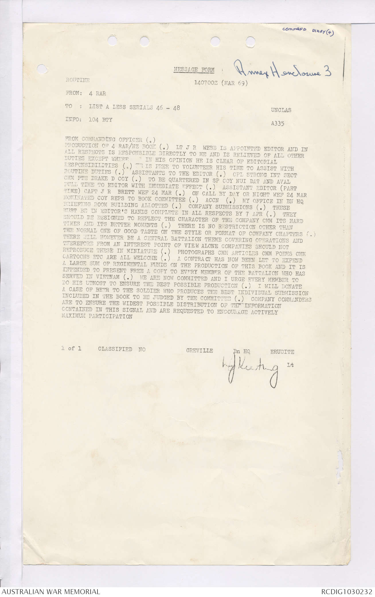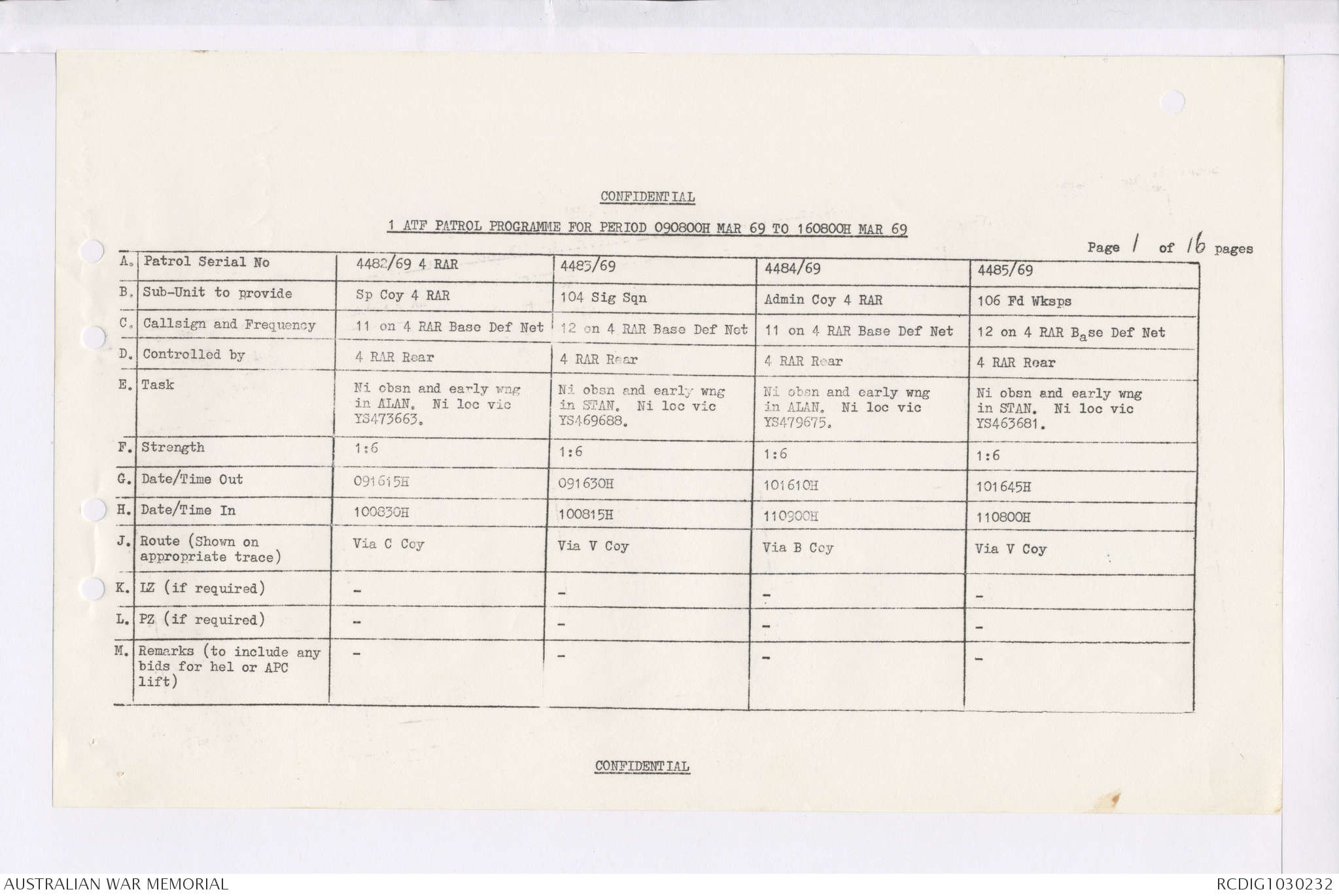 AWM95 7/4/37 - 1-31 March 1969, Narrative, Duty Officer's log, Annexes