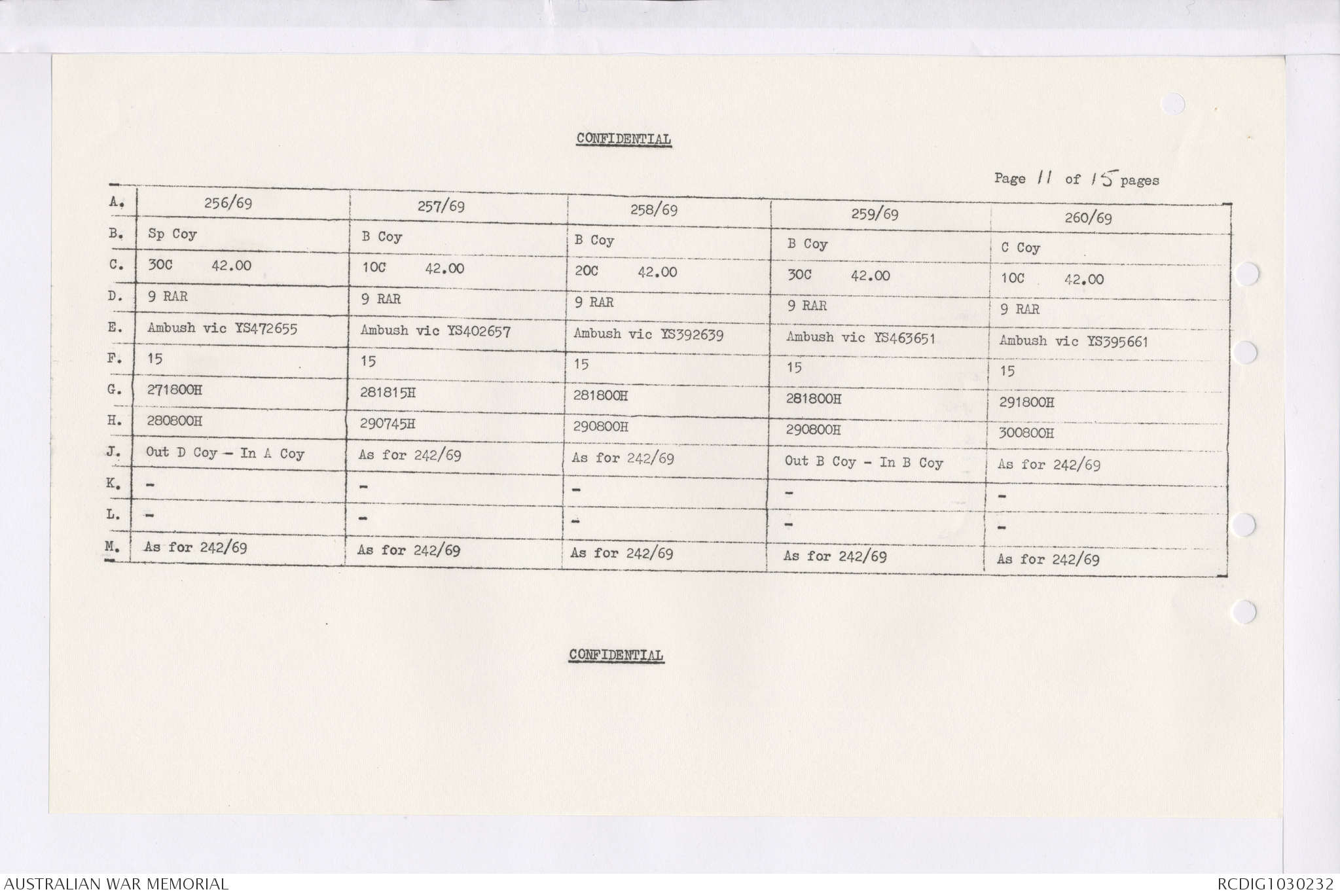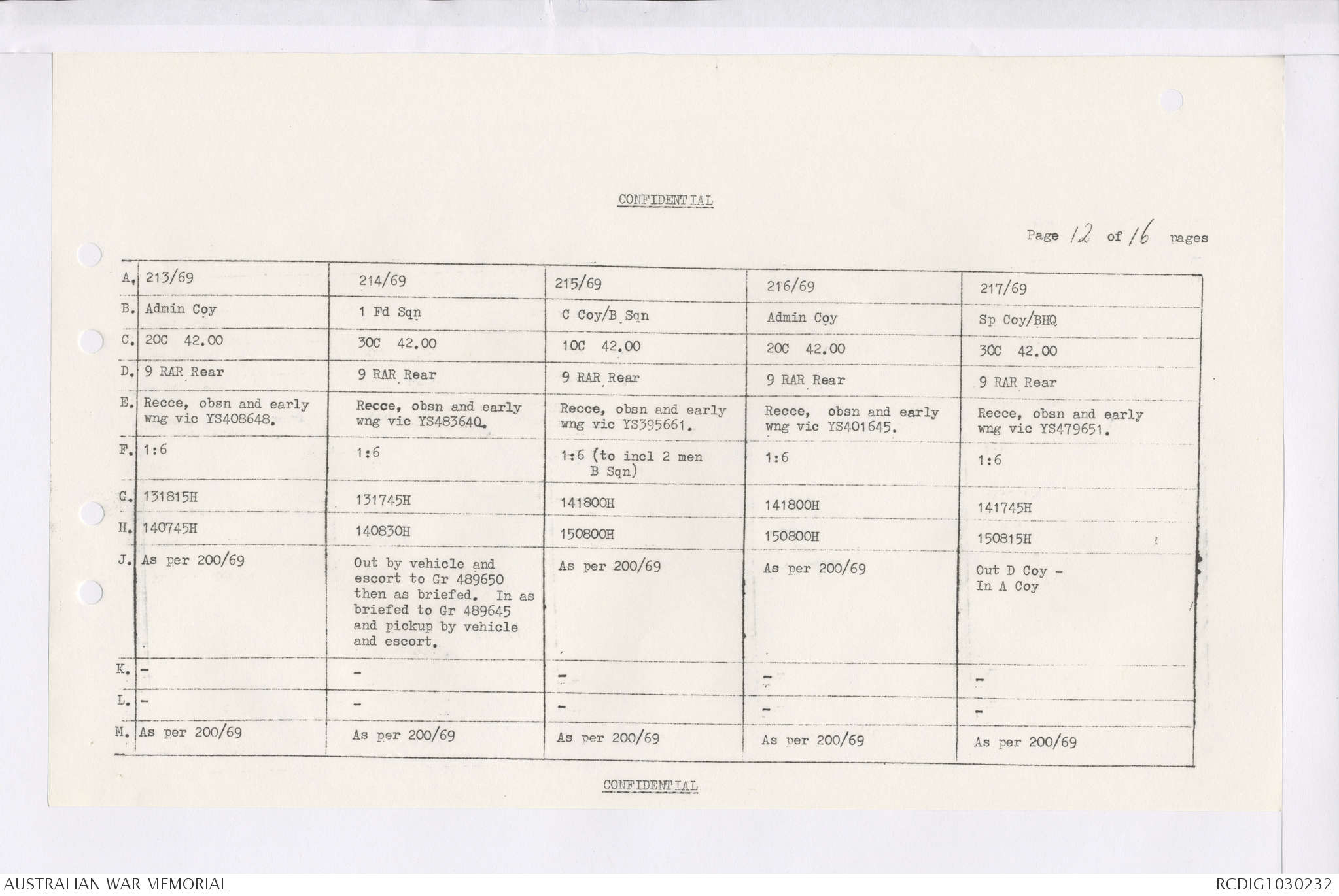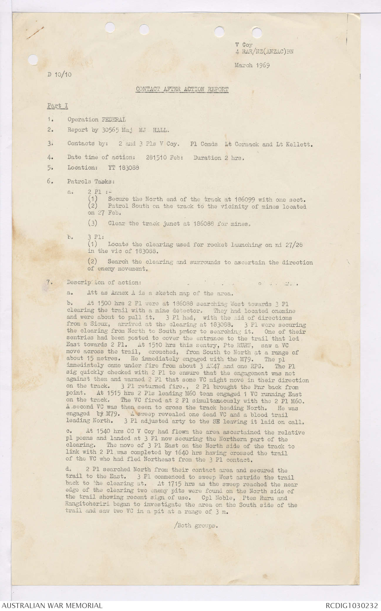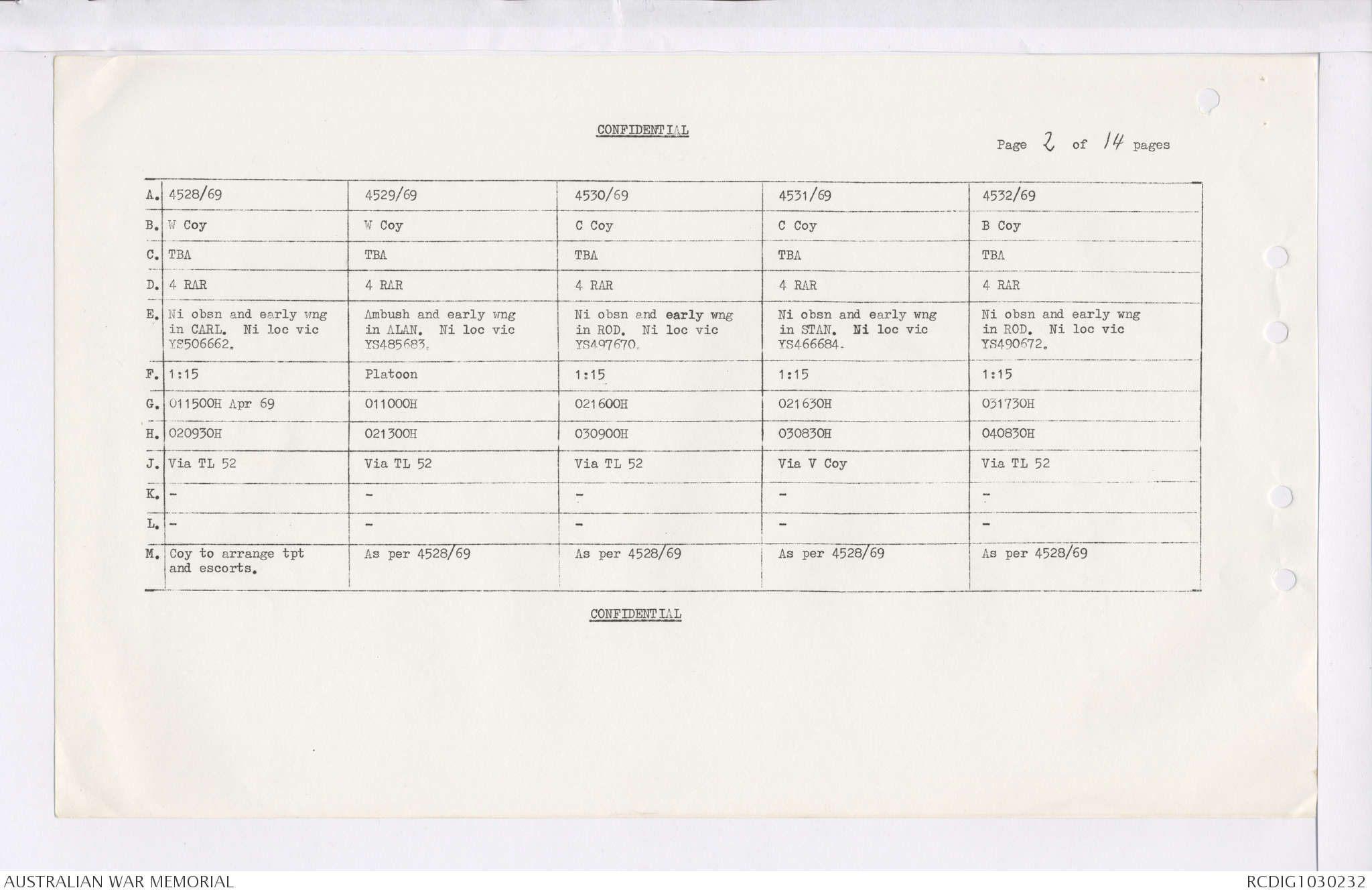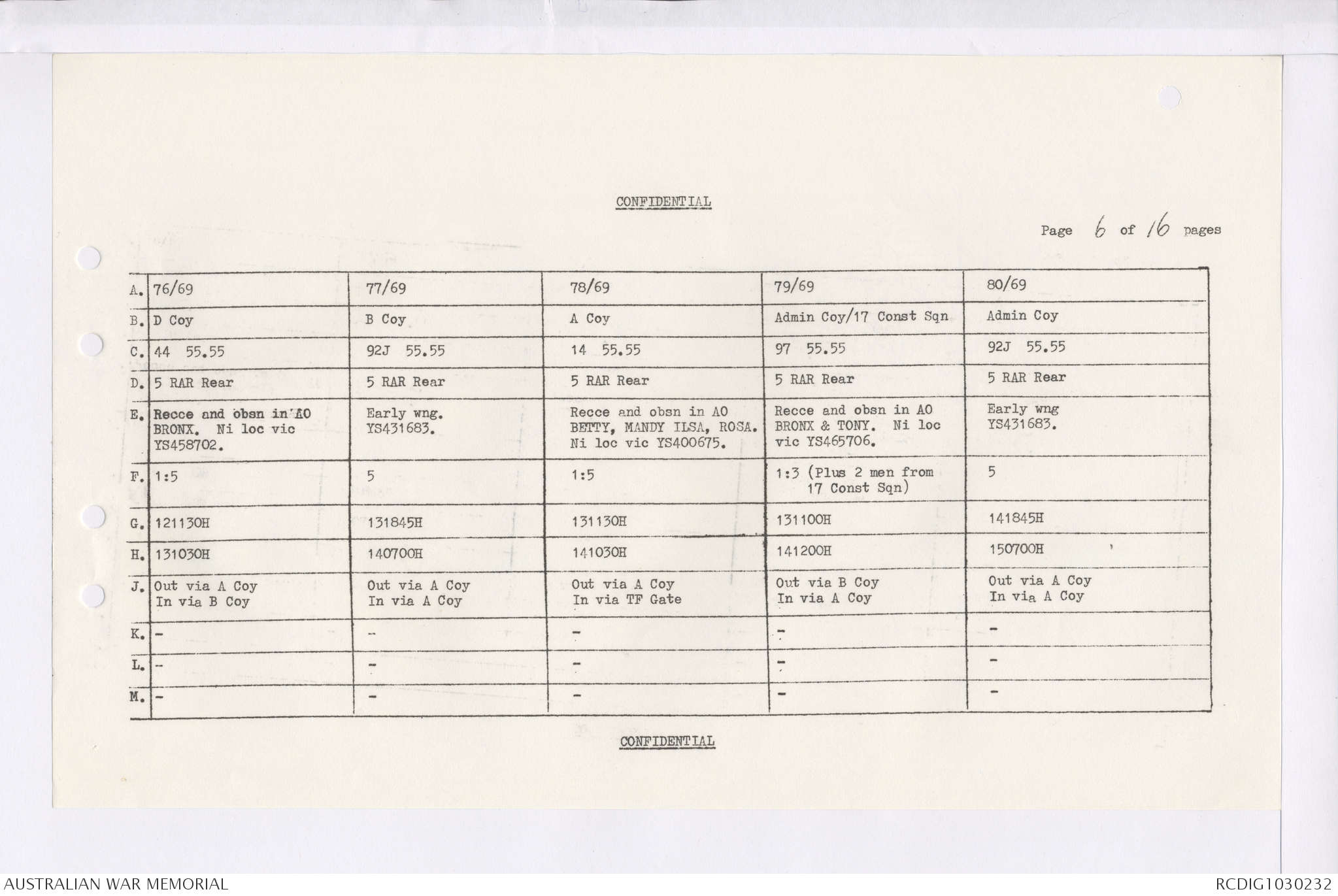 AWM95 7/4/37 - 1-31 March 1969, Narrative, Duty Officer's log, Annexes
